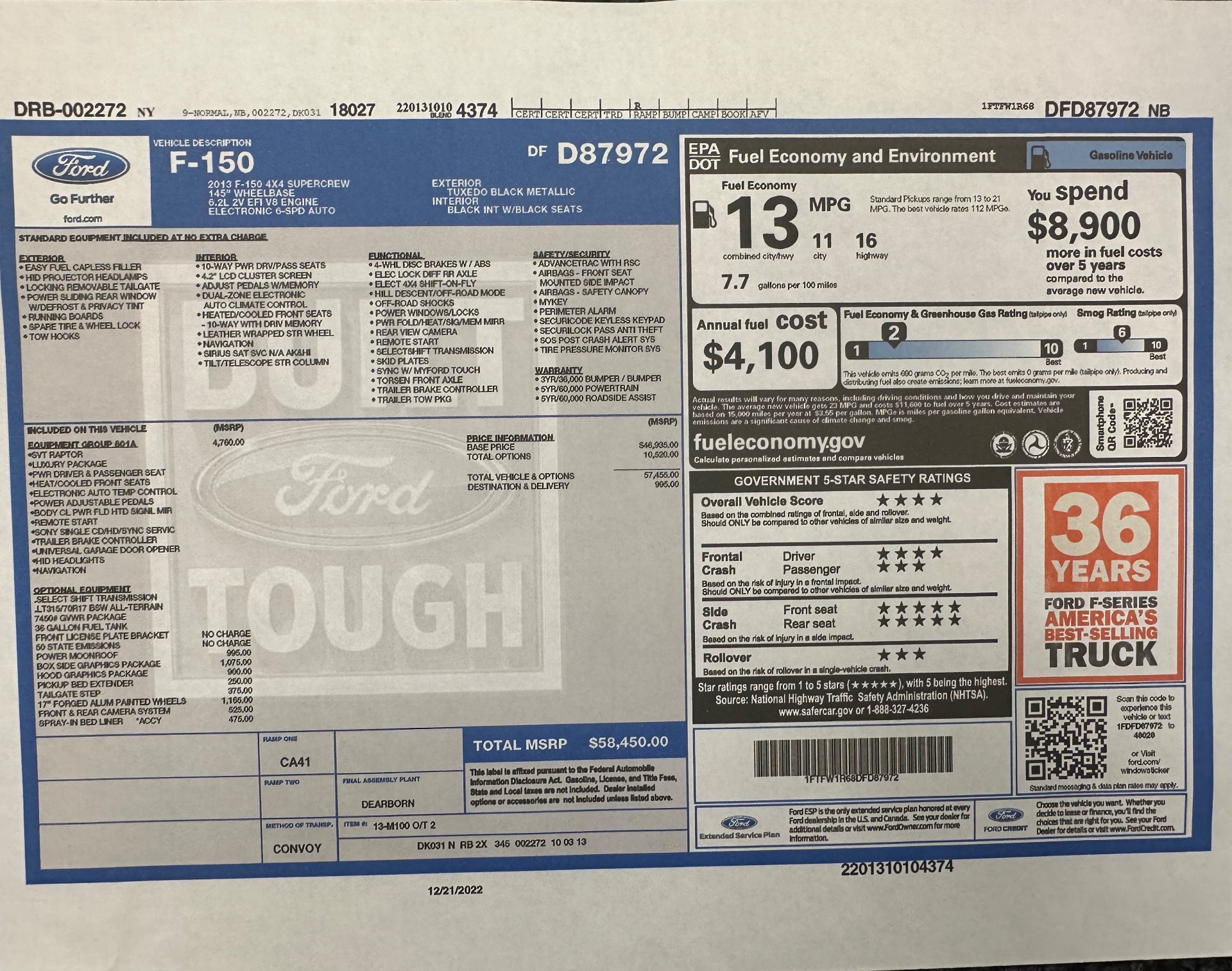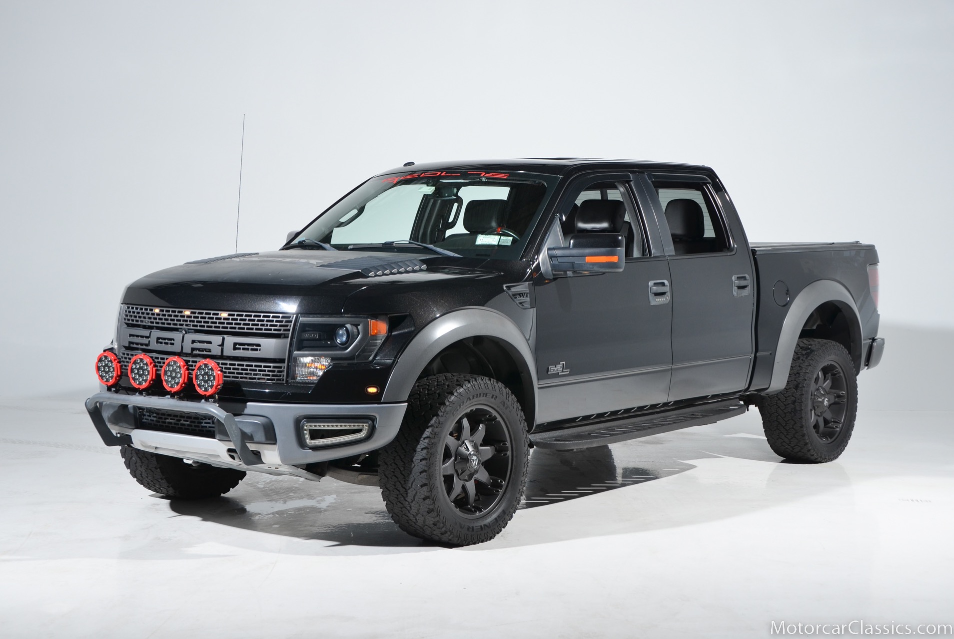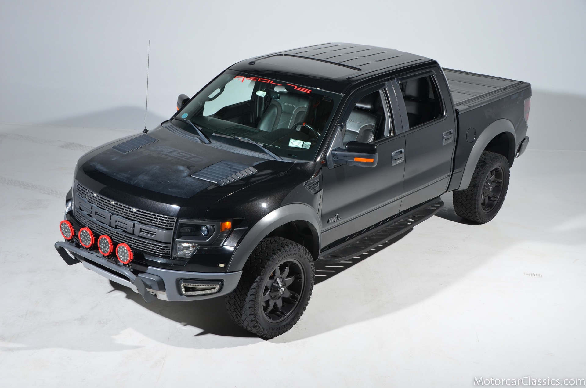 2013 Ford F-150 SVT Raptor 4X4 Supercrew for sale! Motorcar Classics is pleased to offer this SVT Raptor presented in Tuxedo Black Metallic with Black interior. 6.2L V8. 6 Speed automatic transmission. This Raptor comes with the stock wheels and tires. 41,400 1-owner miles. Options include: Luxury package, power driver and passenger seats, heated and cooled front seats, electronic auto temp control, power adjustable pedals, remote start, Sony single CD/sync service, trailer brake controller, universal garage door opener, HID headlights, NAV, power moonroof, box side graphics package, hood graphics package, pickup bed extender, tailgate step, 17 forged aluminum painted wheels, front and rear camera system, spray-in bed liner and more!