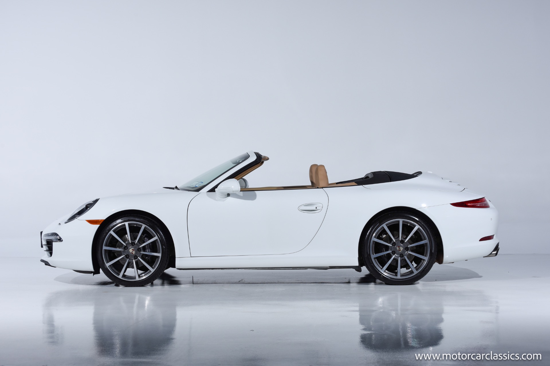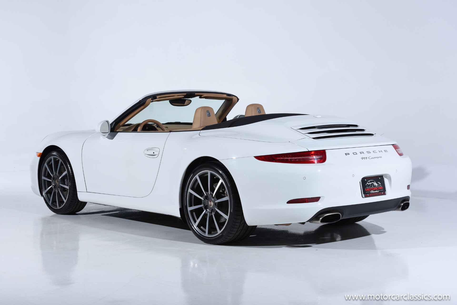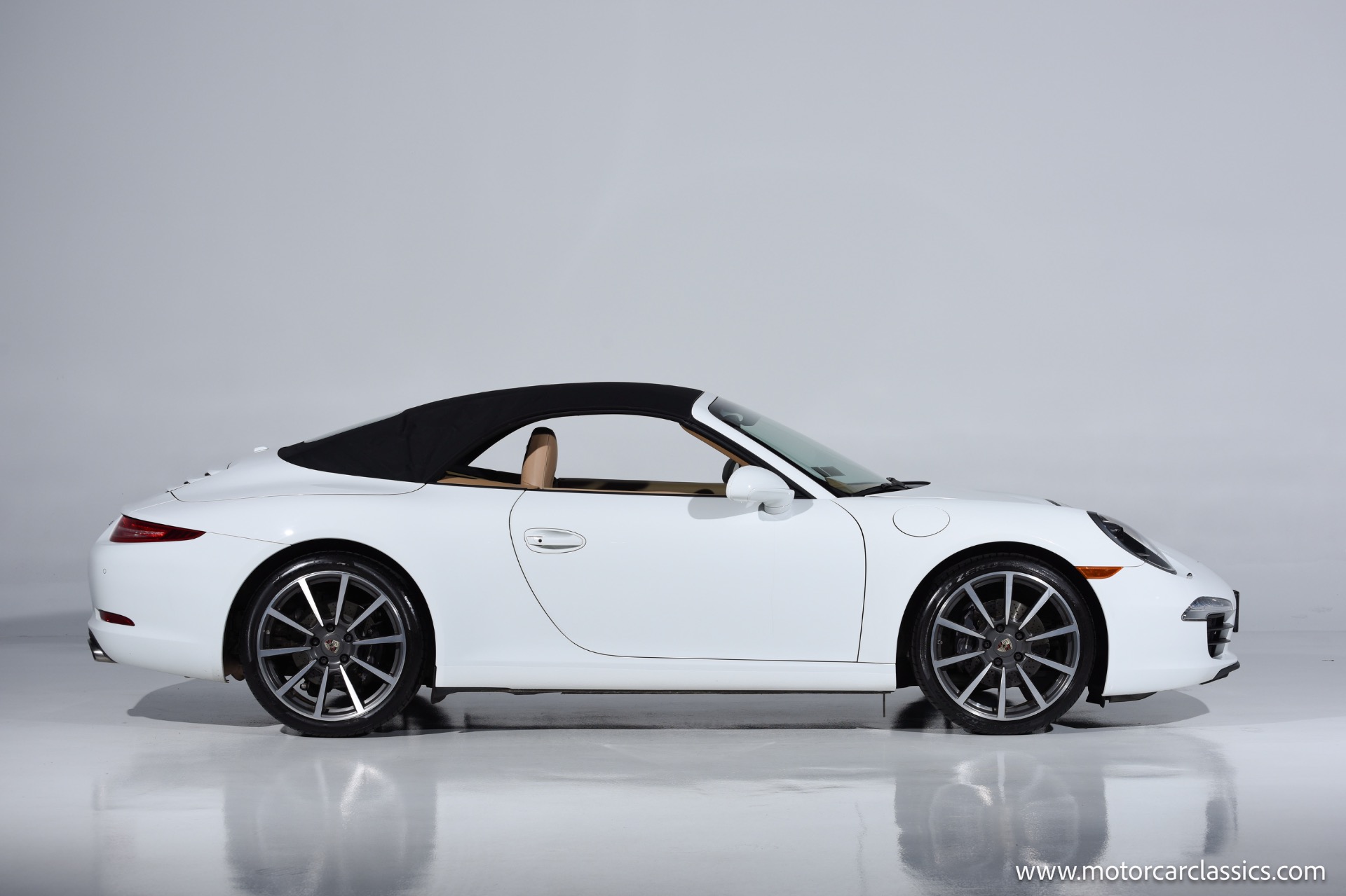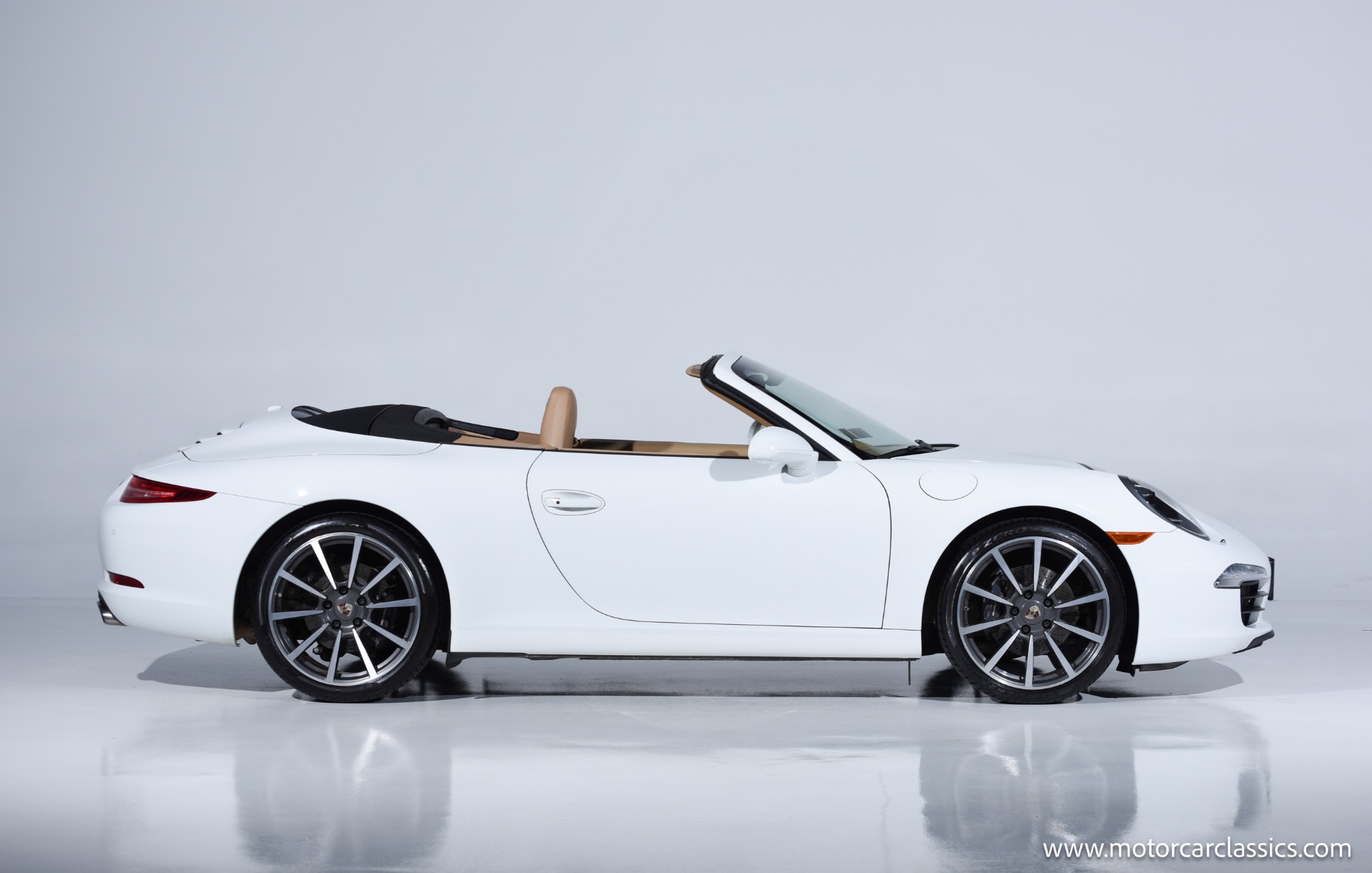 2013 Porsche 911 Carrera for sale! Motorcar Classics invites you to experience the pinnacle of German engineering with this stunning 2013 Porsche 911 Carrera Cabriolet. Finished in elegant White with a Black Cabriolet roof, this 911 combines timeless design with cutting-edge performance. The heart of this machine is a powerful 3.8-liter flat-six engine producing 400 horsepower, capable of propelling you from 0 to 60 mph in just 4.5 seconds.