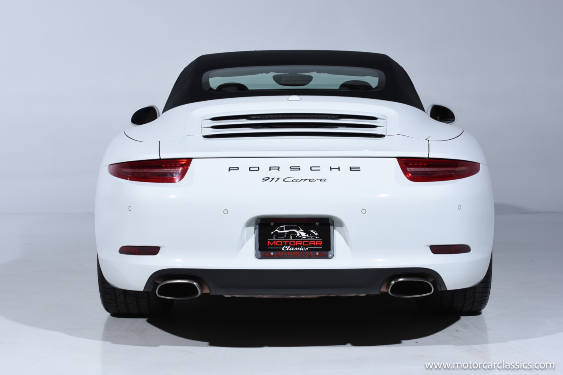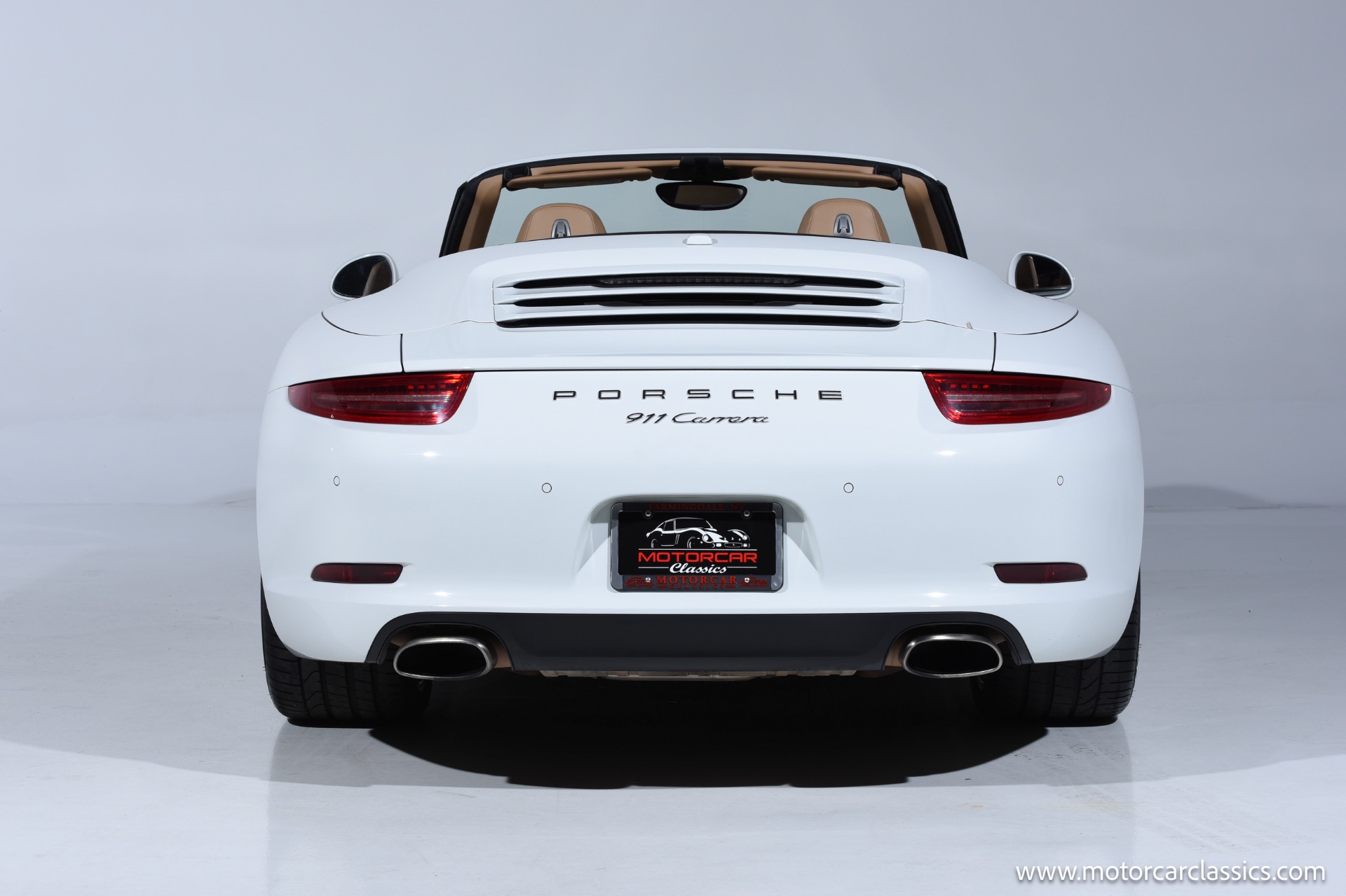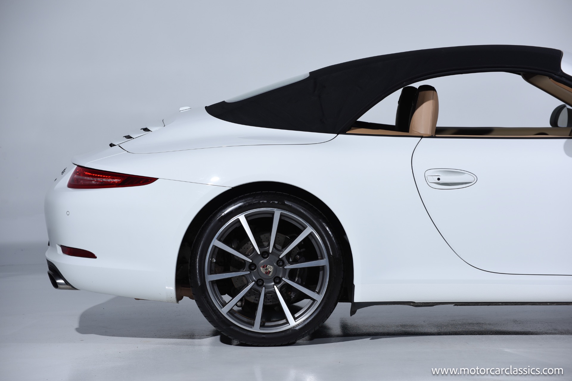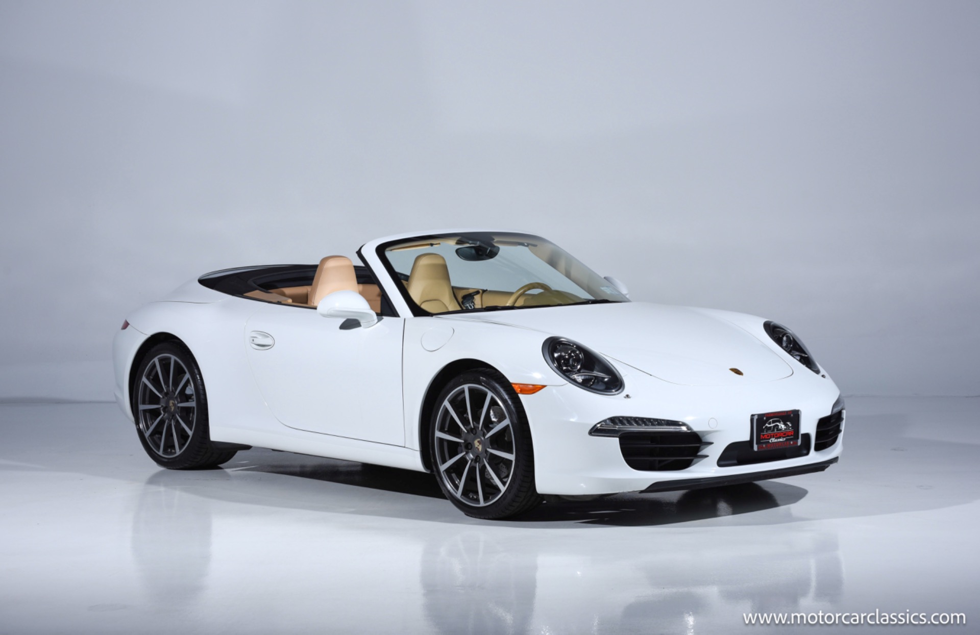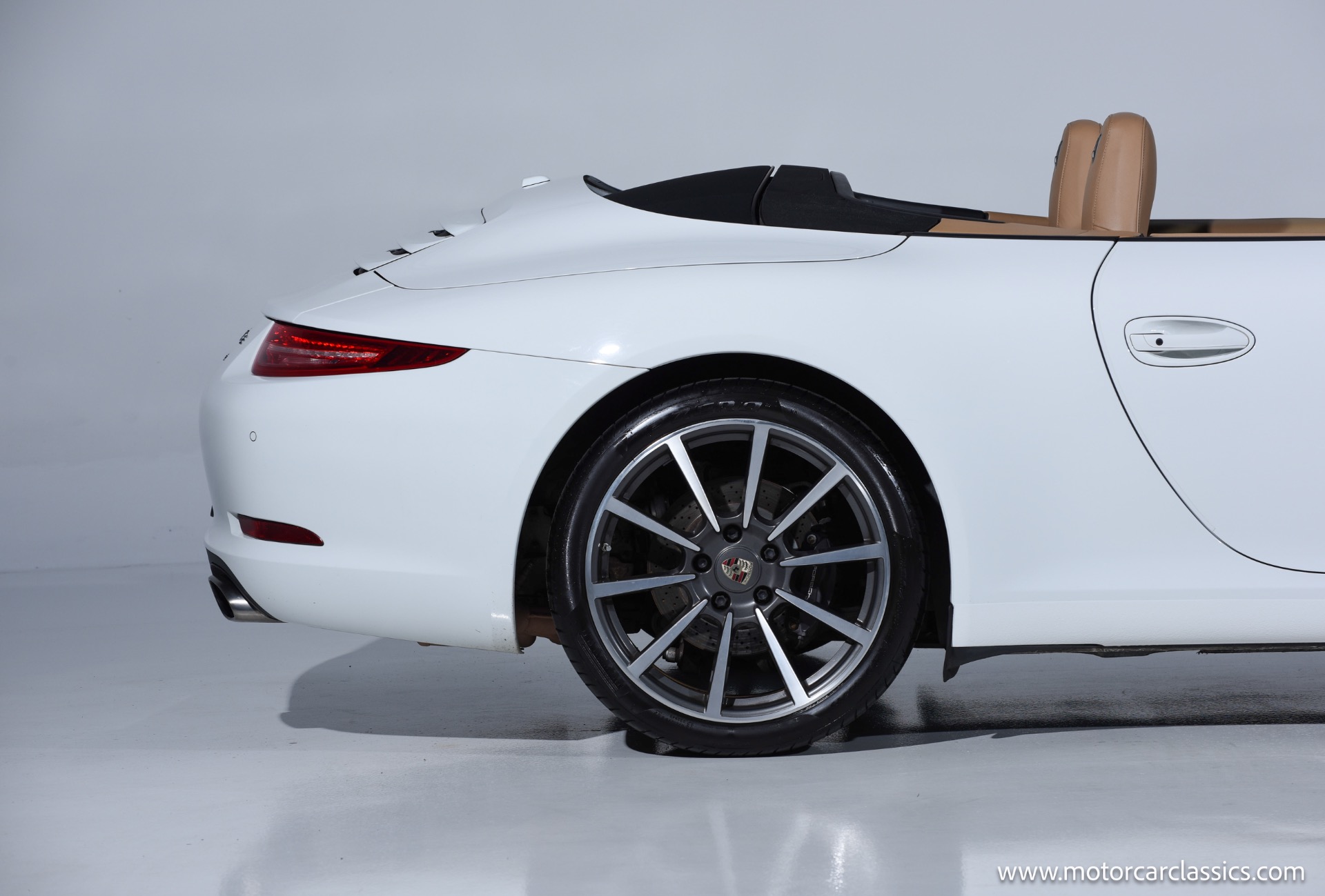 2013 Porsche 911 Carrera for sale! Motorcar Classics invites you to experience the pinnacle of German engineering with this stunning 2013 Porsche 911 Carrera Cabriolet. Finished in elegant White with a Black Cabriolet roof, this 911 combines timeless design with cutting-edge performance. The heart of this machine is a powerful 3.8-liter flat-six engine producing 400 horsepower, capable of propelling you from 0 to 60 mph in just 4.5 seconds.