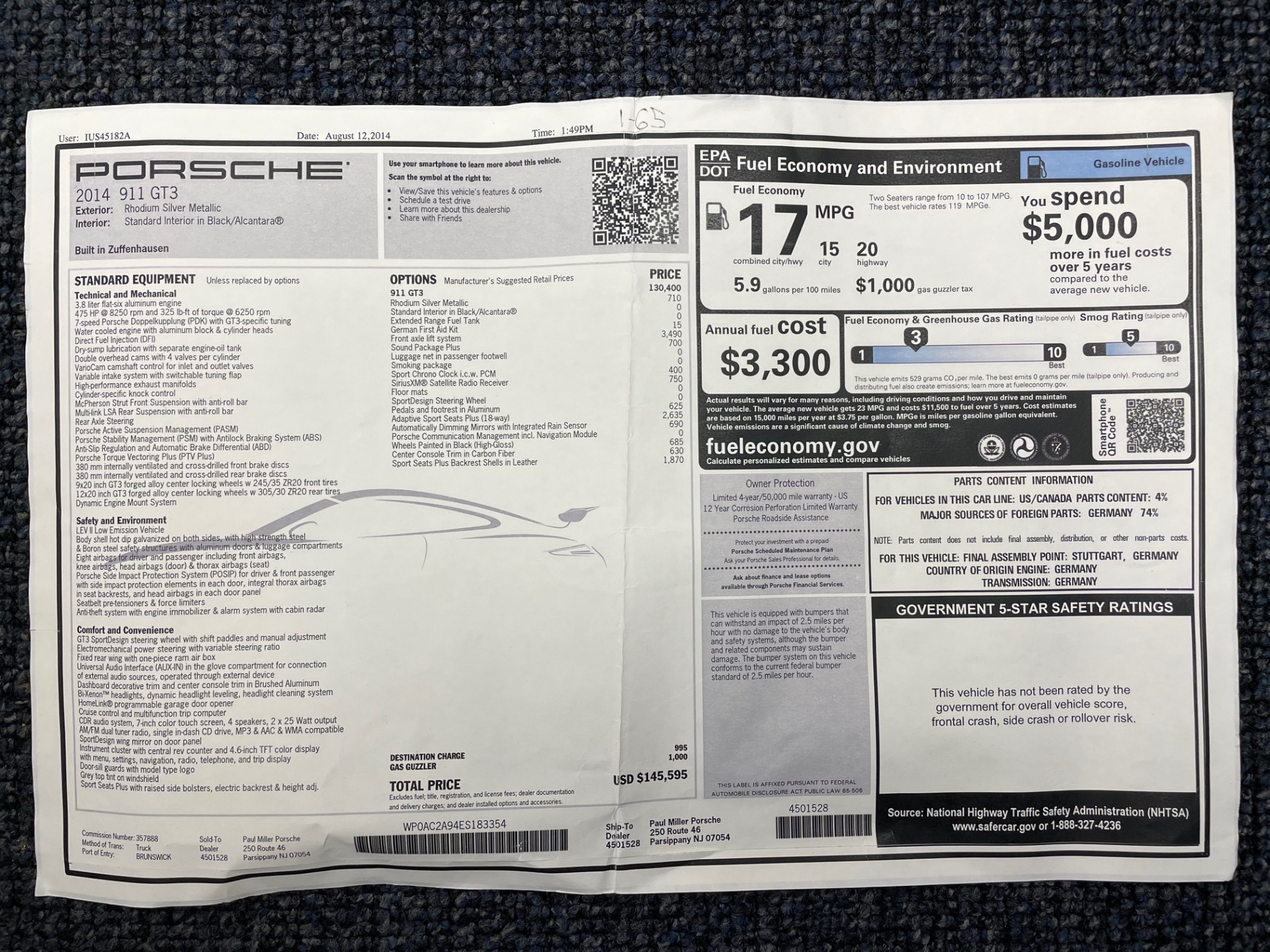 | VIN: | WP0AC2A94ES183354 |