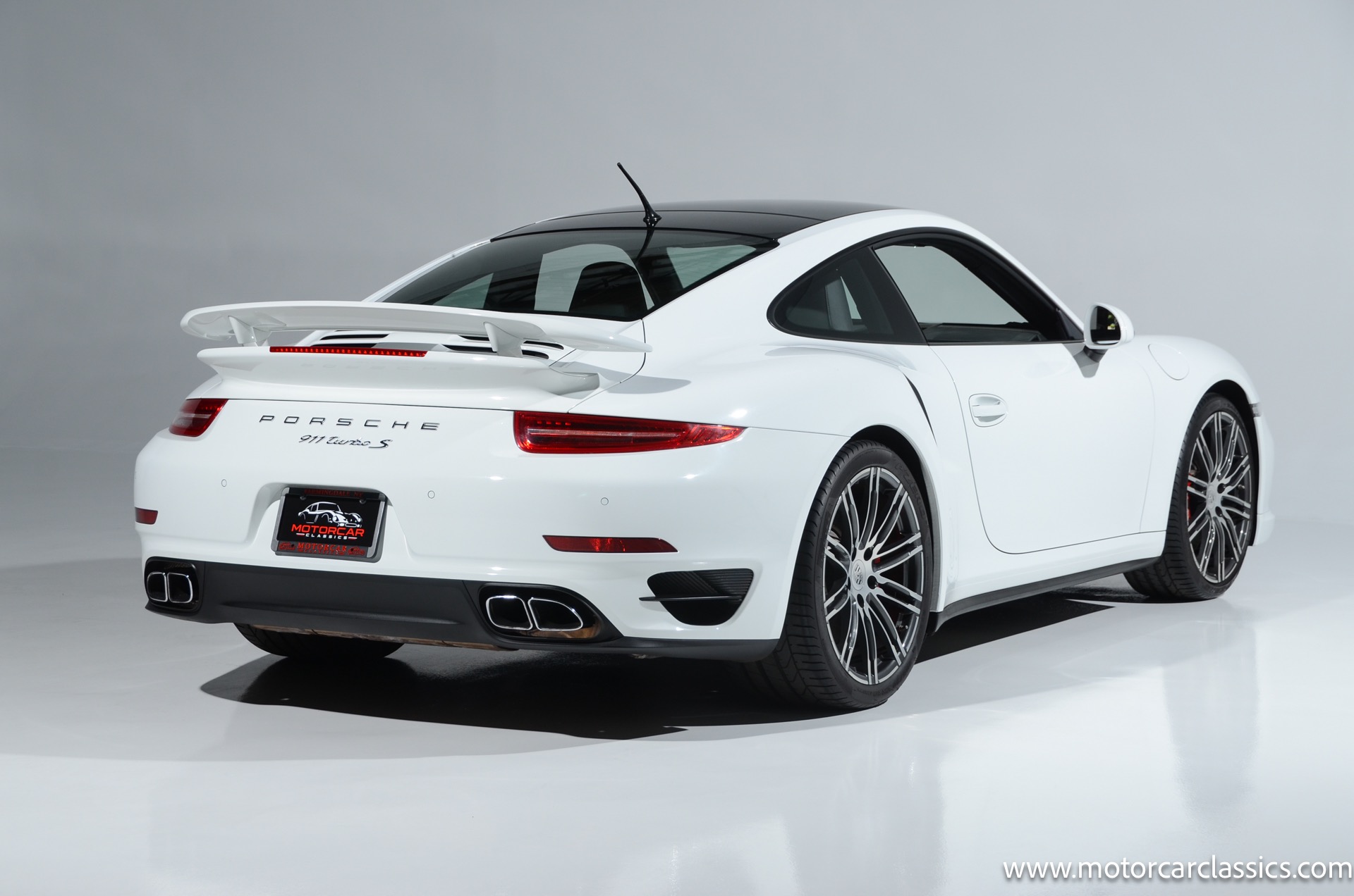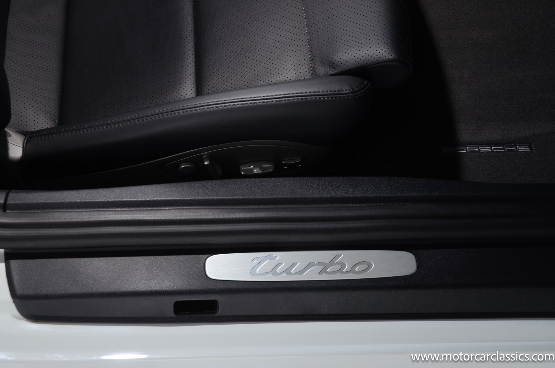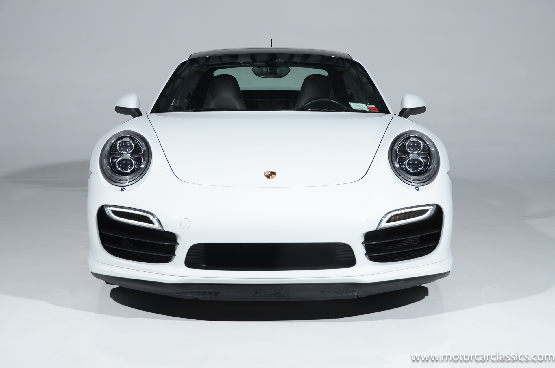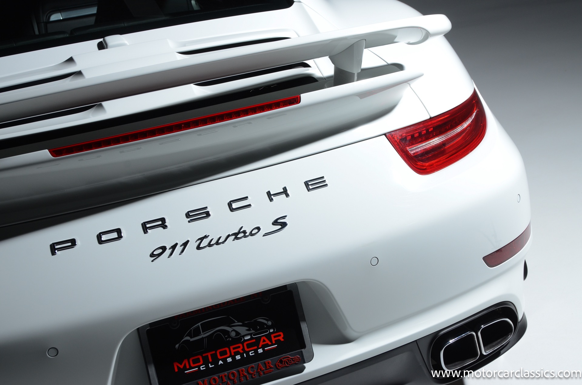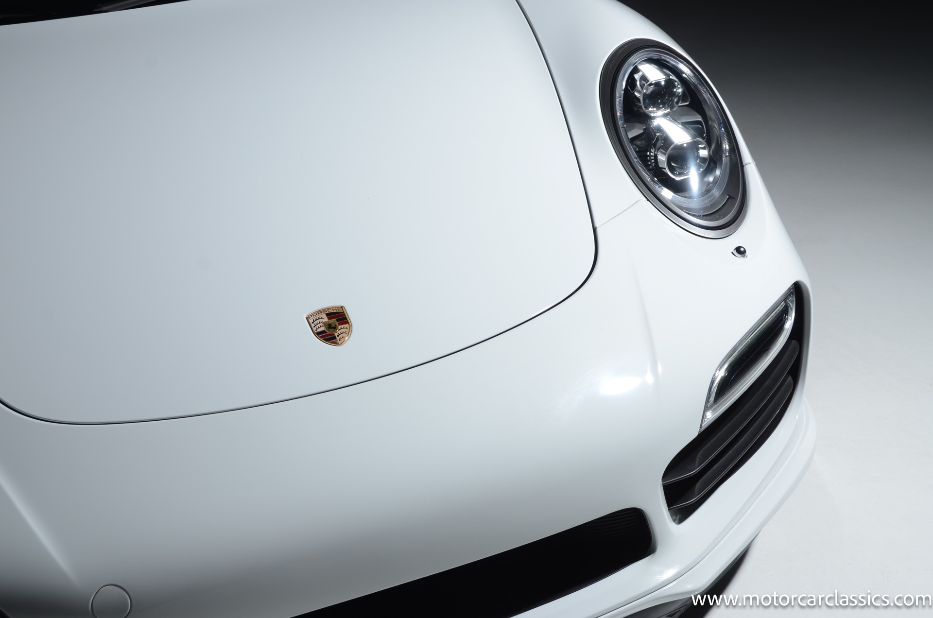 2014 Porsche 911 Turbo for sale! Motorcar Classics is proud to present this stunning 2014 Porsche 911 Turbo. It is a two-owner car that has been meticulously dealer-serviced and has covered just about 38K miles. With an MSRP of $157,715.00, this 2014 Turbo features a striking White exterior paired with a sophisticated Black leather interior. The car is equipped with Full LED headlights, including the Porsche Dynamic Light System Plus (PDLS +), which ensures superior illumination and adaptive lighting functionality. Inside, the cabin is adorned with premium Black leather and features the Ornamental Porsche Crest on the headrests, adding a touch of exclusivity. The Electric Slide/Tilt Sunroof in Glass allows natural light to enhance the driving experience. Performance-wise, the 911 Turbo is powered by a twin-turbo 3.8-liter flat-six engine that produces 520 horsepower and 487 lb-ft of torque, enabling it to accelerate from 0 to 60 mph in just 3.2 seconds. The inclusion of the Sport Chrono Package further enhances the car's dynamic capabilities, making it even more exhilarating to drive. This 2014 Porsche 911 Turbo offers an unmatched combination of performance, luxury, and advanced technology, making it a true masterpiece for the discerning automotive enthusiast.