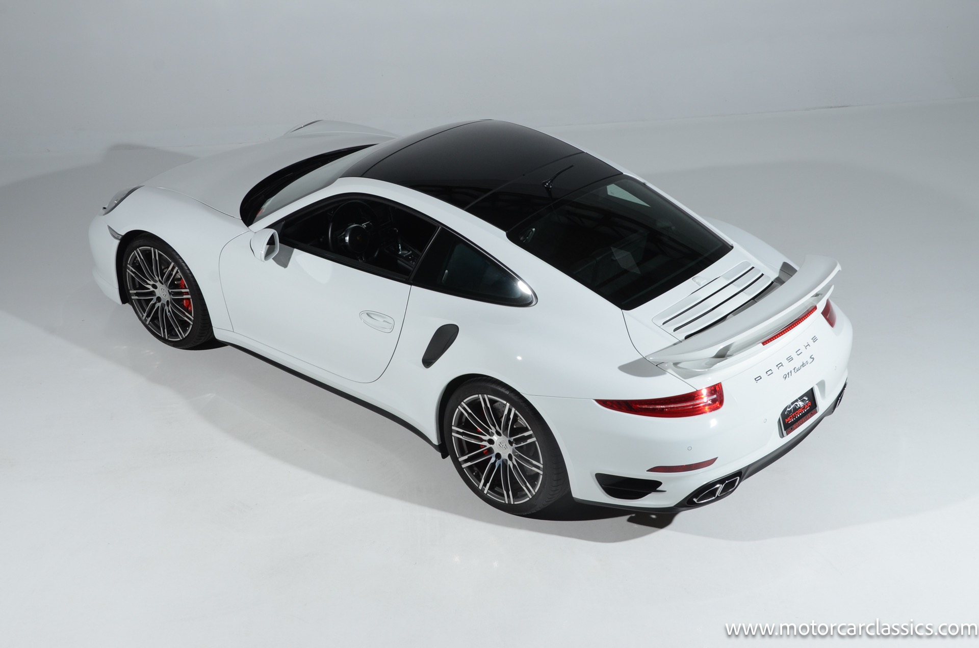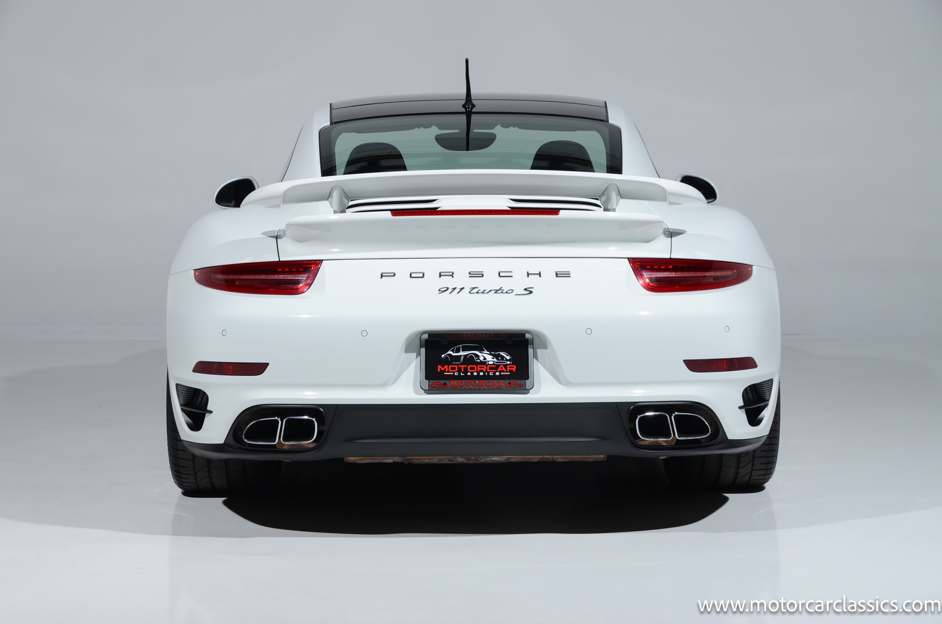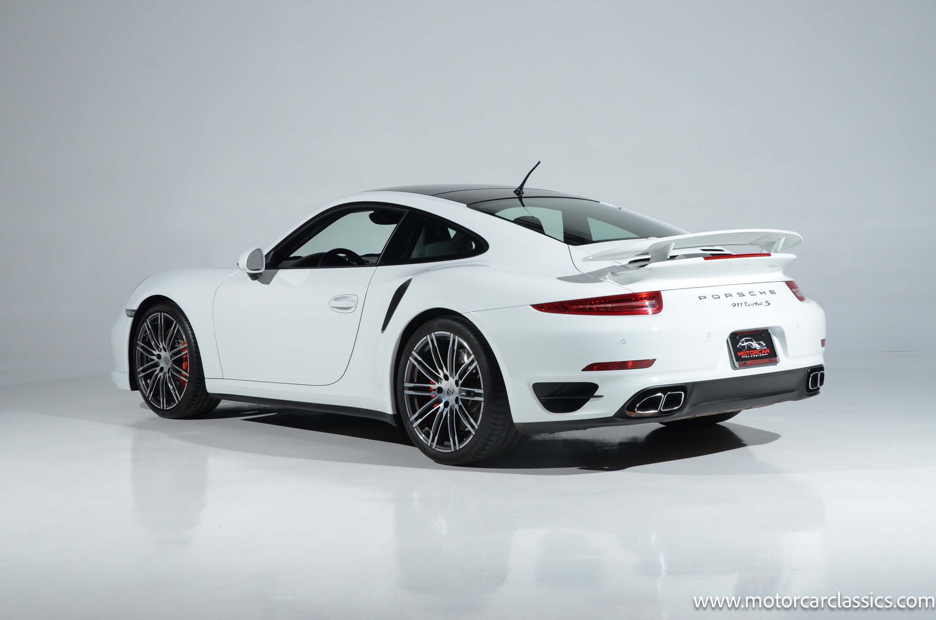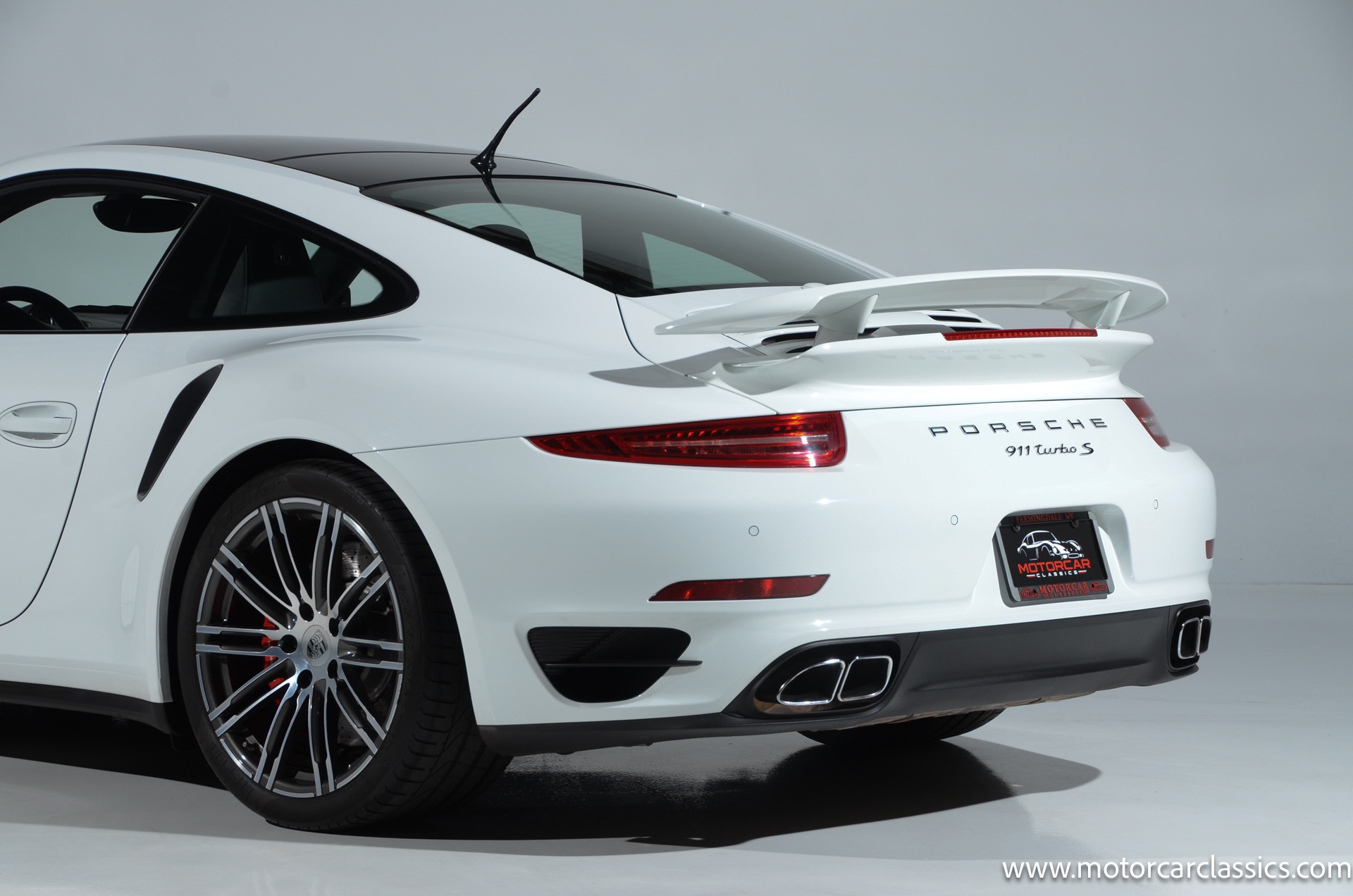 2014 Porsche 911 Turbo for sale! Motorcar Classics is proud to present this stunning 2014 Porsche 911 Turbo. It is a two-owner car that has been meticulously dealer-serviced and has covered just about 38K miles. With an MSRP of $157,715.00, this 2014 Turbo features a striking White exterior paired with a sophisticated Black leather interior. The car is equipped with Full LED headlights, including the Porsche Dynamic Light System Plus (PDLS +), which ensures superior illumination and adaptive lighting functionality. Inside, the cabin is adorned with premium Black leather and features the Ornamental Porsche Crest on the headrests, adding a touch of exclusivity. The Electric Slide/Tilt Sunroof in Glass allows natural light to enhance the driving experience. Performance-wise, the 911 Turbo is powered by a twin-turbo 3.8-liter flat-six engine that produces 520 horsepower and 487 lb-ft of torque, enabling it to accelerate from 0 to 60 mph in just 3.2 seconds. The inclusion of the Sport Chrono Package further enhances the car's dynamic capabilities, making it even more exhilarating to drive. This 2014 Porsche 911 Turbo offers an unmatched combination of performance, luxury, and advanced technology, making it a true masterpiece for the discerning automotive enthusiast.