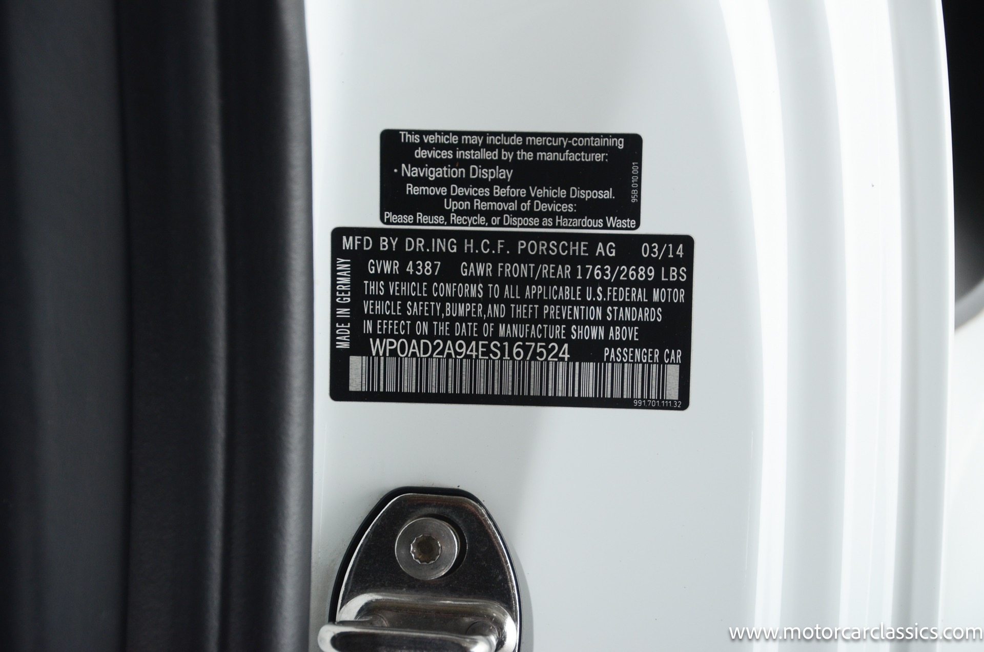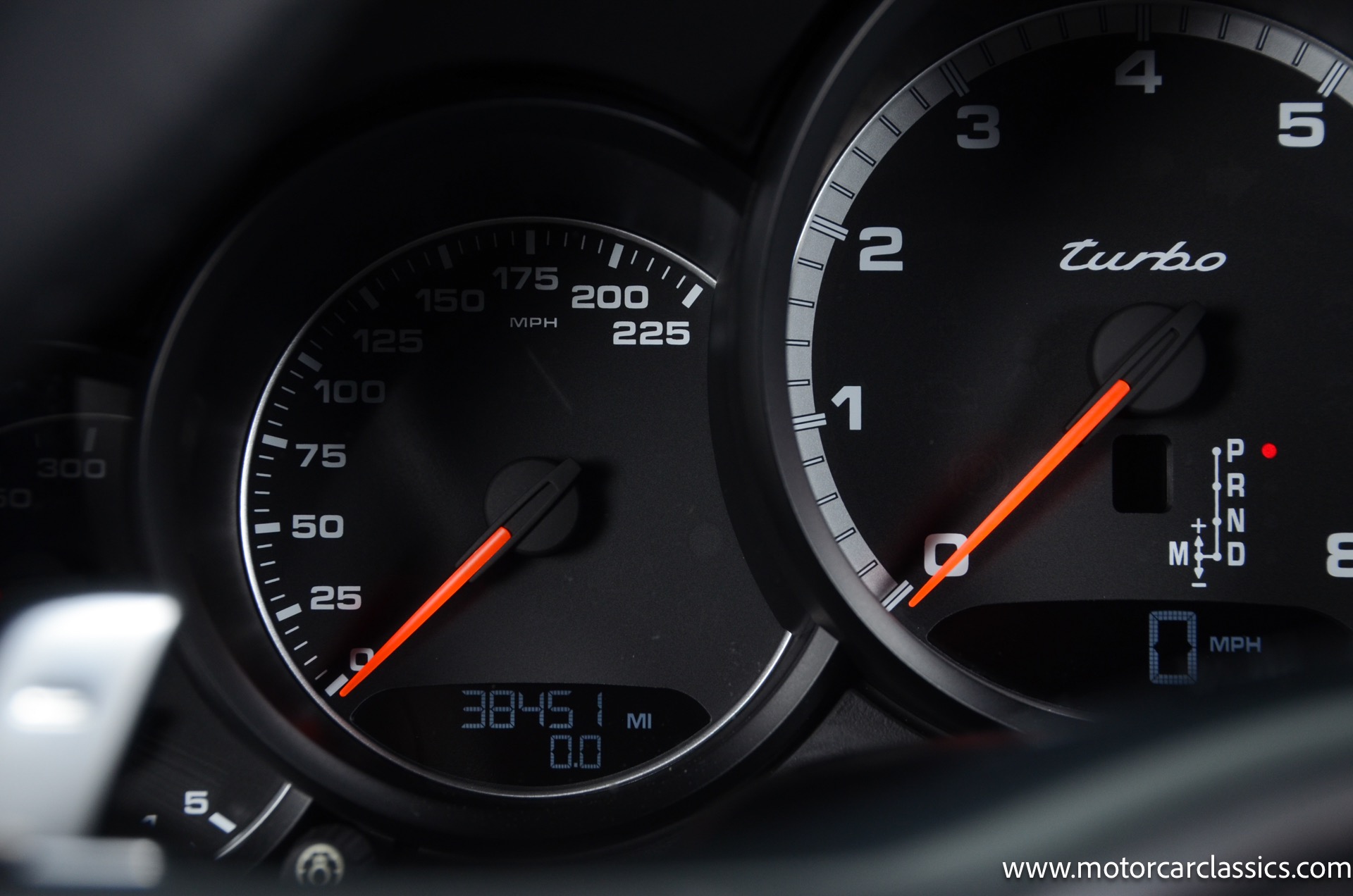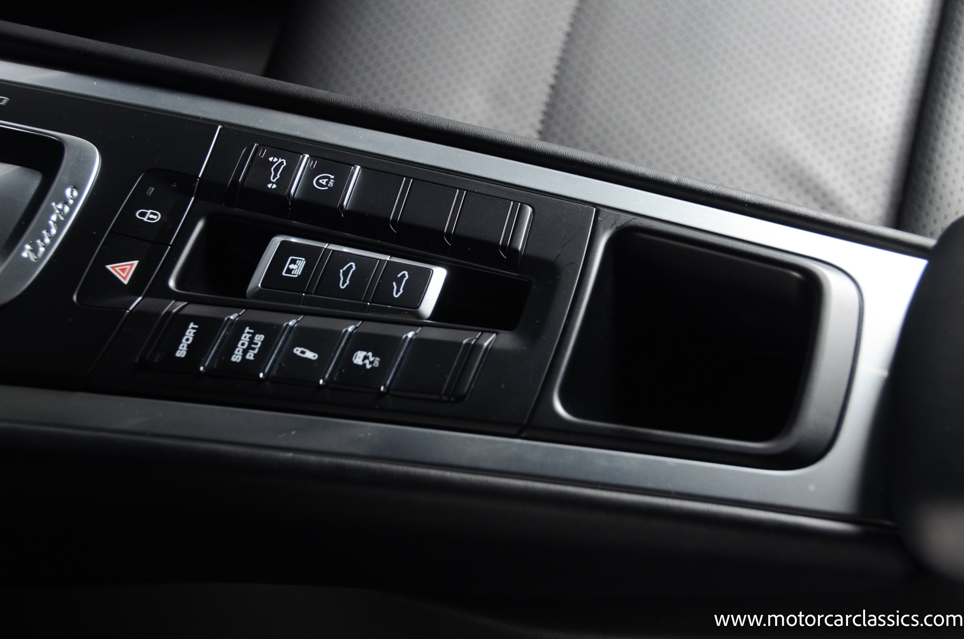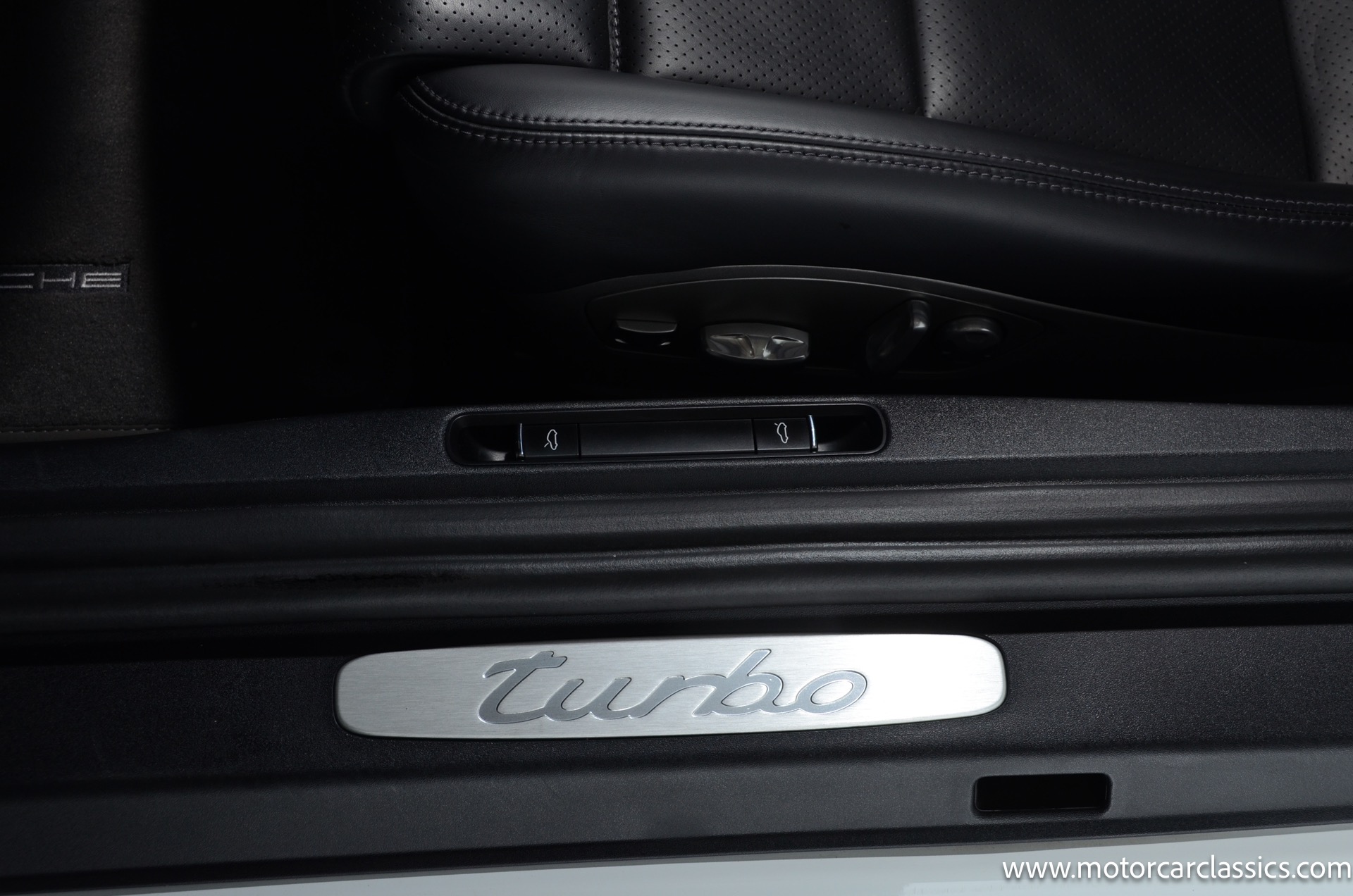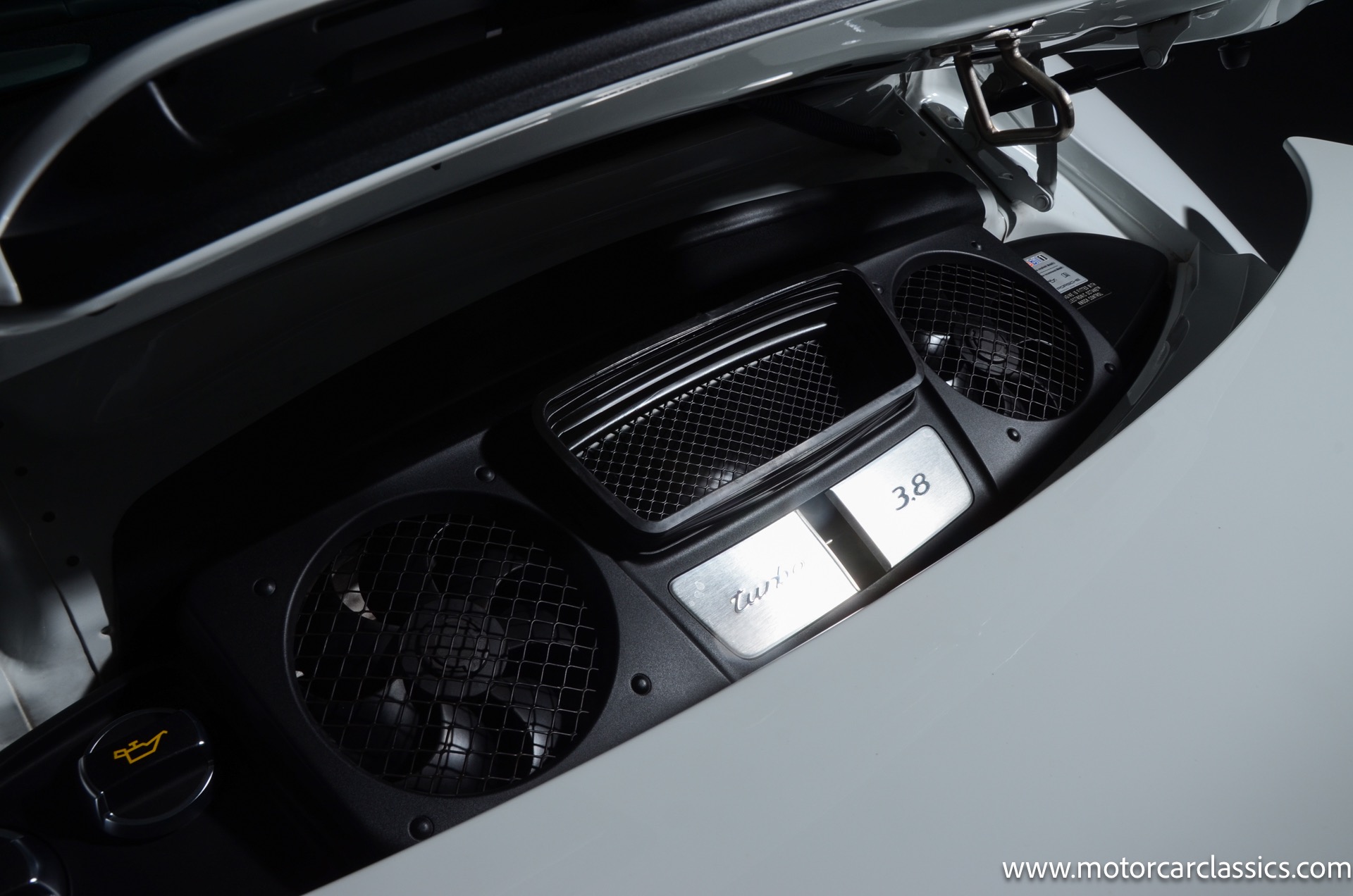 2014 Porsche 911 Turbo for sale! Motorcar Classics is proud to present this stunning 2014 Porsche 911 Turbo. It is a two-owner car that has been meticulously dealer-serviced and has covered just about 38K miles. With an MSRP of $157,715.00, this 2014 Turbo features a striking White exterior paired with a sophisticated Black leather interior. The car is equipped with Full LED headlights, including the Porsche Dynamic Light System Plus (PDLS +), which ensures superior illumination and adaptive lighting functionality. Inside, the cabin is adorned with premium Black leather and features the Ornamental Porsche Crest on the headrests, adding a touch of exclusivity. The Electric Slide/Tilt Sunroof in Glass allows natural light to enhance the driving experience. Performance-wise, the 911 Turbo is powered by a twin-turbo 3.8-liter flat-six engine that produces 520 horsepower and 487 lb-ft of torque, enabling it to accelerate from 0 to 60 mph in just 3.2 seconds. The inclusion of the Sport Chrono Package further enhances the car's dynamic capabilities, making it even more exhilarating to drive. This 2014 Porsche 911 Turbo offers an unmatched combination of performance, luxury, and advanced technology, making it a true masterpiece for the discerning automotive enthusiast.