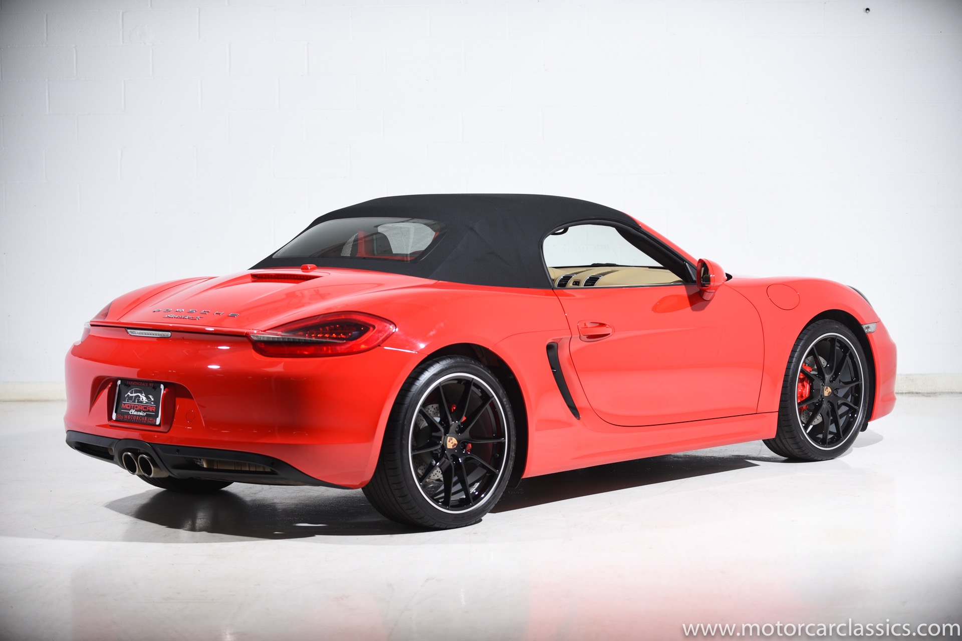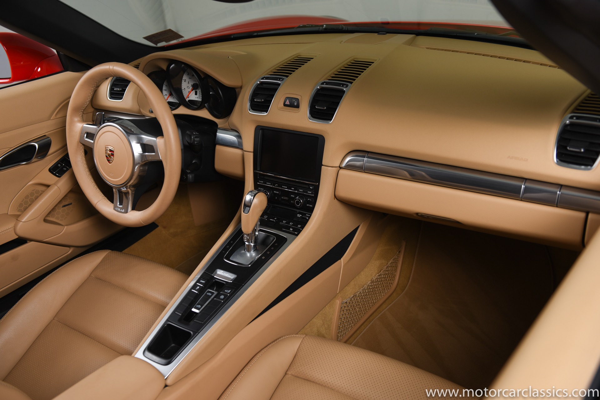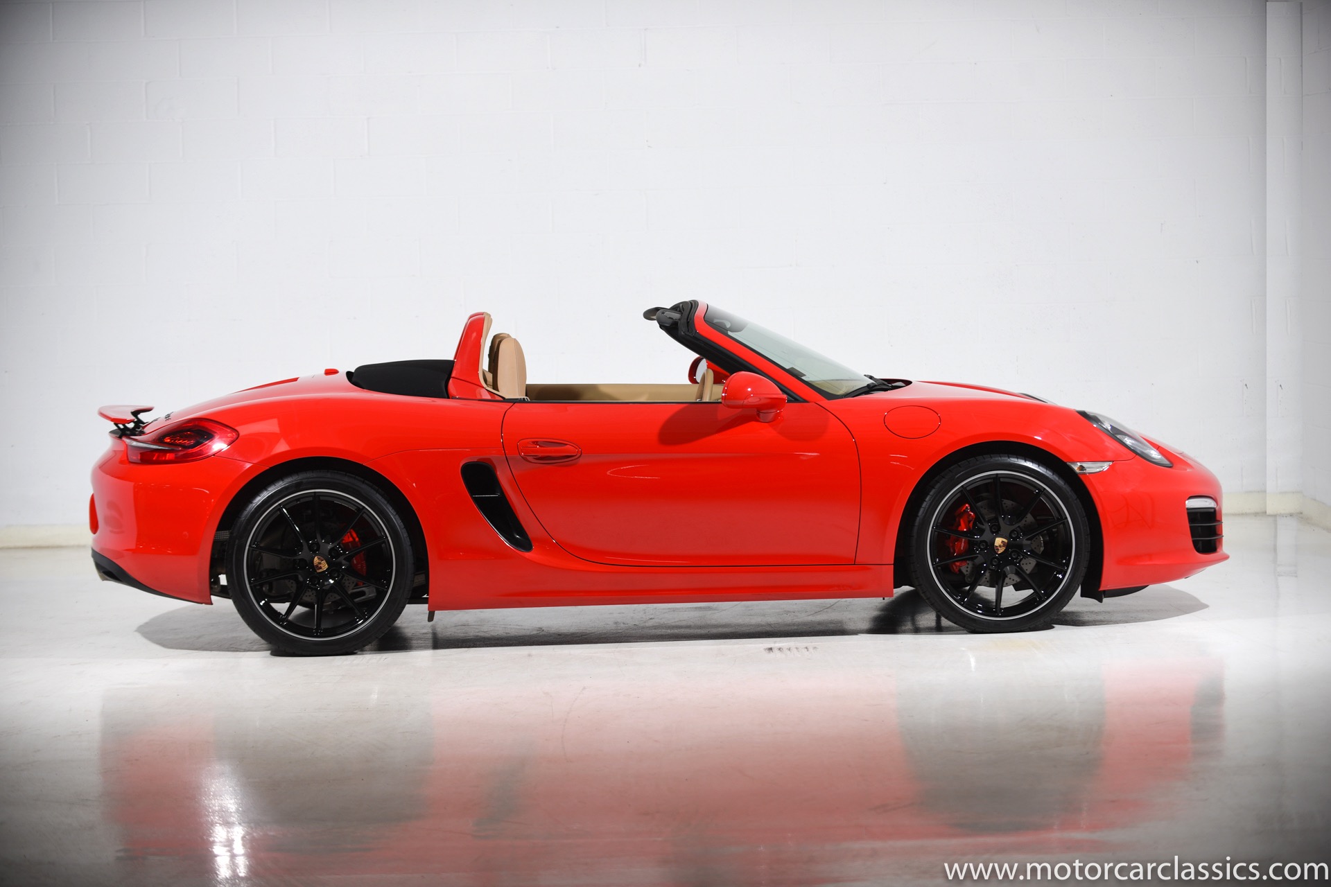 2014 Porsche Boxster S for sale. Motorcar Classics is proud to present this stunning 2014 Porsche Boxster S Roadster featured in Guards Red with Luxor Beige interior and black convertible top. This Boxster S has been cherished from new by two owners and has covered just 8,043 miles. It is unblemished in all respects and a joy to drive with its user-friendly PDK transmission. This Porsche had an MSRP of $77,150 and is loaded with factory options including: (250) Porsche Doppelkupplung (PDK), (423) 20" Carrera S Wheels, (546) Supplemental safety roll-bar painted