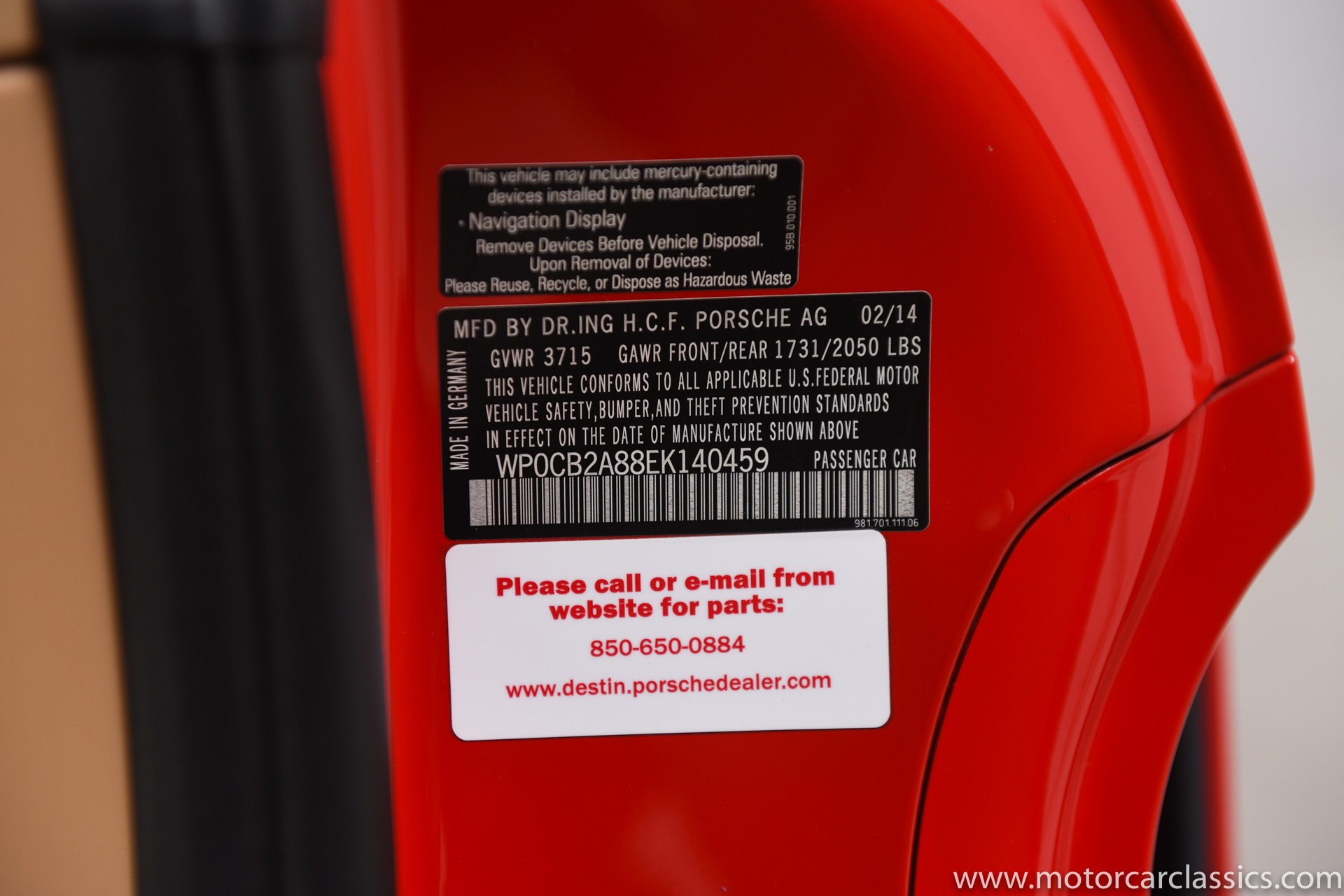 | VIN: | WP0CB2A88EK140459 |