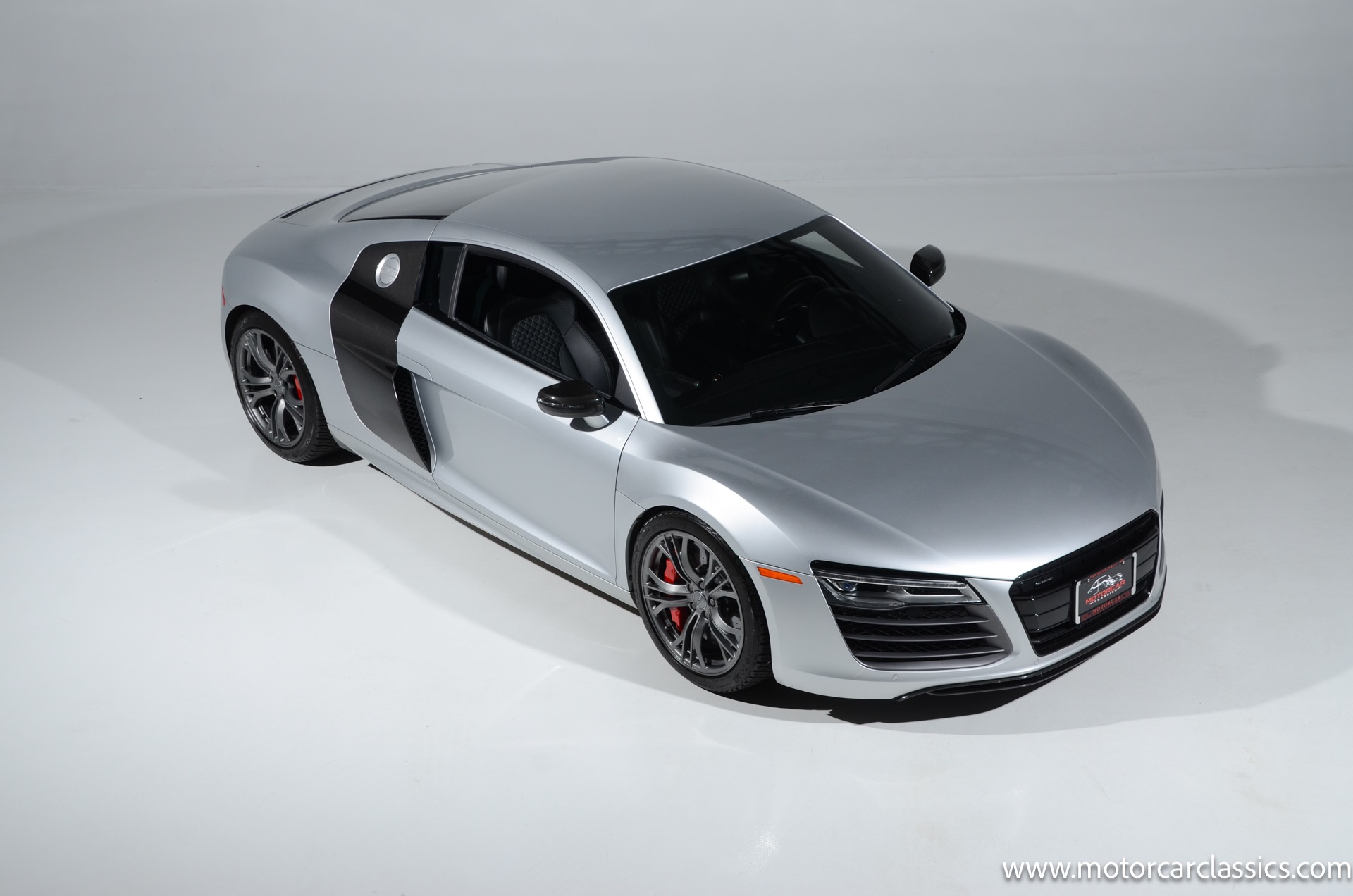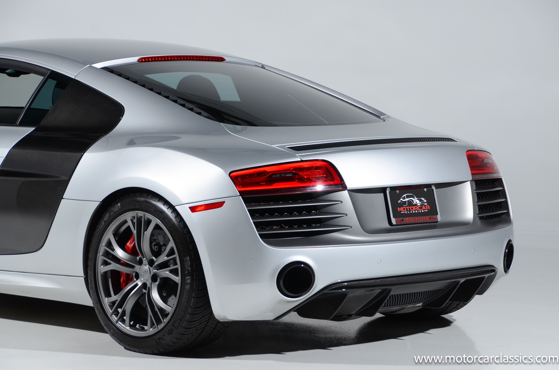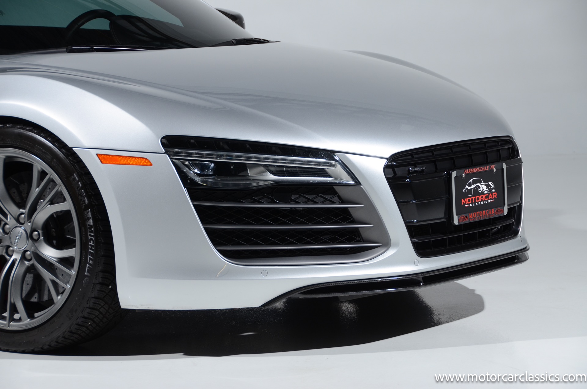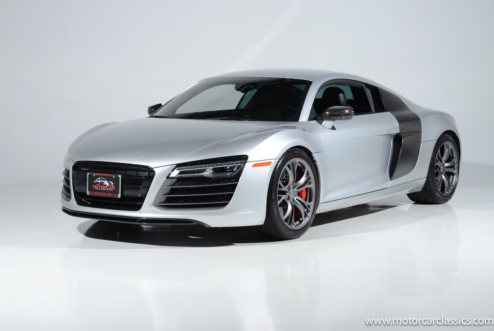 2015 Audi R8 Quattro V10+ for sale! Motorcar Classics is pleased to offer this stunning Audi R8 presented in Ice Silver Metallic with Black and Dark Silver interior. 4-owner car from new with Clean Carfax! 37,162 miles. 10 cylinder 7-speed A/T transmission. Options include: V10+ coilover, carbon fiber engine bay, 4 wheel ceramic disc brakes, diamond stitched full leather package, Bang & Olufsen sound system, Backup camera, outboard front lap and shoulder belts, front and rear parking sensors, Alcantara interior trim, Alcantara headliner, carbon fiber door blades, aluminum gear shifter, tilt and telescoping steering wheel, front cupholder, sport leather/aluminum steering wheel, heated seats, Bluetooth, LED brakelights, daytime running lights, chrome grille, speed sensitive rain detecting wipers, light tinted glass, carbon fiber power mirrors, carbon fiber bodyside insert, body colored door handles, body colored rear bumper, body colored front bumper, dual stainless steel sport exhaust with black powdercoated tailpipe and more! $200,000 MSRP!