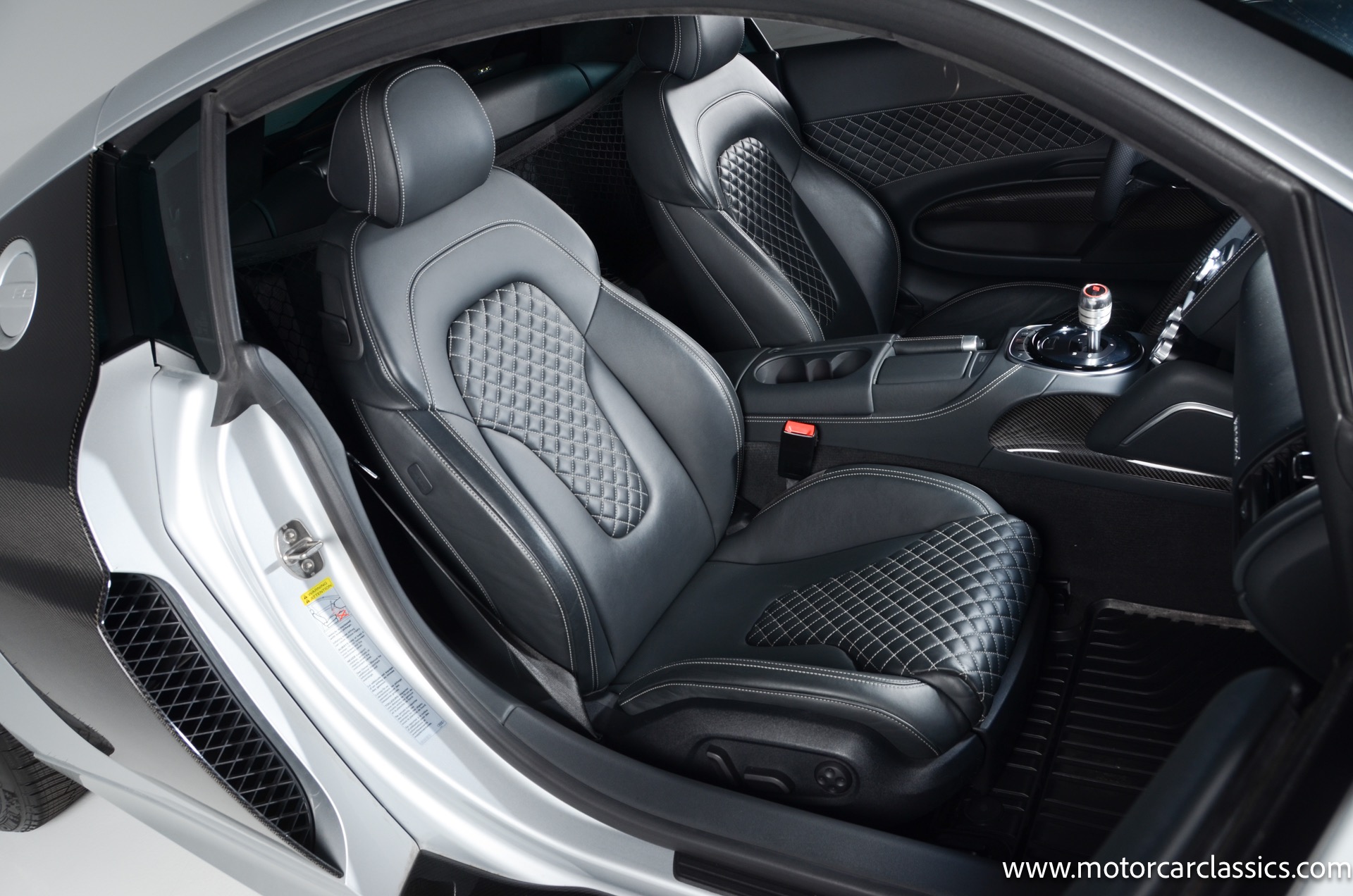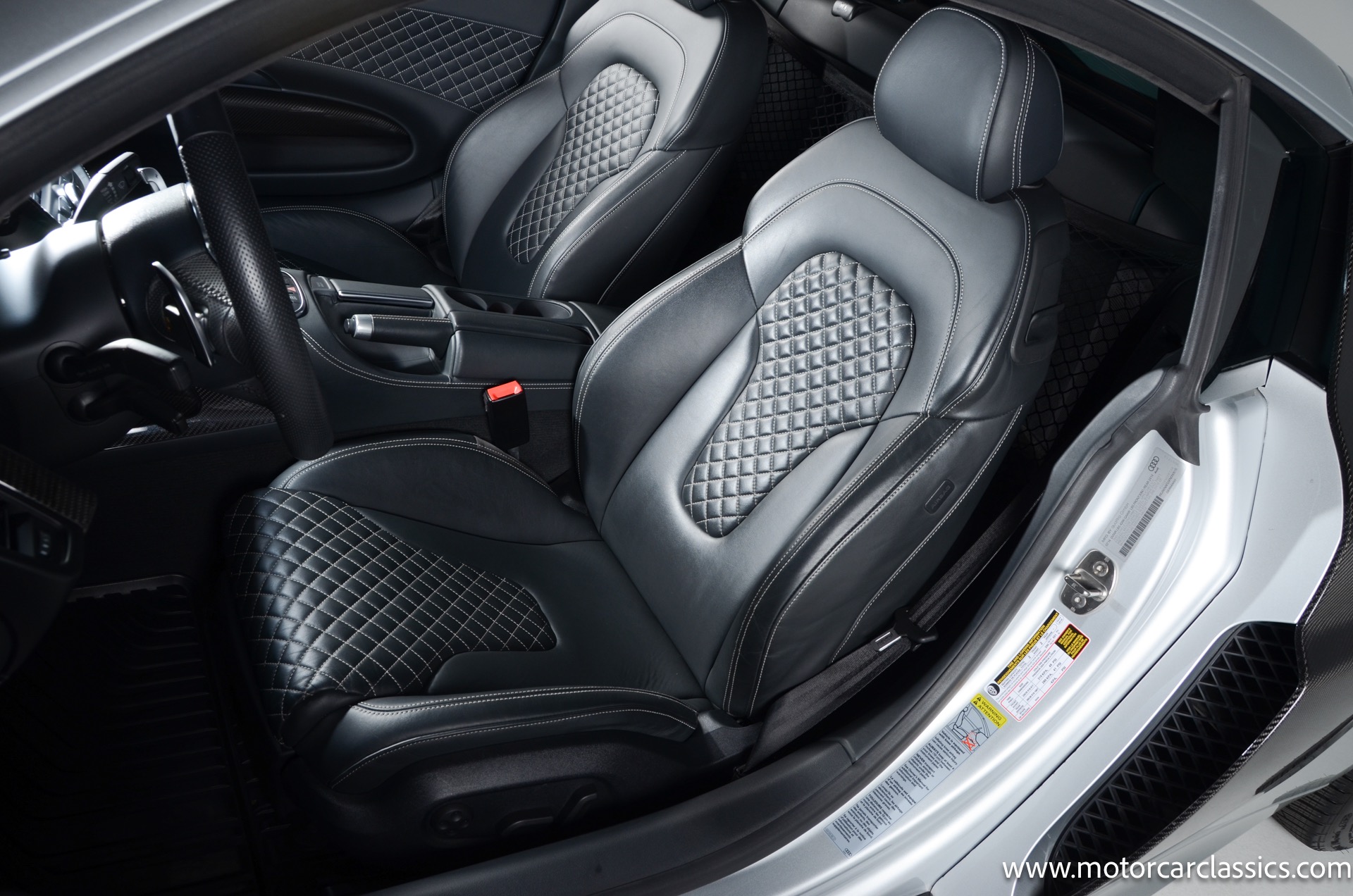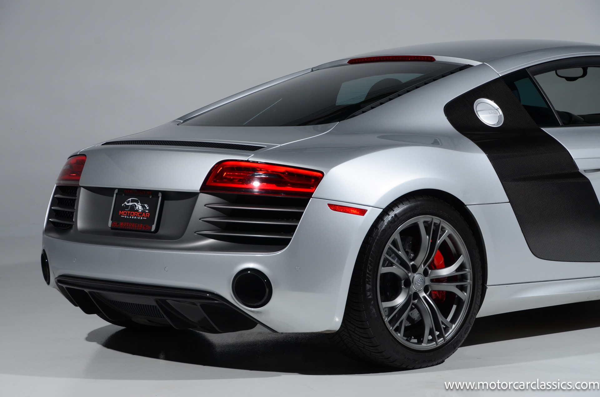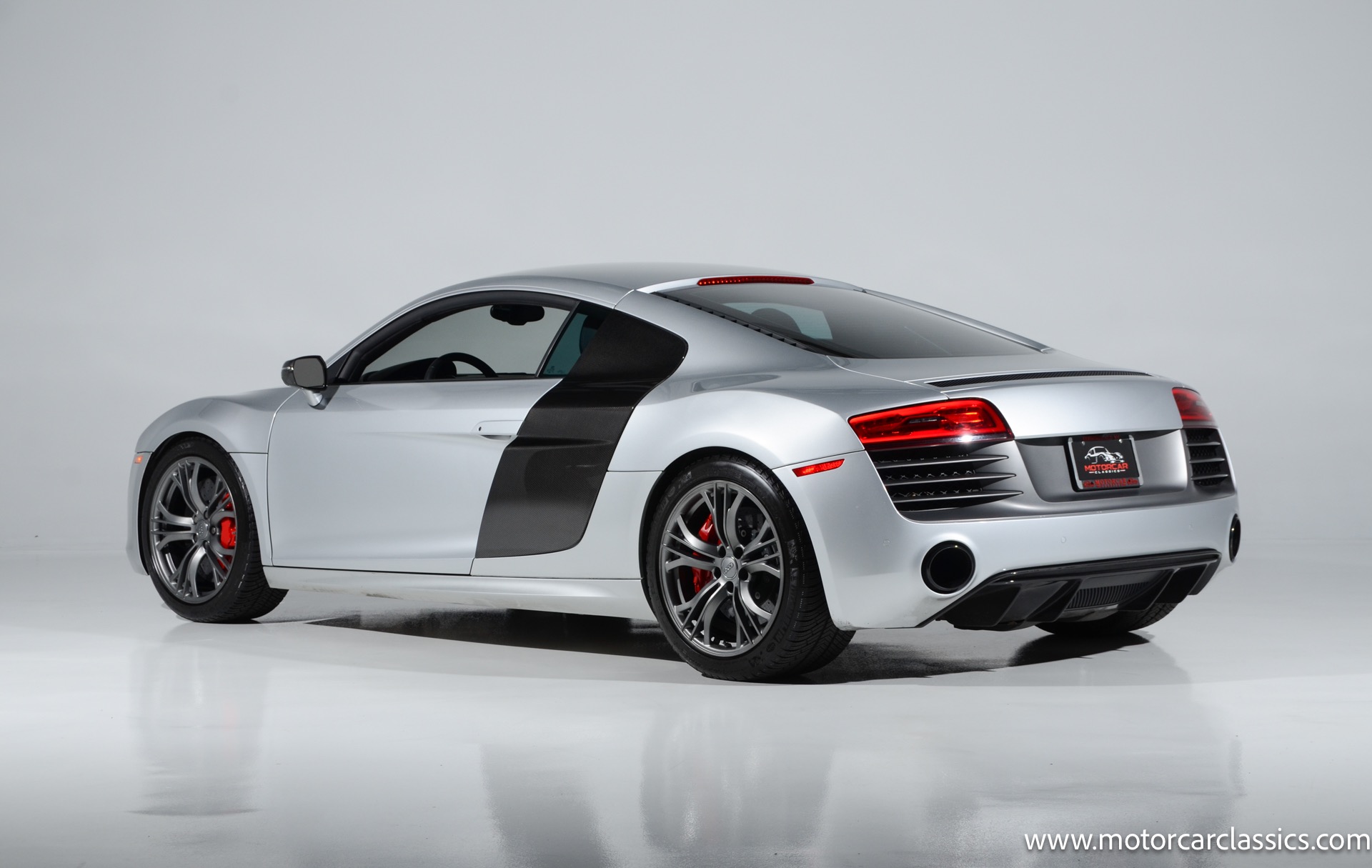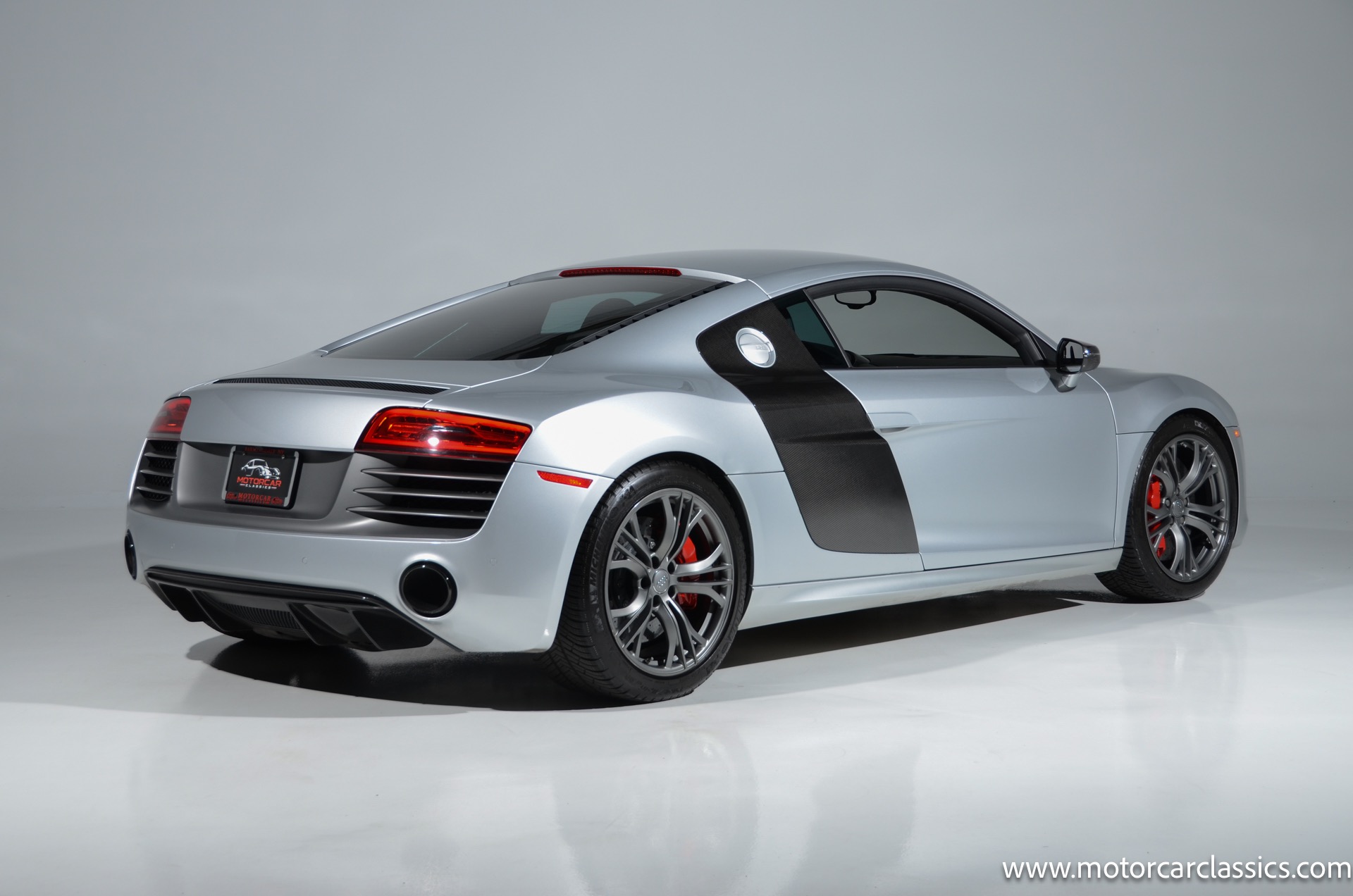 2015 Audi R8 Quattro V10+ for sale! Motorcar Classics is pleased to offer this stunning Audi R8 presented in Ice Silver Metallic with Black and Dark Silver interior. 4-owner car from new with Clean Carfax! 37,162 miles. 10 cylinder 7-speed A/T transmission. Options include: V10+ coilover, carbon fiber engine bay, 4 wheel ceramic disc brakes, diamond stitched full leather package, Bang & Olufsen sound system, Backup camera, outboard front lap and shoulder belts, front and rear parking sensors, Alcantara interior trim, Alcantara headliner, carbon fiber door blades, aluminum gear shifter, tilt and telescoping steering wheel, front cupholder, sport leather/aluminum steering wheel, heated seats, Bluetooth, LED brakelights, daytime running lights, chrome grille, speed sensitive rain detecting wipers, light tinted glass, carbon fiber power mirrors, carbon fiber bodyside insert, body colored door handles, body colored rear bumper, body colored front bumper, dual stainless steel sport exhaust with black powdercoated tailpipe and more! $200,000 MSRP!
