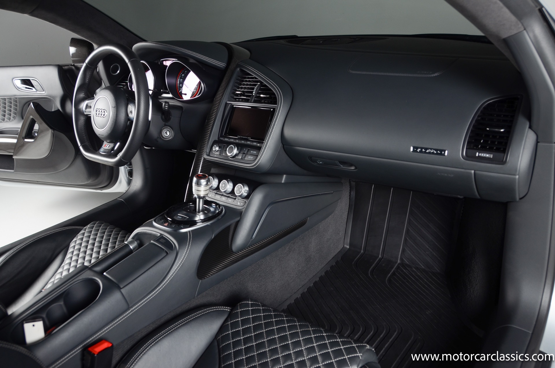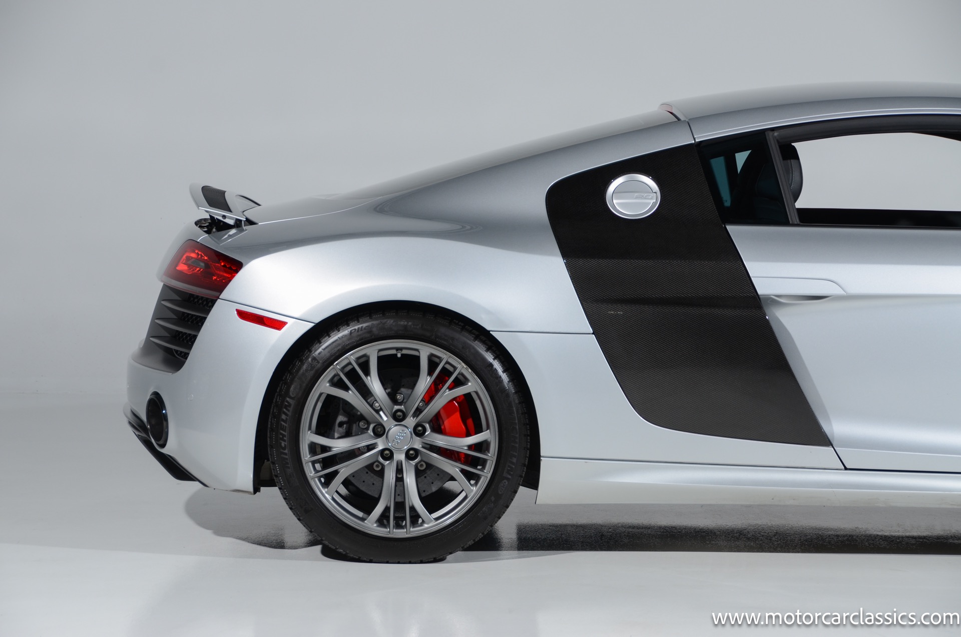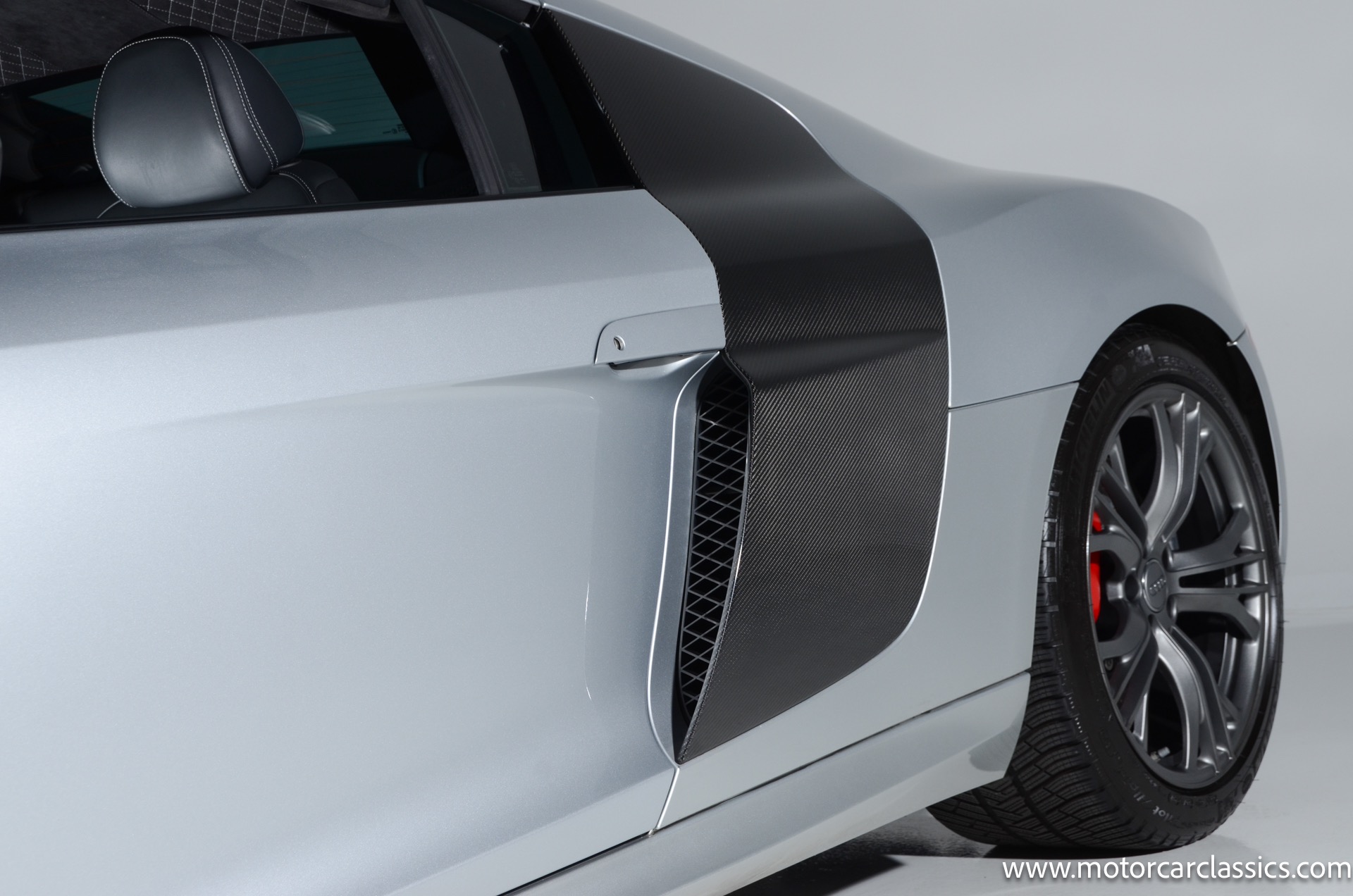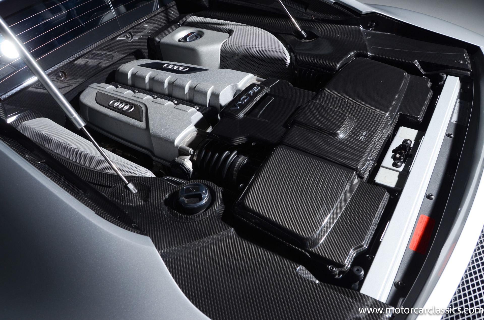 2015 Audi R8 Quattro V10+ for sale! Motorcar Classics is pleased to offer this stunning Audi R8 presented in Ice Silver Metallic with Black and Dark Silver interior. 4-owner car from new with Clean Carfax! 37,162 miles. 10 cylinder 7-speed A/T transmission. Options include: V10+ coilover, carbon fiber engine bay, 4 wheel ceramic disc brakes, diamond stitched full leather package, Bang & Olufsen sound system, Backup camera, outboard front lap and shoulder belts, front and rear parking sensors, Alcantara interior trim, Alcantara headliner, carbon fiber door blades, aluminum gear shifter, tilt and telescoping steering wheel, front cupholder, sport leather/aluminum steering wheel, heated seats, Bluetooth, LED brakelights, daytime running lights, chrome grille, speed sensitive rain detecting wipers, light tinted glass, carbon fiber power mirrors, carbon fiber bodyside insert, body colored door handles, body colored rear bumper, body colored front bumper, dual stainless steel sport exhaust with black powdercoated tailpipe and more! $200,000 MSRP!