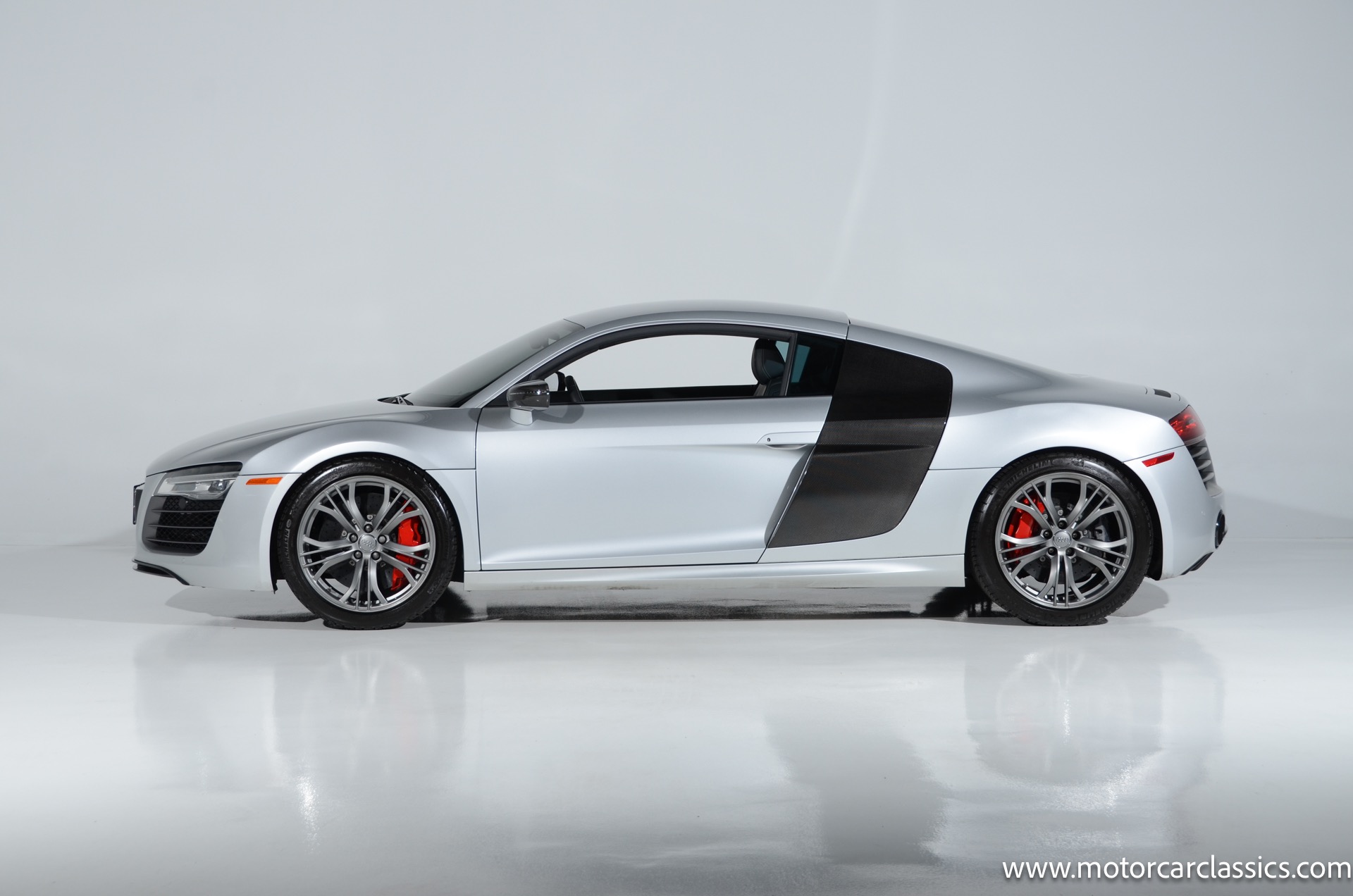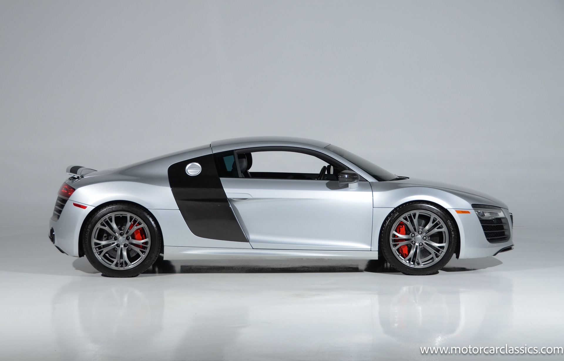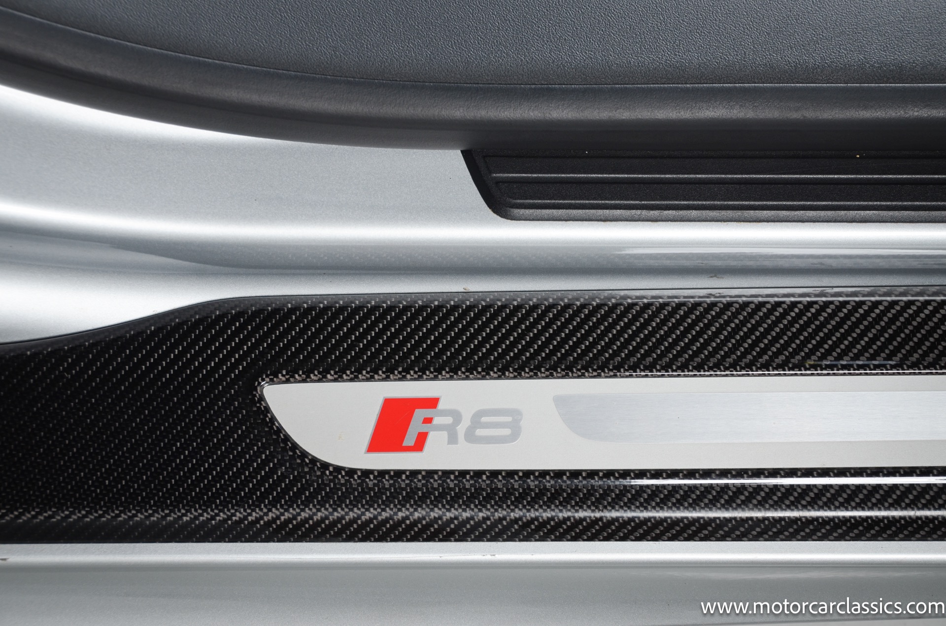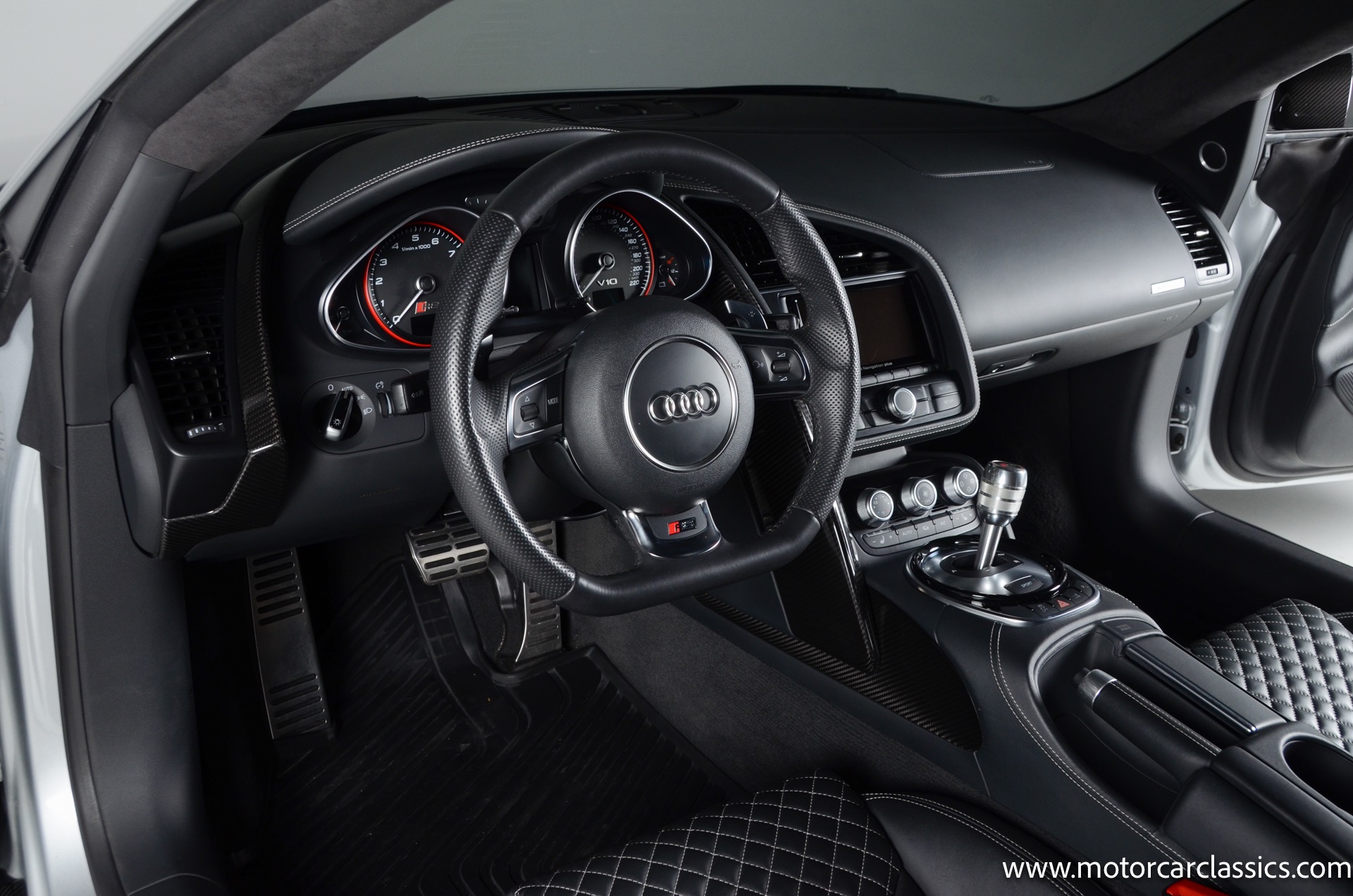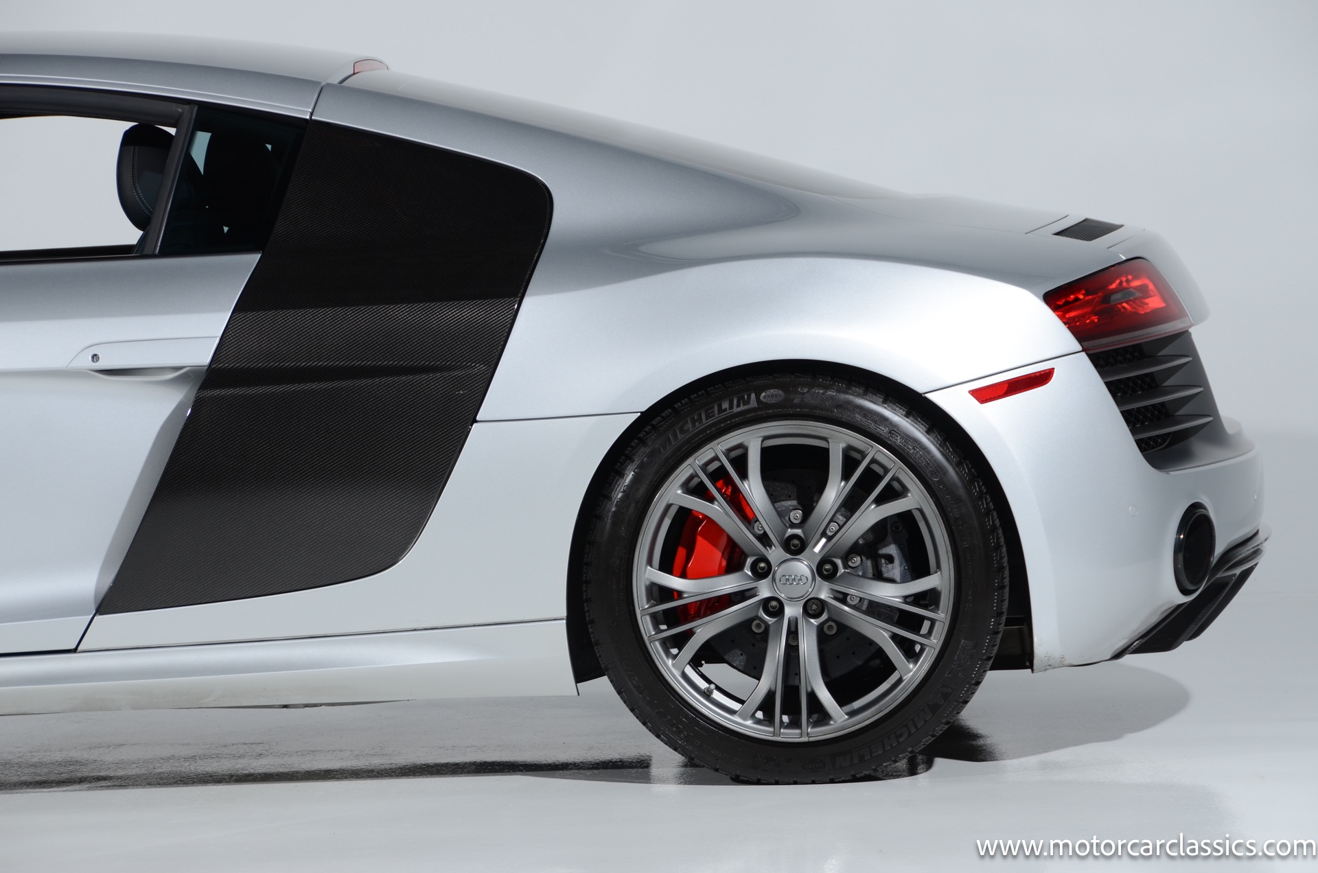 2015 Audi R8 Quattro V10+ for sale! Motorcar Classics is pleased to offer this stunning Audi R8 presented in Ice Silver Metallic with Black and Dark Silver interior. 4-owner car from new with Clean Carfax! 37,162 miles. 10 cylinder 7-speed A/T transmission. Options include: V10+ coilover, carbon fiber engine bay, 4 wheel ceramic disc brakes, diamond stitched full leather package, Bang & Olufsen sound system, Backup camera, outboard front lap and shoulder belts, front and rear parking sensors, Alcantara interior trim, Alcantara headliner, carbon fiber door blades, aluminum gear shifter, tilt and telescoping steering wheel, front cupholder, sport leather/aluminum steering wheel, heated seats, Bluetooth, LED brakelights, daytime running lights, chrome grille, speed sensitive rain detecting wipers, light tinted glass, carbon fiber power mirrors, carbon fiber bodyside insert, body colored door handles, body colored rear bumper, body colored front bumper, dual stainless steel sport exhaust with black powdercoated tailpipe and more! $200,000 MSRP!