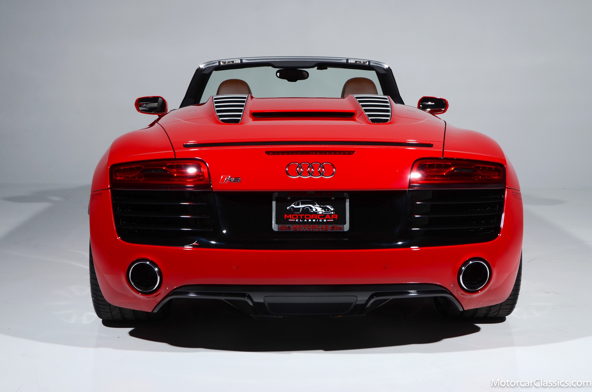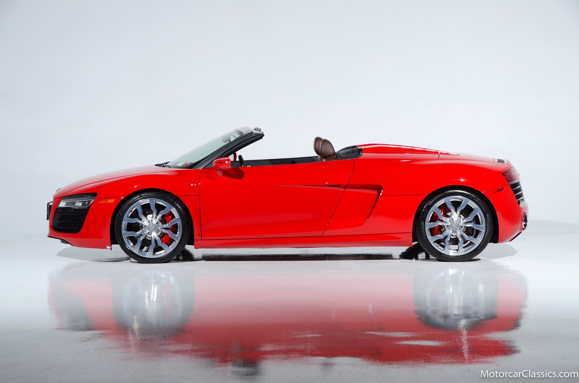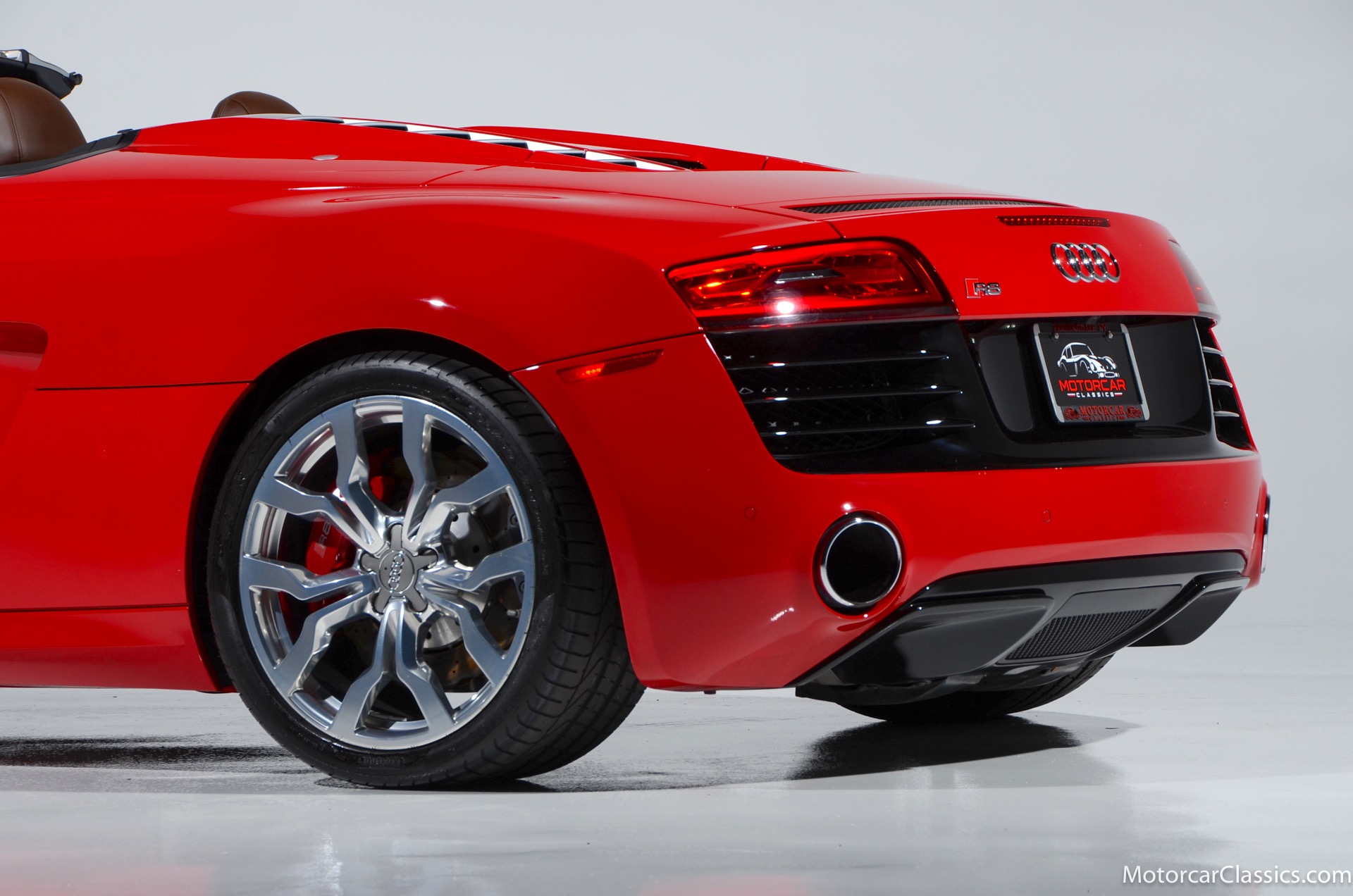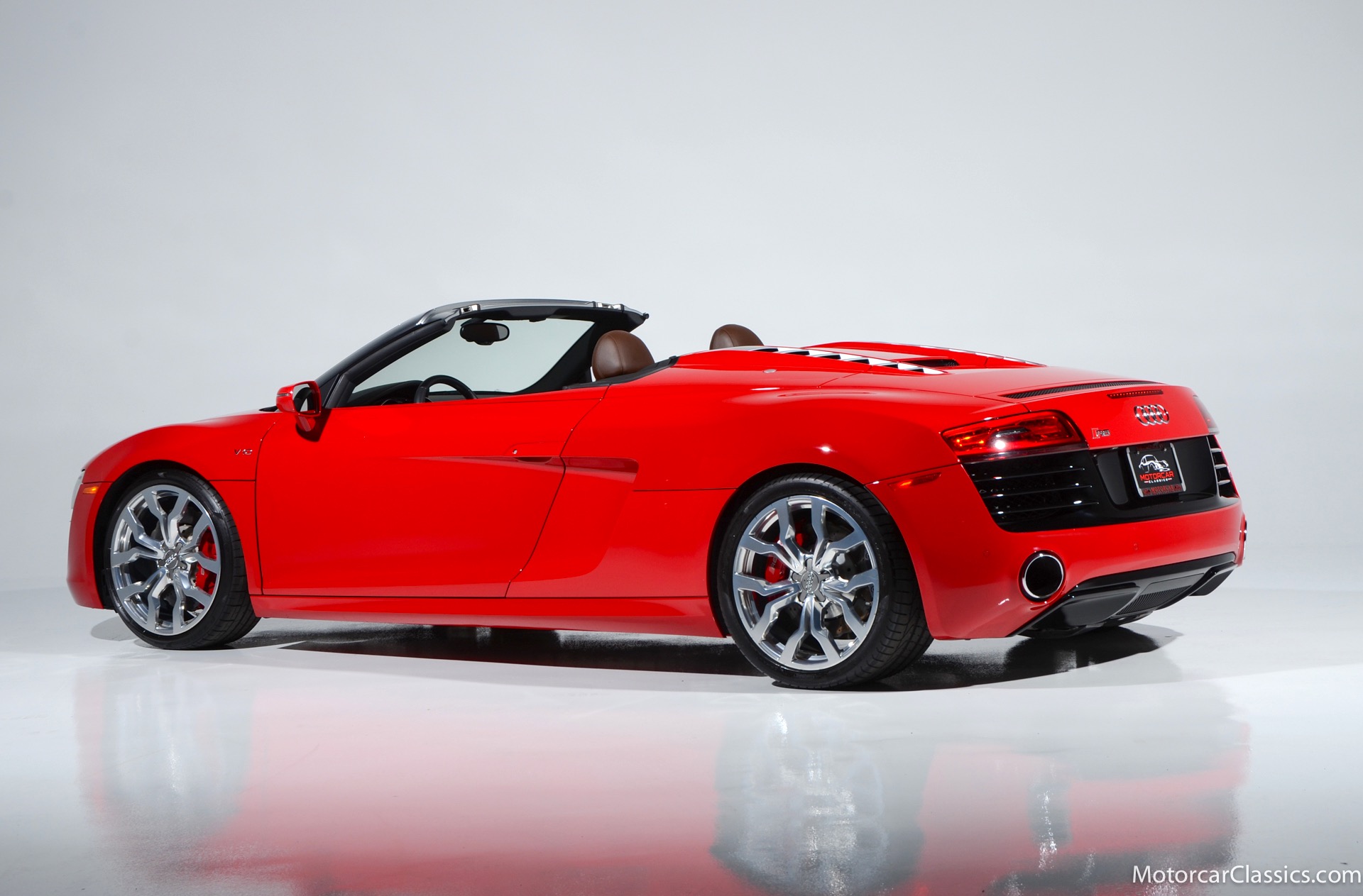 2015 Audi R8 for sale! Motorcar Classics is proud to present this stunning 2015 Audi R8 V10 Quattro Spyder featured in Brilliant Red with brown leather interior and back convertible top. The Audi R8 V10 boasts a 5.2-liter V10 that produces 525 hp and 391 lb-ft of torque. The V10 R8 has much genuine Italian ancestry, sharing the platform of the Lamborghini Gallardo. Featuring aluminum-intensive construction, with the engine located amidships and the all-wheel-drive system biased toward the rear, the R8 provides the kind of telepathic responsiveness one would expect from a smaller, more elemental sports car. Power flows from a V10 sourced from Lamborghini, mated to a dual-clutch automated manual known as S-tronic which provides lightning-quick, perfectly executed shifts on demand.