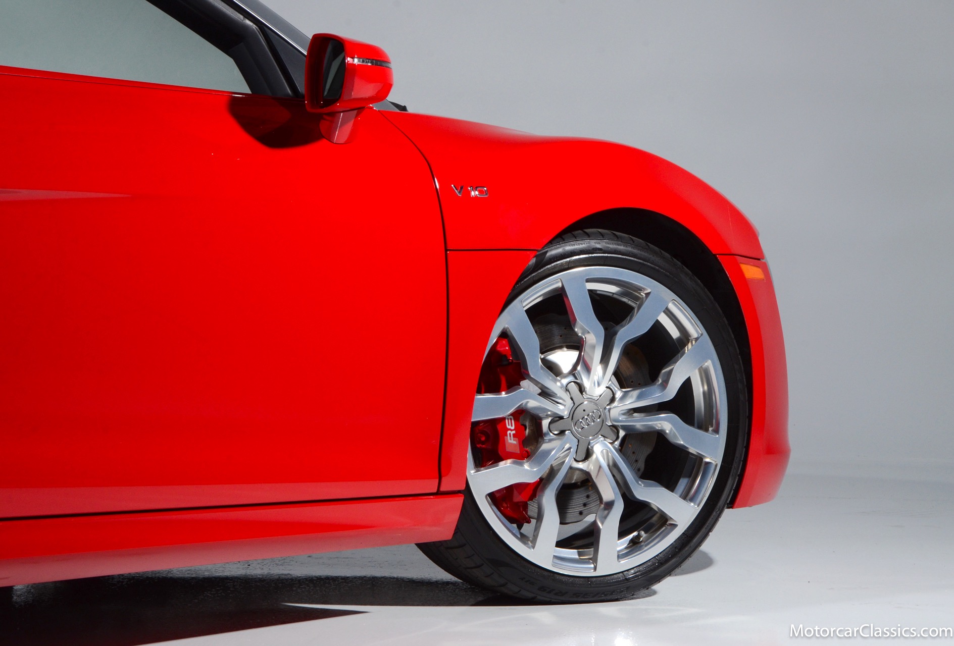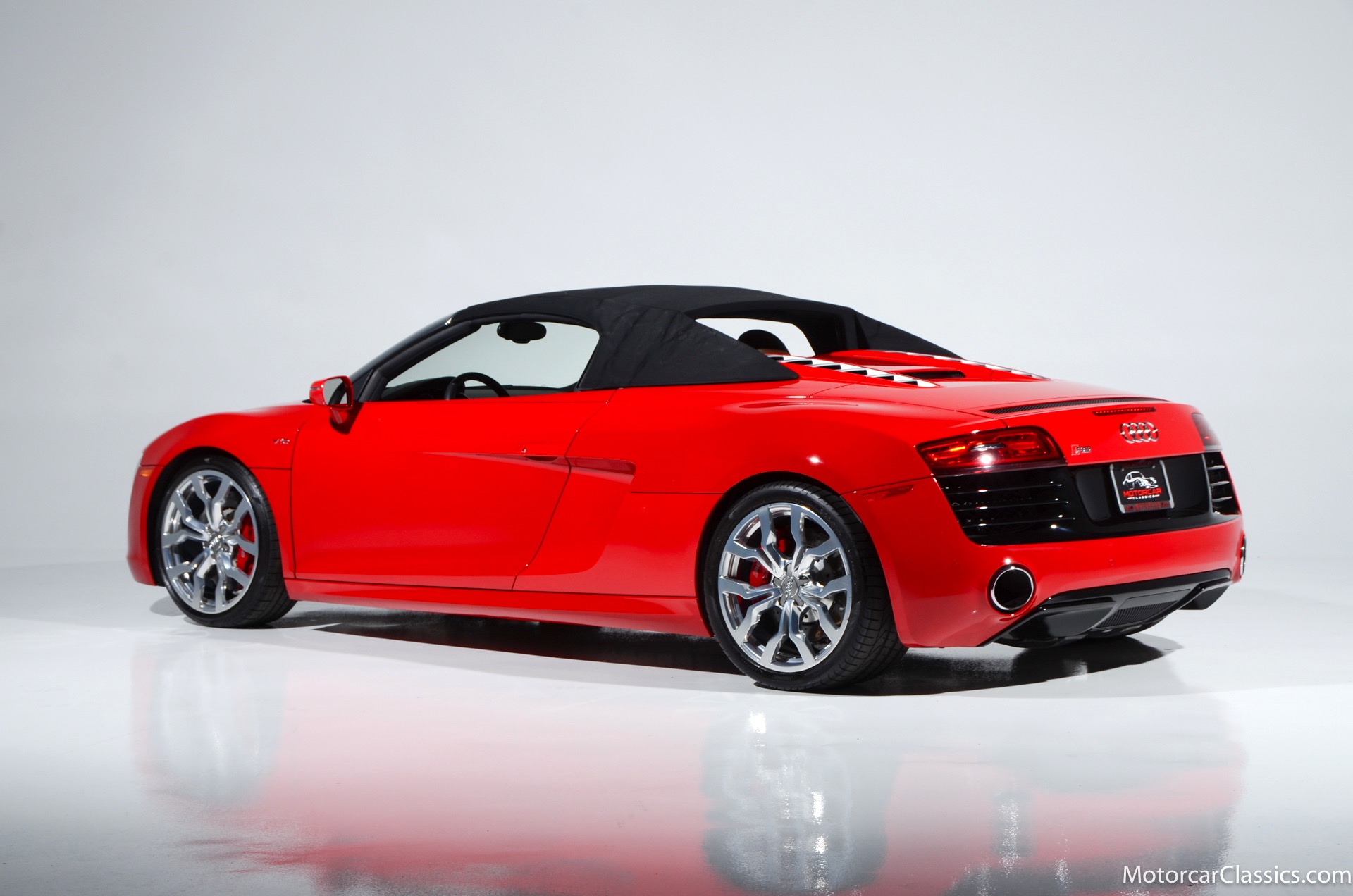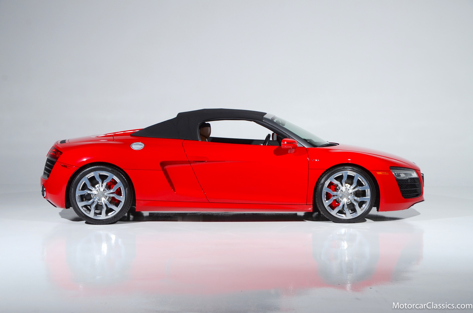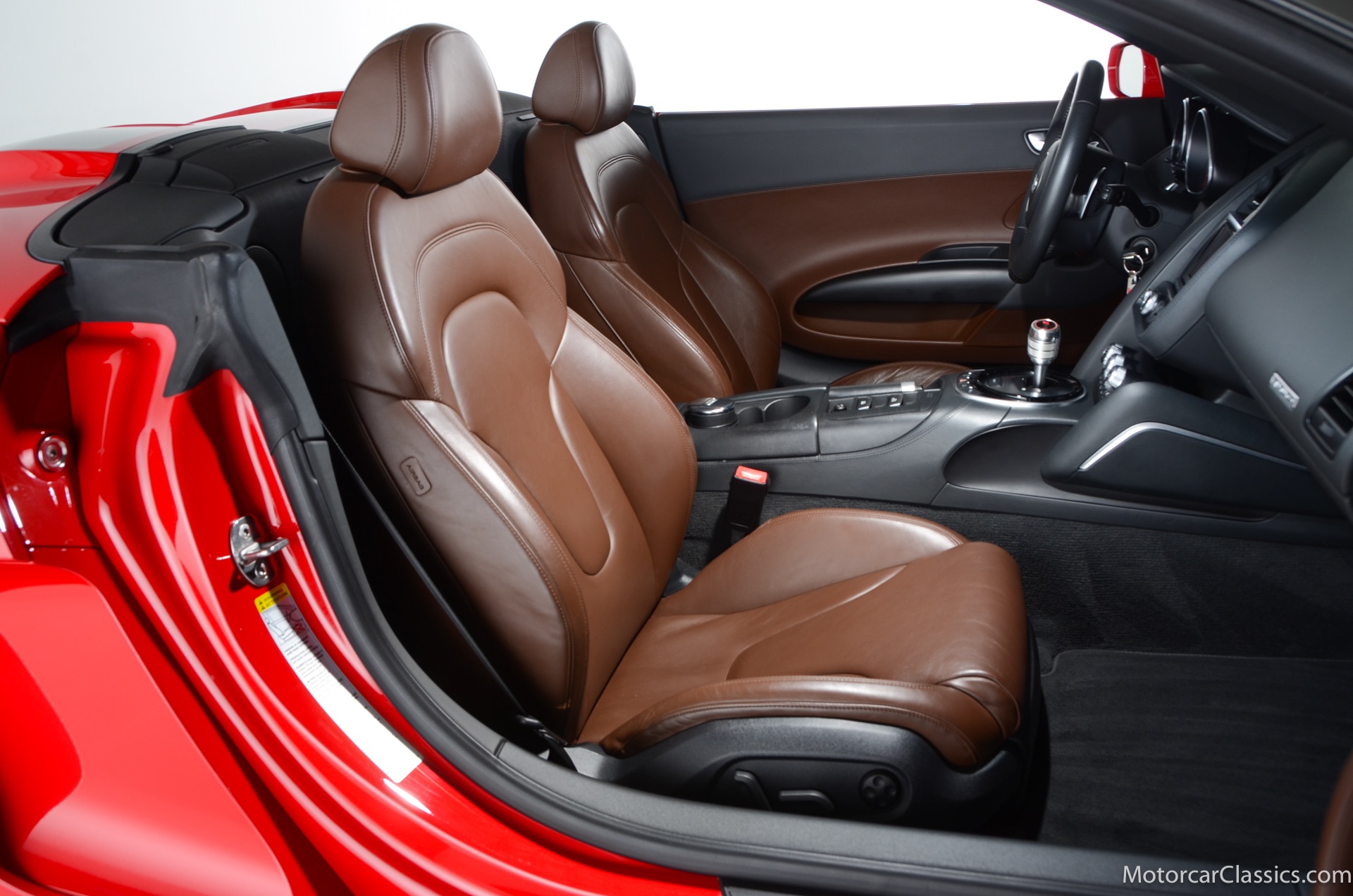 2015 Audi R8 for sale! Motorcar Classics is proud to present this stunning 2015 Audi R8 V10 Quattro Spyder featured in Brilliant Red with brown leather interior and back convertible top. The Audi R8 V10 boasts a 5.2-liter V10 that produces 525 hp and 391 lb-ft of torque. The V10 R8 has much genuine Italian ancestry, sharing the platform of the Lamborghini Gallardo. Featuring aluminum-intensive construction, with the engine located amidships and the all-wheel-drive system biased toward the rear, the R8 provides the kind of telepathic responsiveness one would expect from a smaller, more elemental sports car. Power flows from a V10 sourced from Lamborghini, mated to a dual-clutch automated manual known as S-tronic which provides lightning-quick, perfectly executed shifts on demand.