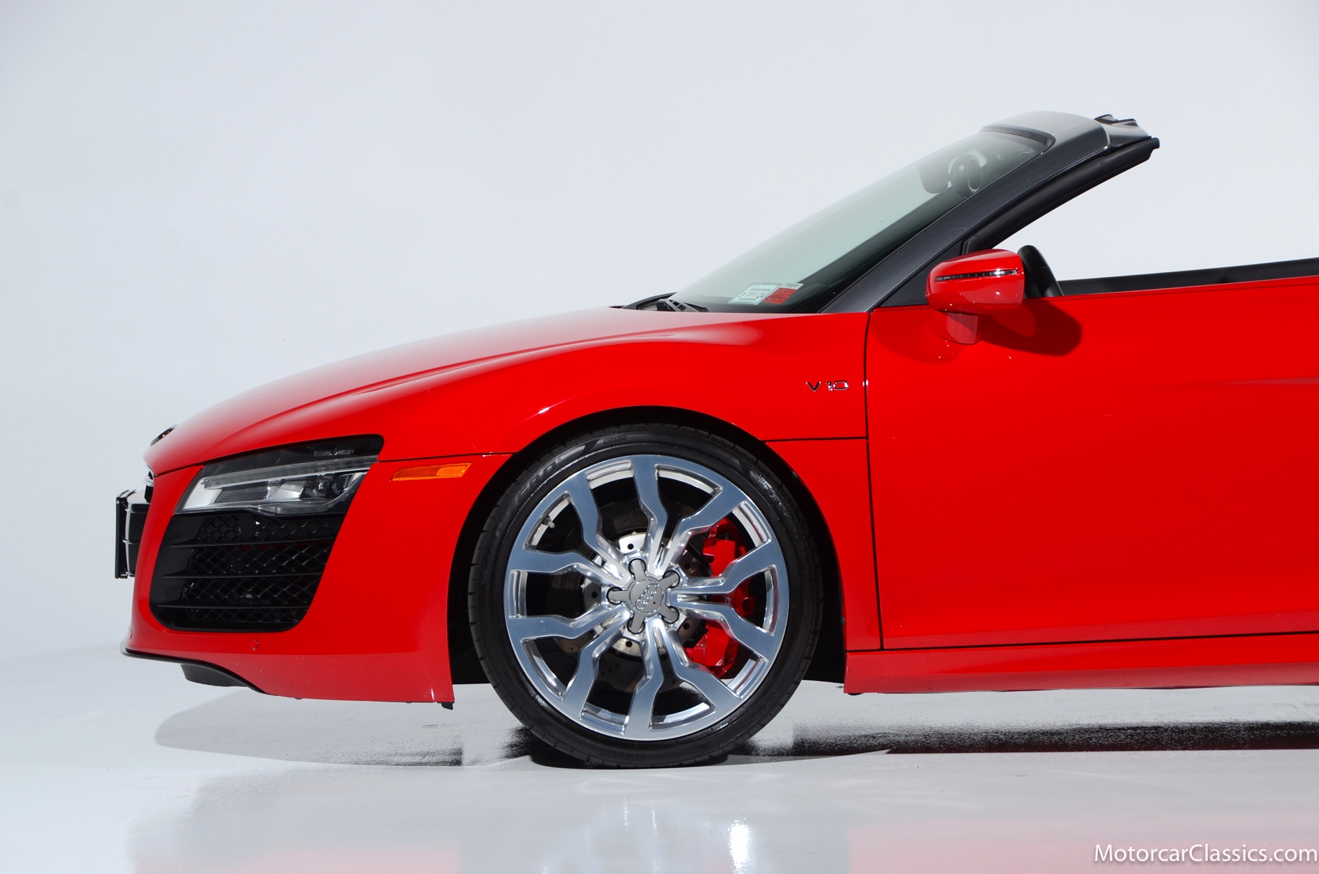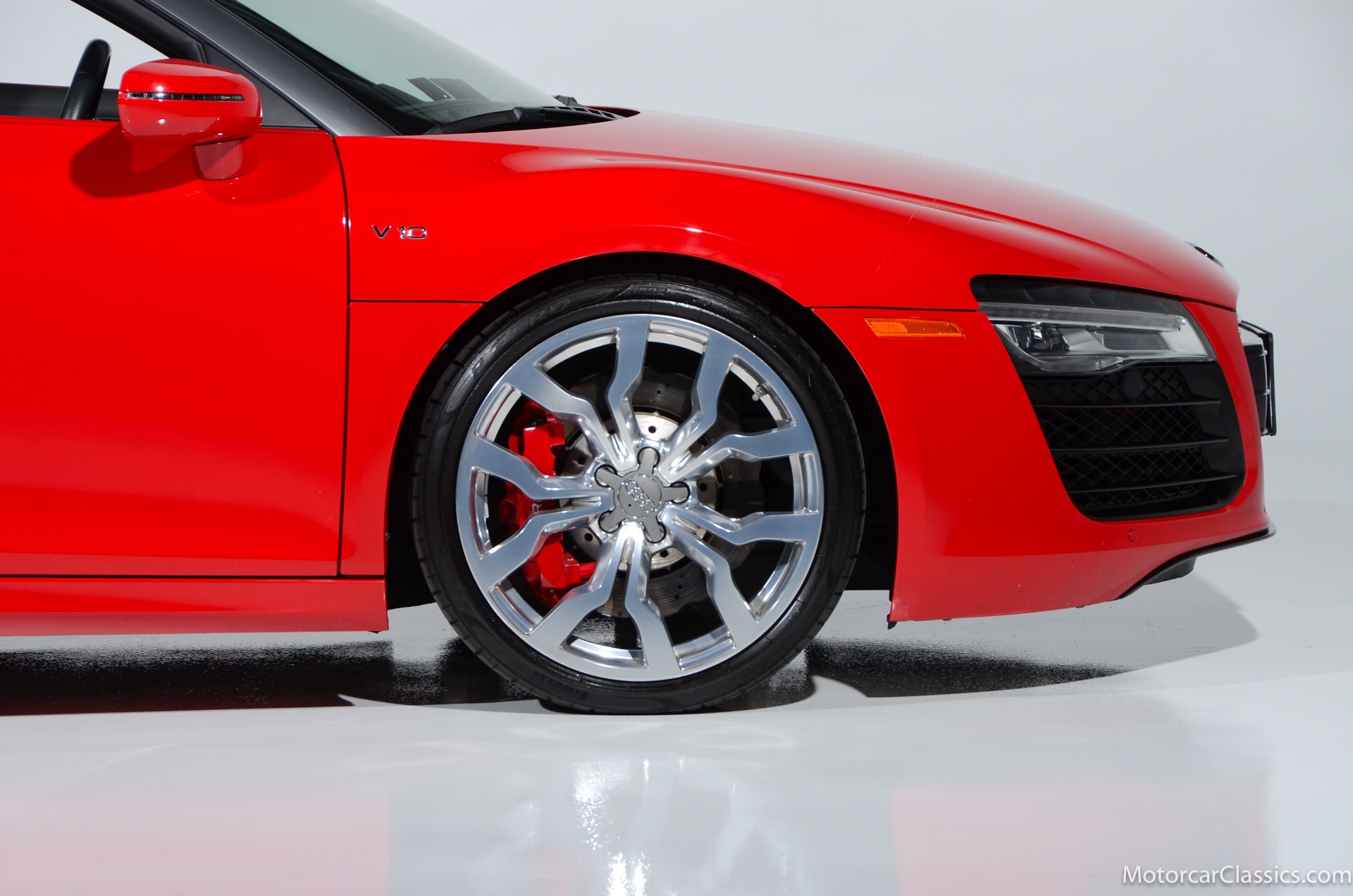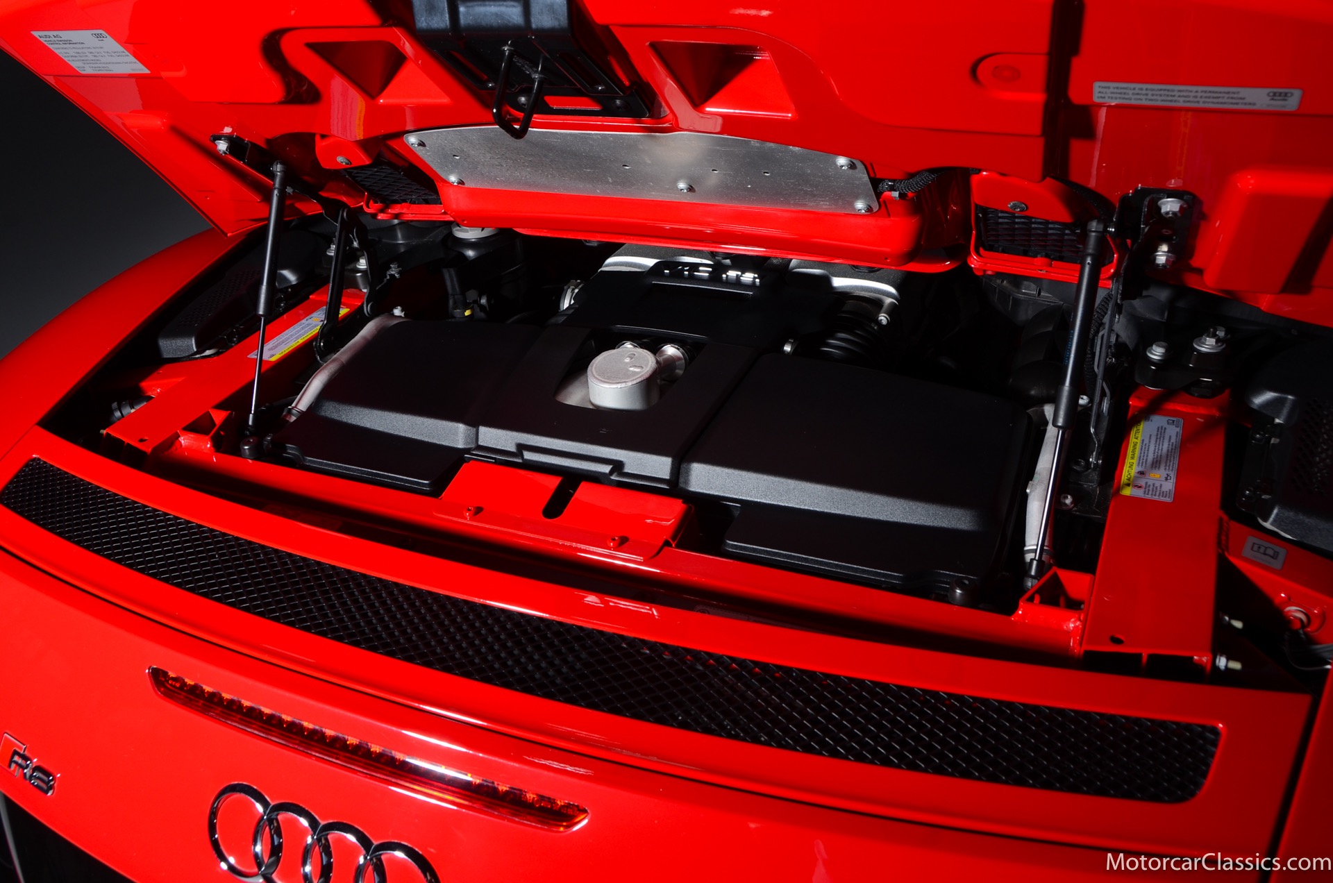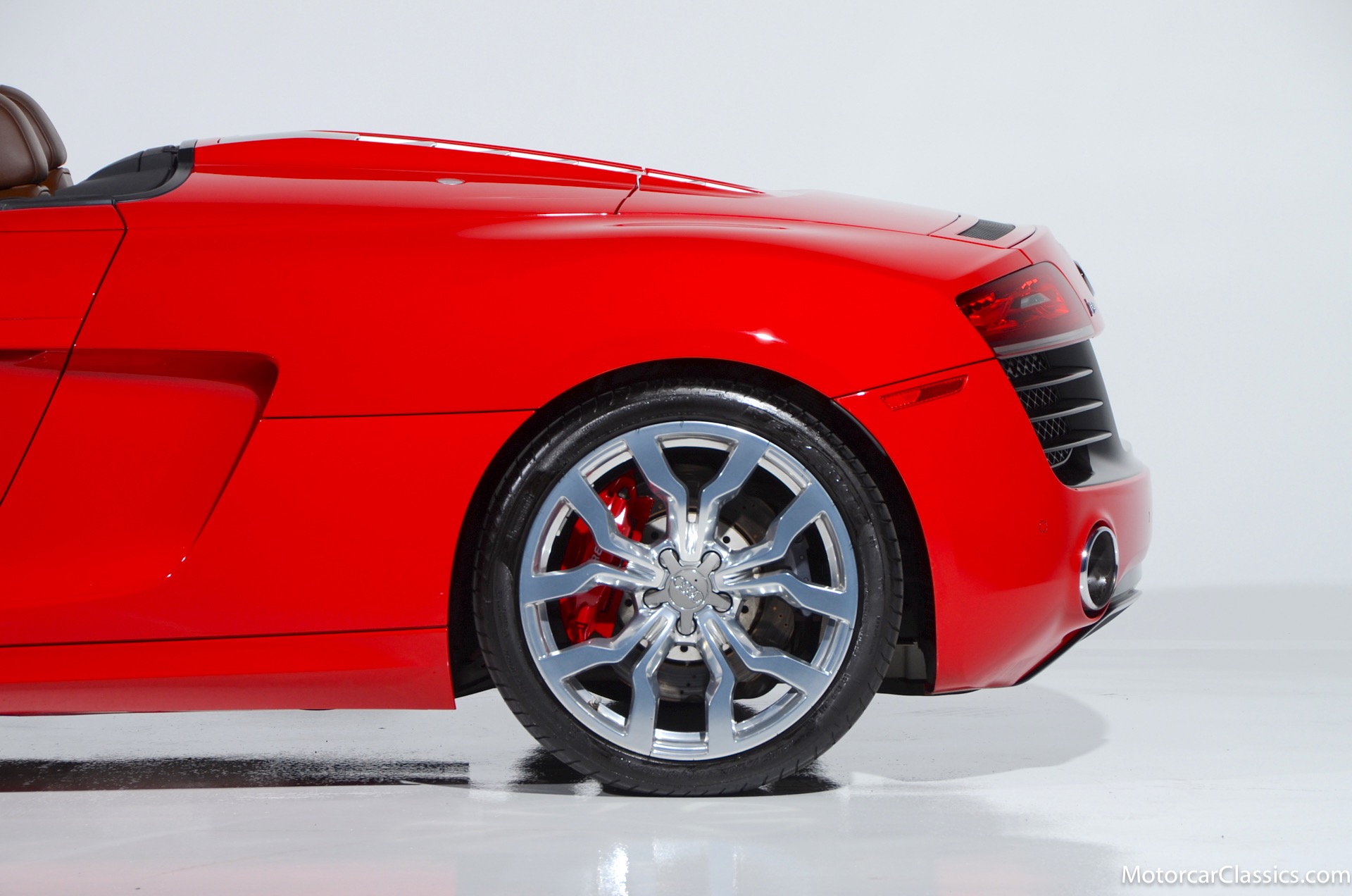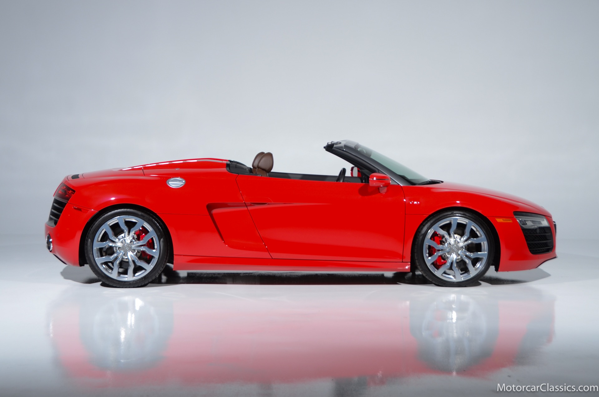 2015 Audi R8 for sale! Motorcar Classics is proud to present this stunning 2015 Audi R8 V10 Quattro Spyder featured in Brilliant Red with brown leather interior and back convertible top. The Audi R8 V10 boasts a 5.2-liter V10 that produces 525 hp and 391 lb-ft of torque. The V10 R8 has much genuine Italian ancestry, sharing the platform of the Lamborghini Gallardo. Featuring aluminum-intensive construction, with the engine located amidships and the all-wheel-drive system biased toward the rear, the R8 provides the kind of telepathic responsiveness one would expect from a smaller, more elemental sports car. Power flows from a V10 sourced from Lamborghini, mated to a dual-clutch automated manual known as S-tronic which provides lightning-quick, perfectly executed shifts on demand.