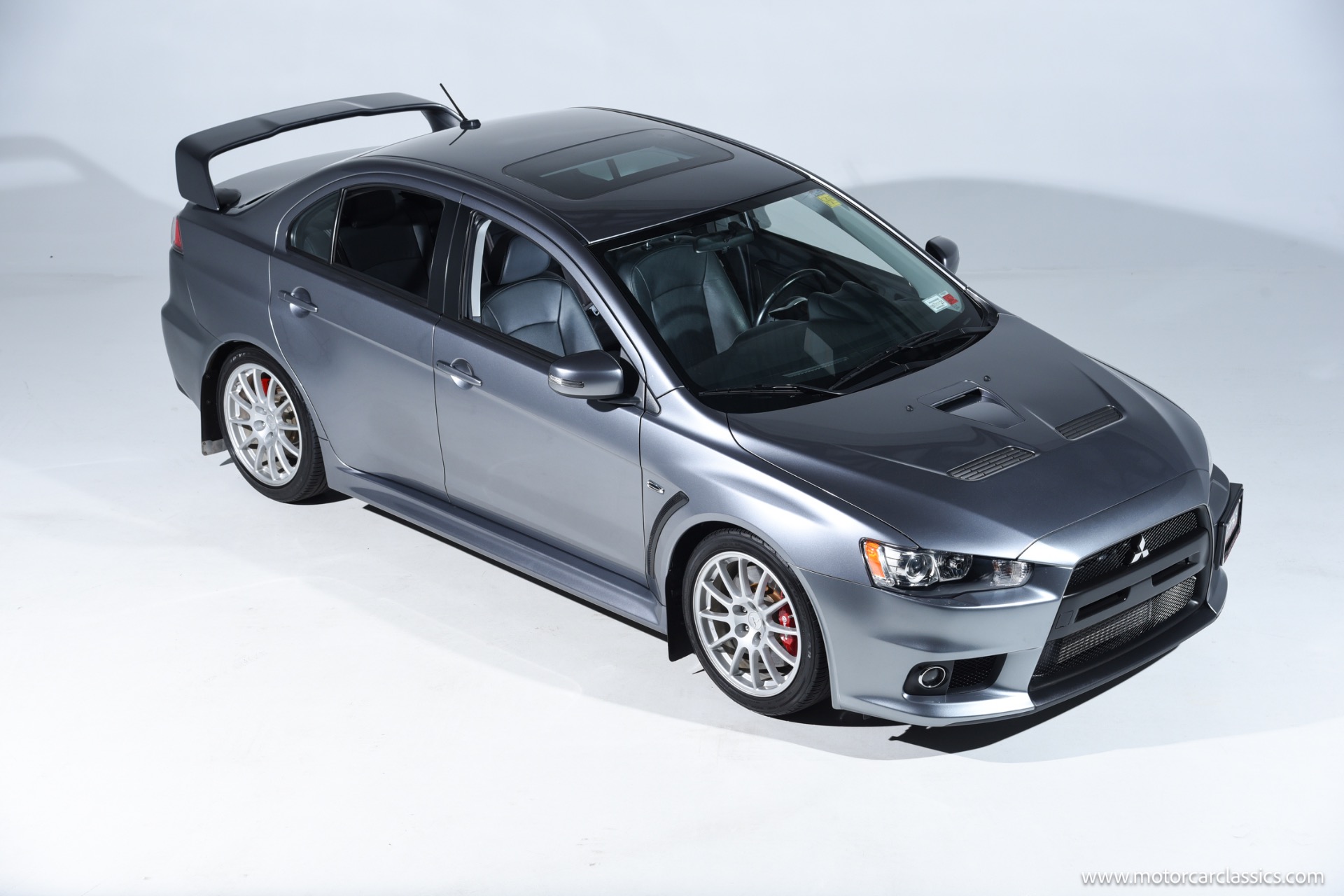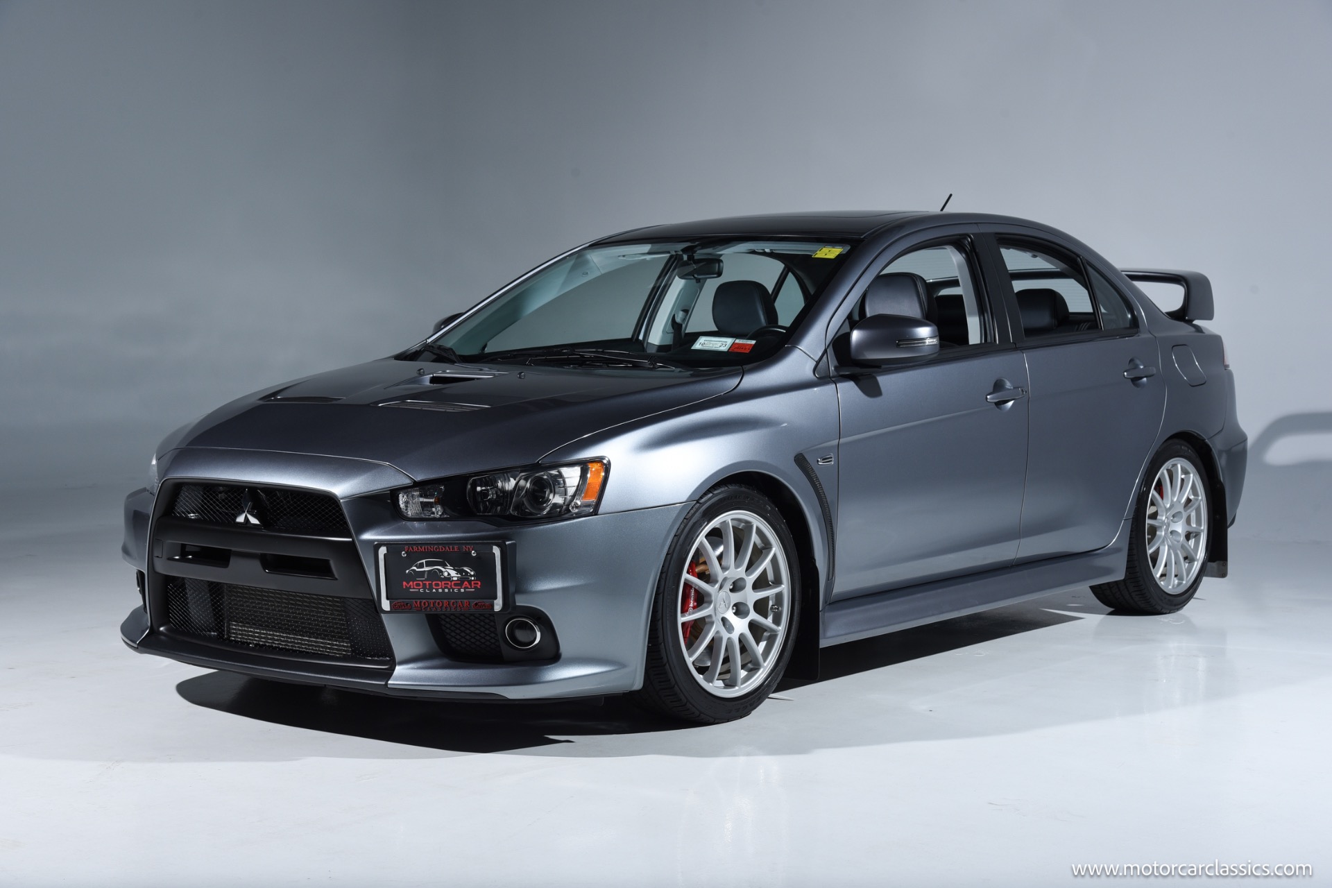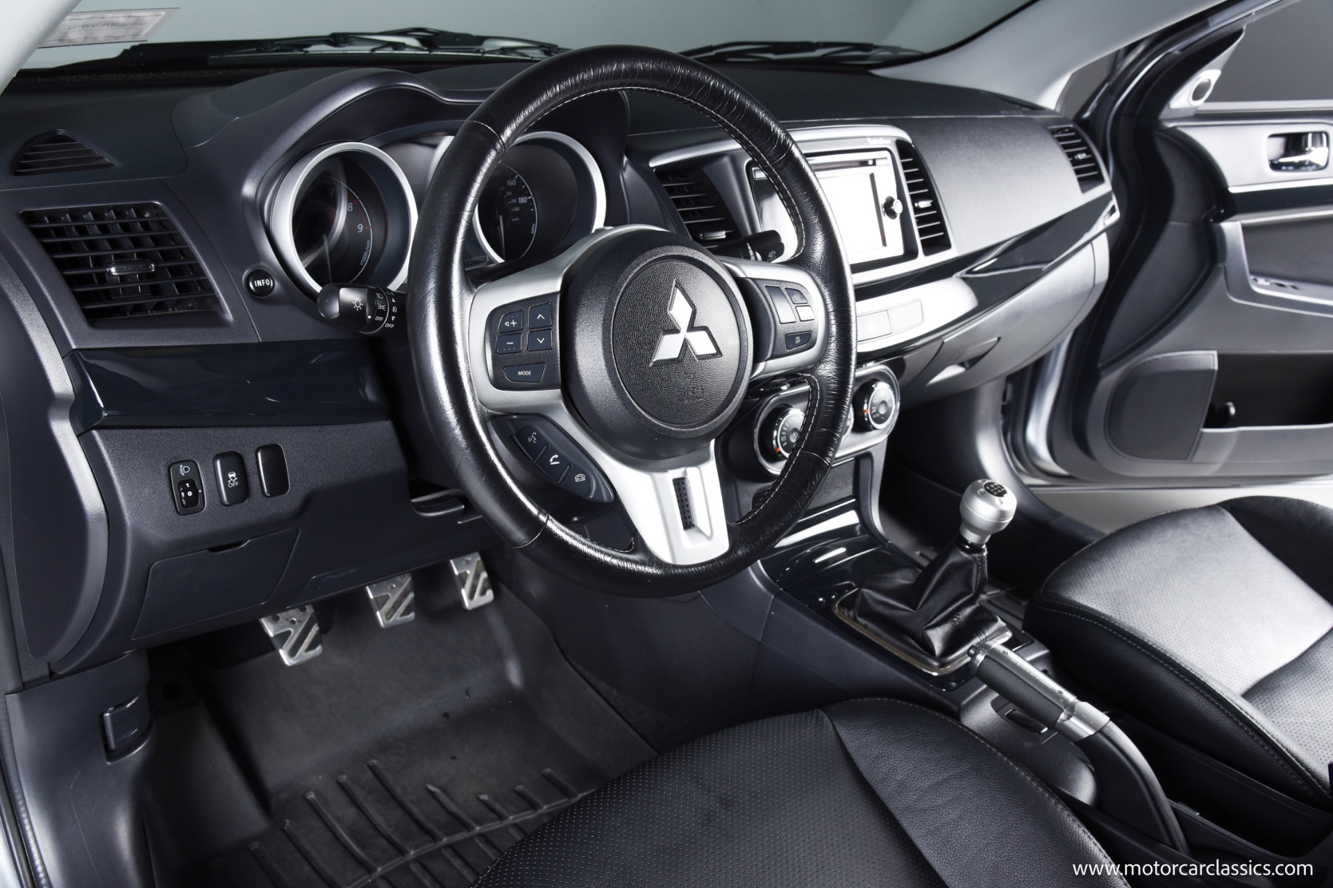 2015 Mitsubishi "EVO" for sale! Motorcar Classics is pleased to present the thrill of rally-bred performance with this exceptional Mitsubishi Lancer Evolution GSR, finished in striking Mercury Gray and complemented by a premium black leather interior. This one-owner vehicle has been meticulously maintained and boasts only 17,225 miles, making it a rare find for enthusiasts and collectors alike. Equipped with the highly sought-after 5-speed manual transmission, this Evo delivers an engaging and direct driving experience that true enthusiasts will appreciate.
