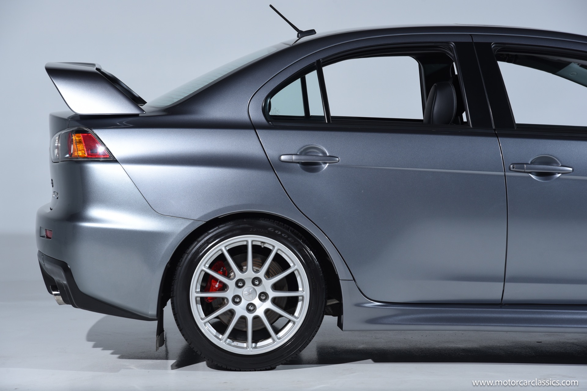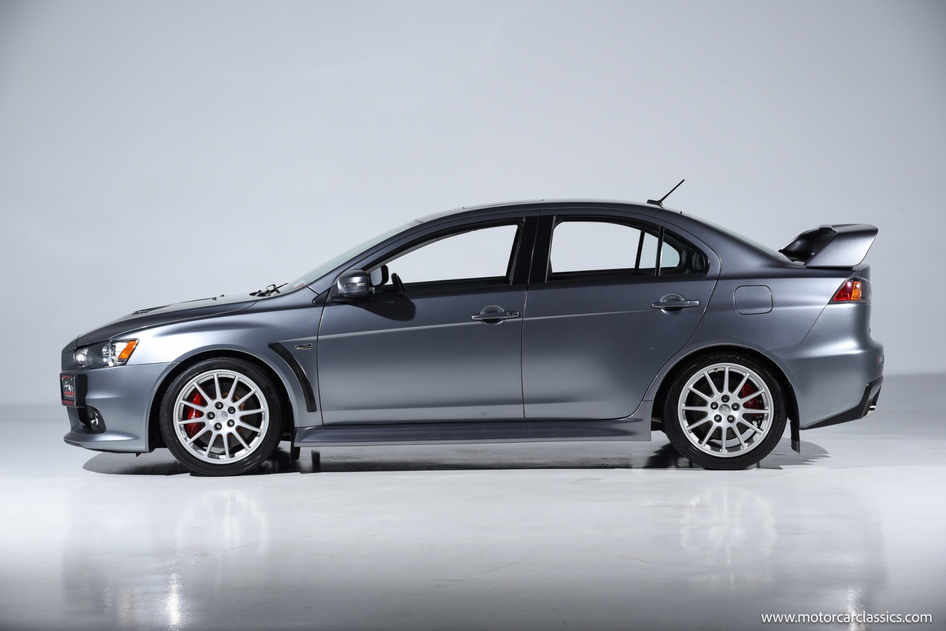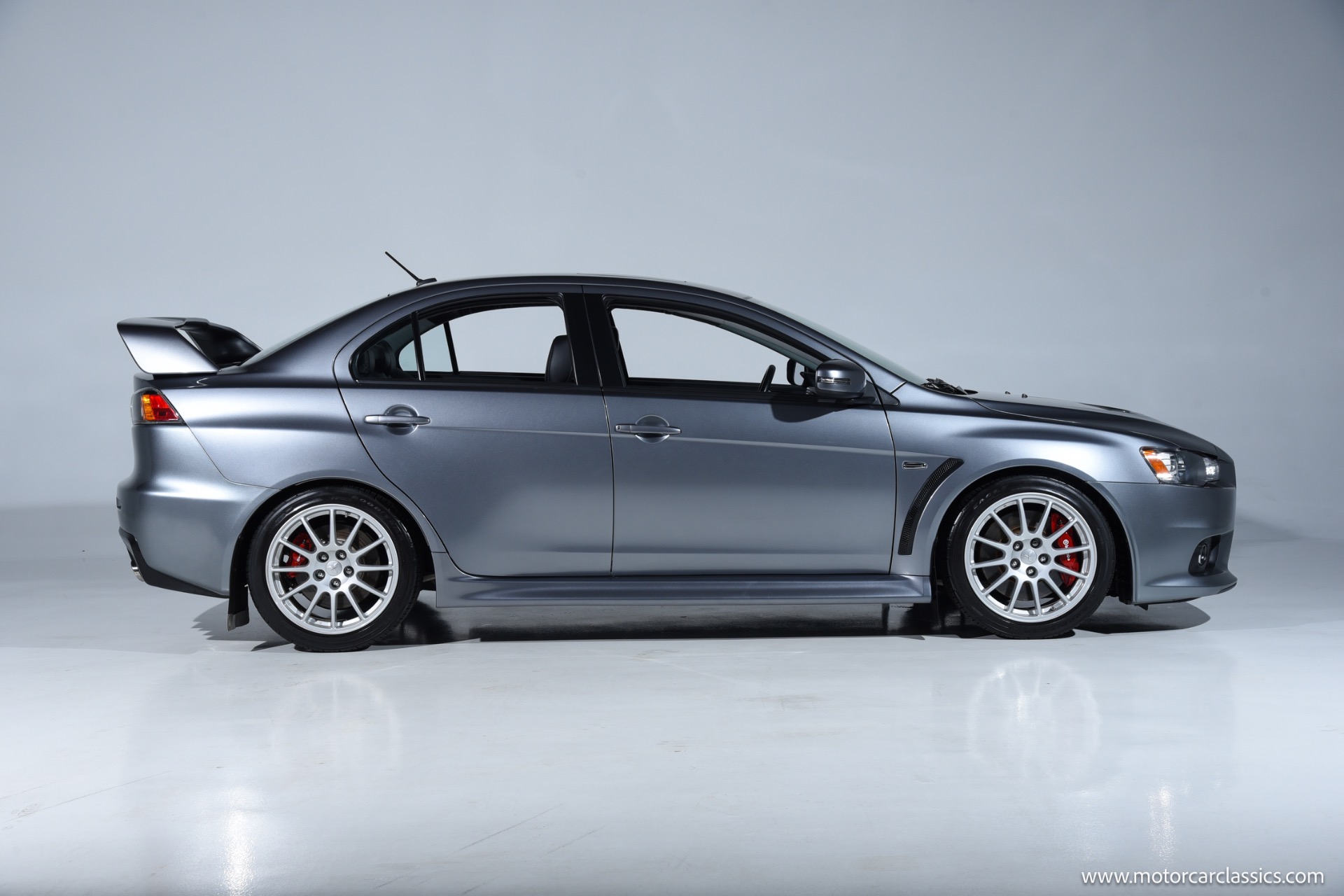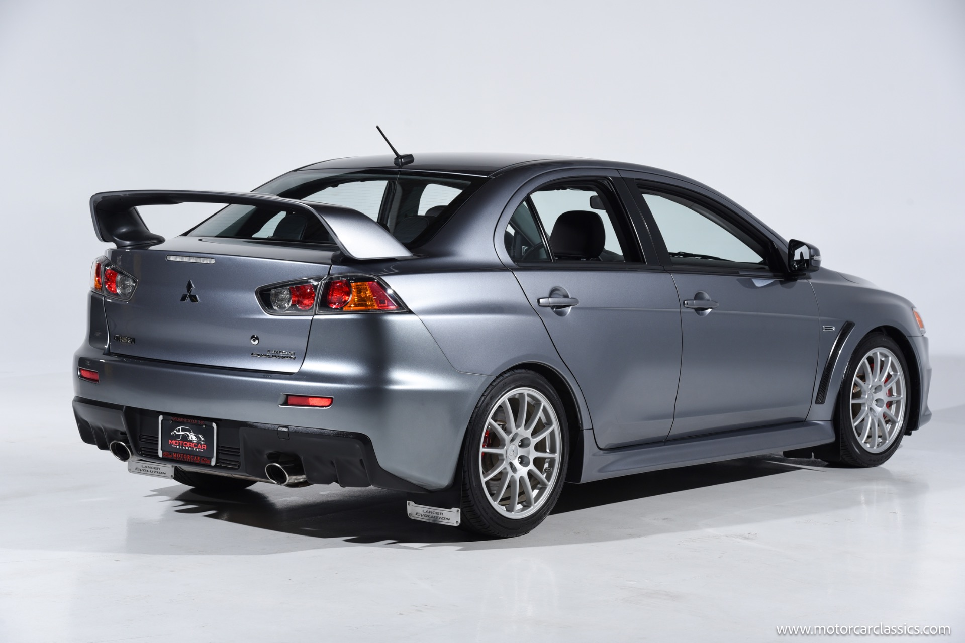 2015 Mitsubishi "EVO" for sale! Motorcar Classics is pleased to present the thrill of rally-bred performance with this exceptional Mitsubishi Lancer Evolution GSR, finished in striking Mercury Gray and complemented by a premium black leather interior. This one-owner vehicle has been meticulously maintained and boasts only 17,225 miles, making it a rare find for enthusiasts and collectors alike. Equipped with the highly sought-after 5-speed manual transmission, this Evo delivers an engaging and direct driving experience that true enthusiasts will appreciate.