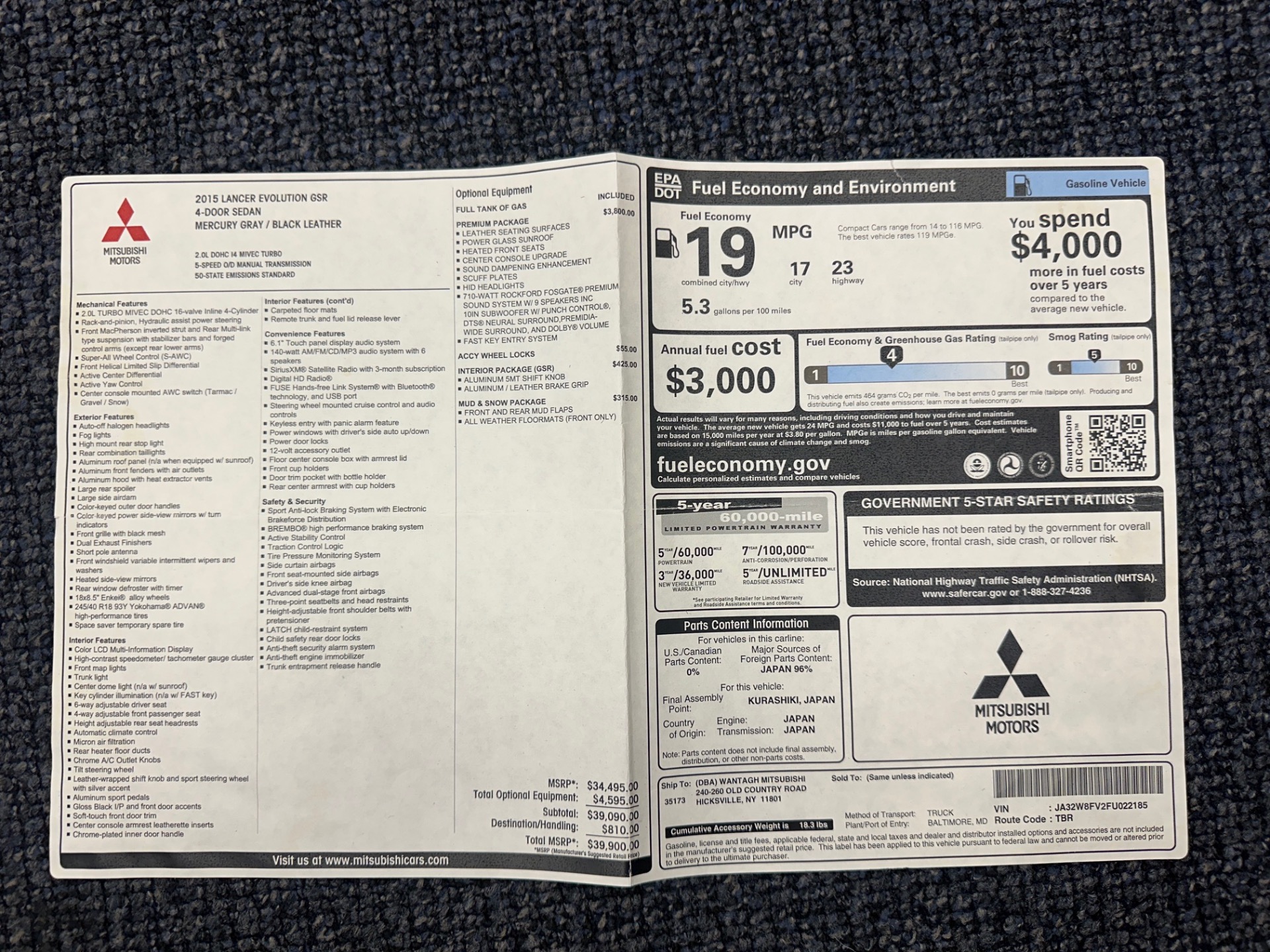 2015 Mitsubishi Lancer Evolution GSR For Sale