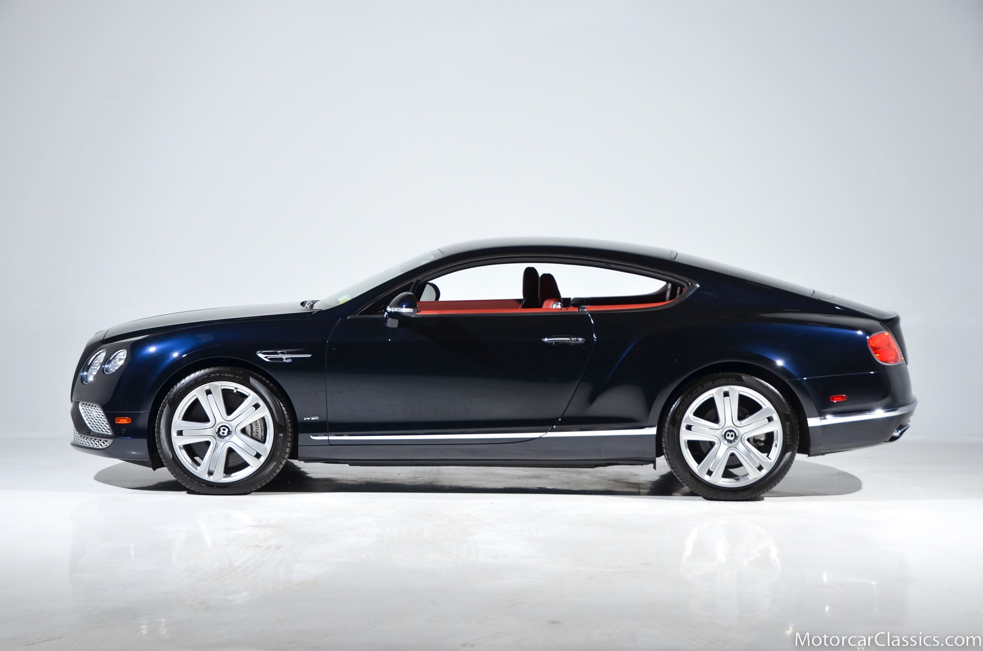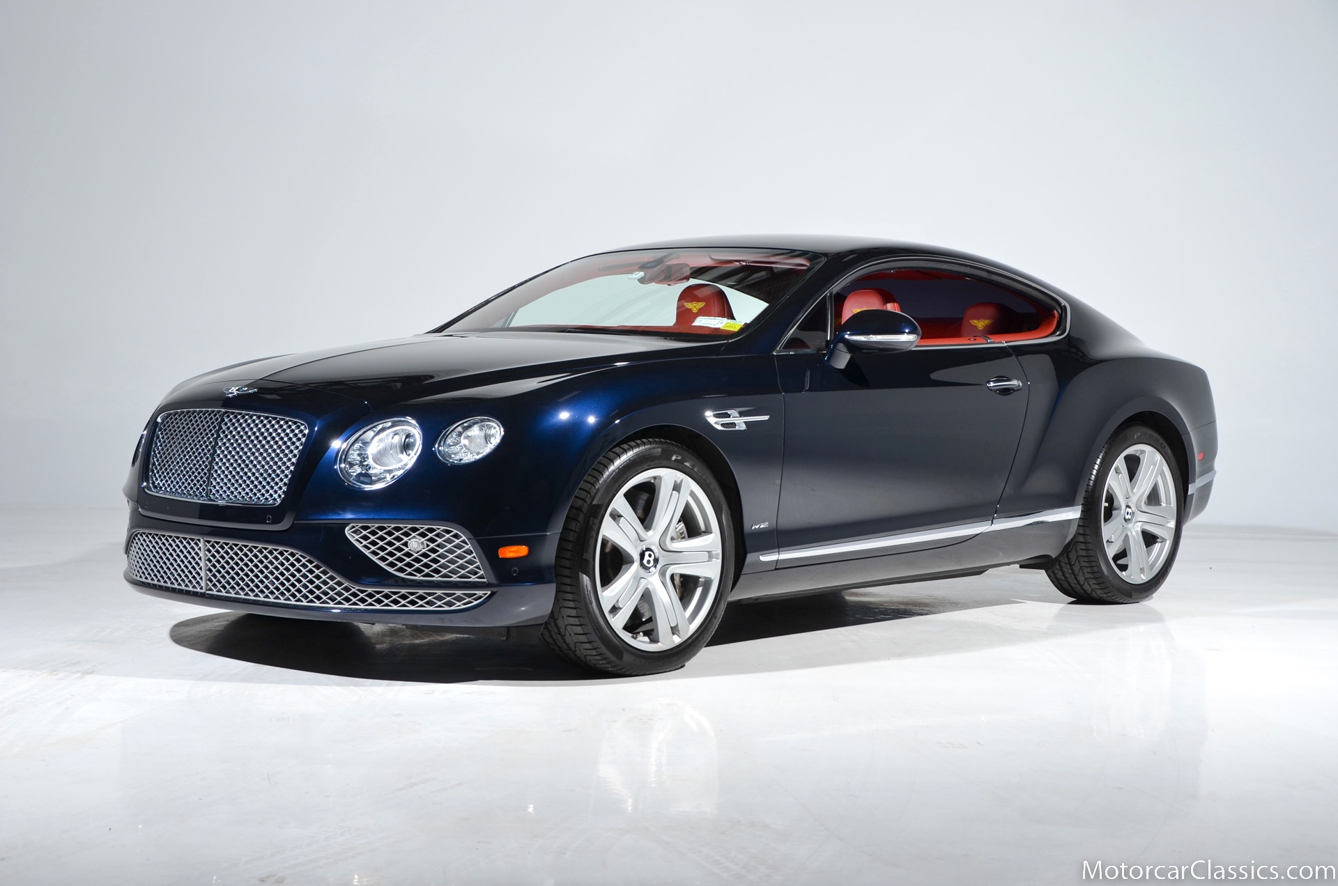 2016 Bentley Continental GT for sale! Motorcar Classics is pleased to offer this stunning Continental GT presented in Dark Sapphire Metallic (dark blue) with Fireglow interior. Clean Carfax and title! Only 15,000 miles. The car was recently serviced at Ferrari Long Island. Options include: Deep pile overmats, sports 3 spoke steering wheel, Gold stitched Bentley headrests, ventilated front seats with massage, carbon fiber fascia panels, contrast stitching and more. $234,490 MSRP!