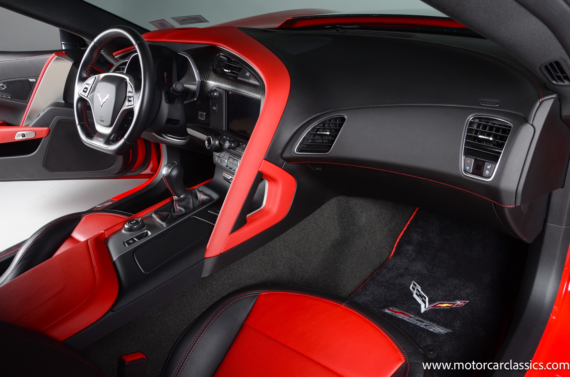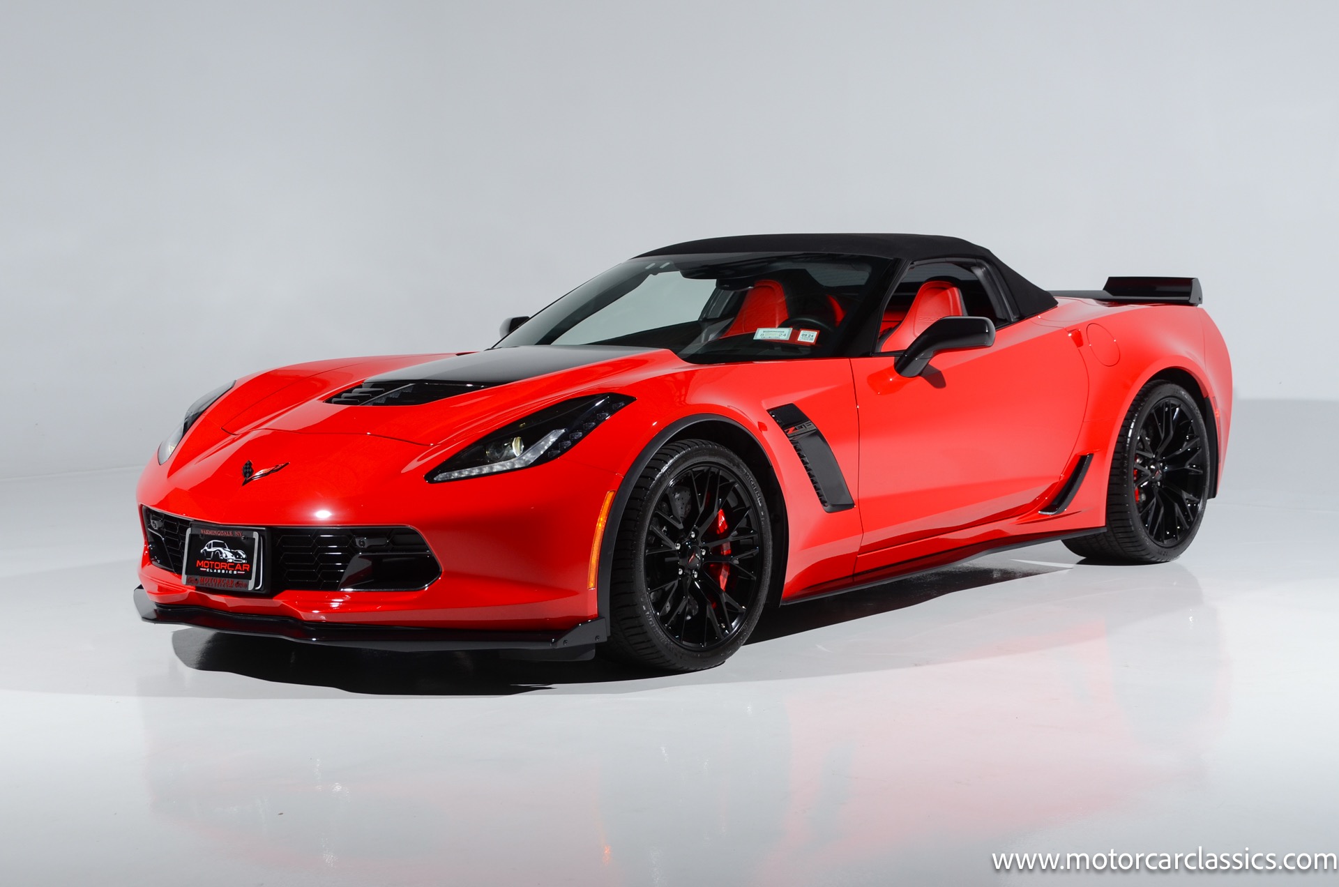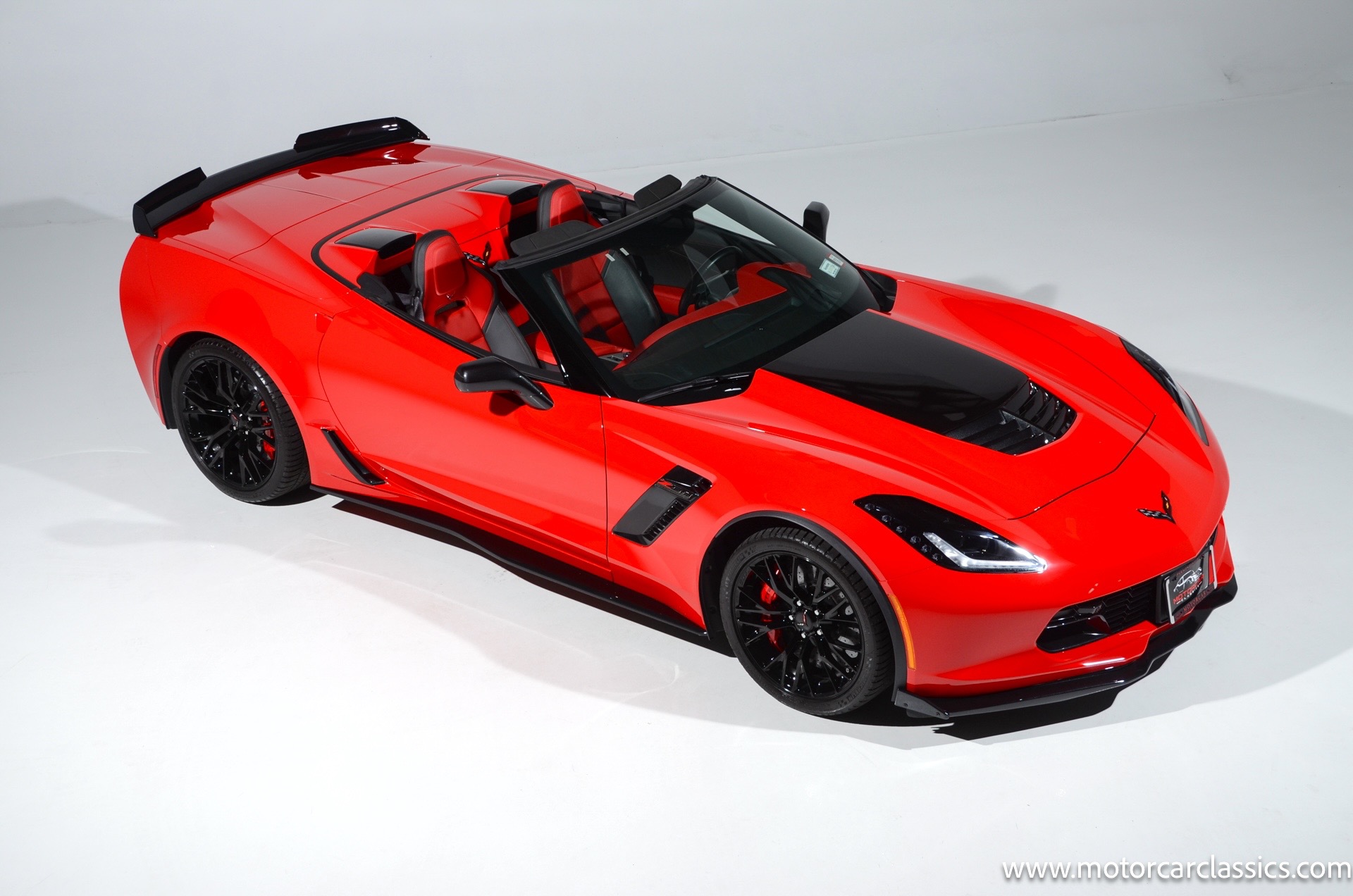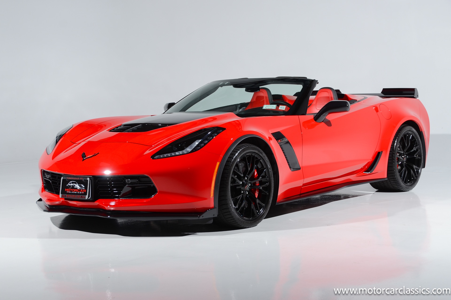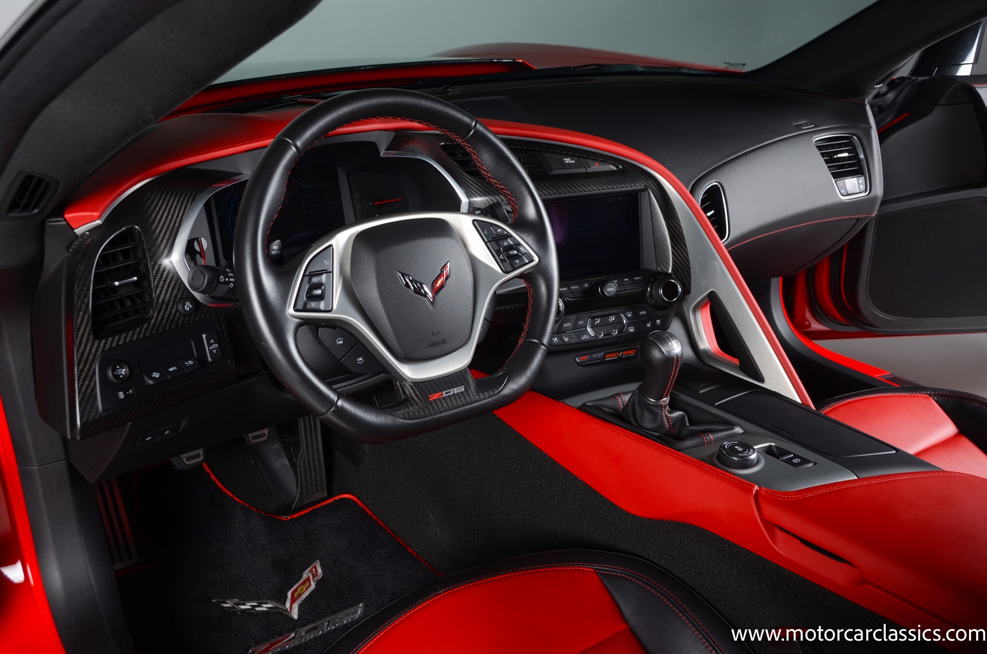 2016 Chevrolet Corvette Z06 2LZ 4LT 7-speed manual for sale! Motorcar Classics is pleased to offer this stunning Z06 presented in Torch Red with Adrenaline red and perforated mulan leather interior. 6.2L supercharged V8 engine with a rare 7-speed manual transmission! 1-owner accident free car with only 7643 miles. Options include: Carbon fiber ground effects package, carbon flash painted, battery protection package, carbon fiber interior trim, 19 front/20 rear Z06 black-painted aluminum wheels, carbon flash-painted outside mirrors, two-tone seats, performance data and video recorder, Z07 performance package, Z06 2LZ, black convertible top and more! 102,830 MSRP! Your inspection is invited!