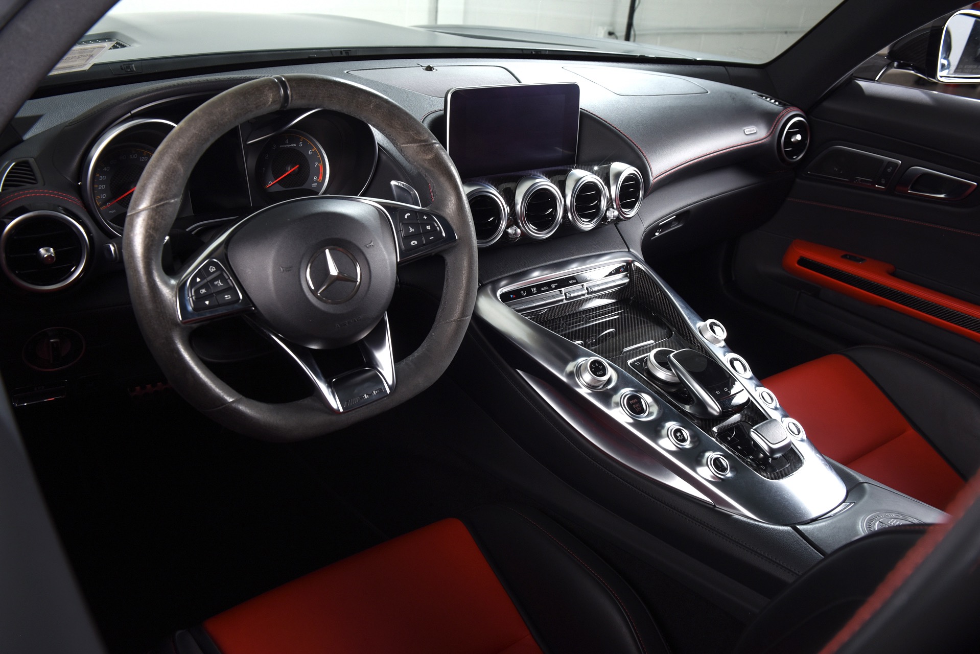 2016 Mercedes-Benz AMG GT S for sale. Motorcar Classics is pleased to offer this aggressive Mercedes-Benz AMG GT S presented in Designo Magno Selenite Grey (Matte Finish) with Red Pepper/Black Nappa Leather interior. This 2-owner car has been well maintained and serviced and has never been in an accident. Clean Carfax, no paintwork. Options include: AMG Carbon fiber trim gloss $200, P71 AMG Dynamic Plus Package: Dynamic Engine & Transaxle mounts $2,600, Red brake calipers $500, Classic red seat belts $500, 22P Lane Tracking Package: Blind spot monitoring, Lane assist $875, Distronic Plus $2,800, Panorama roof $1,260, Black headliner, Crossbar silver, fiber, matte $1000, 19/20 AMG split 5-spoke wheel black $2,650, Exclusive interior trim $2,650, Carbon fiber exterior trim $5,300.
