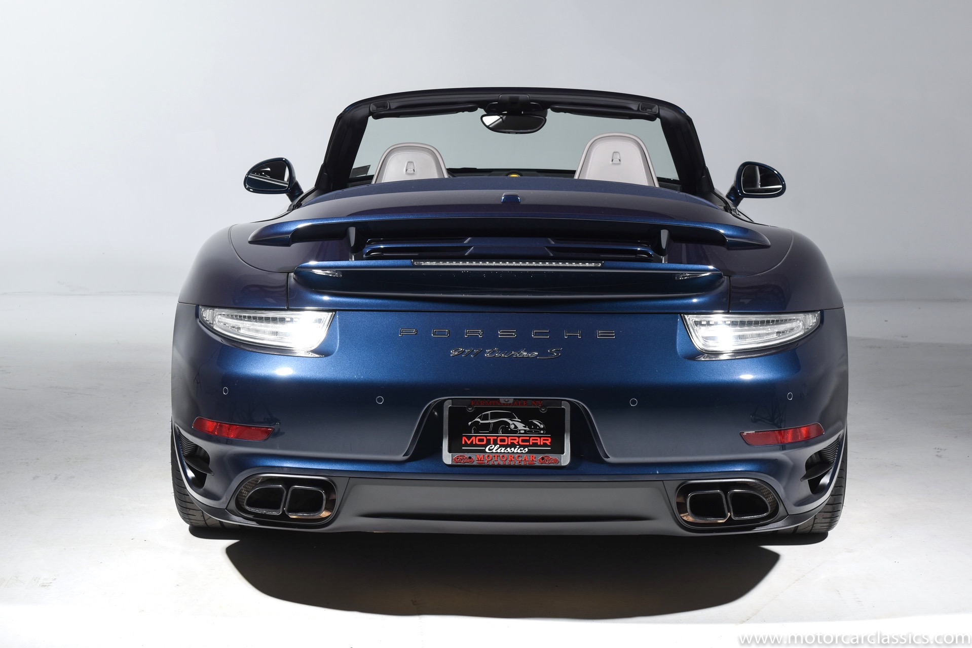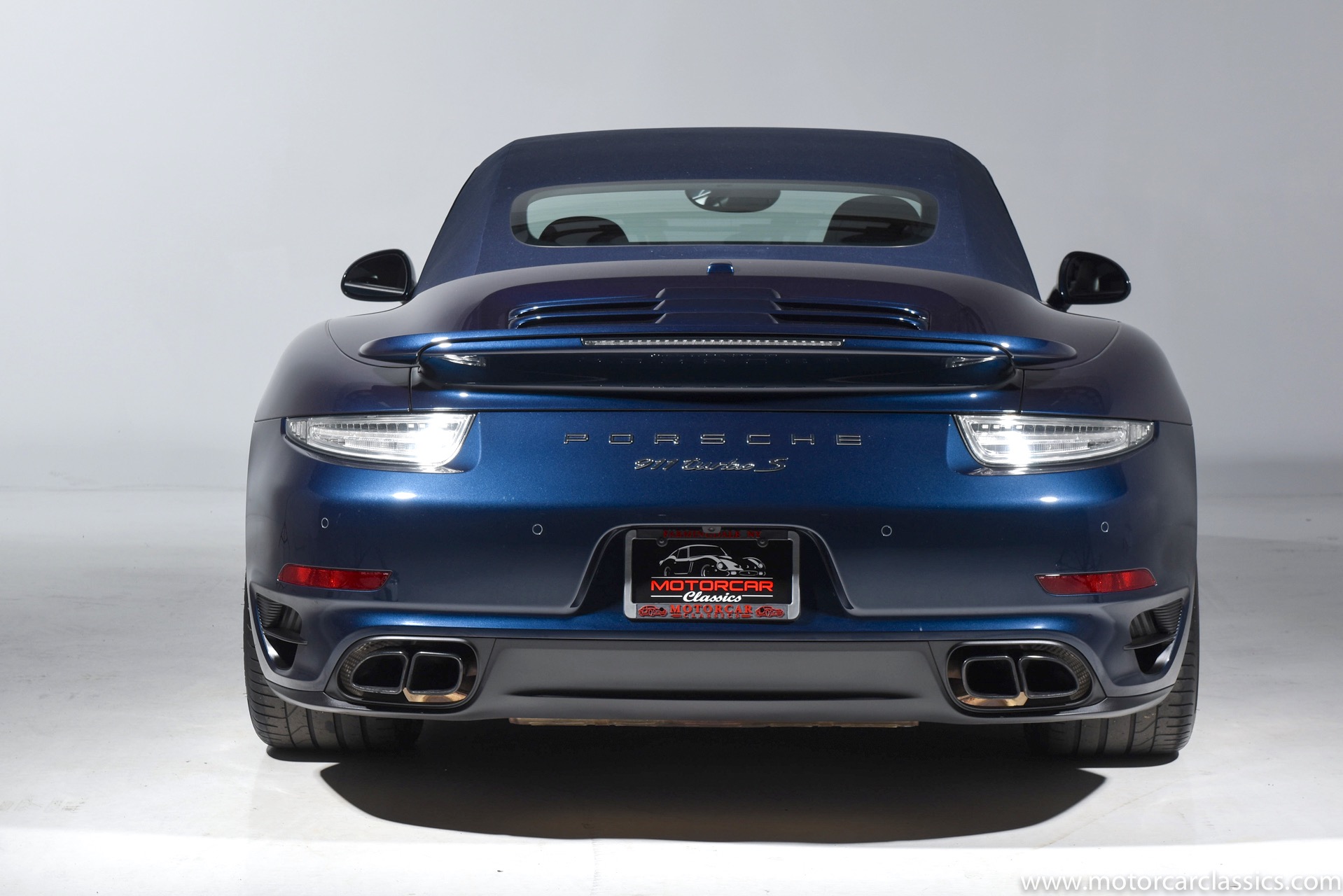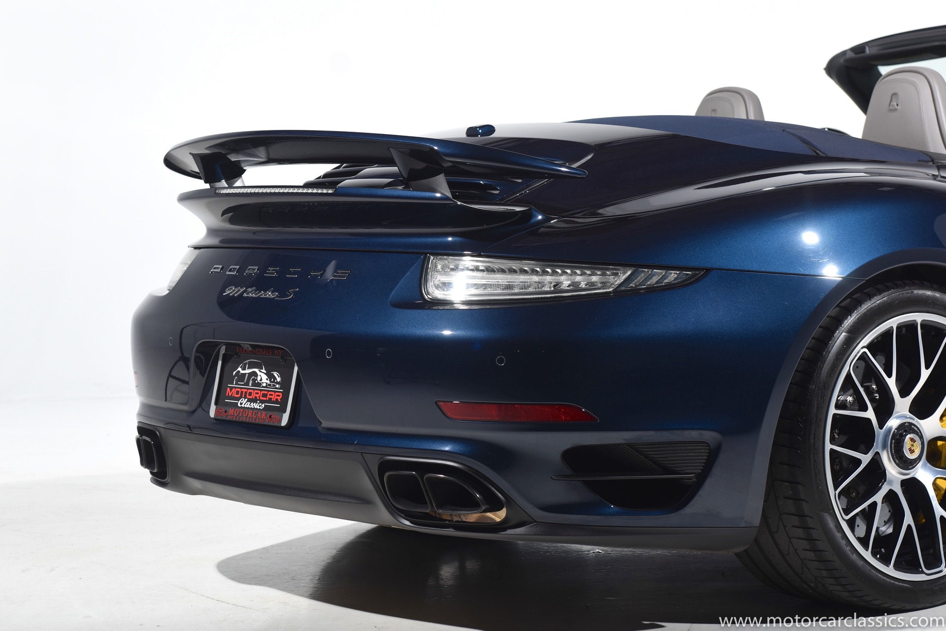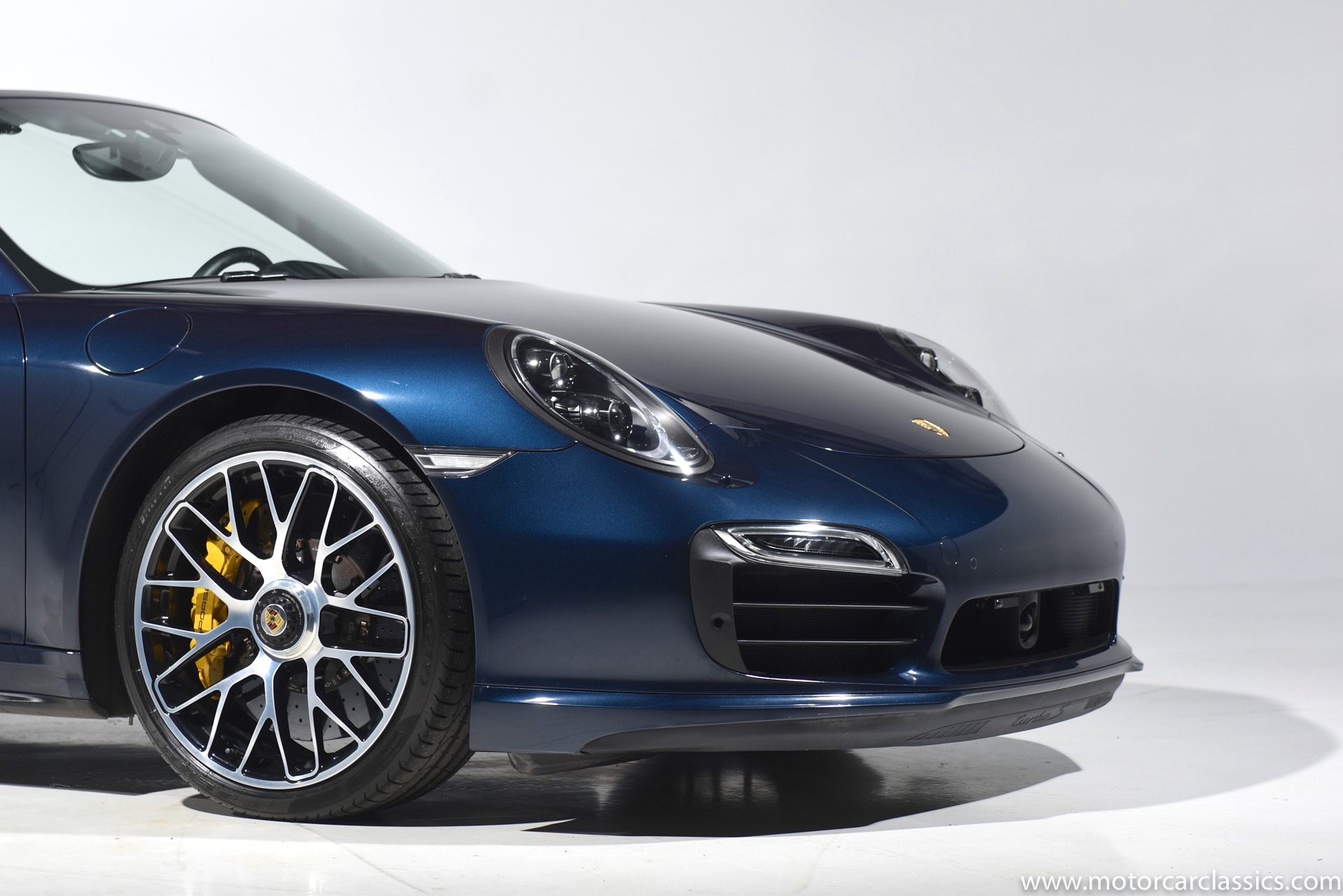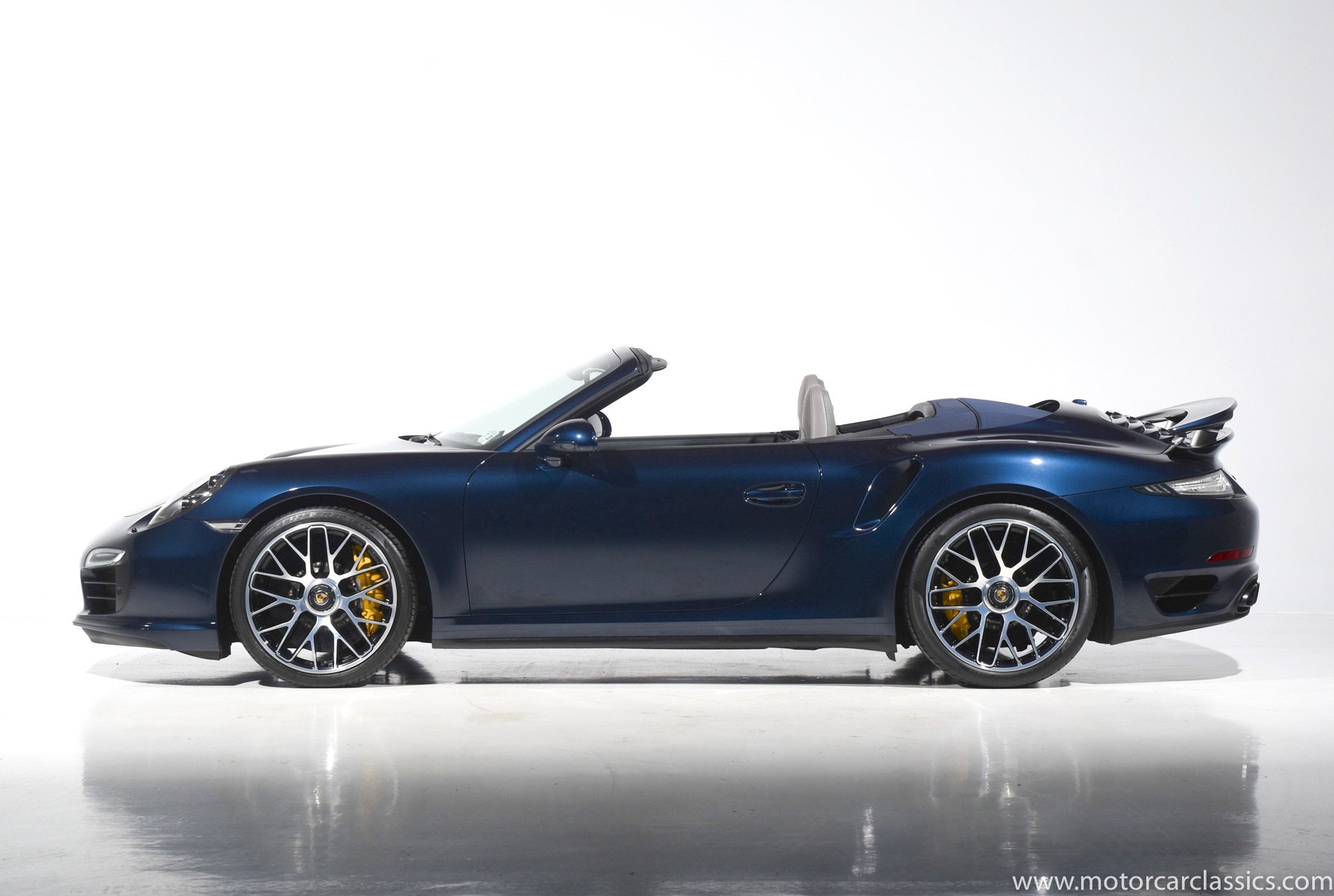 2016 Porsche 911 Turbo S Cabriolet for sale! Motorcar Classics is pleased to offer this impressive 911 Turbo S Cabriolet presented in Dark Blue Metallic with black and Platinum grey leather interior and blue soft top. 1-Owner car from new! Only 9246 miles. Clean title/Carfax. Meticulously owned and maintained. 560HP 3.8L twin-turbo 6 cylinder engine. 7-speed PDK automatic transmission. $20,000 in factory options! Options include: Ceramic brakes, Turbo S center locking alloy wheels, Sport chronology Package, Water-cooled engine with aluminum block and cylinder heads, Direct fuel injection, Integrated dry-sump lubrication, Stainless steel exhaust, AWD, MacPherson strut front suspension with anti-rollbar, Rear-axle steering, PASM, ABS, Porsche torque vectoring plus, SiriusXM, Bluetooth, LED headlights, PCM nav, A,/FM, SportDesign wing mirror on door panel, Door-sill guards with model logo, Interior trim in Carbon fiber, heated front seats, Fire extinguisher, Luggage net in passenger footwell, Smoking package, Light design package, Power steering plus, Voice control, Power folding mirrors, Two-tone leather interior, Sport chronology dial in racing yellow, Side mirror painted, Extended interior package dash in leather, Aluminum pedals, Burmester high-end info package, Rear side air intakes painted, LED headlights in black, Gear selector in Carbon fiber, Porsche crest on headrests, Headlight cleaning systems covers in exterior color, Storage compartment lid with model logo, Door-sill guards in carbon fiber and illuminated, Clear glass taillights and more! Aftermarket radar and laser detector installed. 214,180 MSRP!