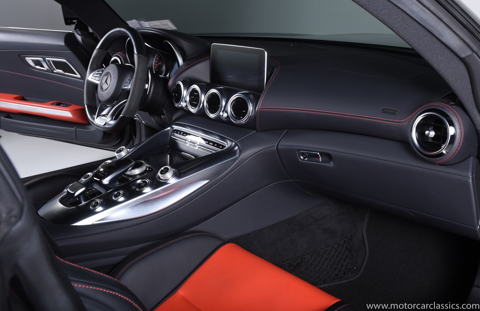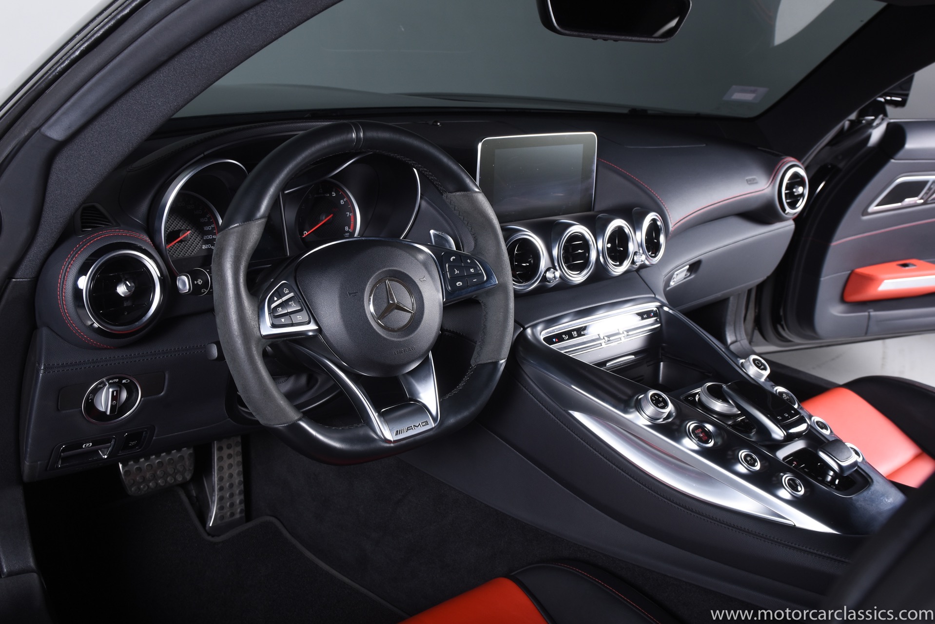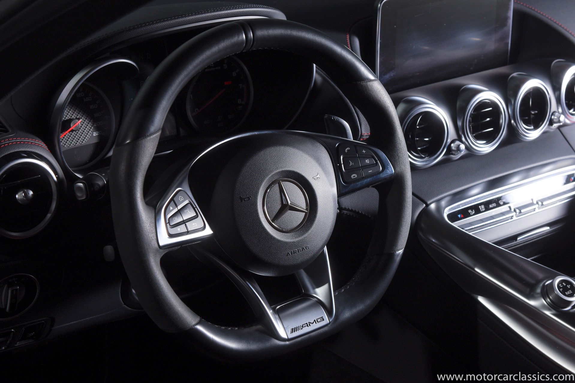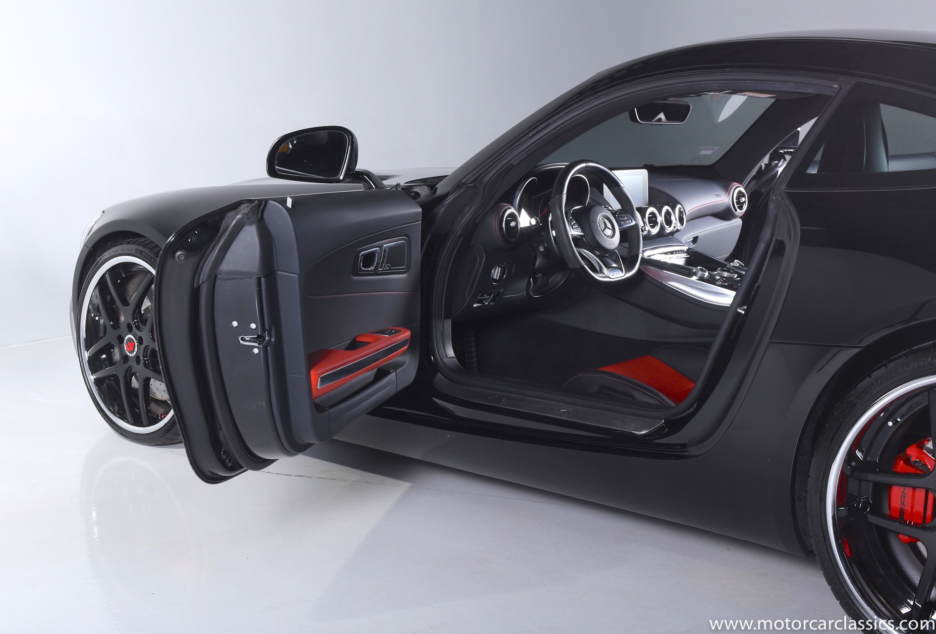 2017 Mercedes-Benz AMG GT S for sale! Motorcar Classics is pleased to offer this stunning GT S presented in Black with Black and Red interior. AMG 4.0L V8. 3-owner car from new with only 16,223 miles. Clean Carfax. Options include: Rear view camera, Parktronic system, AMG aluminum trim, Electric memory seats, Dimming mirrors, Collision warning with active brake, 7 speed automatic dual clutch transmission, TPMS, Sirius radio, AMG performance seats, Climate control, Premium sound system, Napa leather seats & interior with red stitching, Heated front seats, Keyless go, Upgraded fuel tank, AMG steering wheel in leather, Brake calipers painted red and more!