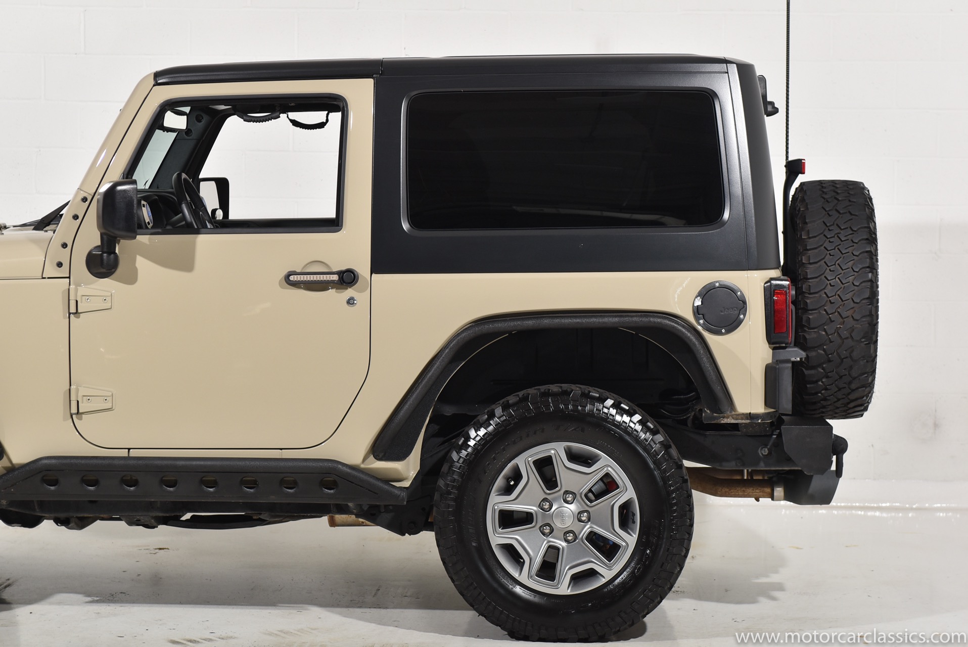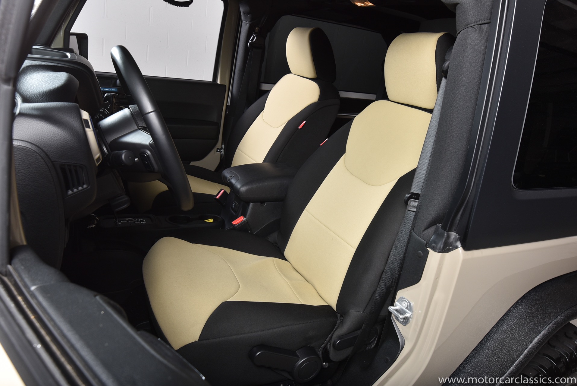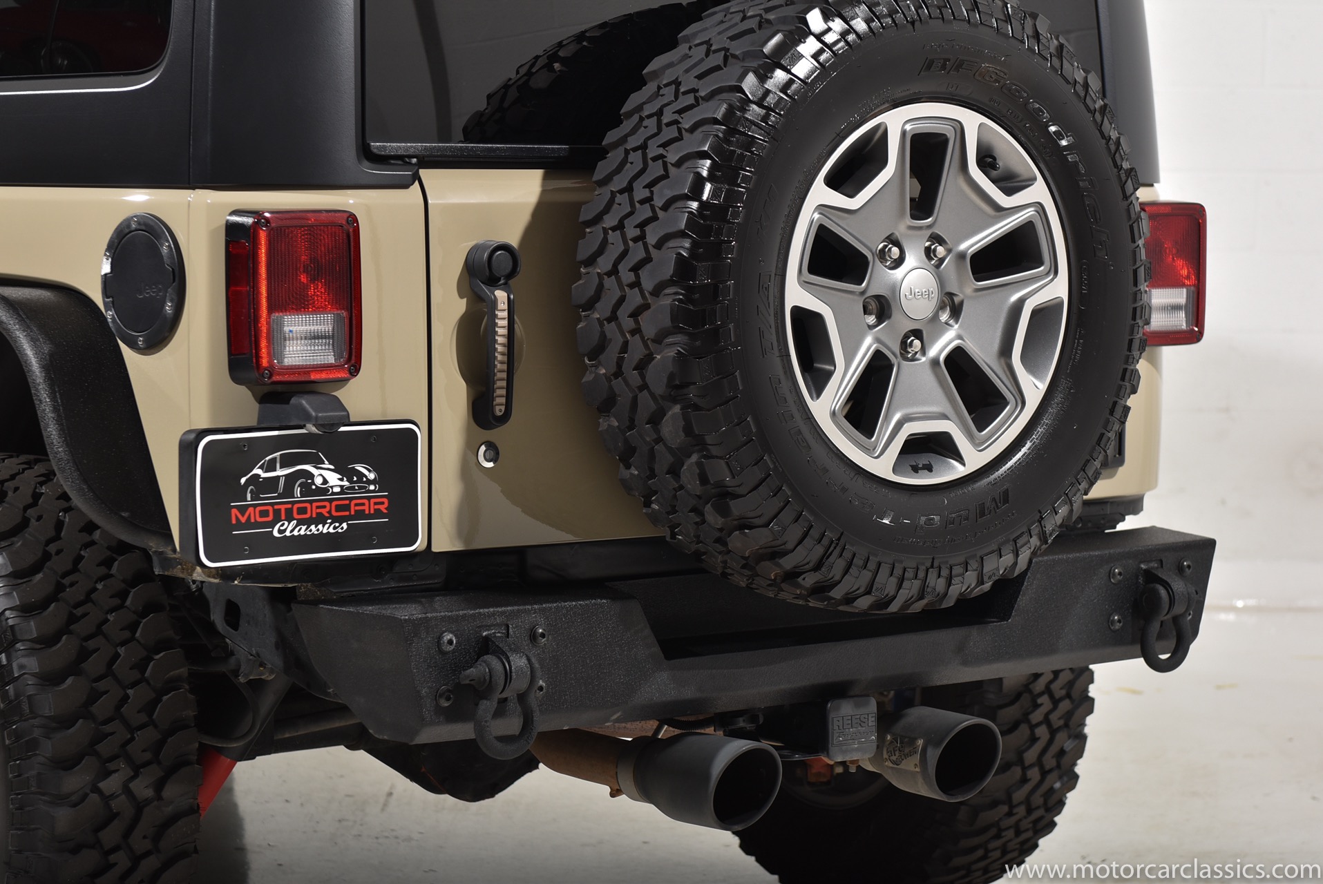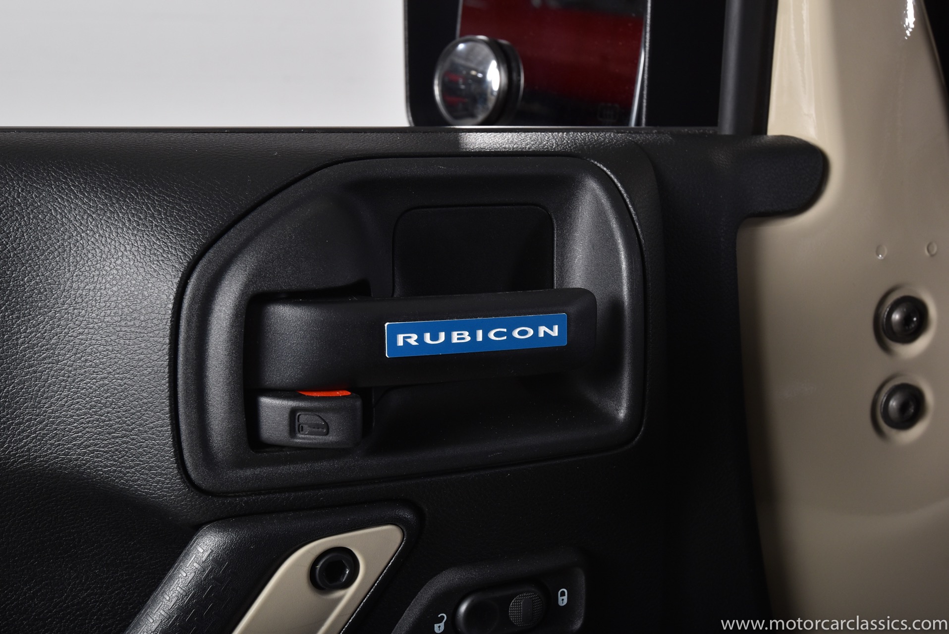 2018 Jeep Wrangler JK Rubicon for sale! Motorcar Classics is pleased to present this 2018 JEEP Wrangler JK Rubicon featured in Gobi tan clearcoat with black cloth interior. The front and back seats are fitted with striking black and tan seat neoprene seat skins. This awesome two-owner Jeep has covered just over 15k miles and still has 9 months or 20k miles remaining on the factory warranty, and additional coverage is available directly from FCA.