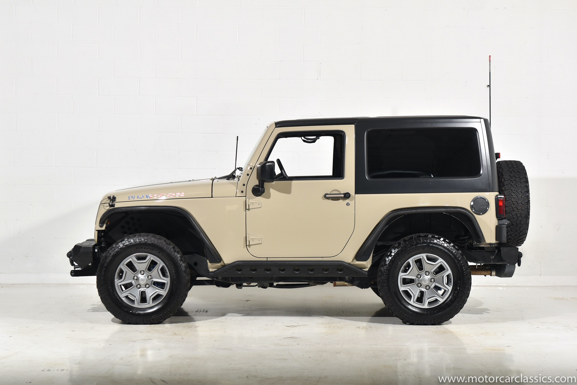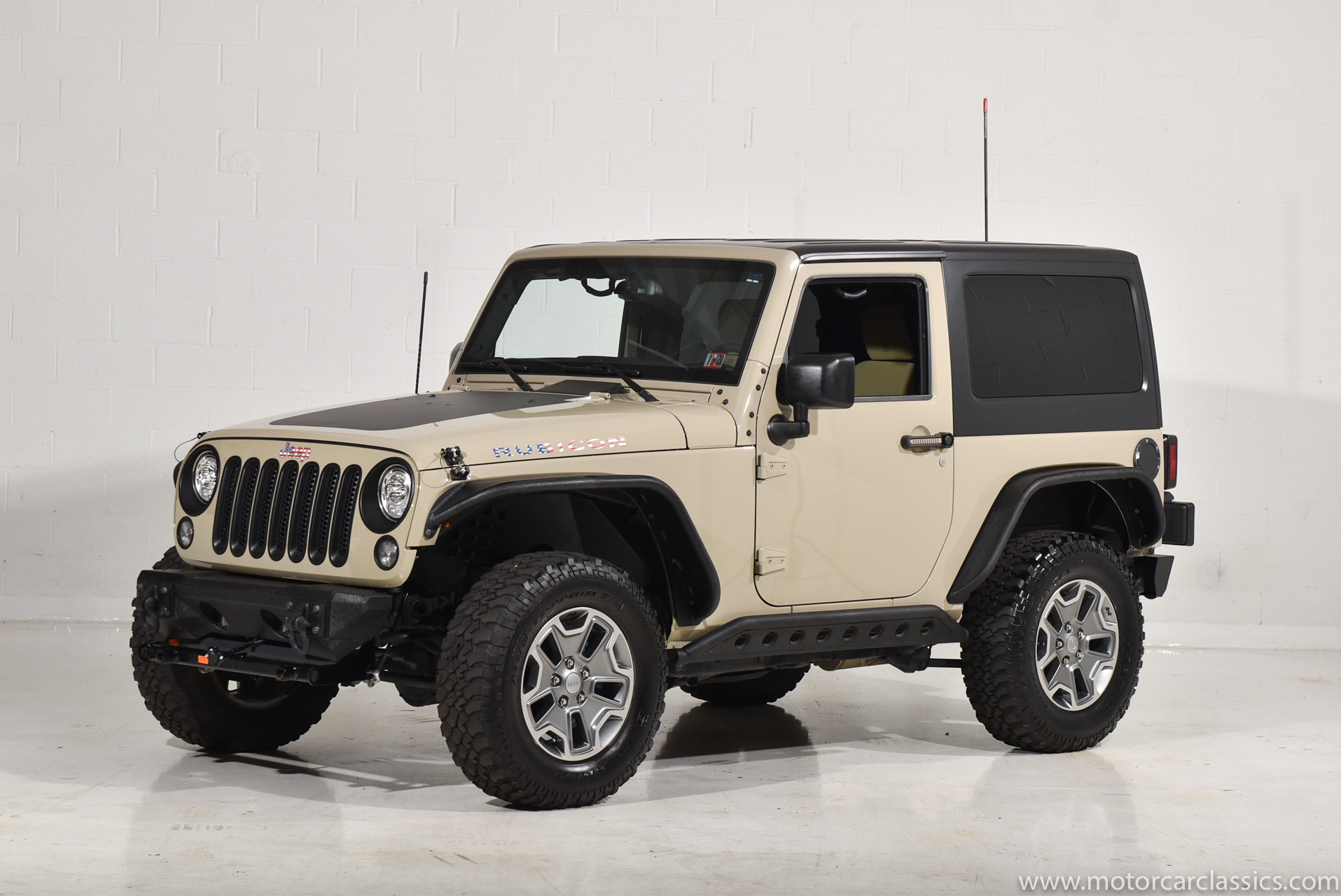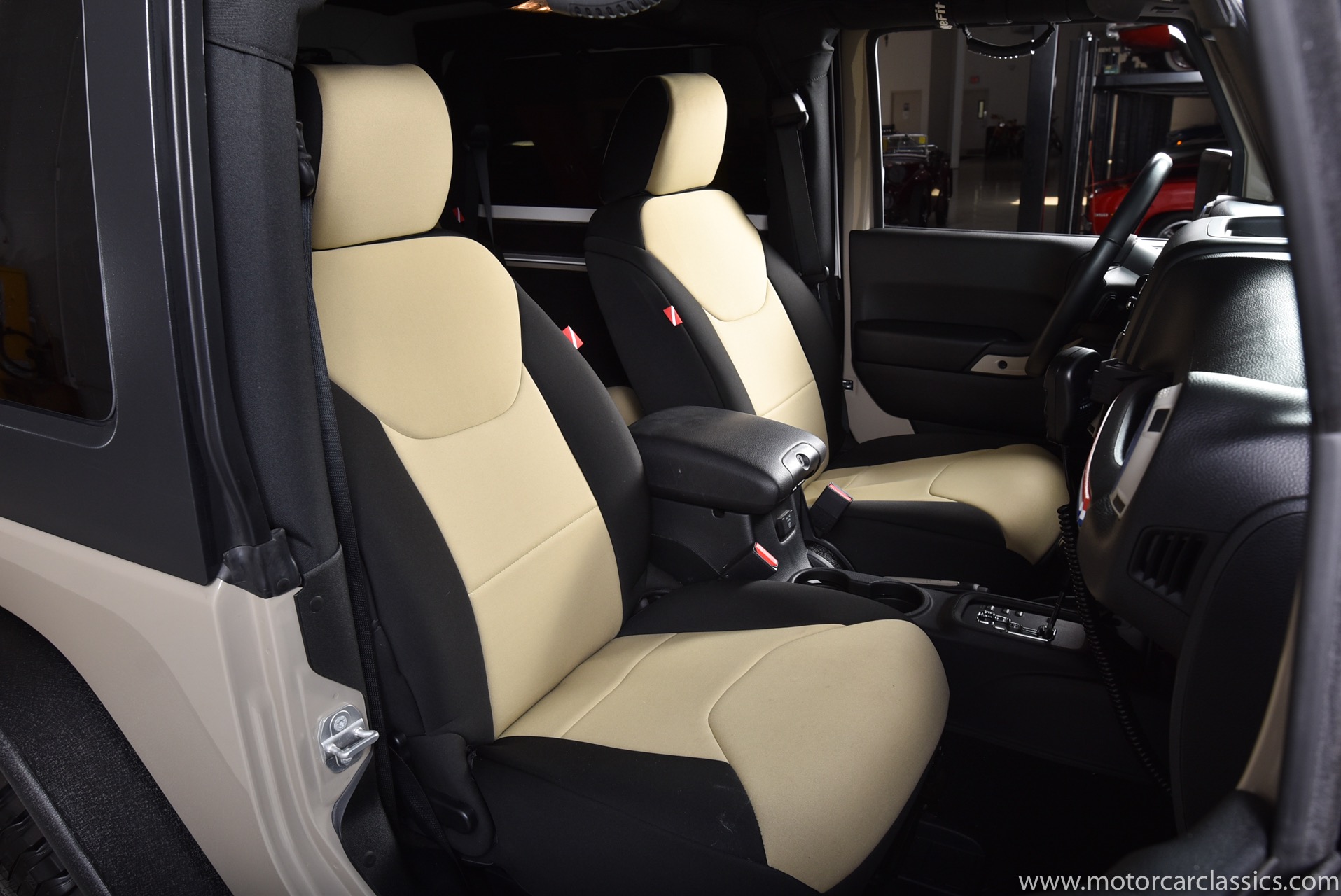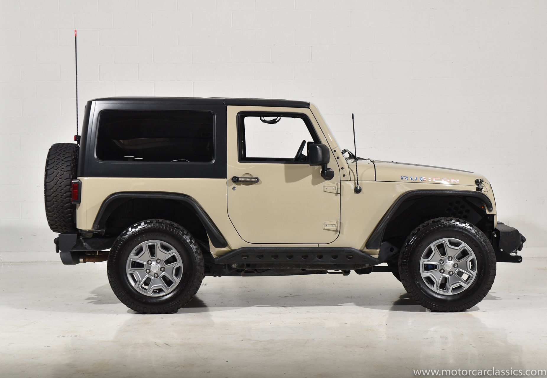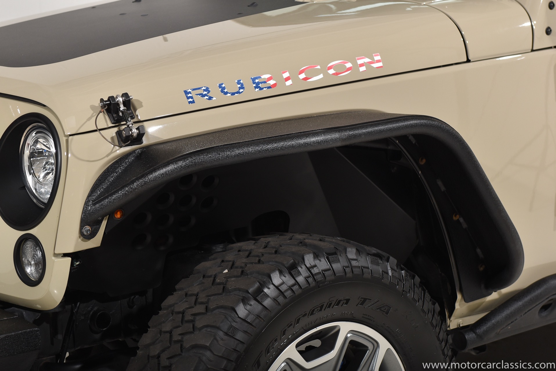 2018 Jeep Wrangler JK Rubicon for sale! Motorcar Classics is pleased to present this 2018 JEEP Wrangler JK Rubicon featured in Gobi tan clearcoat with black cloth interior. The front and back seats are fitted with striking black and tan seat neoprene seat skins. This awesome two-owner Jeep has covered just over 15k miles and still has 9 months or 20k miles remaining on the factory warranty, and additional coverage is available directly from FCA.