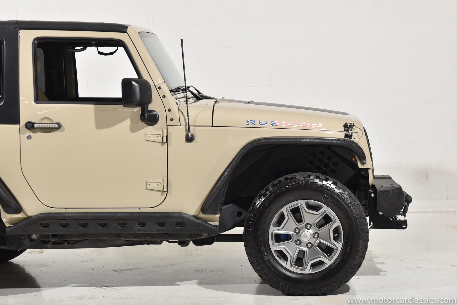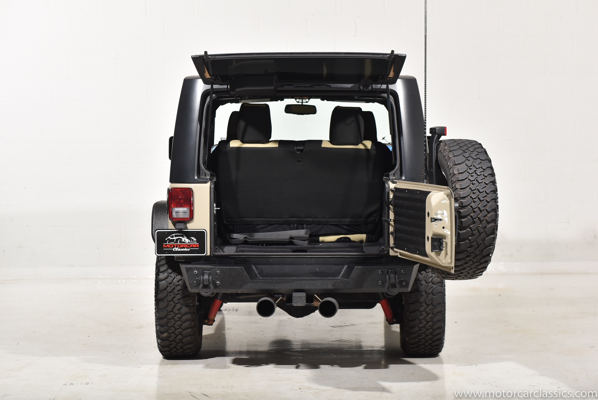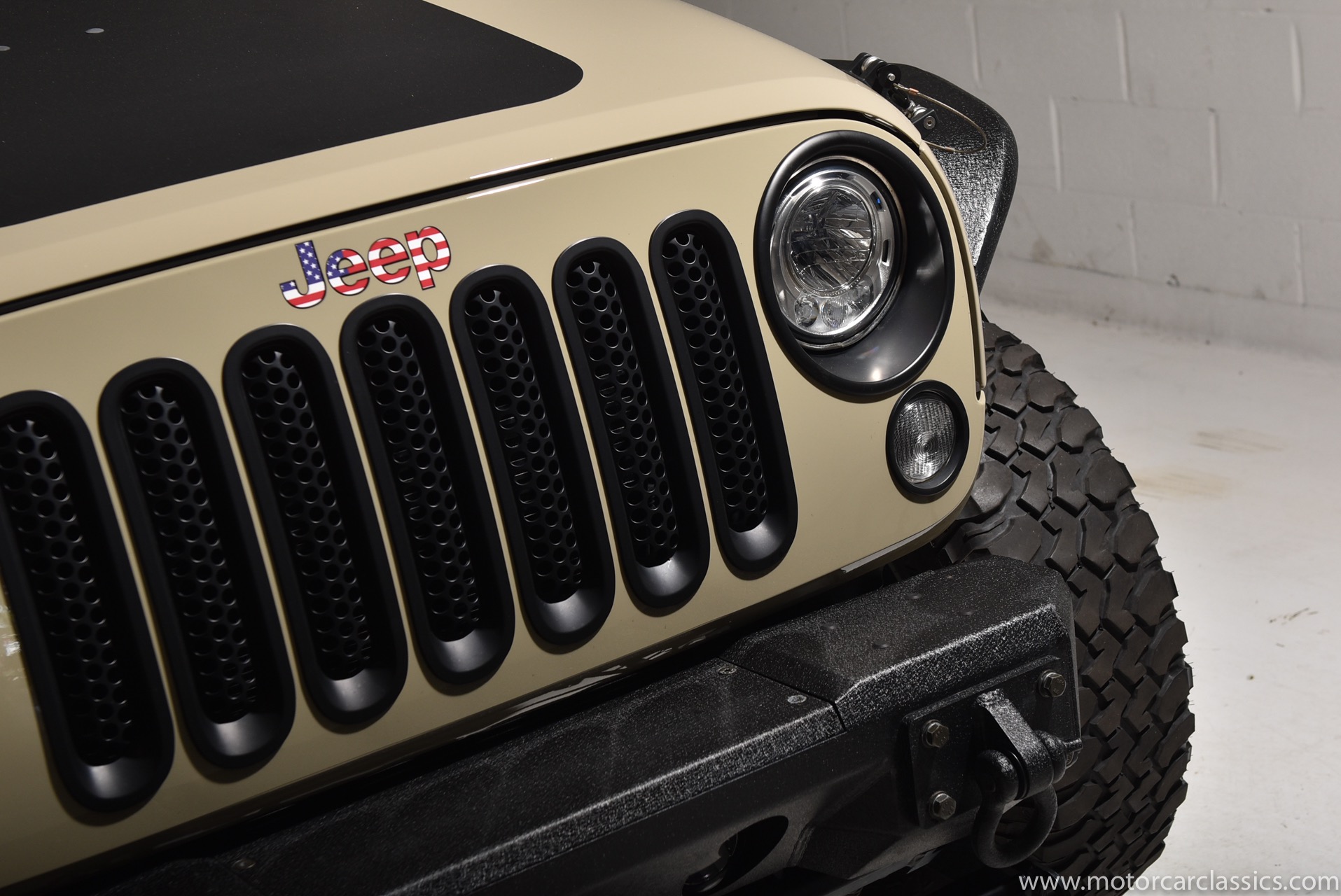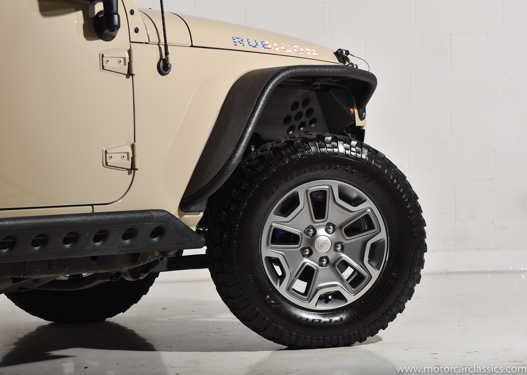 2018 Jeep Wrangler JK Rubicon for sale! Motorcar Classics is pleased to present this 2018 JEEP Wrangler JK Rubicon featured in Gobi tan clearcoat with black cloth interior. The front and back seats are fitted with striking black and tan seat neoprene seat skins. This awesome two-owner Jeep has covered just over 15k miles and still has 9 months or 20k miles remaining on the factory warranty, and additional coverage is available directly from FCA.