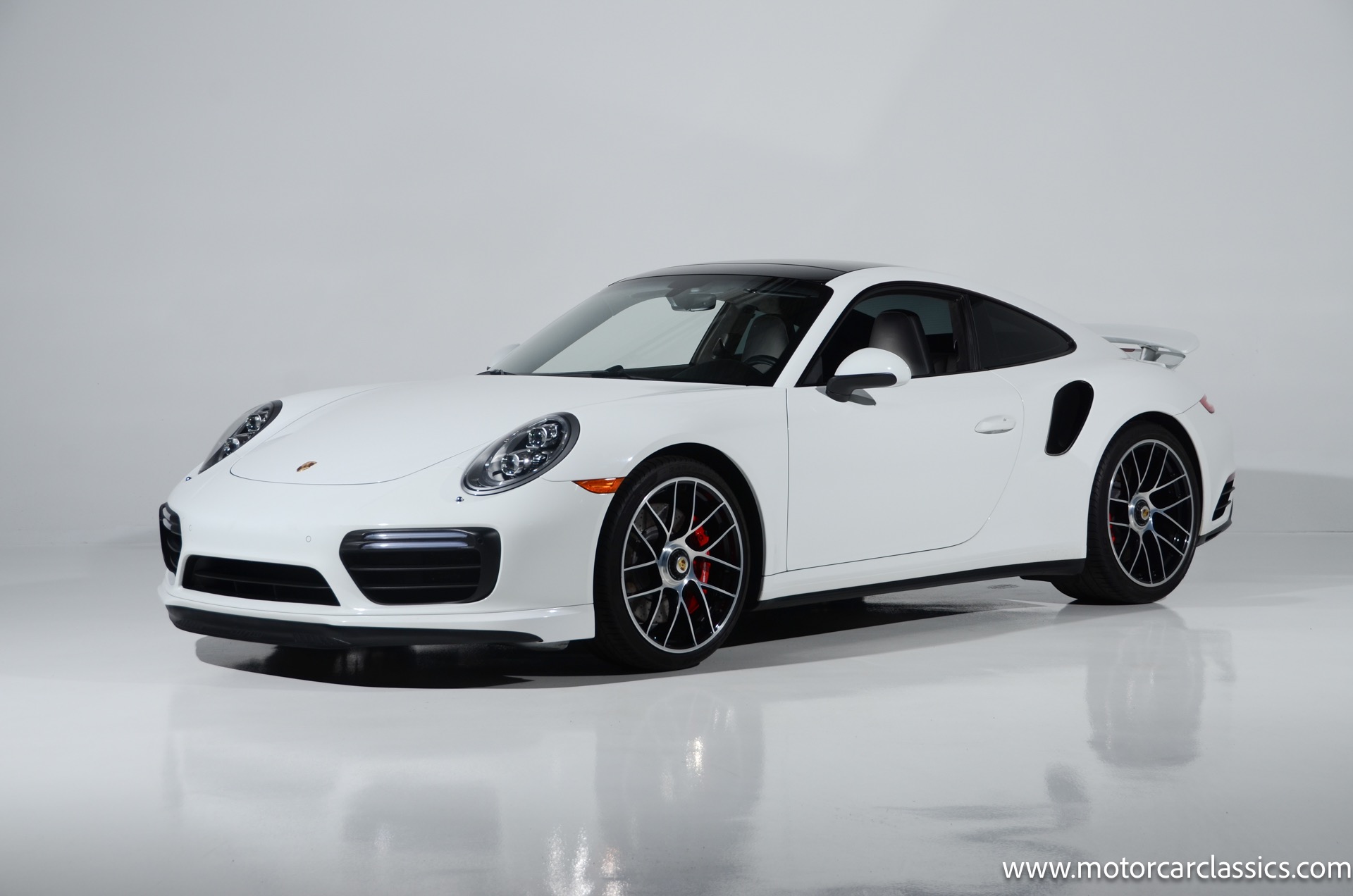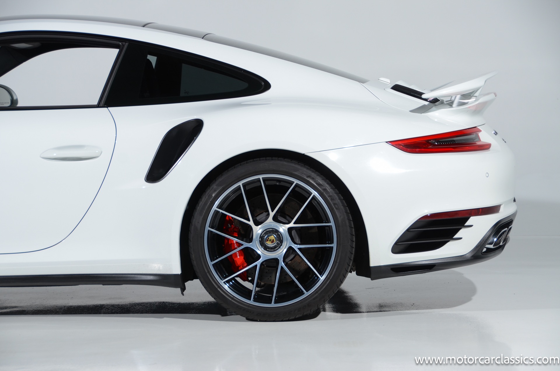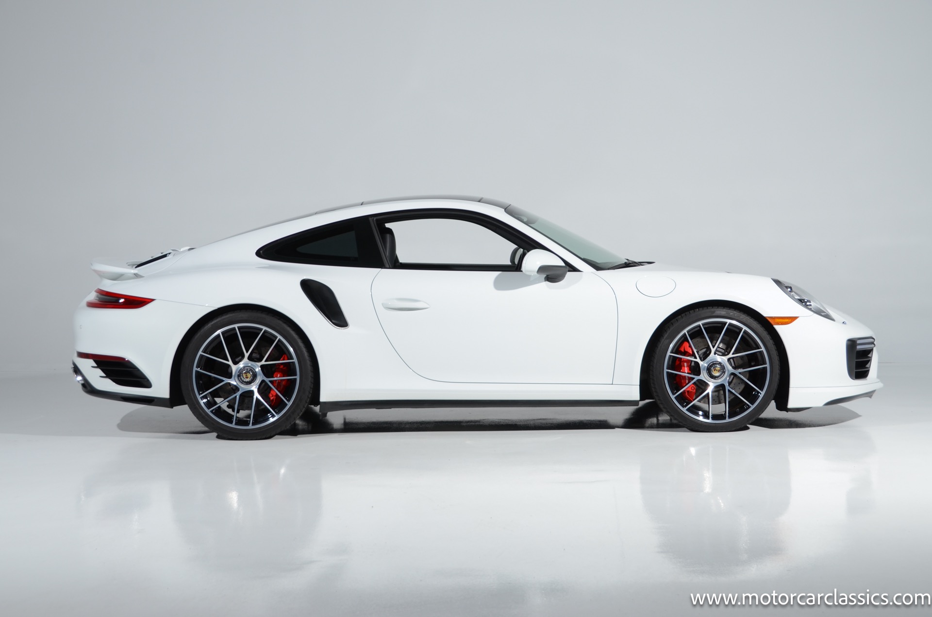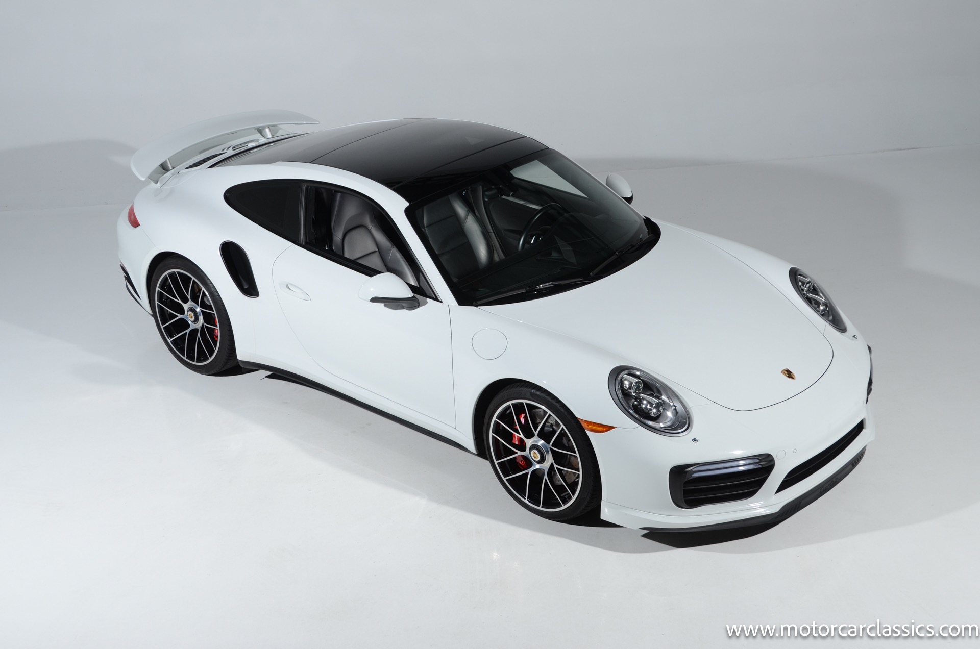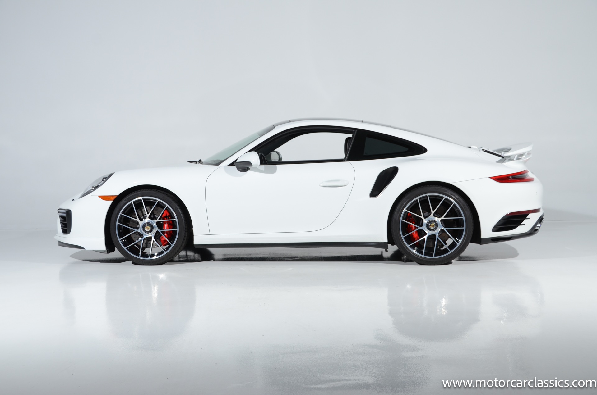 2018 Porsche 911 Turbo for sale! Motorcar Classics is proud to present the epitome of automotive excellence with this exceptional 2018 Porsche 911 Turbo Coupe, boasting a mere 24,109 miles on the odometer. This meticulously maintained masterpiece combines breathtaking performance with luxurious comfort, presented in a sleek white exterior that exudes sophistication. The eye-catching 20" 911 Turbo S wheels not only enhance its visual appeal but also contribute to its superior handling capabilities. Step inside to experience the opulent black leather interior, perfectly complemented by an electric slide/tilt glass sunroof that bathes the cabin in natural light. Powered by a formidable 3.8L H-6 engine, this 911 Turbo delivers exhilarating acceleration and responsive handling, making every drive an unforgettable experience. With its low mileage, stunning aesthetics, and unparalleled engineering, this Porsche 911 Turbo Coupe represents a rare opportunity to own a nearly new example of one of the world's most coveted sports cars. Whether you're a passionate enthusiast or a discerning collector, this 2018 Porsche 911 Turbo promises to deliver the ultimate driving experience that only a Porsche can provide. Your inspection is invited!