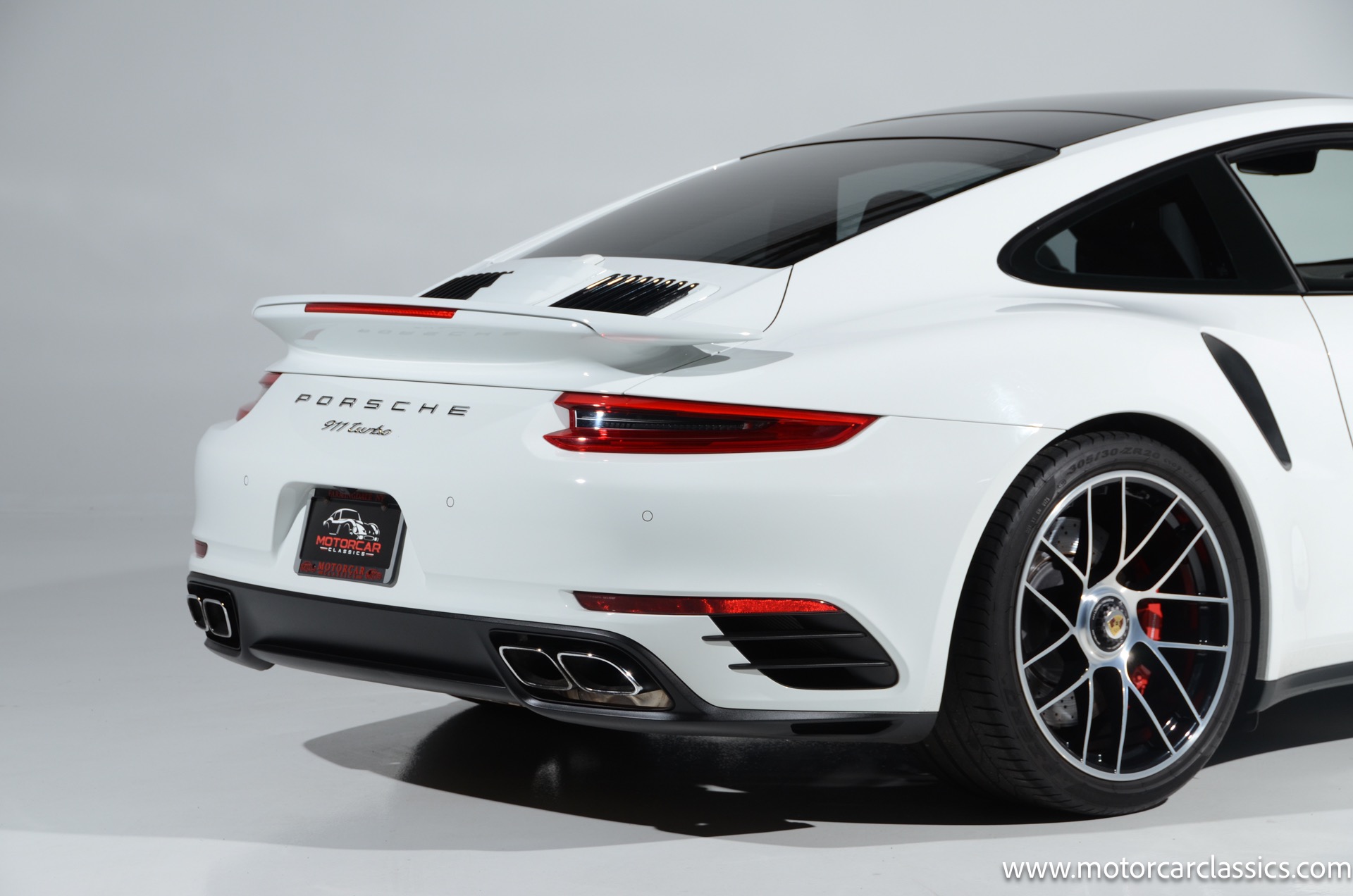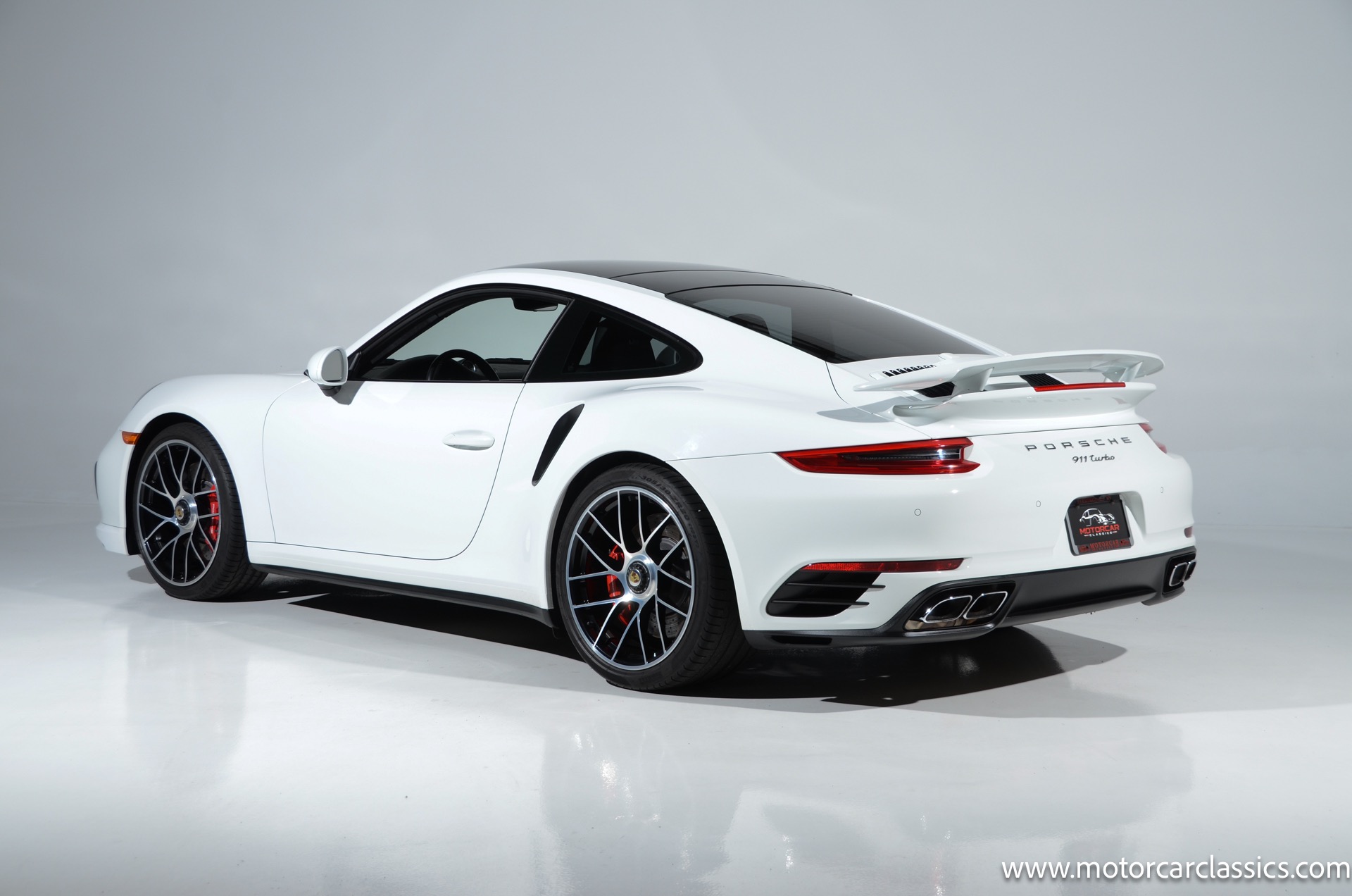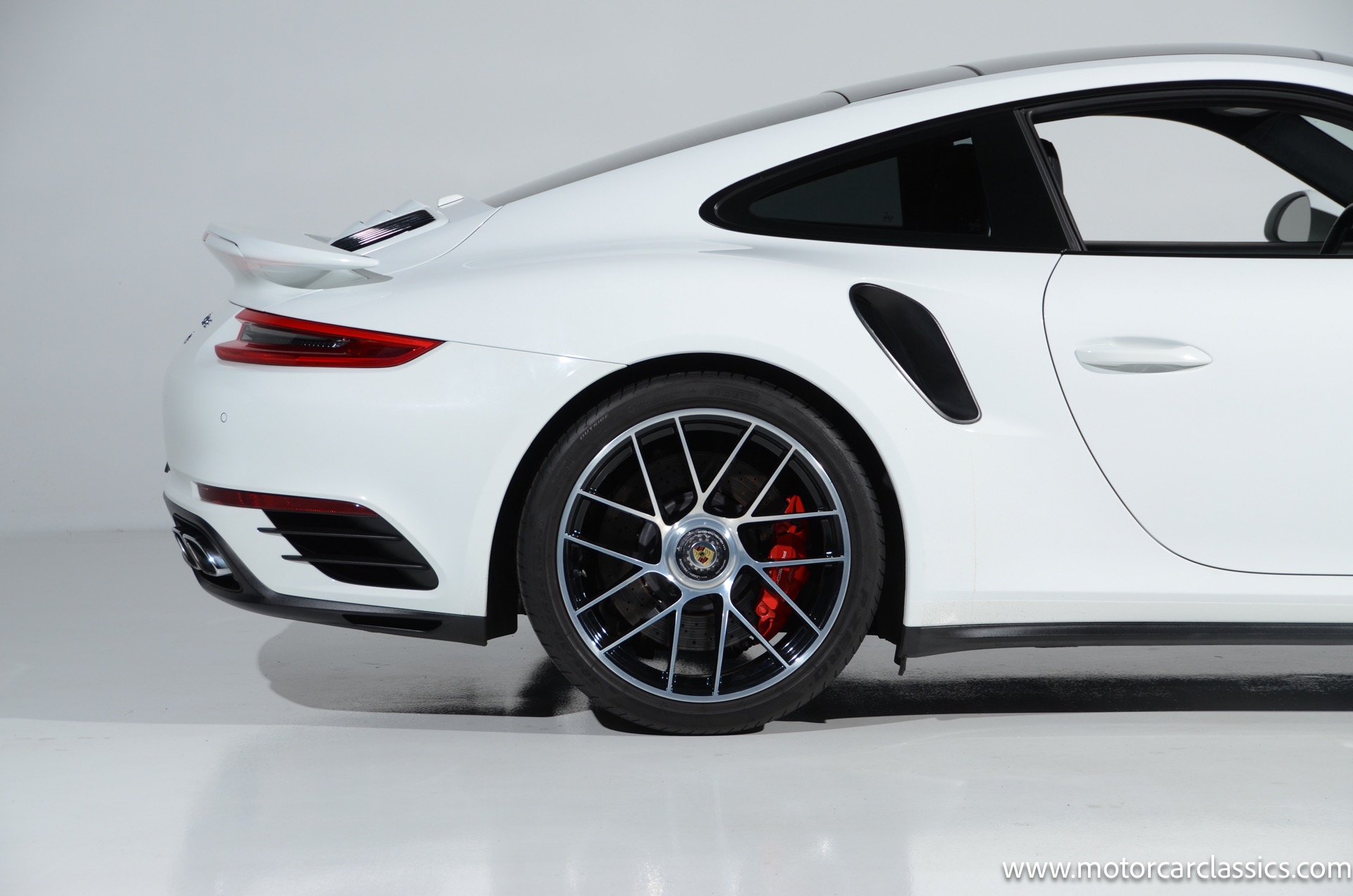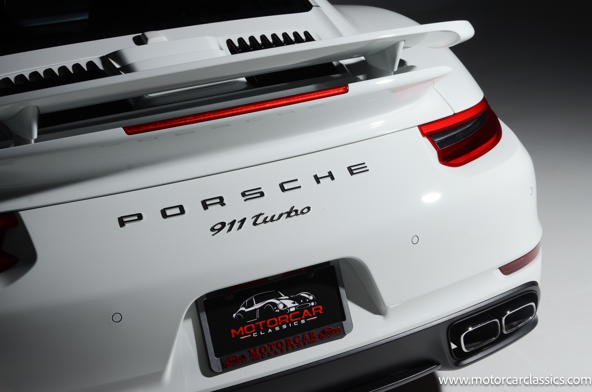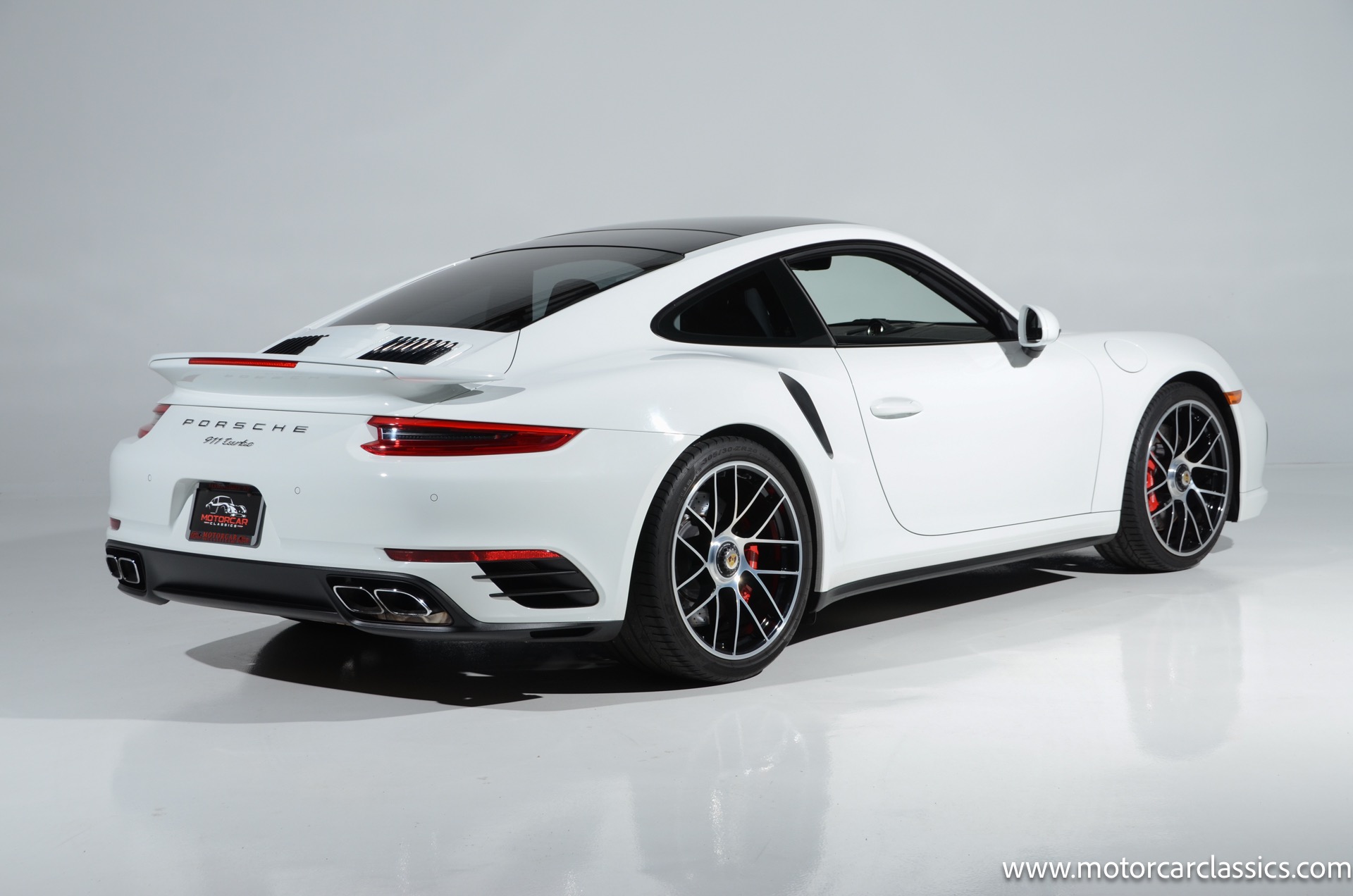 2018 Porsche 911 Turbo for sale! Motorcar Classics is proud to present the epitome of automotive excellence with this exceptional 2018 Porsche 911 Turbo Coupe, boasting a mere 24,109 miles on the odometer. This meticulously maintained masterpiece combines breathtaking performance with luxurious comfort, presented in a sleek white exterior that exudes sophistication. The eye-catching 20" 911 Turbo S wheels not only enhance its visual appeal but also contribute to its superior handling capabilities. Step inside to experience the opulent black leather interior, perfectly complemented by an electric slide/tilt glass sunroof that bathes the cabin in natural light. Powered by a formidable 3.8L H-6 engine, this 911 Turbo delivers exhilarating acceleration and responsive handling, making every drive an unforgettable experience. With its low mileage, stunning aesthetics, and unparalleled engineering, this Porsche 911 Turbo Coupe represents a rare opportunity to own a nearly new example of one of the world's most coveted sports cars. Whether you're a passionate enthusiast or a discerning collector, this 2018 Porsche 911 Turbo promises to deliver the ultimate driving experience that only a Porsche can provide. Your inspection is invited!