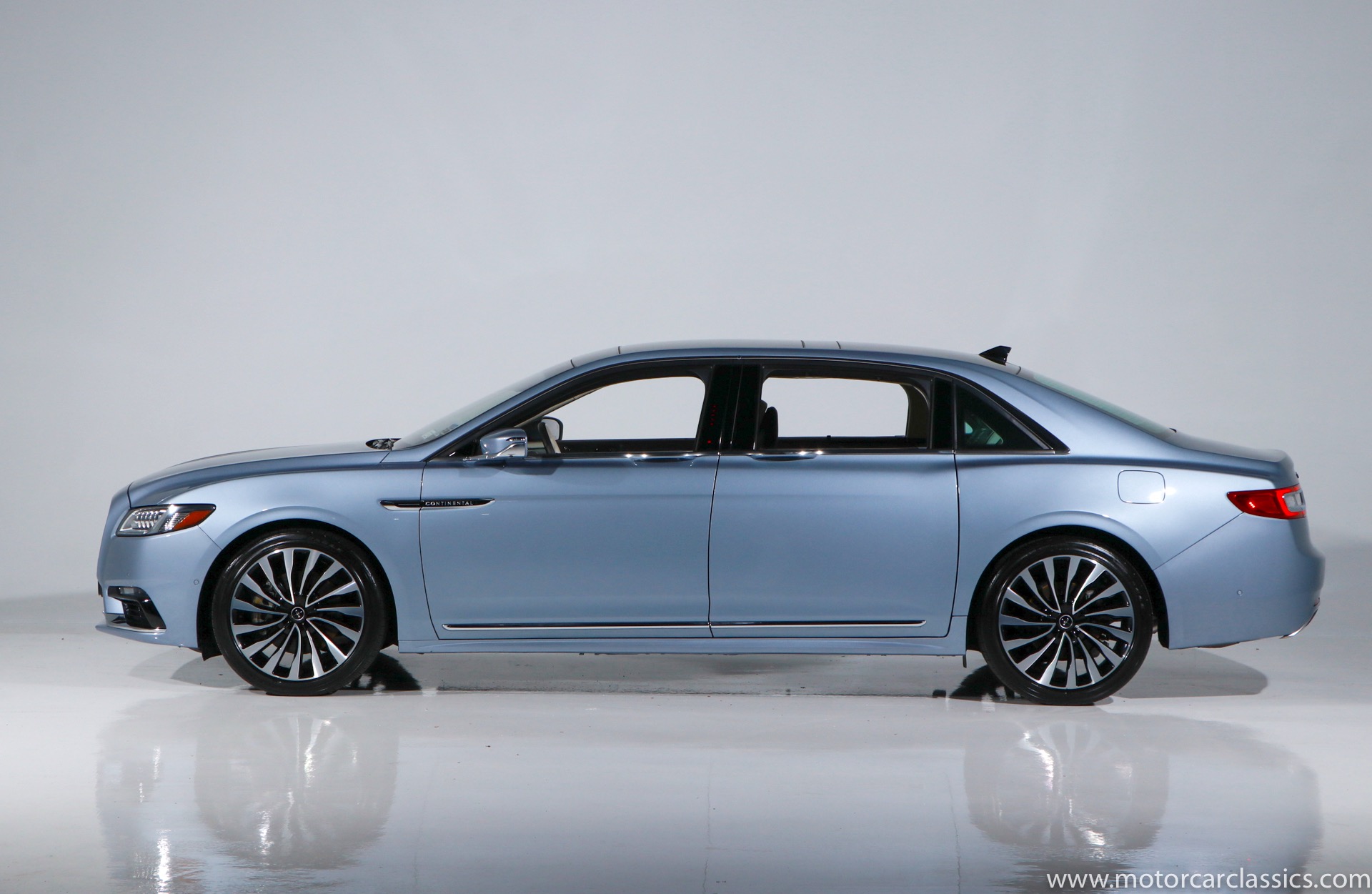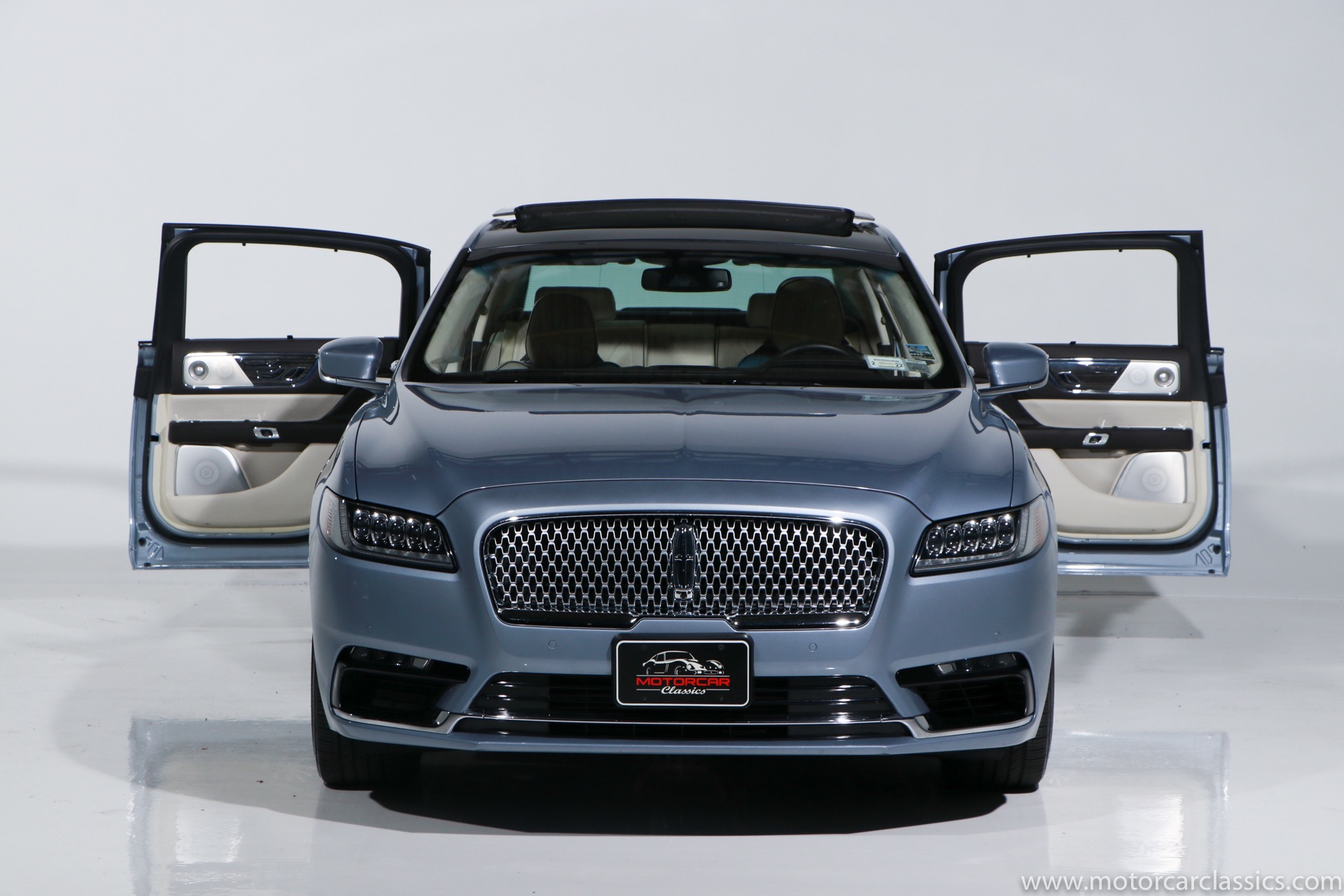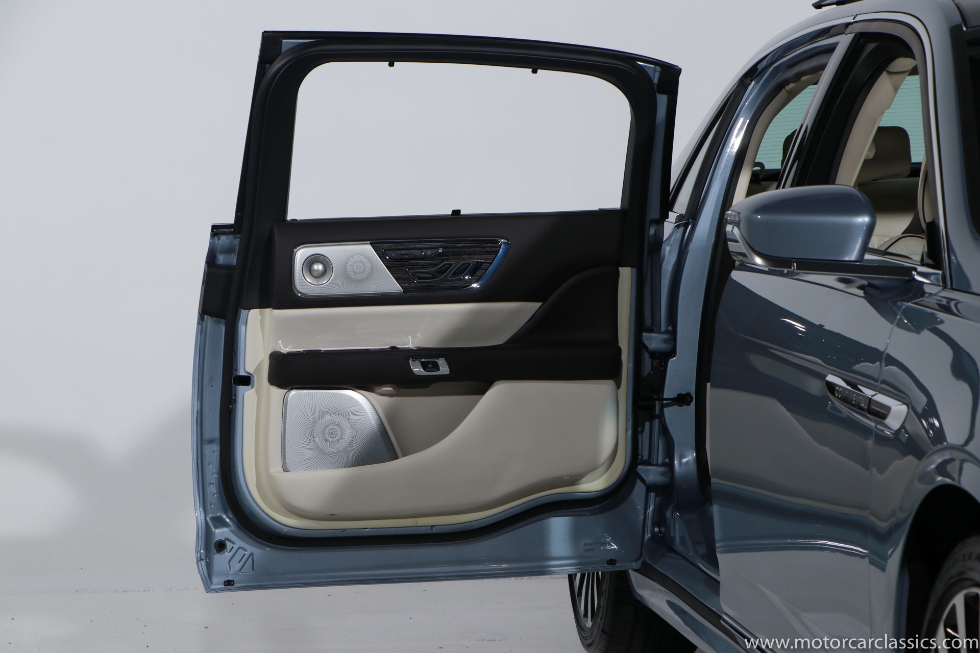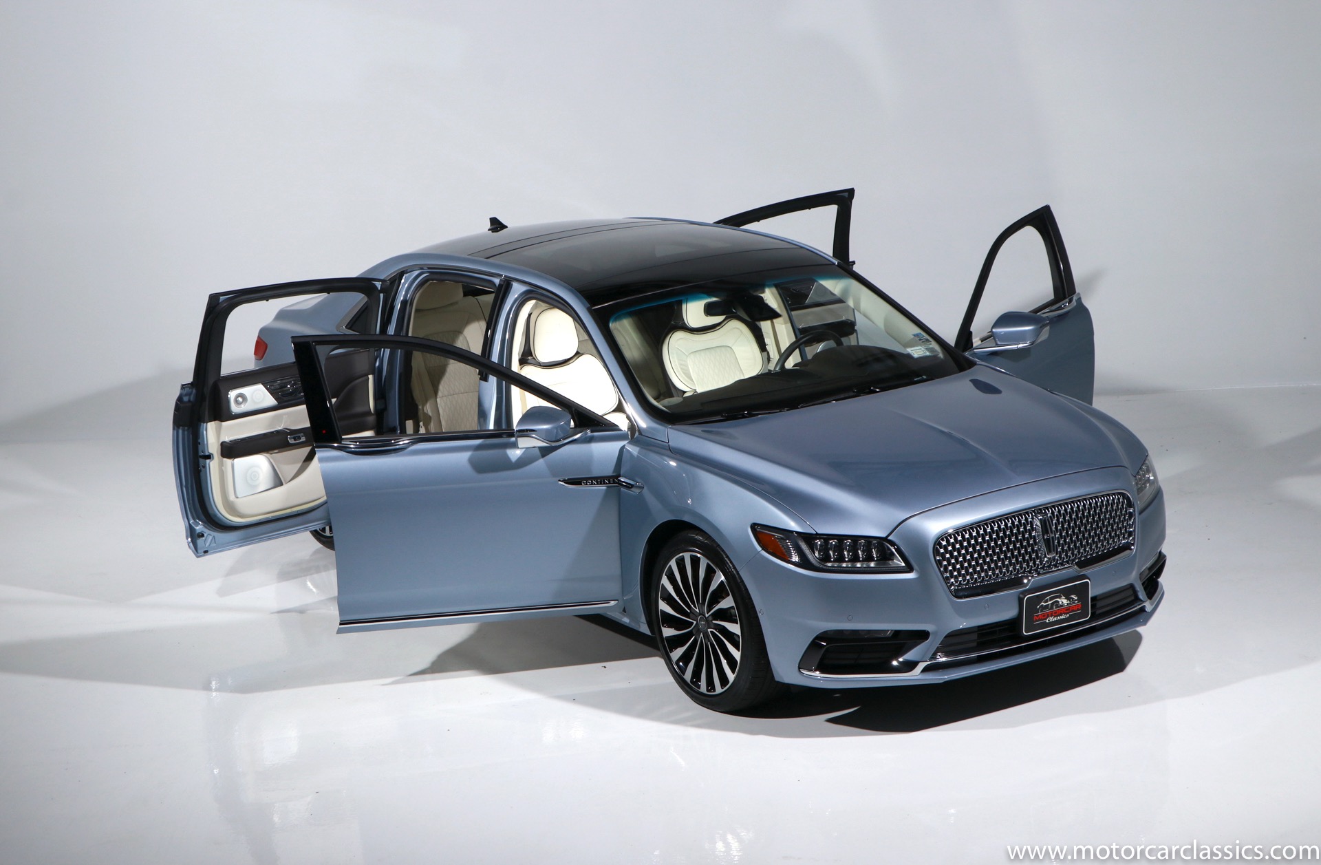 2019 Lincoln Continental Coach Door Edition for sale! Motorcar Classics is proud to present this 2019 Lincoln Continental Coach Door Edition featured in the launch colors of Chroma Crystal Blue Metallic with Alpine Venetian Leather interior. In 2019 the words Lincoln and Continental had been linked for 80 years, and in that merit the 2019 Coach Door Edition was built in a limited run of only 80 cars to mark the anniversary. Not every Lincoln Continental over the years has been a classic, but the 1939 original, the 1956 Mark II and of course the 1961 sedan are all design icons. In honor of the 80th anniversary of the Continental, Lincoln is bringing back one of the key features of the 1961 model for the limited edition 2019 Continental Coach Door Edition. This new Continental retains the standard B-pillar. However, the rear hinged doors do make it easier for affluent passengers to make a graceful exit from the back seat when arriving at the movie premier or fancy restaurant. Further aiding the ease of entry and exit is a six-inch stretch behind the B-pillar. That extra span makes an already roomy back seat downright cavernous. All of the engineering and design work to create this new Continental variant was done in Dearborn. The new sheet metal parts including the doors and various body and frame extensions were fabricated at a local custom stamping shop in Michigan. The cars were all built as standard Continental Black Label models at the Ford Flat Rock Assembly plant and shipped along with a kit of parts including fully assembled rear doors to Cabot Coach Builders in Massachusetts. Cabot is a Ford Qualified Vehicle Modifier that already does a number of other conversions on Ford and Lincoln vehicles. They removed much of the interior, cut the body in half and inserted the six-inch stretch before repainting and assembling the car into a coach door edition. All of the Coach Door models had the Black Label package and were powered by the twin-turbo 3.0-liter V6 with 400-hp and a torque-vectoring all-wheel-drive system.