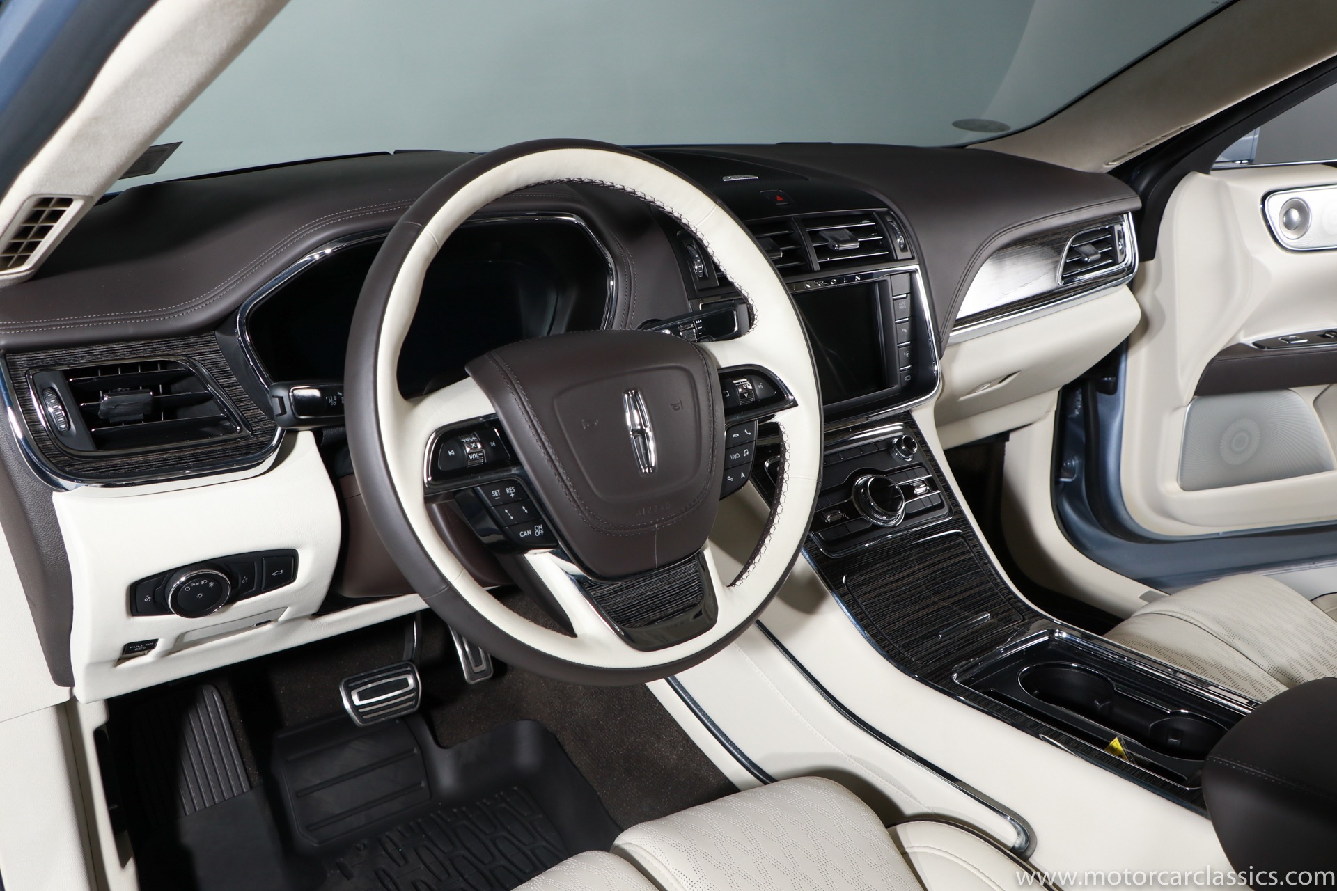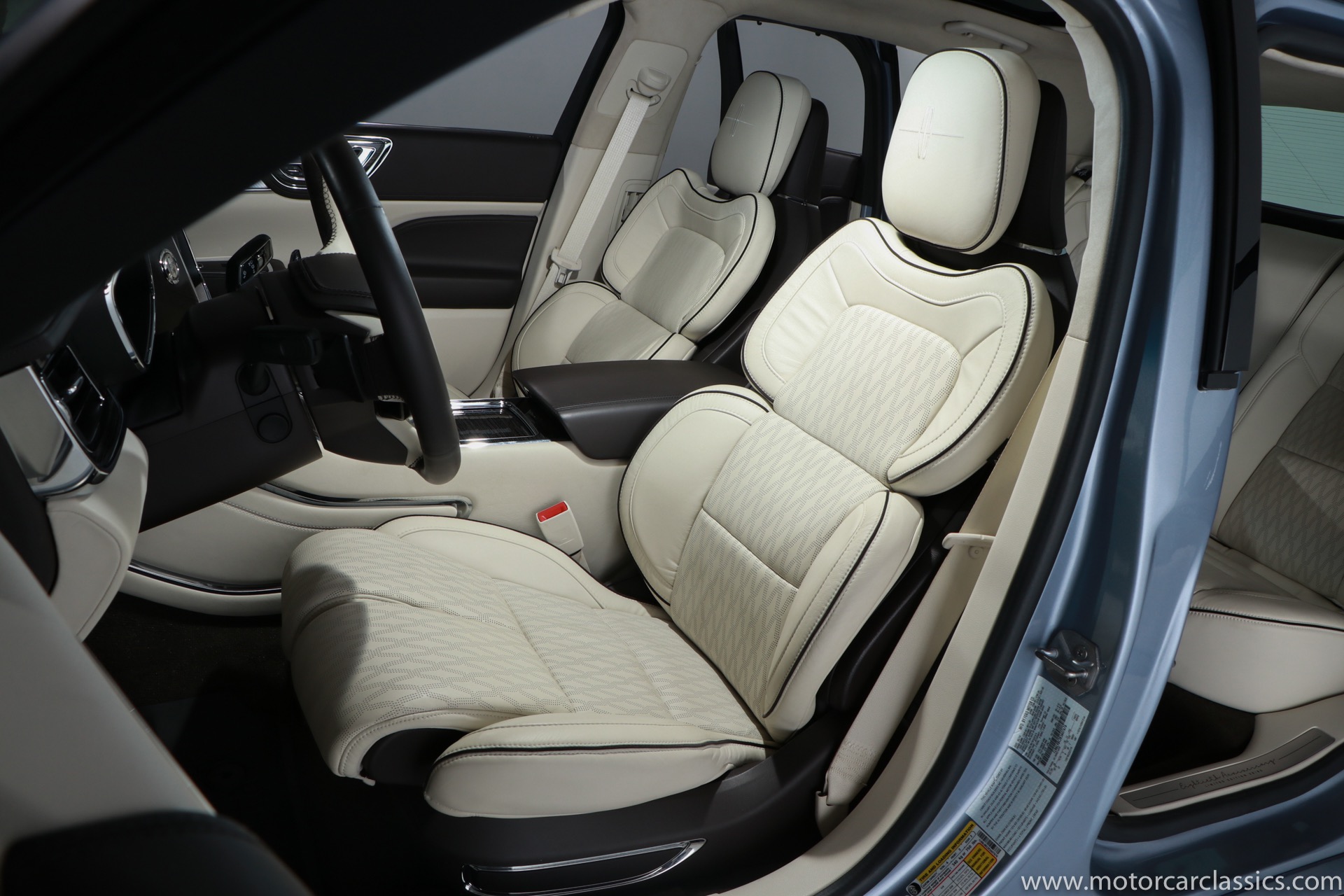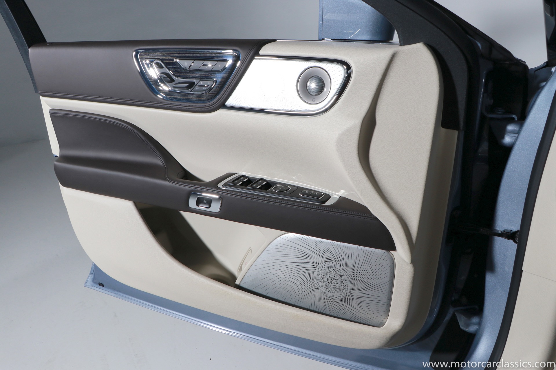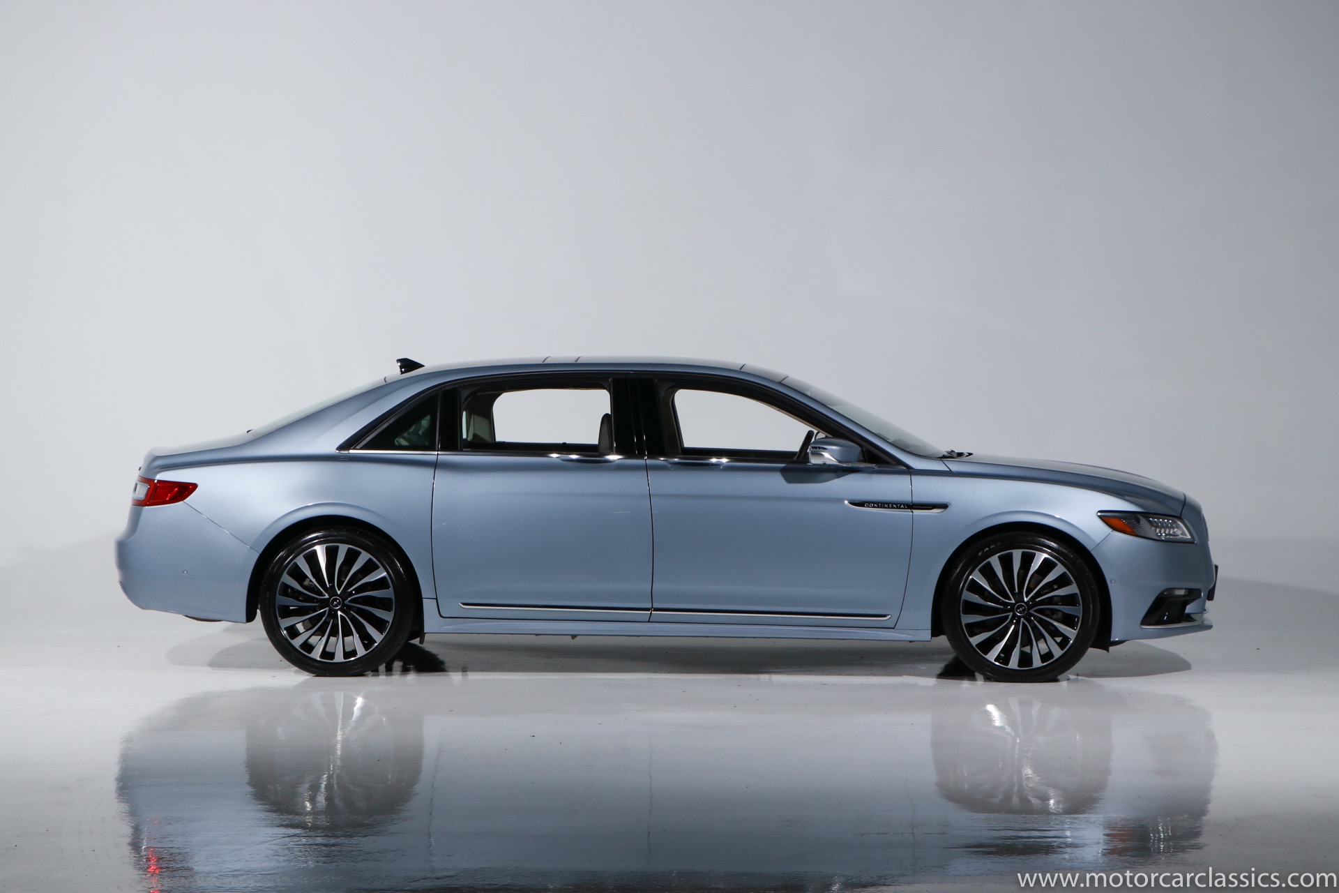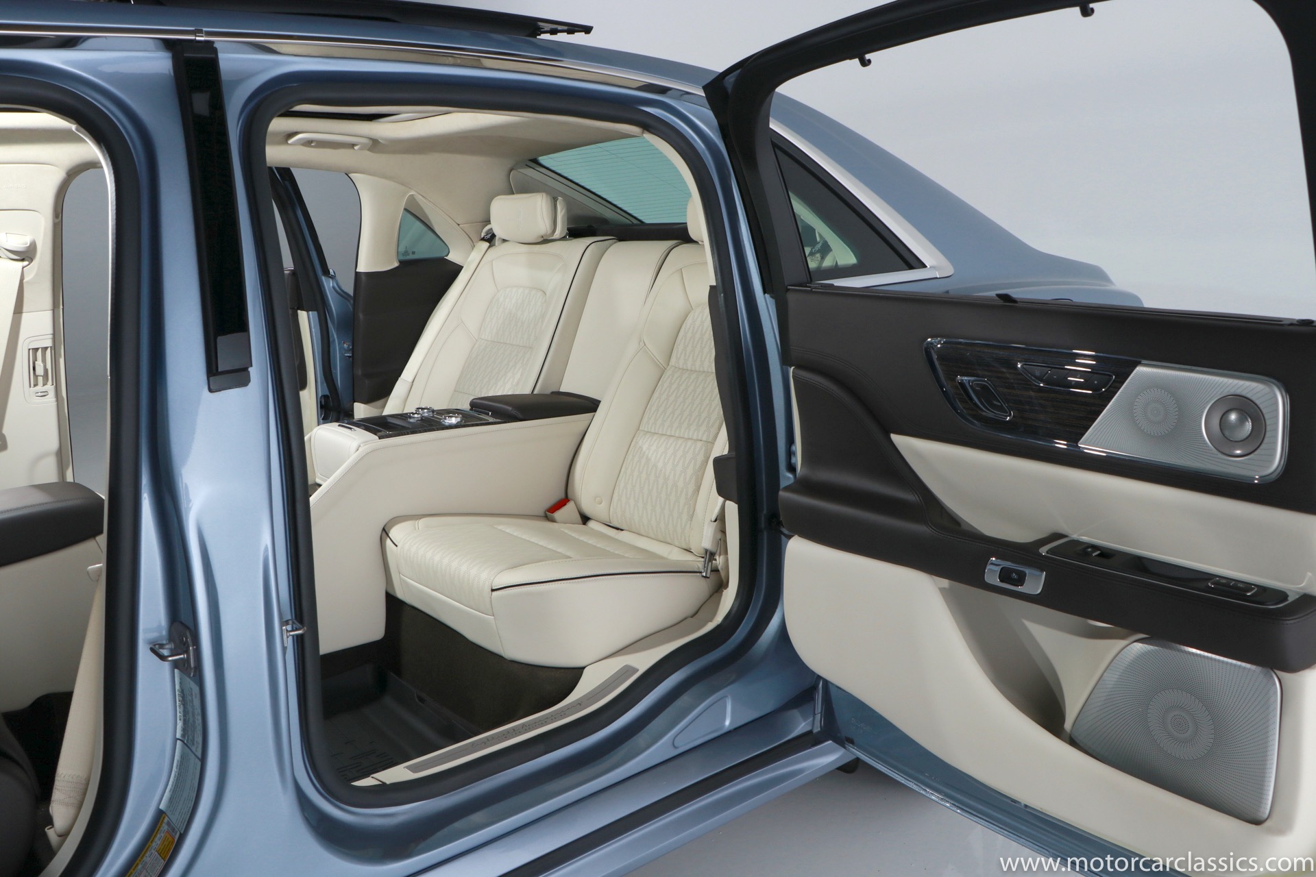 2019 Lincoln Continental Coach Door Edition for sale! Motorcar Classics is proud to present this 2019 Lincoln Continental Coach Door Edition featured in the launch colors of Chroma Crystal Blue Metallic with Alpine Venetian Leather interior. In 2019 the words Lincoln and Continental had been linked for 80 years, and in that merit the 2019 Coach Door Edition was built in a limited run of only 80 cars to mark the anniversary. Not every Lincoln Continental over the years has been a classic, but the 1939 original, the 1956 Mark II and of course the 1961 sedan are all design icons. In honor of the 80th anniversary of the Continental, Lincoln is bringing back one of the key features of the 1961 model for the limited edition 2019 Continental Coach Door Edition. This new Continental retains the standard B-pillar. However, the rear hinged doors do make it easier for affluent passengers to make a graceful exit from the back seat when arriving at the movie premier or fancy restaurant. Further aiding the ease of entry and exit is a six-inch stretch behind the B-pillar. That extra span makes an already roomy back seat downright cavernous. All of the engineering and design work to create this new Continental variant was done in Dearborn. The new sheet metal parts including the doors and various body and frame extensions were fabricated at a local custom stamping shop in Michigan. The cars were all built as standard Continental Black Label models at the Ford Flat Rock Assembly plant and shipped along with a kit of parts including fully assembled rear doors to Cabot Coach Builders in Massachusetts. Cabot is a Ford Qualified Vehicle Modifier that already does a number of other conversions on Ford and Lincoln vehicles. They removed much of the interior, cut the body in half and inserted the six-inch stretch before repainting and assembling the car into a coach door edition. All of the Coach Door models had the Black Label package and were powered by the twin-turbo 3.0-liter V6 with 400-hp and a torque-vectoring all-wheel-drive system.