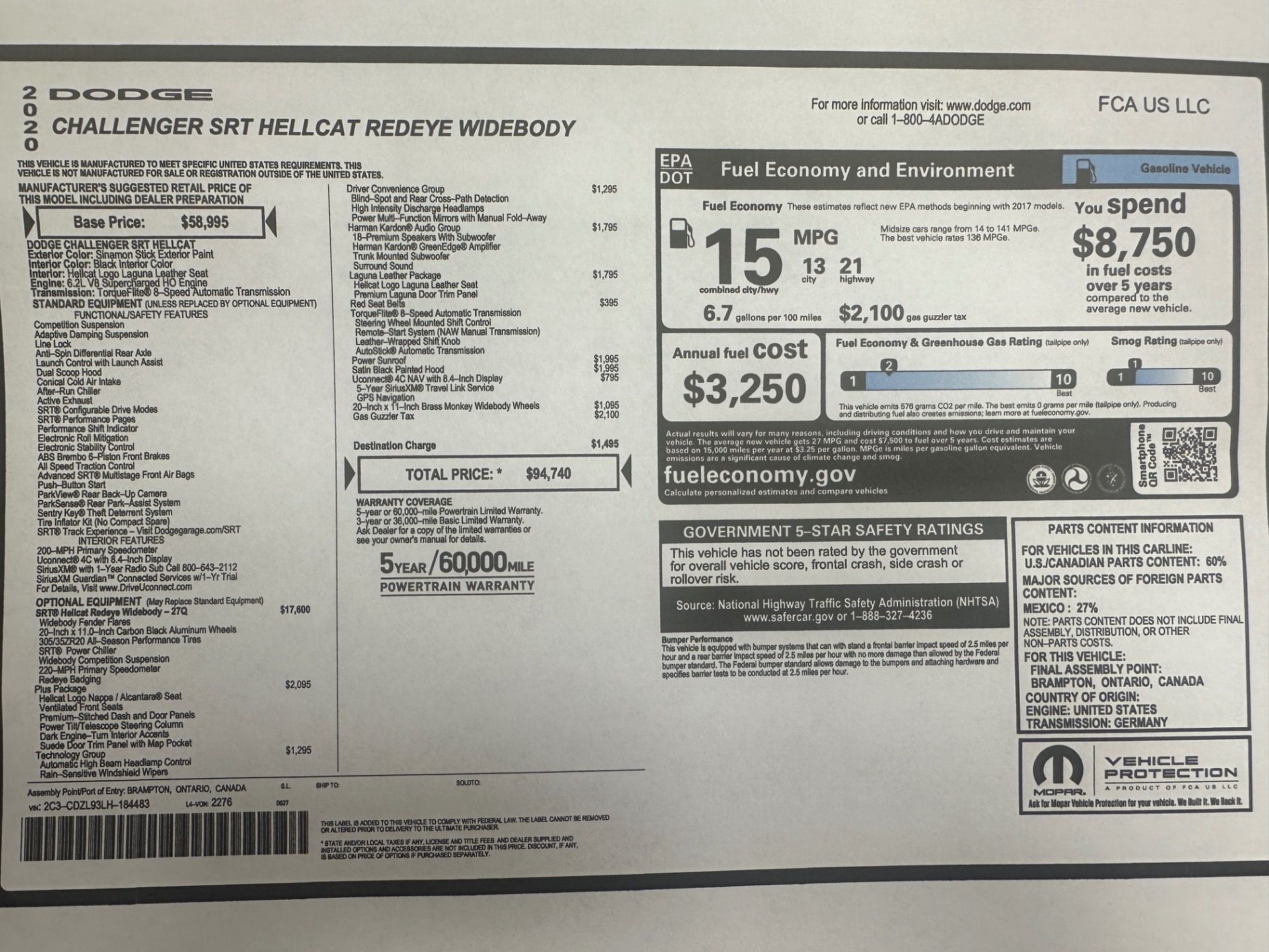 | VIN: | 2C3CDZL93LH184483 |