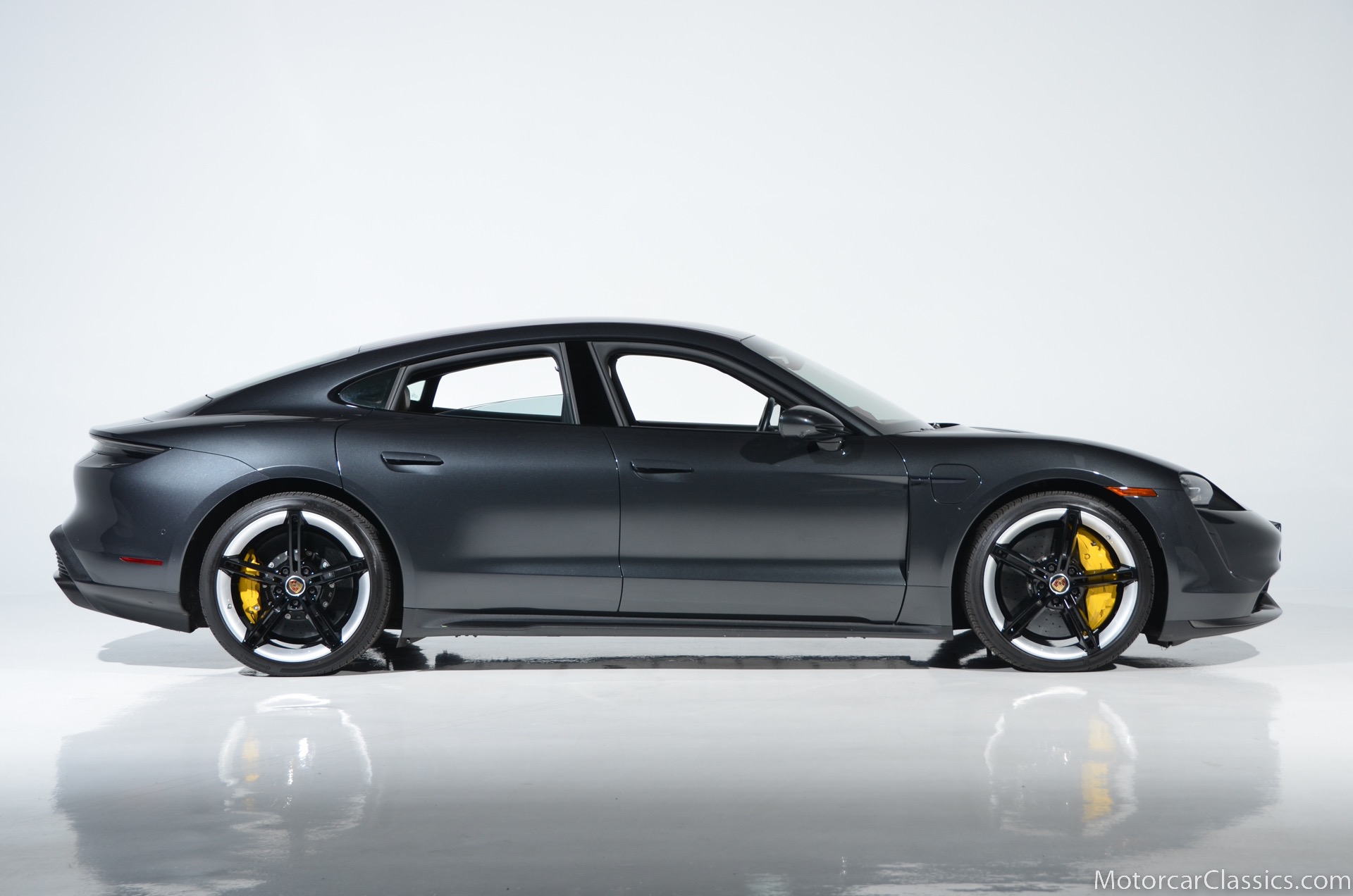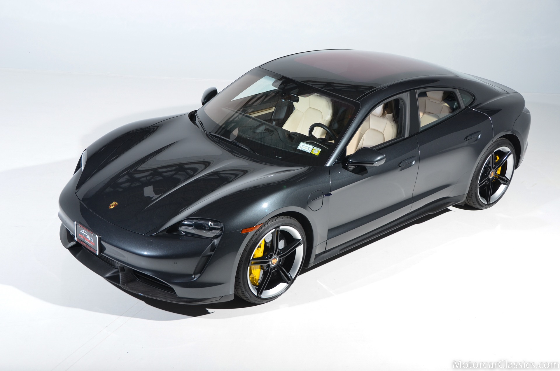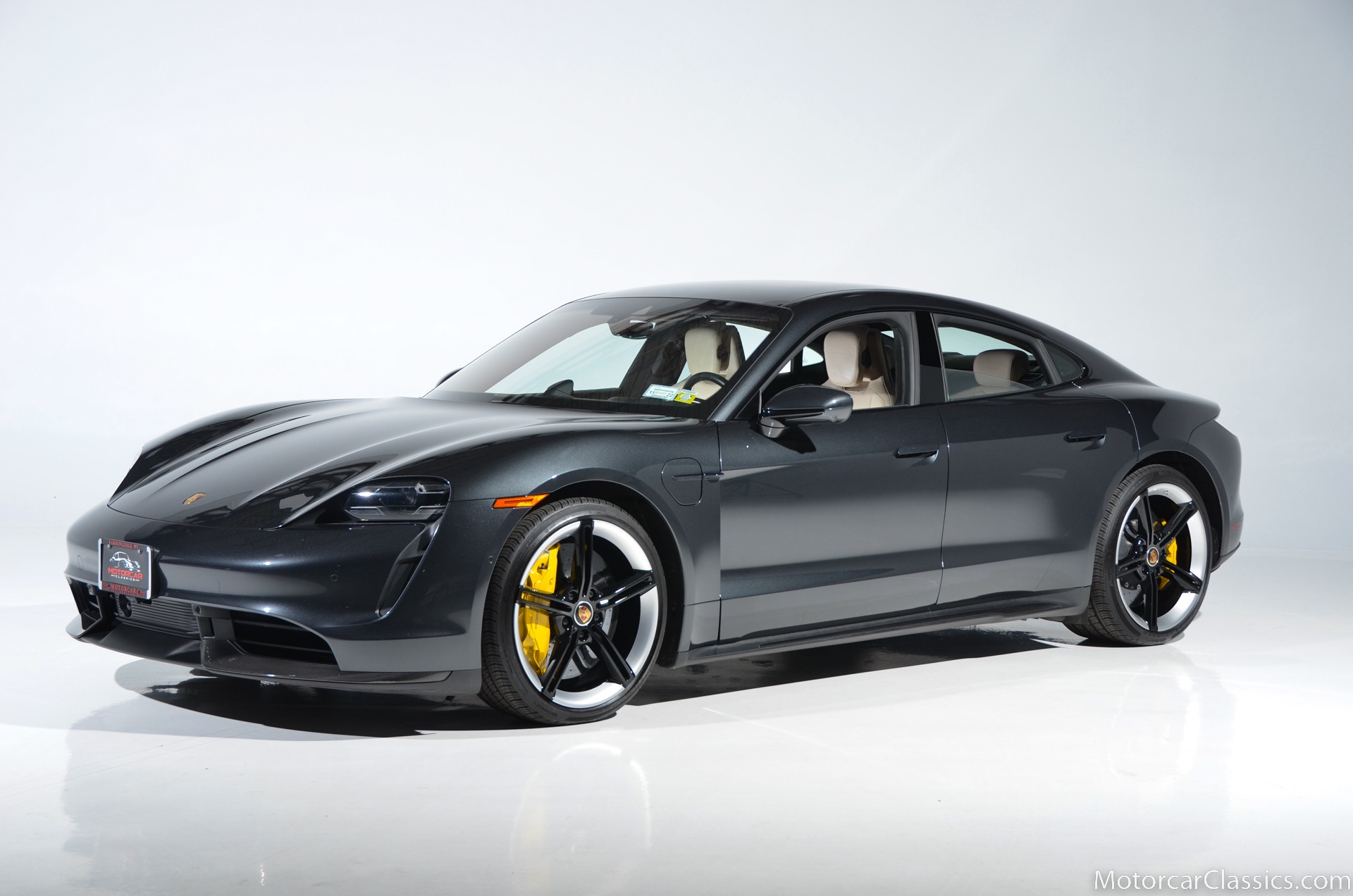 2020 Porsche Taycan Turbo S for sale! Motorcar Classics is pleased to offer this stunning CPO warrantied till 2025 Taycan Turbo S presented in Volcano Grey Metallic with Olea Club leather interior in two-tone Basalt Black & Atacama Beige. Original factory 4 year or 50,000 mile new car warranty began 2019 and goes through Dec 2023. At December 2023, or 50,000 miles (whichever comes first) CPO warranty is activated for 2 years and is good through December 2025! This 1-owner car has just over 7,800 accident free miles. Single-speed transmission on the front axle, 2-speed transmission on the rear axle. 560kW/750HP engine. Options include: Premium Package: Ionizer, storage package, fixed panoramic roof in glass, thermally & noise insulated glass, surround view. Power folding exterior mirrors, Porsche dynamic chassis control sport, all-season tires for 21 wheels, tire sealing compound and electric air compressor, lane change assist, Porsche innoDrive incl. adaptive cruise control, advanced 4-zone climate control, seat ventilation front, steering wheel heating i.c.w. sport chrono package and leather interior, Burmester 3D high-end surround sound system, on-board 150kW/400V dc charger, mobile charger connect, launch vehicle and more! This Taycan comes with a Porsche Wall Charger with the sale. $209,400 MSRP!