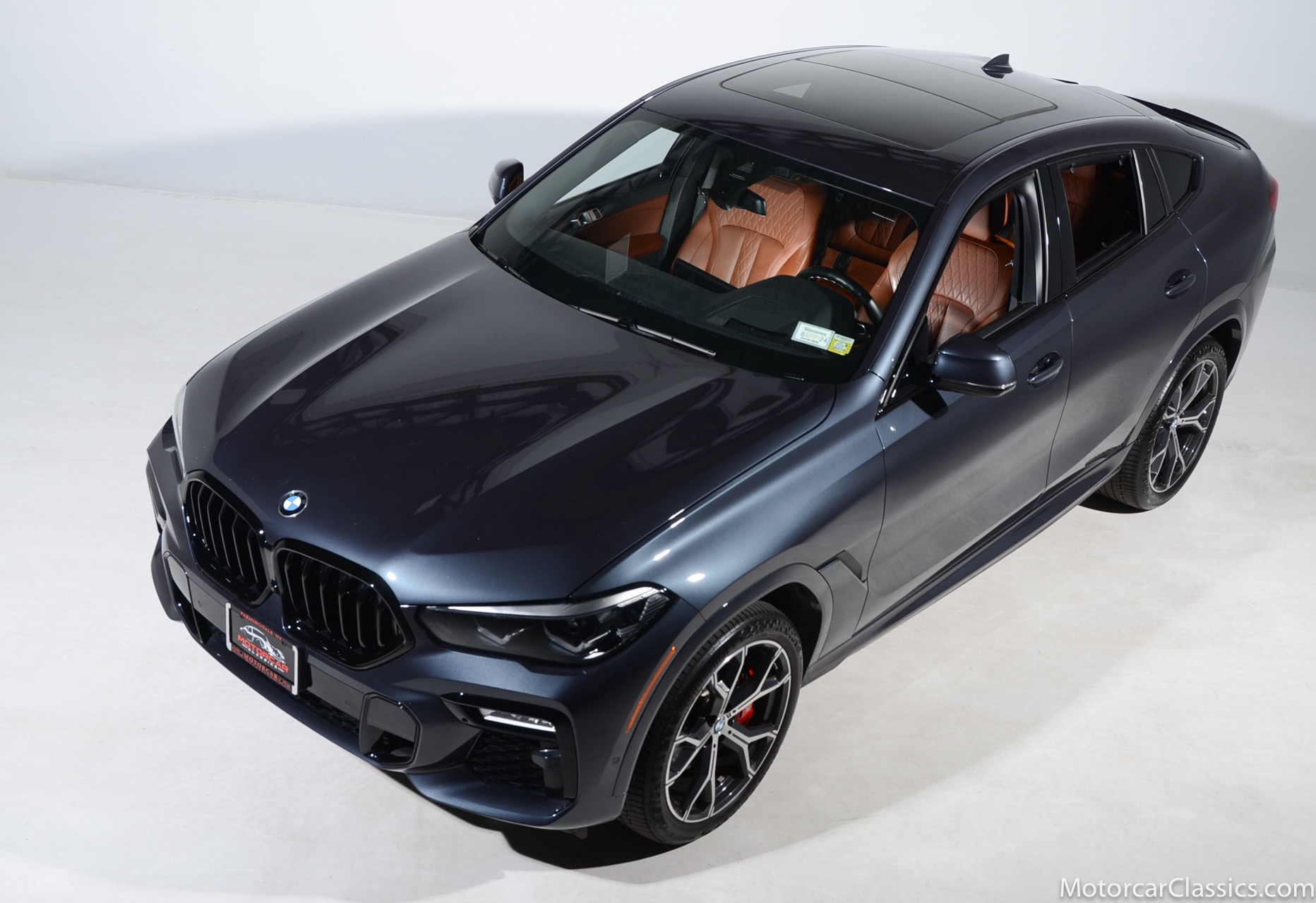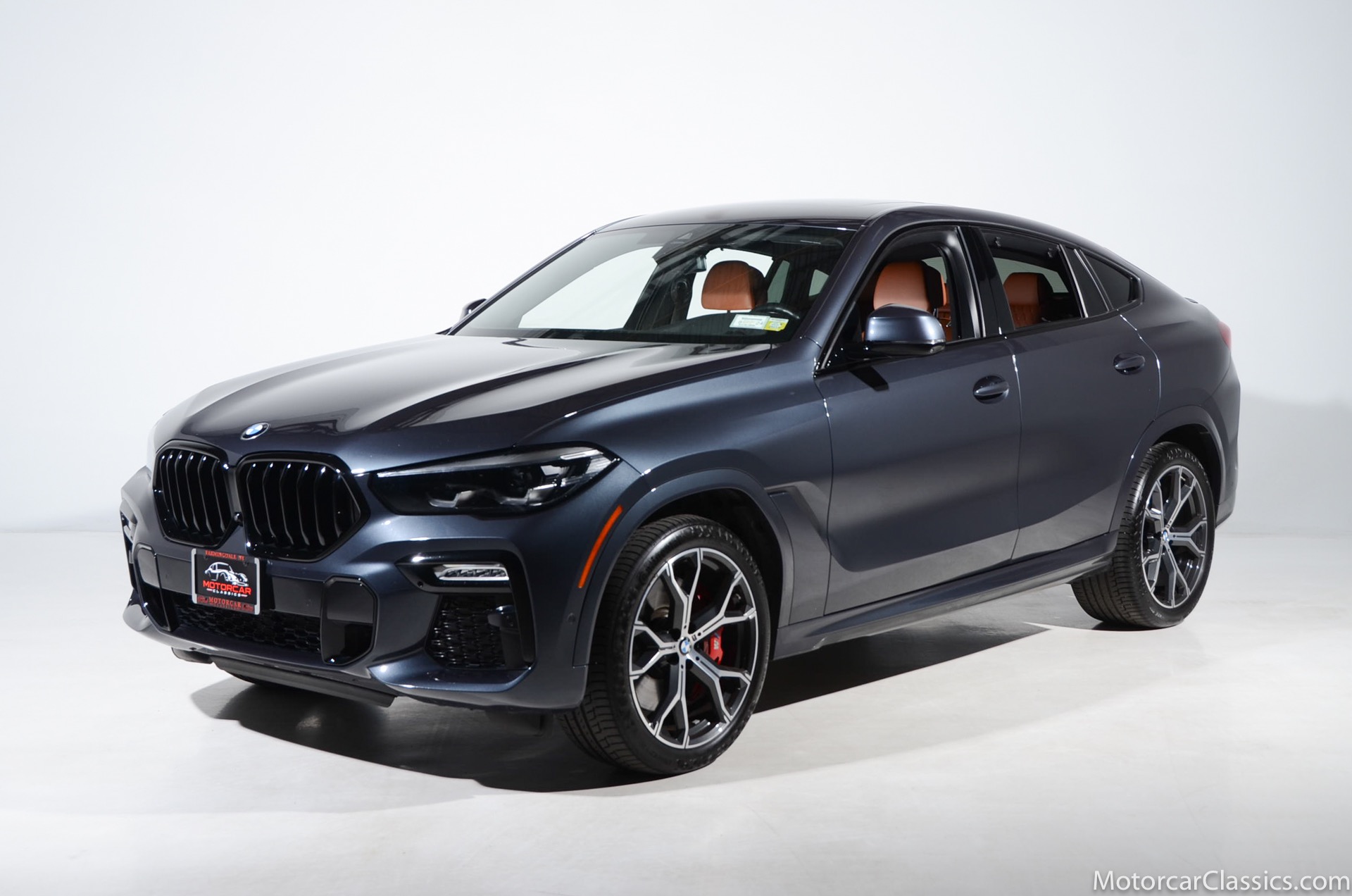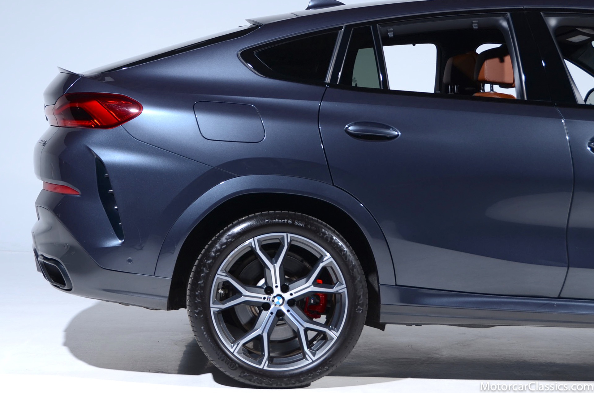 2021 BMW X6 M50i for sale! Motorcar Classics is pleased to offer this X6 M50i presented in Arctic Grey Metallic with Tartufo Merino leather interior. 4.4L twin turbo V8 523HP with a 8-speed shiftable automatic sport transmission. 37,088 1-owner miles from new. Clean Carfax. Options include: Parking package, Premium Package, Remote engine start, Tire pressure monitor, Universal garage-door opener, Comfort access keyless entry, M sport brakes with red calipers, Rear manual side window shades, Privacy glass, Front ventilated seats, Multi-contour seats, Front and rear heated seats, Heated steering wheel, Carbon fiber trim, 4-zone climate control, Front massage seats, Sirius XM, Harman Kardon surround sound system, Connected package pro, Wireless charging, Extended shadowline trim, Increased top speed limiter, Daytime driving lights, Apple carplay and Android auto, Enhanced USB & Bluetooth, Active blind spot detection, Frontal collision warning w/ city collision mitigation, Lane departure warning, Rear view camera, 21 M Y-spoke bi-color wheels and more!
