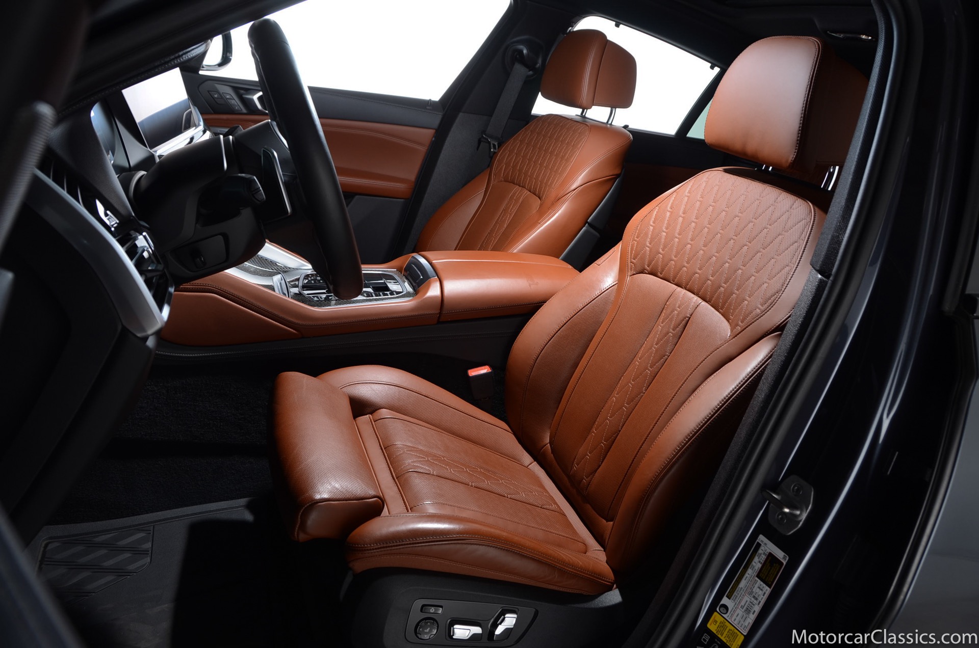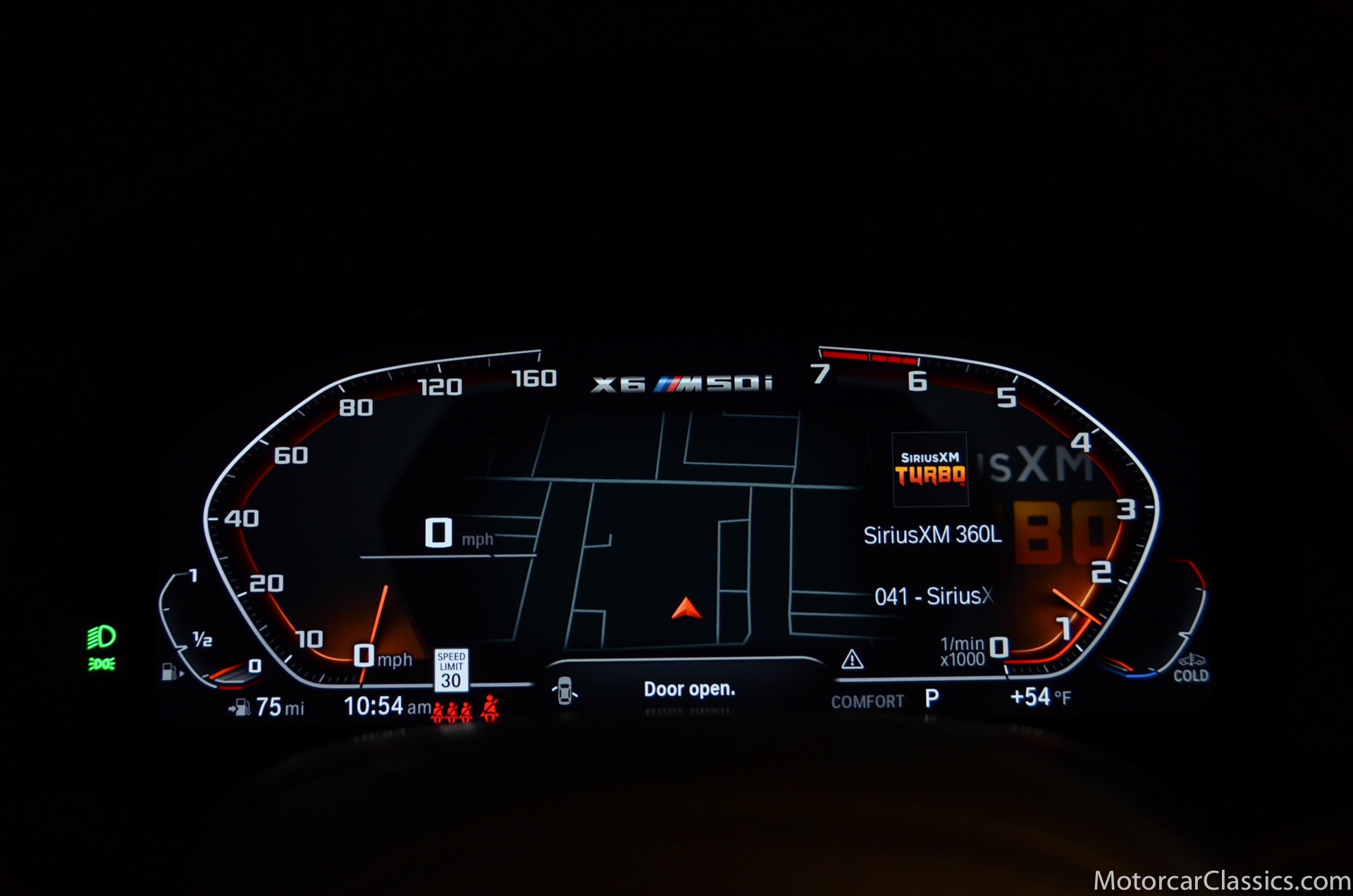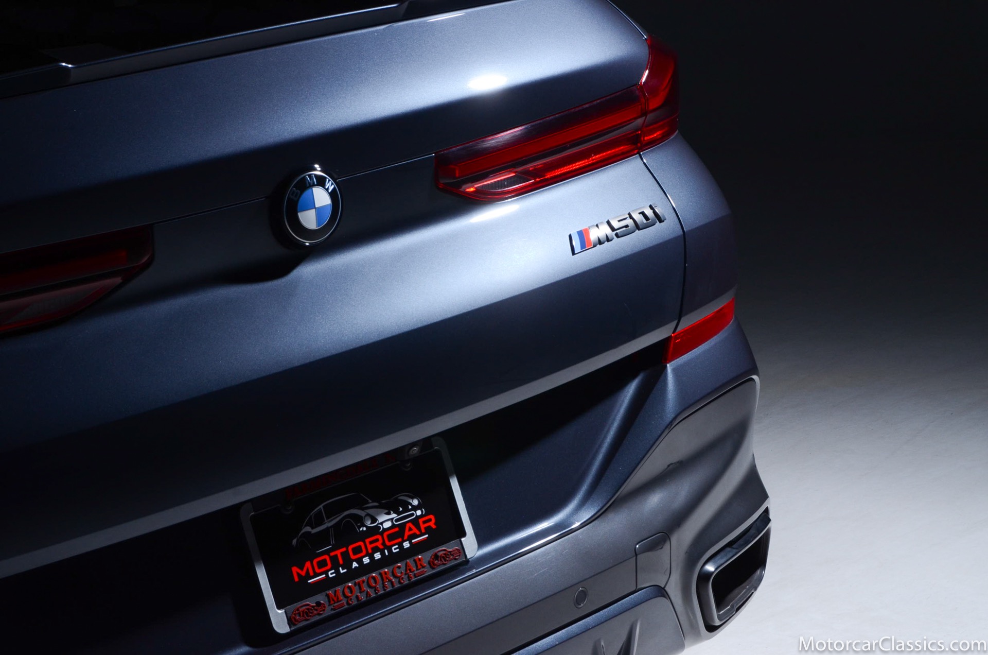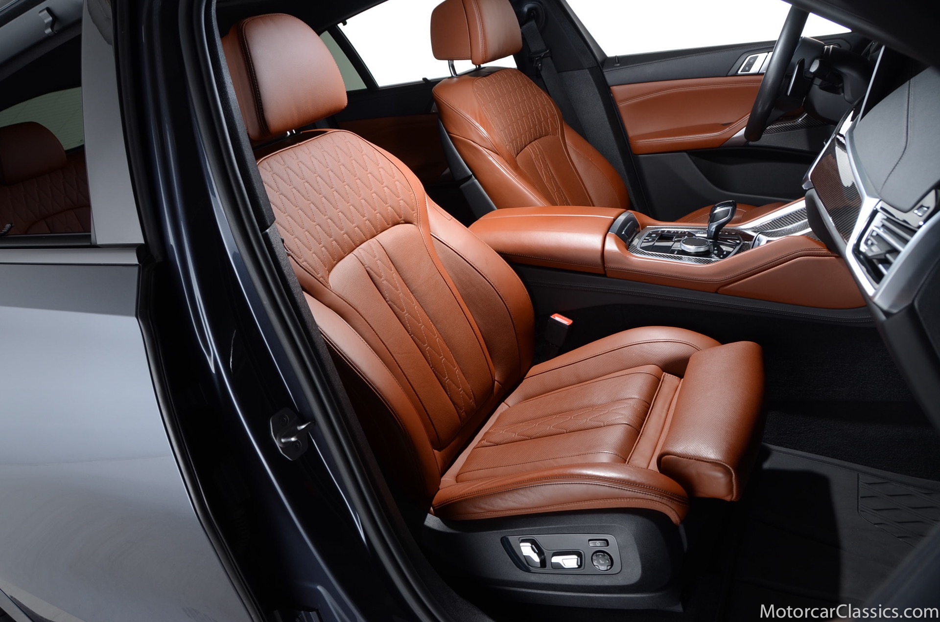 2021 BMW X6 M50i for sale! Motorcar Classics is pleased to offer this X6 M50i presented in Arctic Grey Metallic with Tartufo Merino leather interior. 4.4L twin turbo V8 523HP with a 8-speed shiftable automatic sport transmission. 37,088 1-owner miles from new. Clean Carfax. Options include: Parking package, Premium Package, Remote engine start, Tire pressure monitor, Universal garage-door opener, Comfort access keyless entry, M sport brakes with red calipers, Rear manual side window shades, Privacy glass, Front ventilated seats, Multi-contour seats, Front and rear heated seats, Heated steering wheel, Carbon fiber trim, 4-zone climate control, Front massage seats, Sirius XM, Harman Kardon surround sound system, Connected package pro, Wireless charging, Extended shadowline trim, Increased top speed limiter, Daytime driving lights, Apple carplay and Android auto, Enhanced USB & Bluetooth, Active blind spot detection, Frontal collision warning w/ city collision mitigation, Lane departure warning, Rear view camera, 21 M Y-spoke bi-color wheels and more!