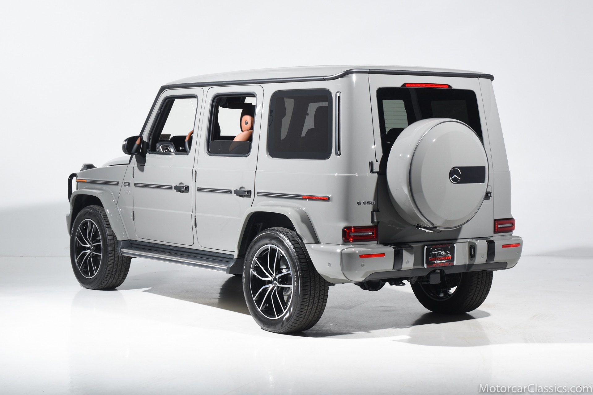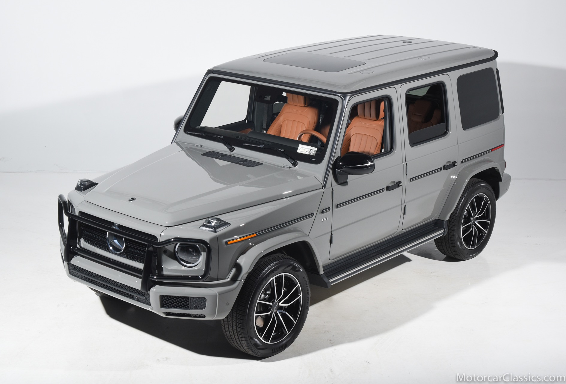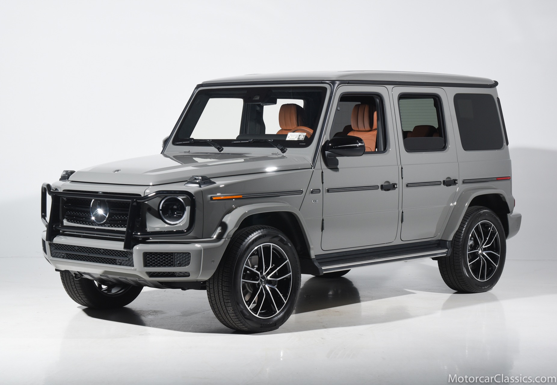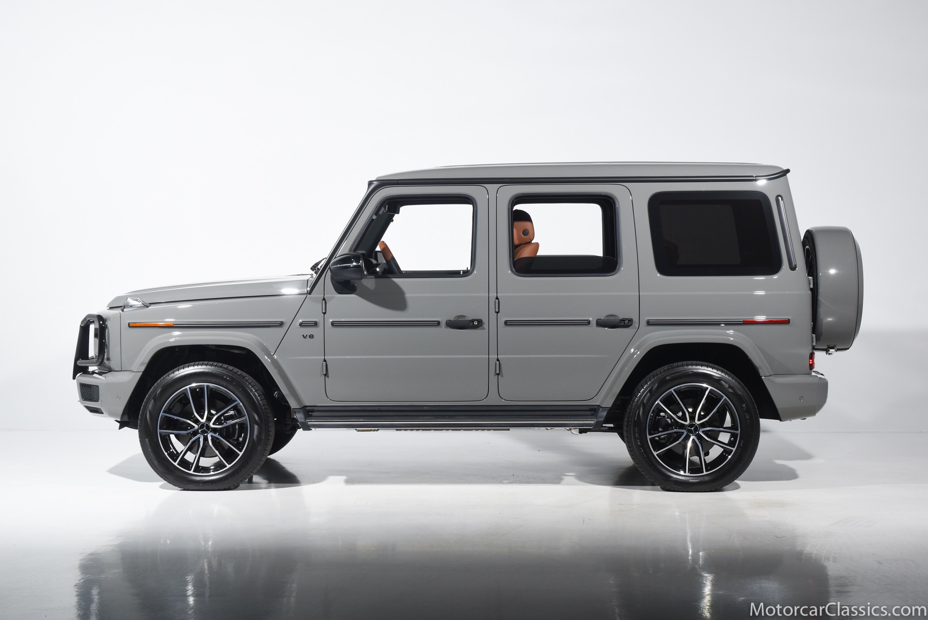 2021 Mercedes-Benz G550 for sale! Motorcar Classics is pleased to offer this stunning G550 presented in Arabian Grey ($6,500 paint option) with Saddle Brown leather interior. 1-owner car from new with less than 100 miles! Clean title and Carfax. 4.0L V8 biturbo engine 416 HP. 9-speed automatic transmission. Car is in pristine condition. Options include: Apple carplay, Android auto, Bluetooth, Burmester surround sound system, Nav, Heated front/rear seats, Keyless start, Multicolor ambient lighting, Power tilt sunroof, Rain-sensing wipers, Sirius XM and more!