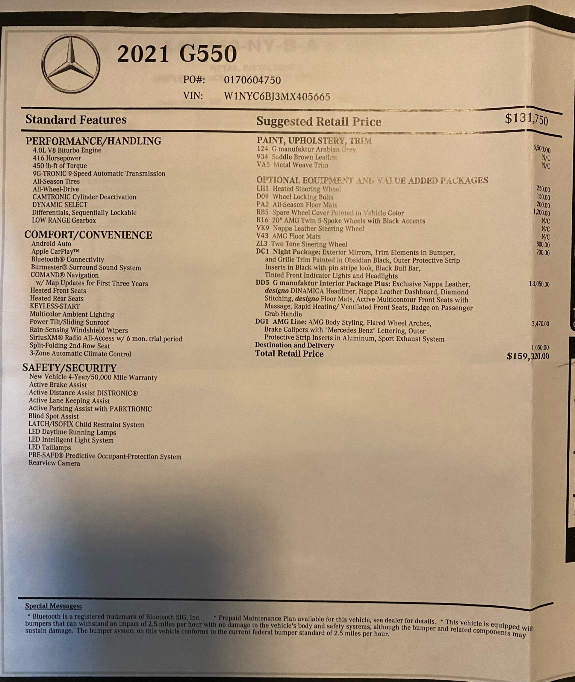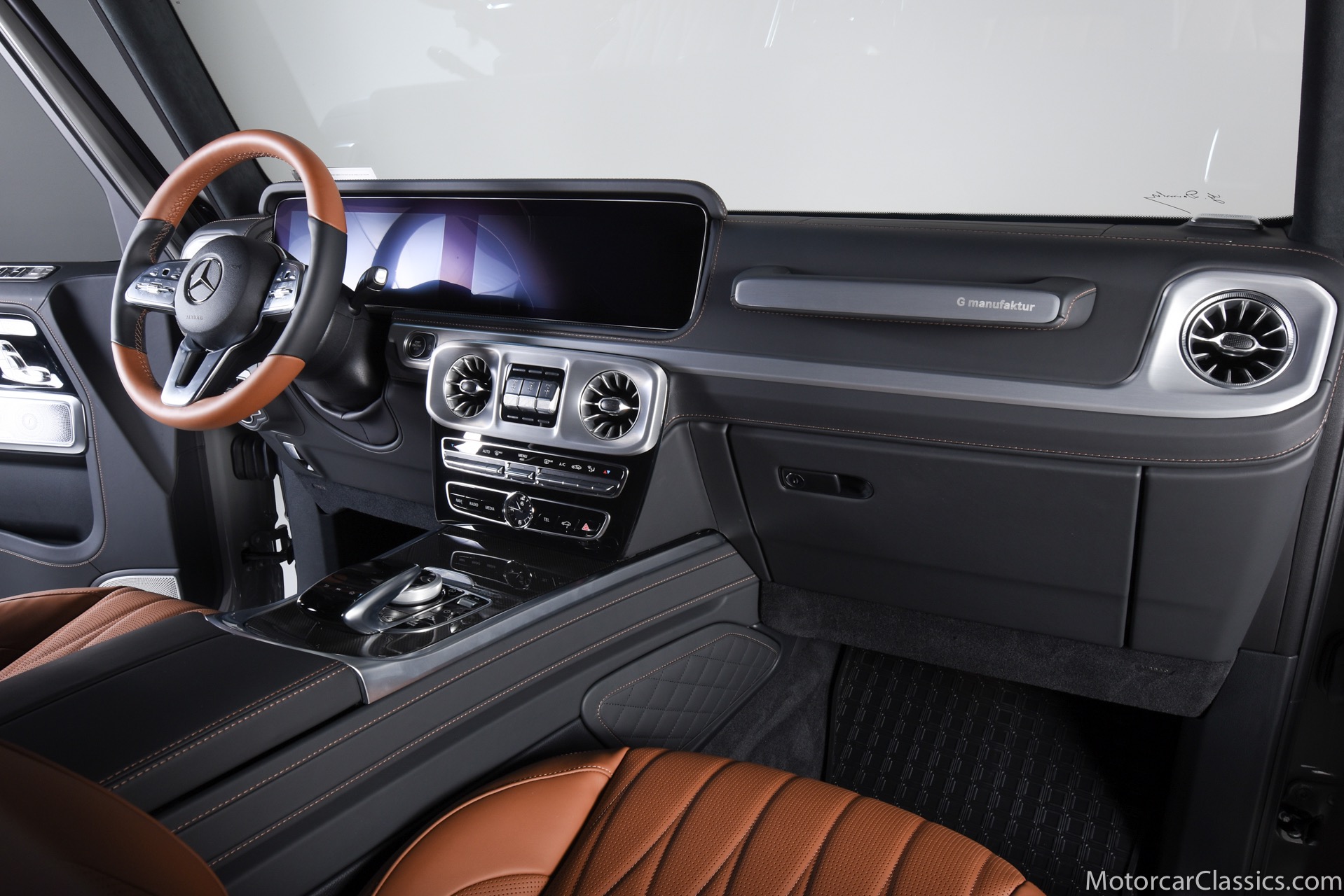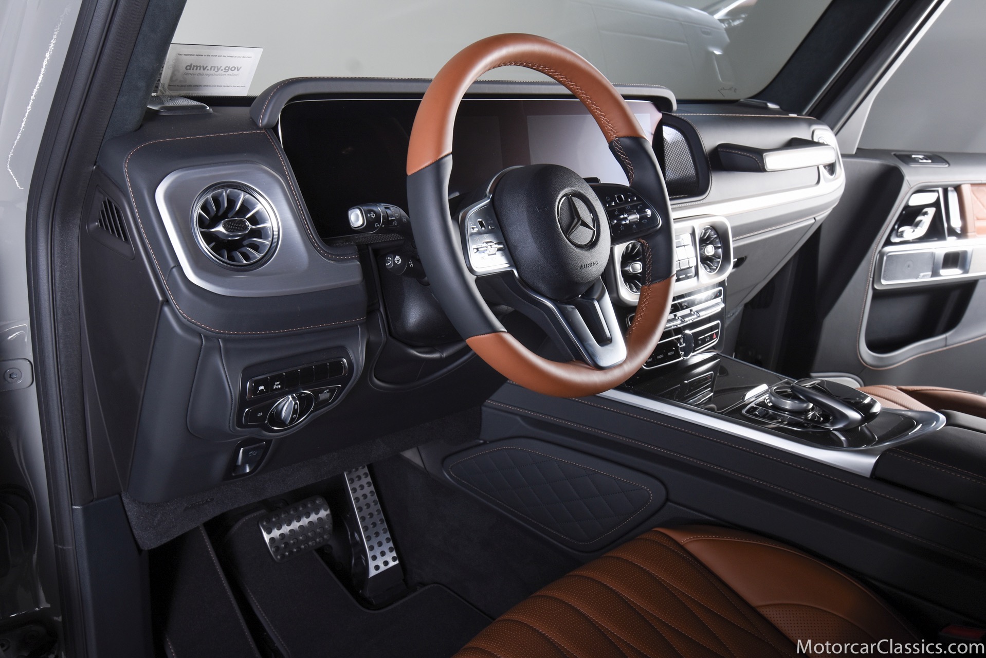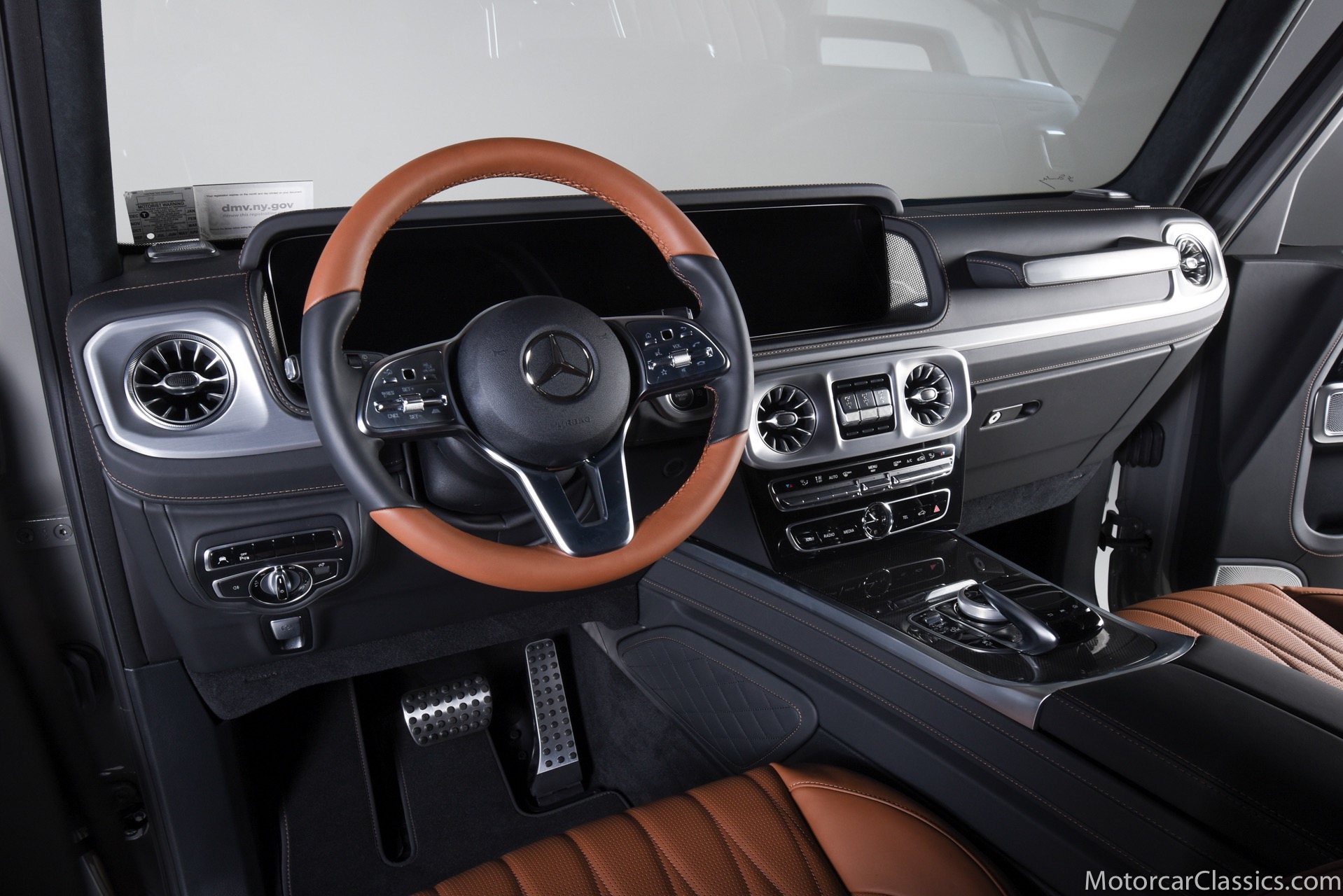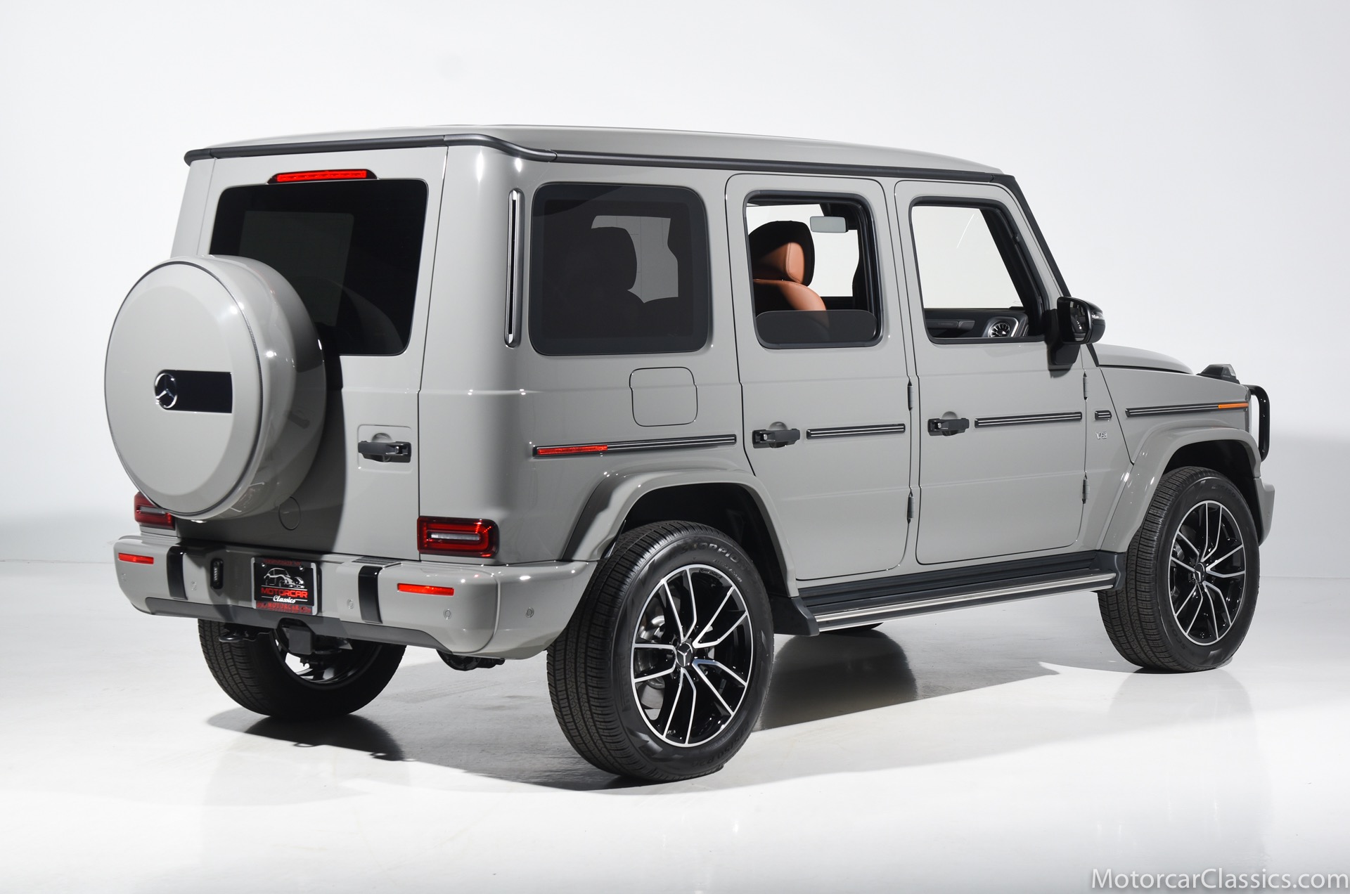 2021 Mercedes-Benz G550 for sale! Motorcar Classics is pleased to offer this stunning G550 presented in Arabian Grey ($6,500 paint option) with Saddle Brown leather interior. 1-owner car from new with less than 100 miles! Clean title and Carfax. 4.0L V8 biturbo engine 416 HP. 9-speed automatic transmission. Car is in pristine condition. Options include: Apple carplay, Android auto, Bluetooth, Burmester surround sound system, Nav, Heated front/rear seats, Keyless start, Multicolor ambient lighting, Power tilt sunroof, Rain-sensing wipers, Sirius XM and more!