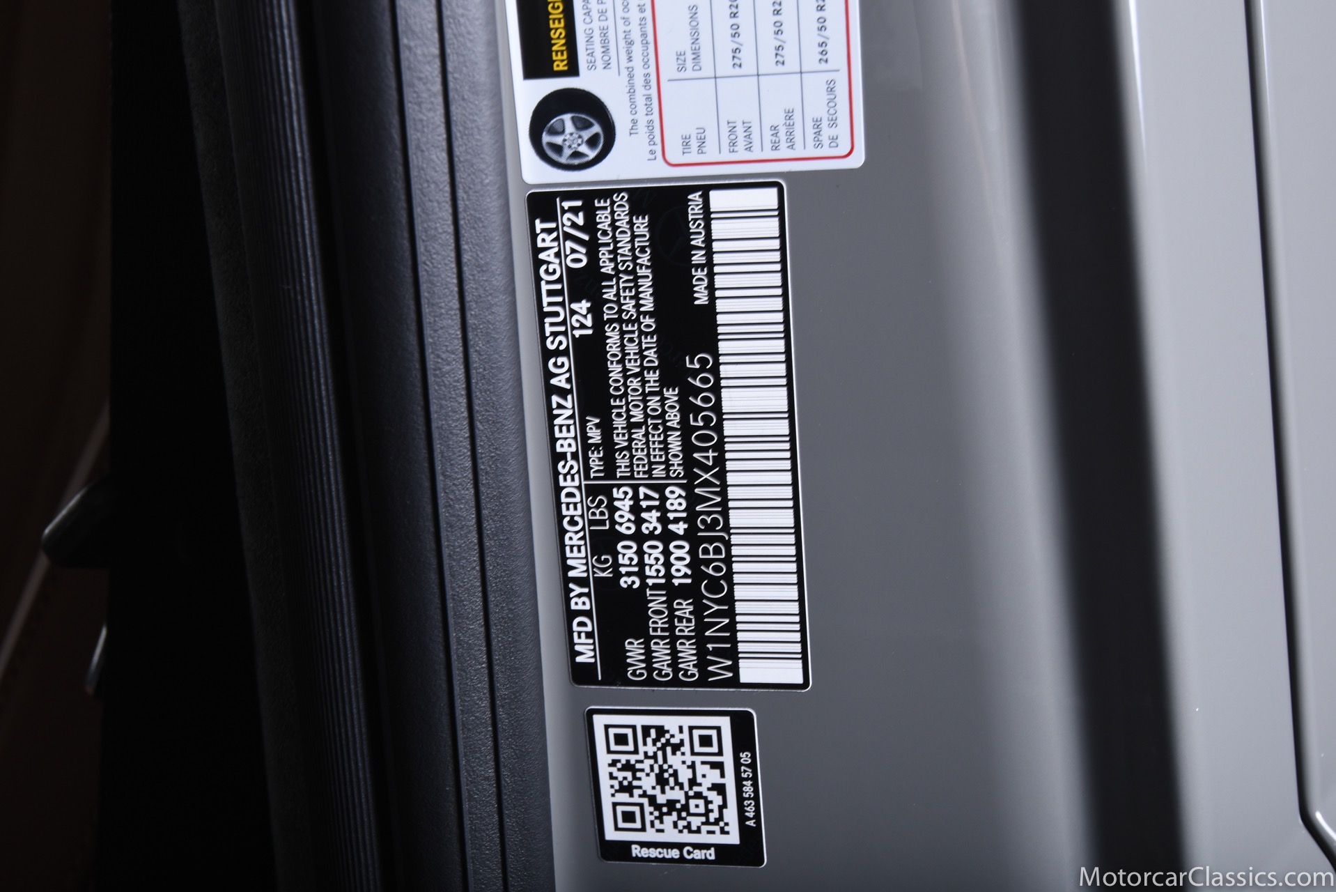 Optional equipment includes: Heated steering wheel, Wheel locking bolts, All-season floor mats, Spare wheel cover painted in vehicle color, 20 AMG twin 5-spoke wheels with black accents, Nappa leather steering wheel, AMG floor mats, Two tone steering wheel, DC1 Night Package, DD5 G manufacktur interior Package: Dinamica headliner, Nappa leather dashboard, Diamond stitching, Active multicontour front seats with massage, Rapid heating/ventilated front seats, Badge on passenger grab handle, DG1 AMG line: Amg body styling, Flared wheel arches, Brake calipers with Mercedes lettering, Outer protective strip inserts in aluminum, Sport exhaust system and more!