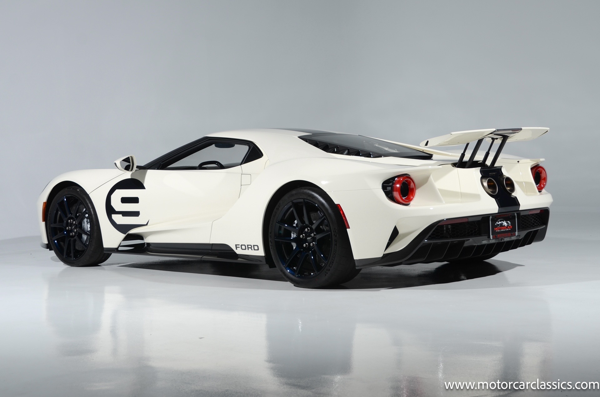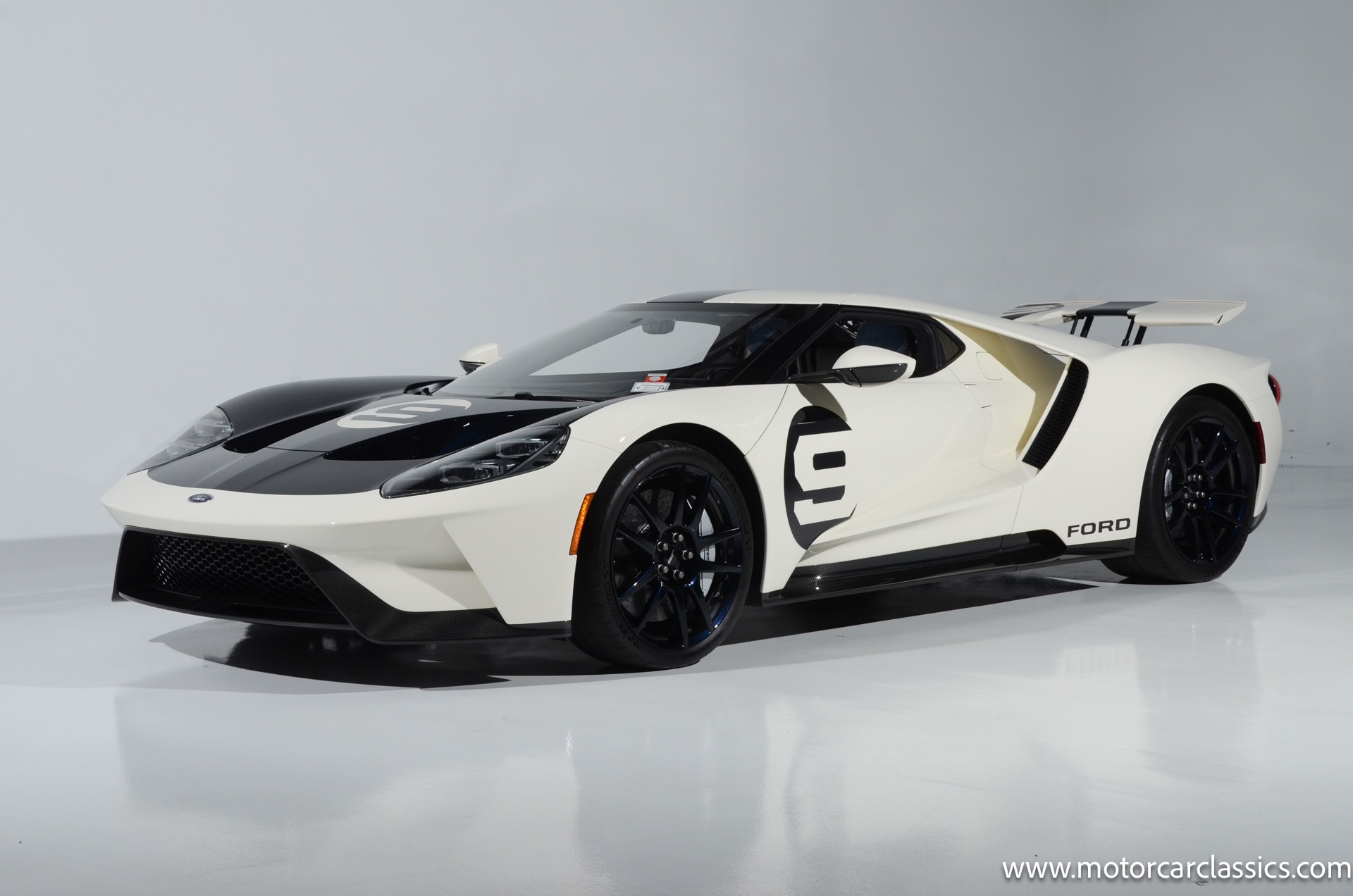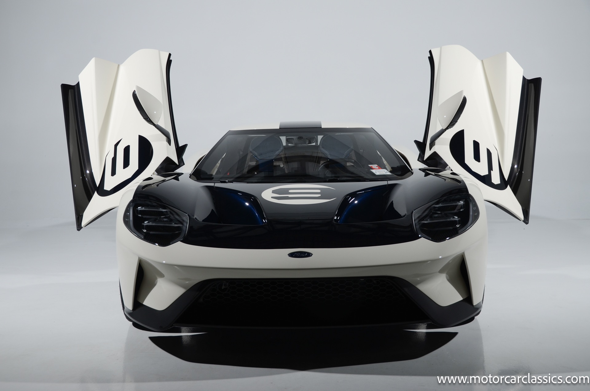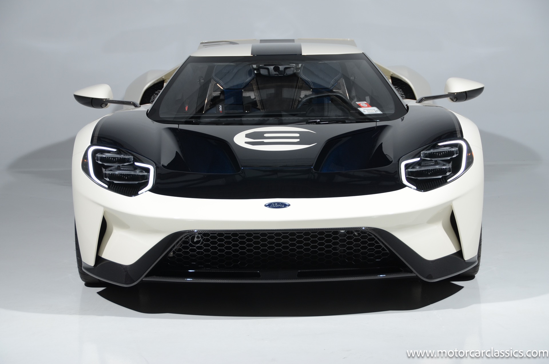 This one-of-one Heritage Edition supercar pays homage to the 1964 Ford GT prototypes that led to America's only Le Mans winning race car. The Ford GT Heritage Edition is a modern take of the original, combining classic Ford Performance features like Wimbledon White paint and race stripe but along with contemporary touches including exposed carbon fiber body and carbon fiber wheels and updated interior. Our example is a 1-owner car from new with only 429 miles. This is represented as the only Heritage Edition special ordered in Wimbledon White with Antimatter Blue graphics. Factory Options include: Heritage steering wheel, 20" Antimatter Blue and white carbon wheels, silver brake calipers, lightweight titanium tow hook, exterior carbon fiber package in gloss, 6 point harness anchors, titanium lug nuts and more! $749,500 MSRP!