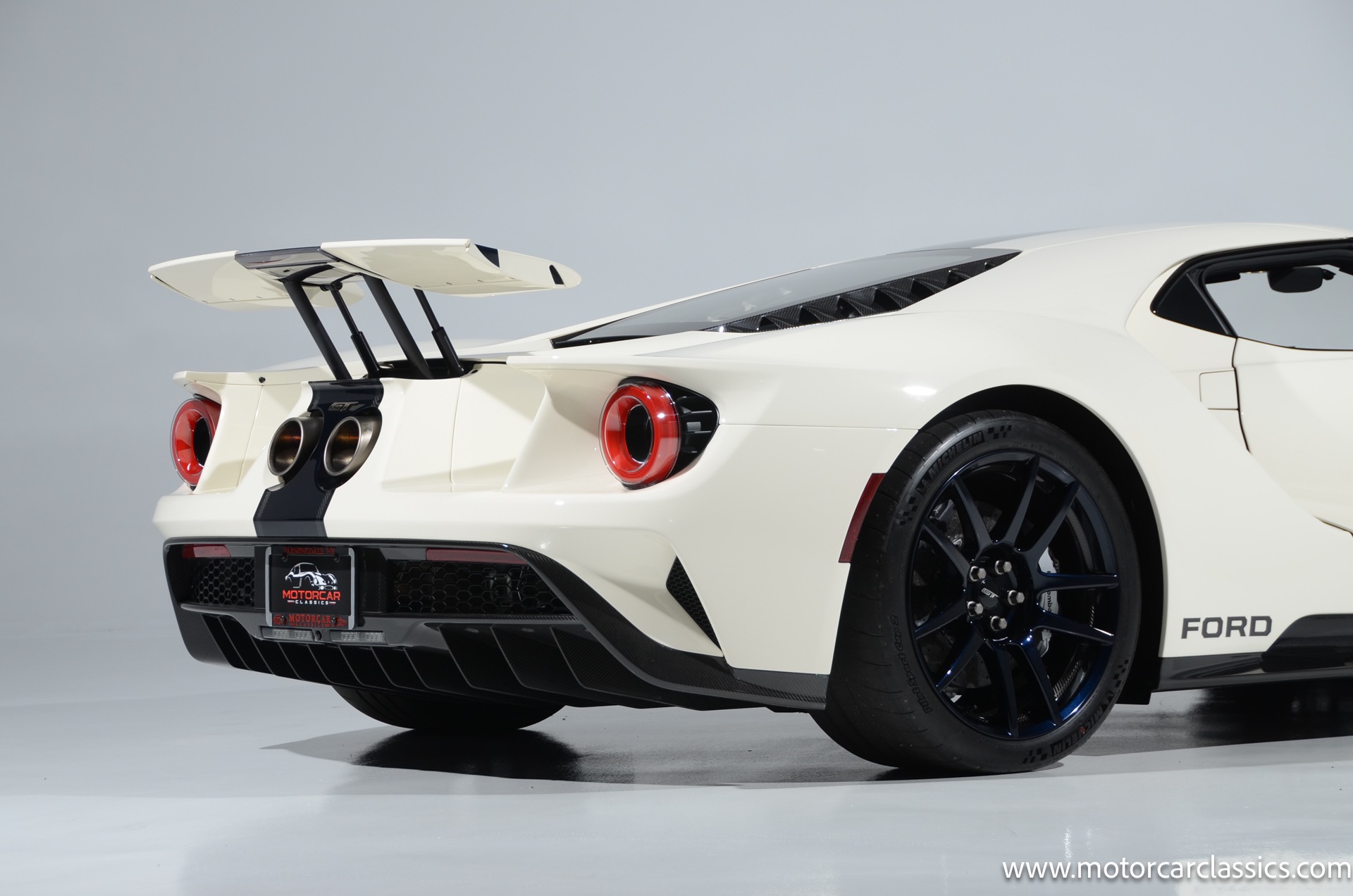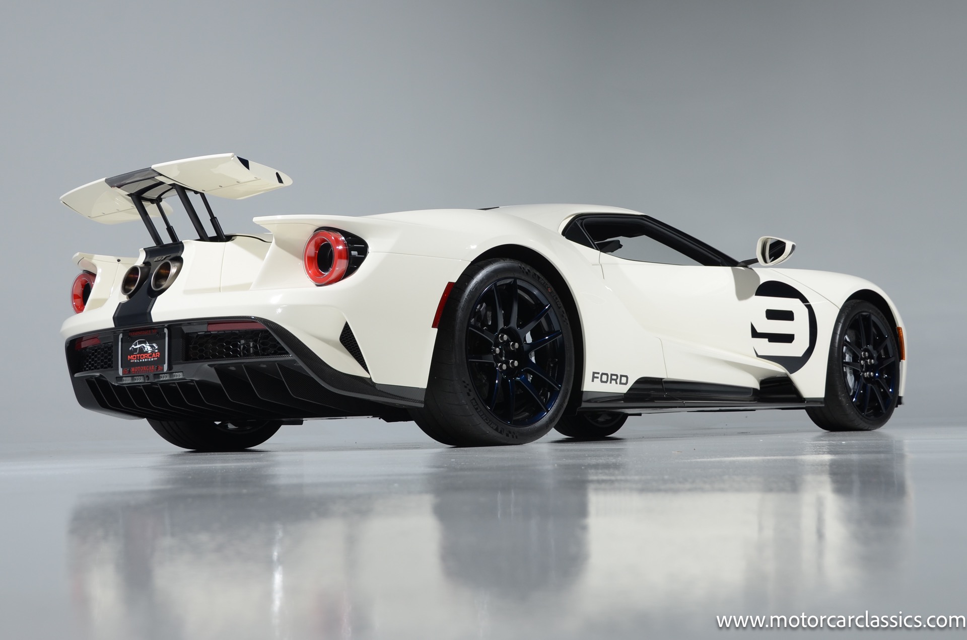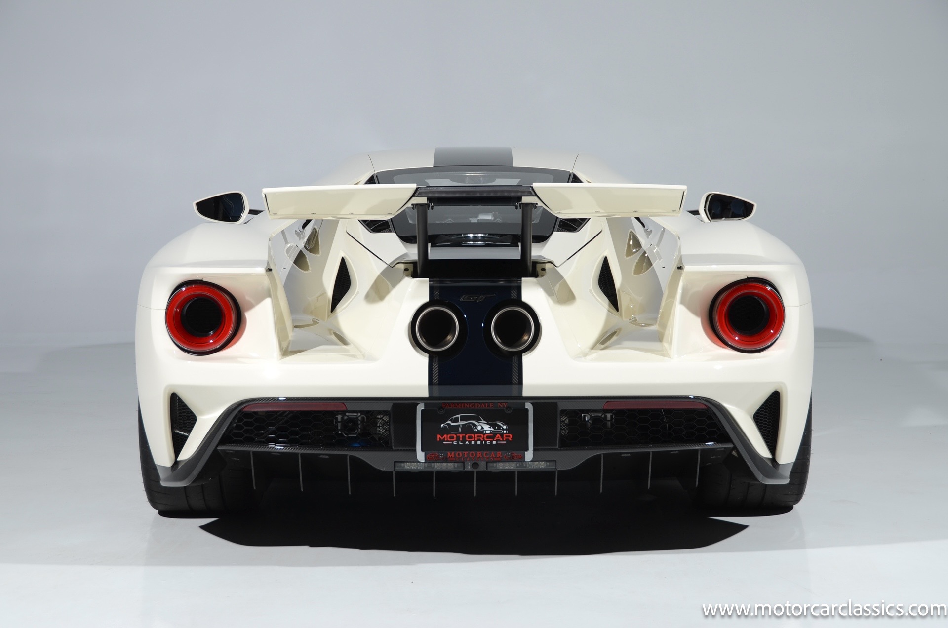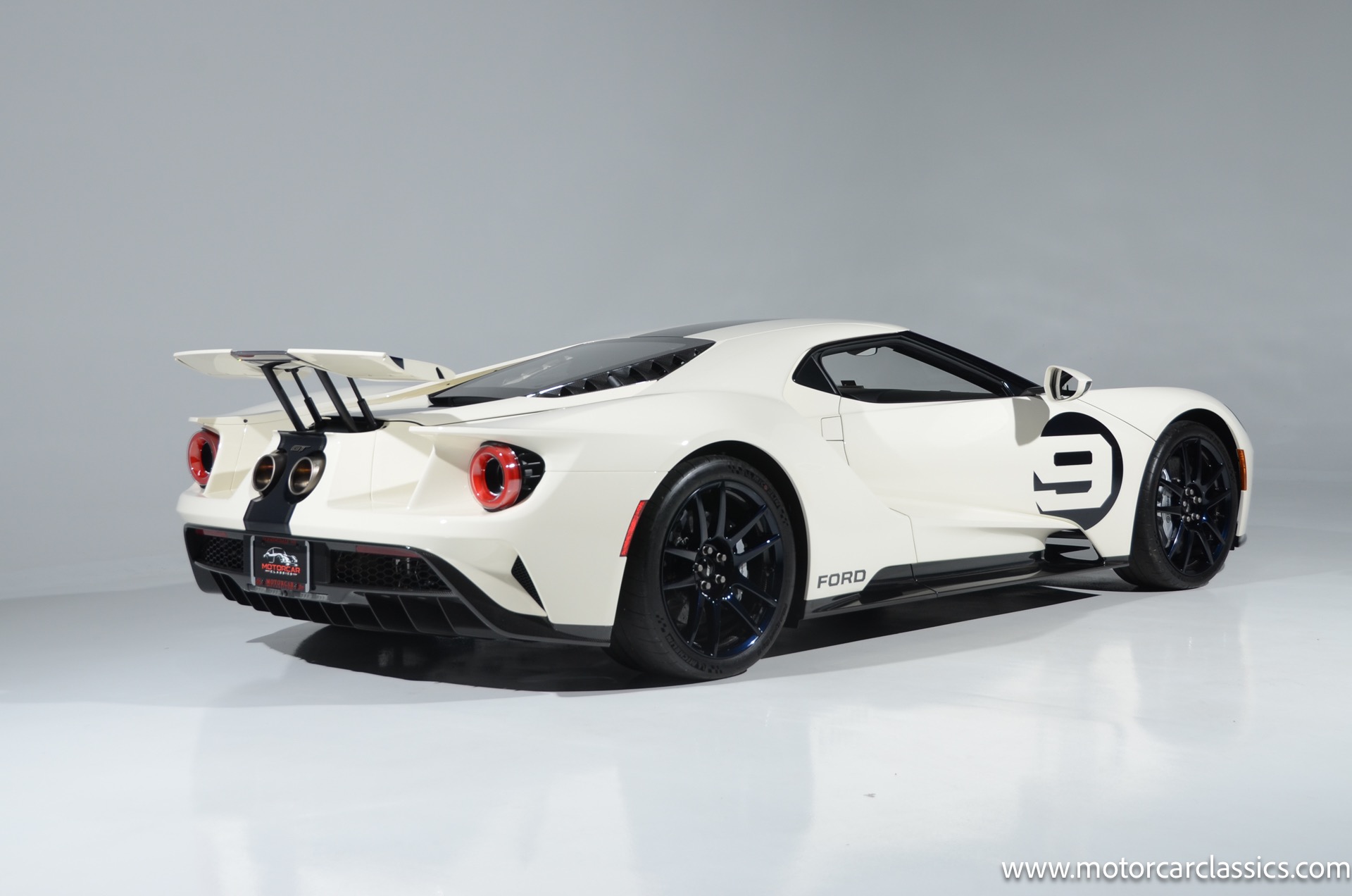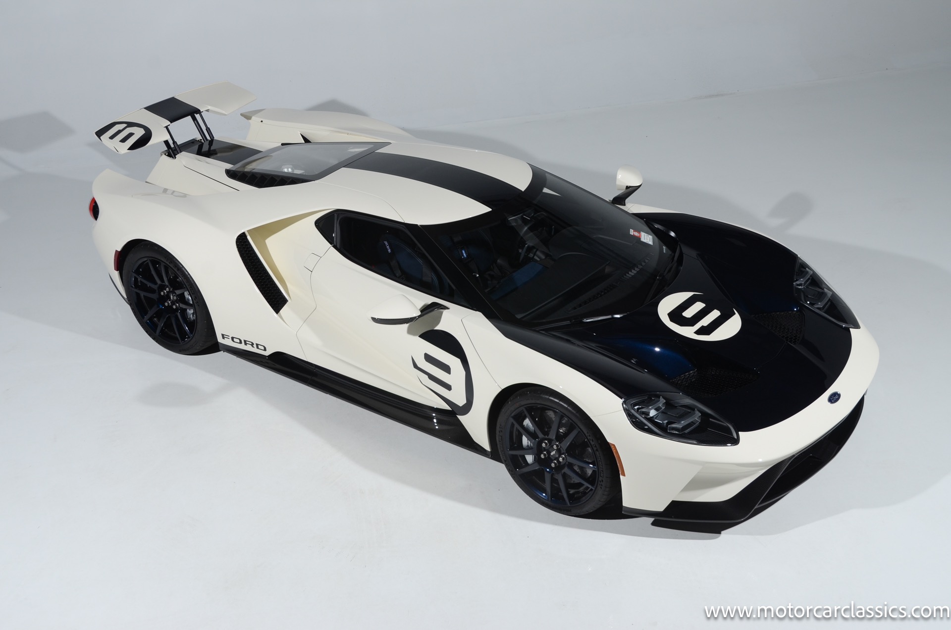 This one-of-one Heritage Edition supercar pays homage to the 1964 Ford GT prototypes that led to America's only Le Mans winning race car. The Ford GT Heritage Edition is a modern take of the original, combining classic Ford Performance features like Wimbledon White paint and race stripe but along with contemporary touches including exposed carbon fiber body and carbon fiber wheels and updated interior. Our example is a 1-owner car from new with only 429 miles. This is represented as the only Heritage Edition special ordered in Wimbledon White with Antimatter Blue graphics. Factory Options include: Heritage steering wheel, 20" Antimatter Blue and white carbon wheels, silver brake calipers, lightweight titanium tow hook, exterior carbon fiber package in gloss, 6 point harness anchors, titanium lug nuts and more! $749,500 MSRP!