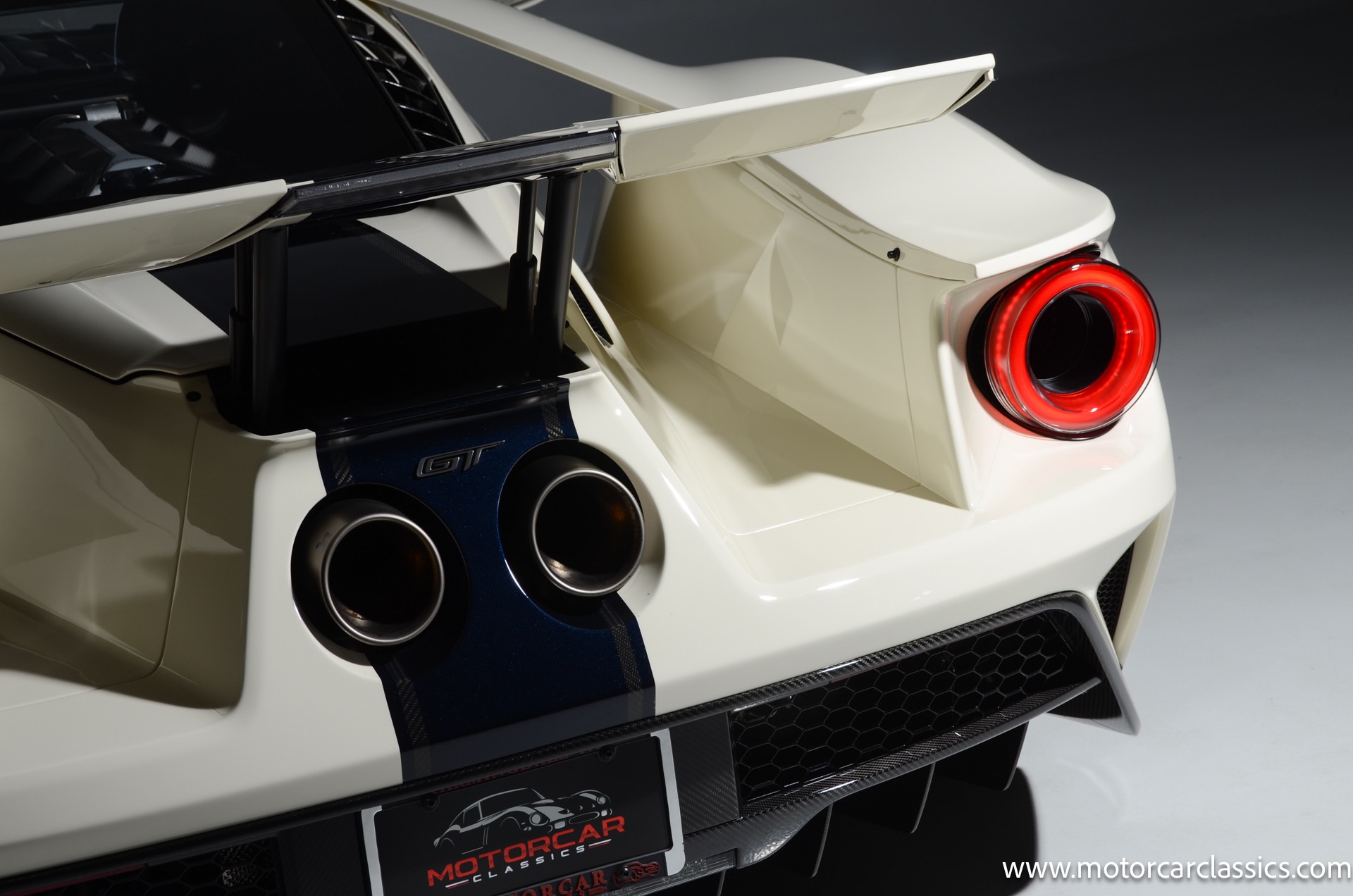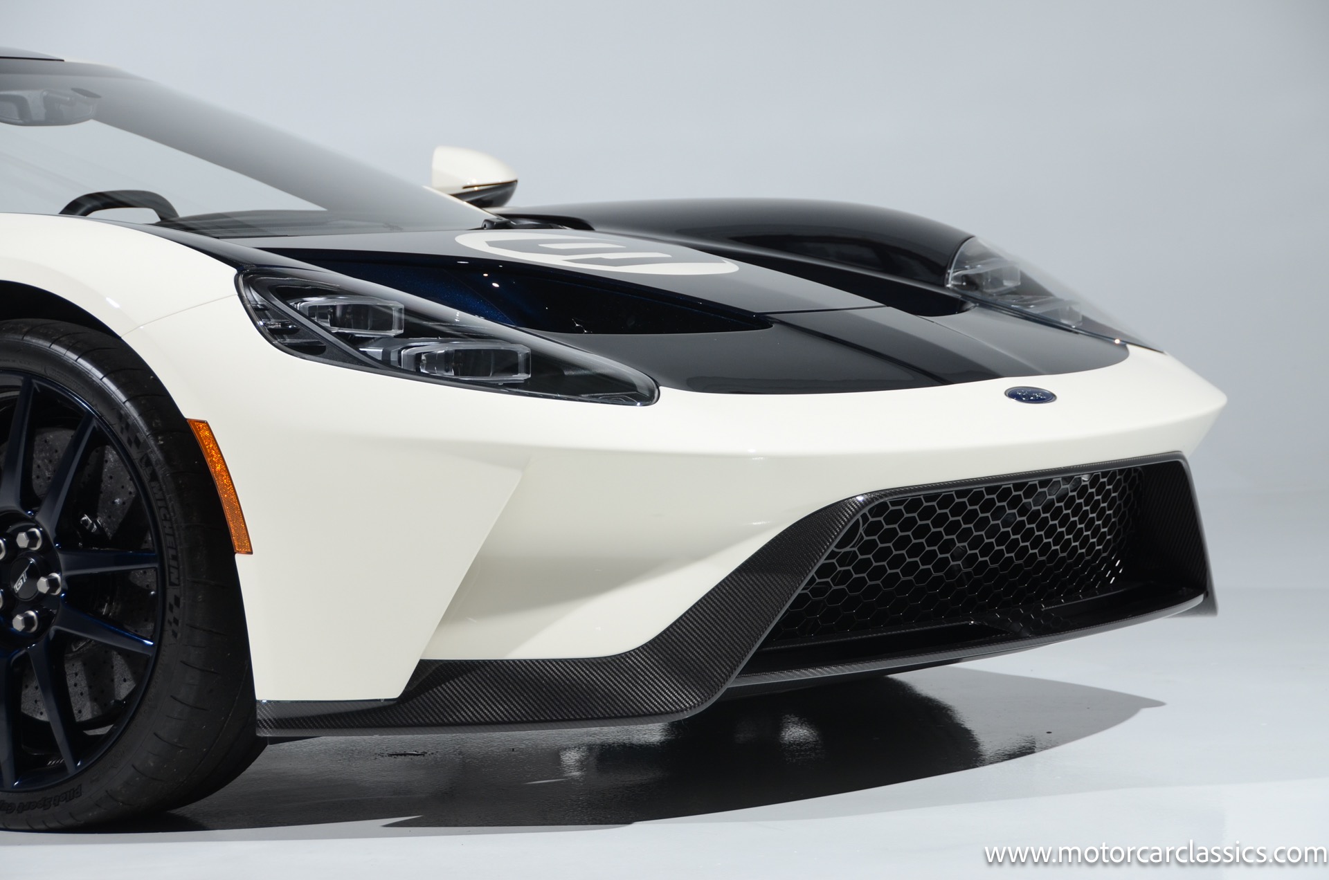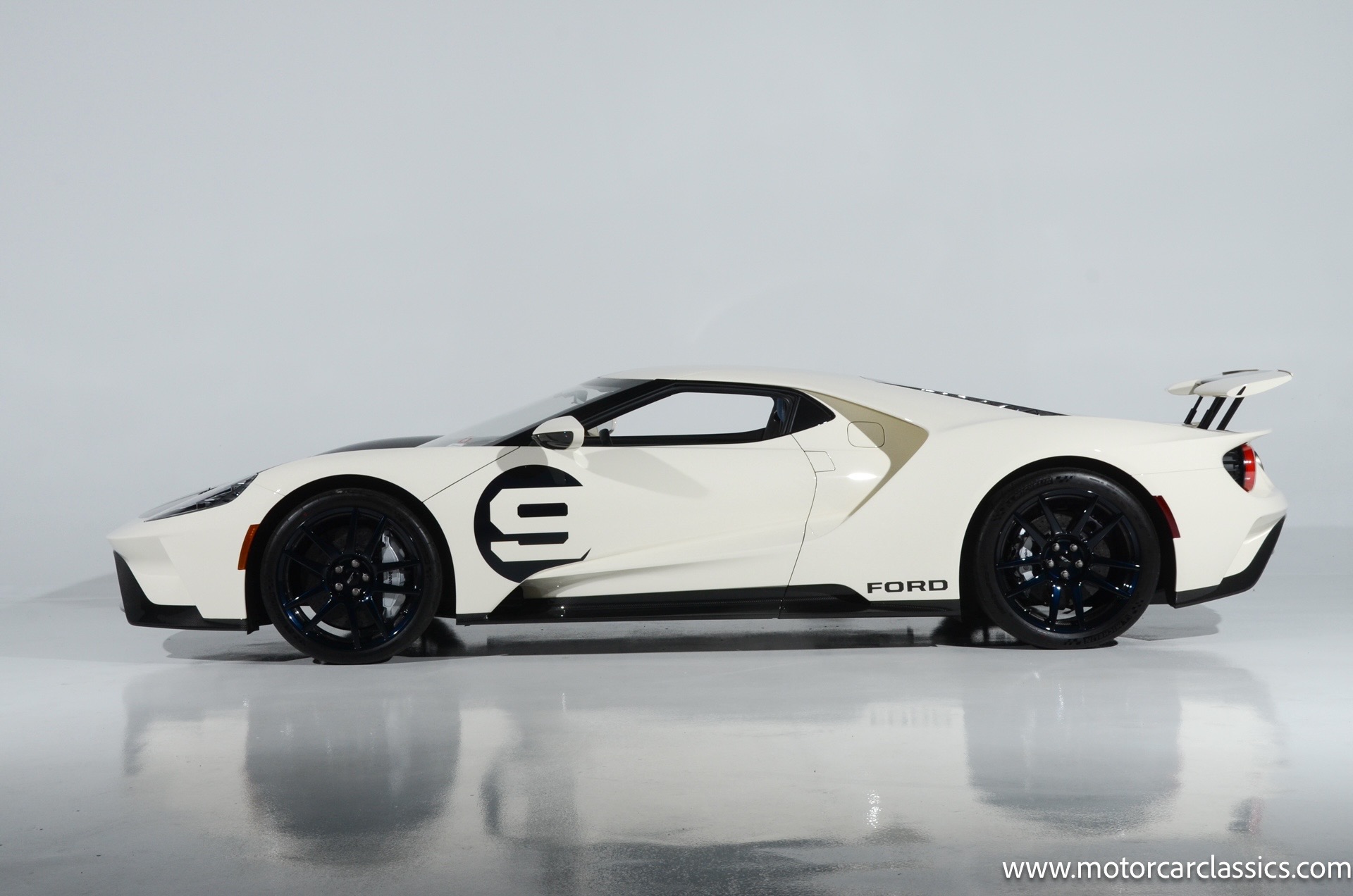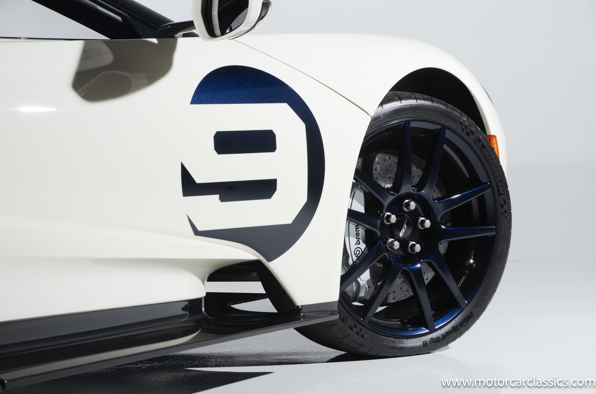 This one-of-one Heritage Edition supercar pays homage to the 1964 Ford GT prototypes that led to America's only Le Mans winning race car. The Ford GT Heritage Edition is a modern take of the original, combining classic Ford Performance features like Wimbledon White paint and race stripe but along with contemporary touches including exposed carbon fiber body and carbon fiber wheels and updated interior. Our example is a 1-owner car from new with only 429 miles. This is represented as the only Heritage Edition special ordered in Wimbledon White with Antimatter Blue graphics. Factory Options include: Heritage steering wheel, 20" Antimatter Blue and white carbon wheels, silver brake calipers, lightweight titanium tow hook, exterior carbon fiber package in gloss, 6 point harness anchors, titanium lug nuts and more! $749,500 MSRP!
