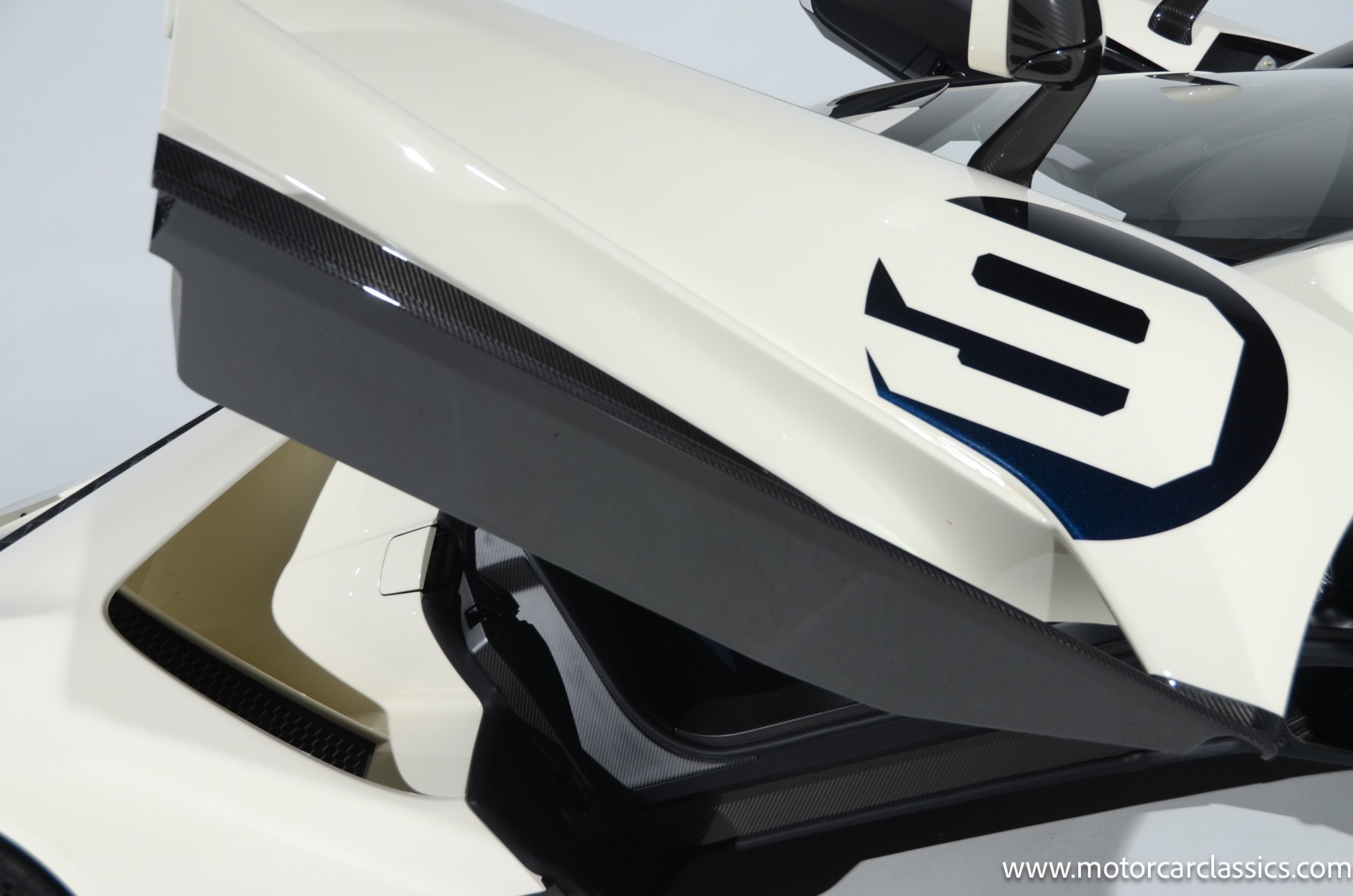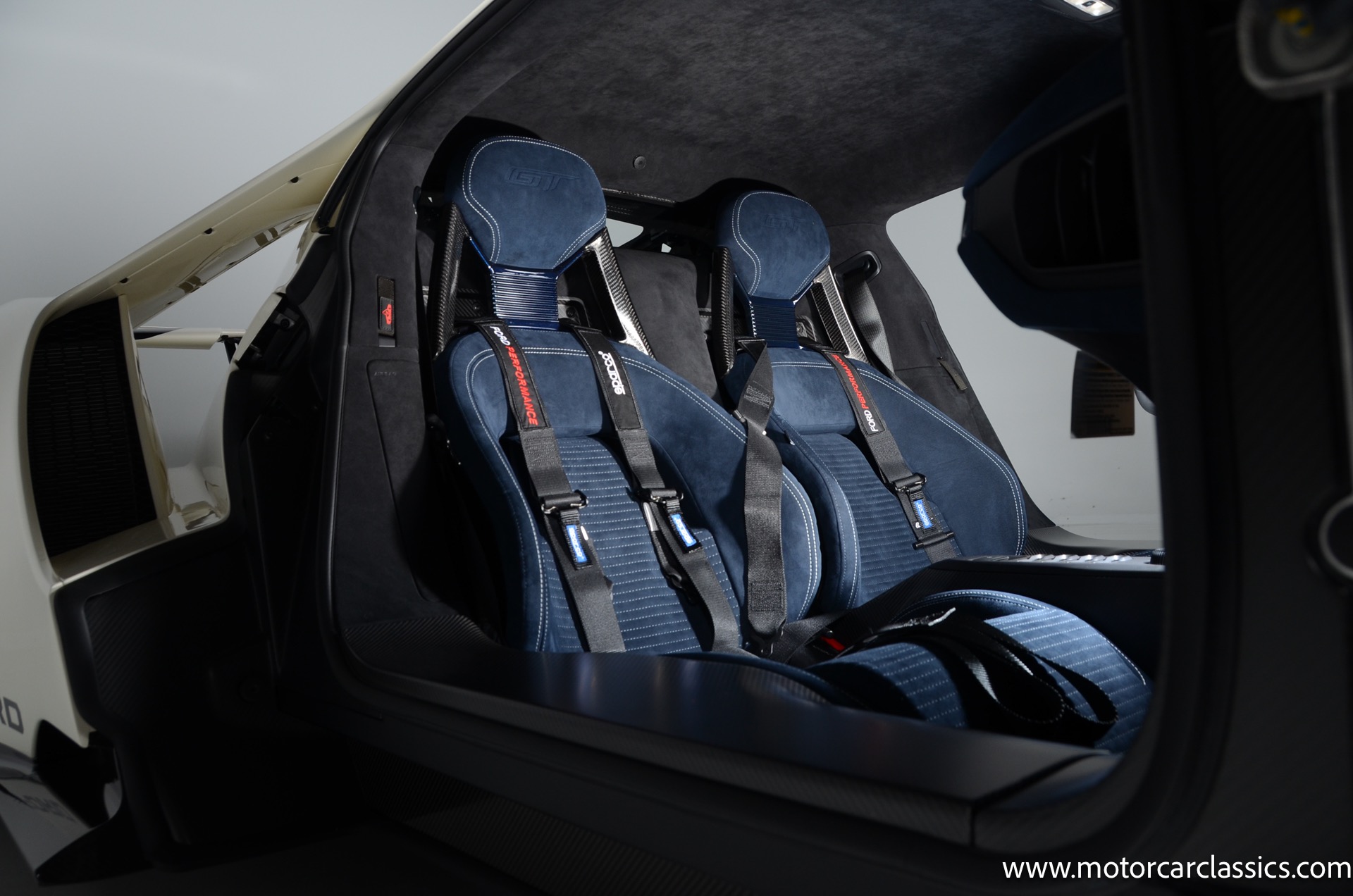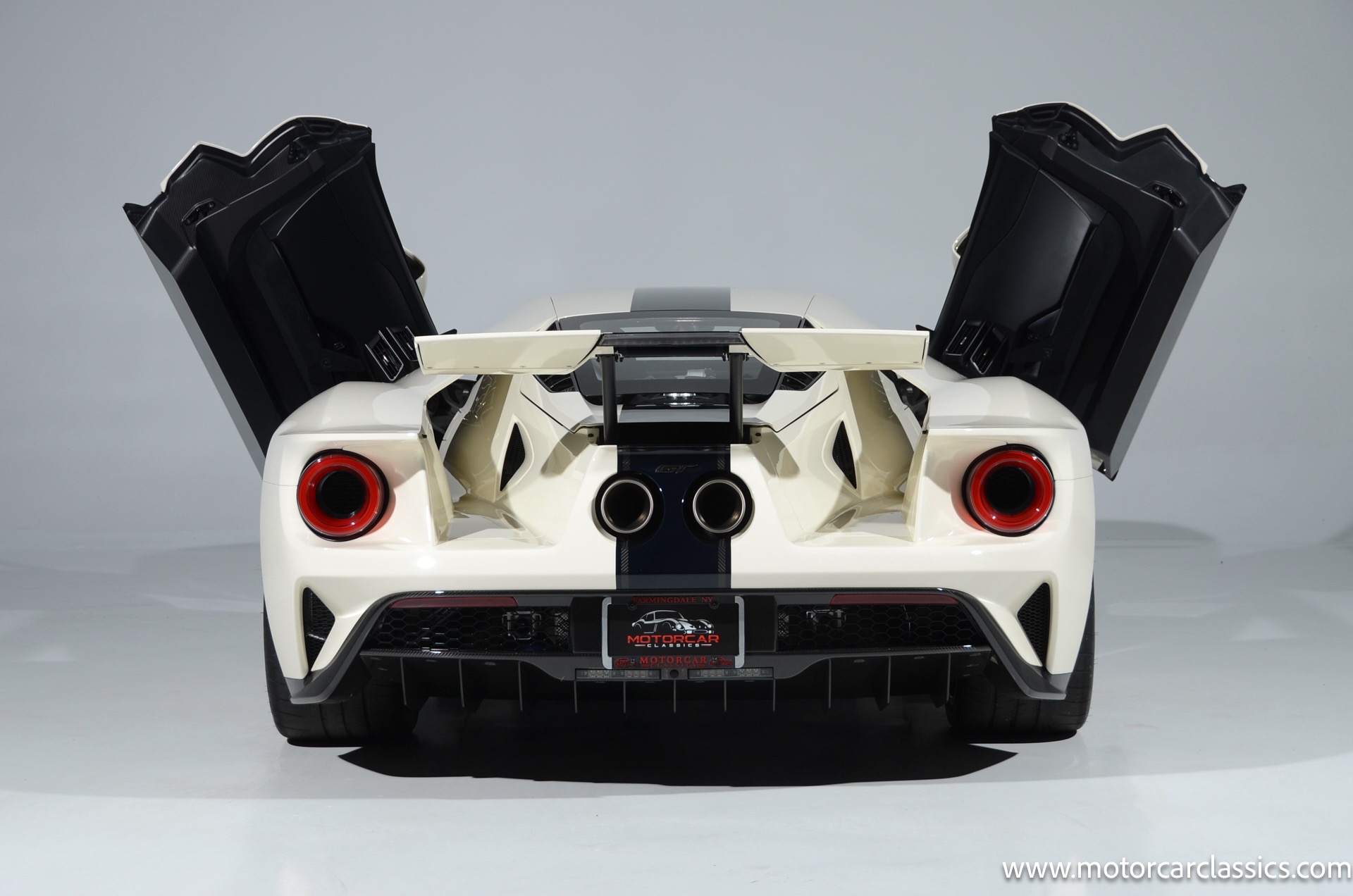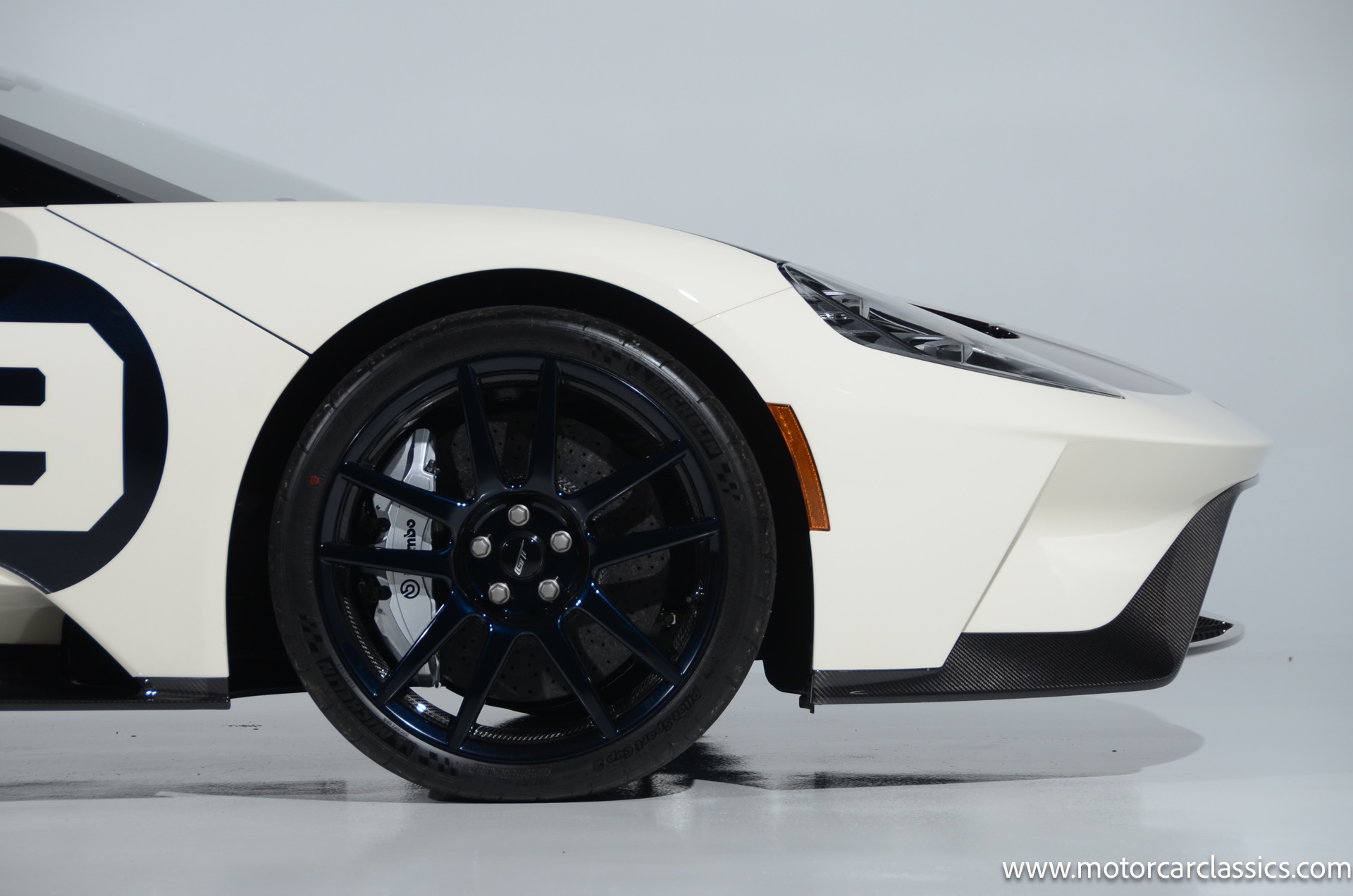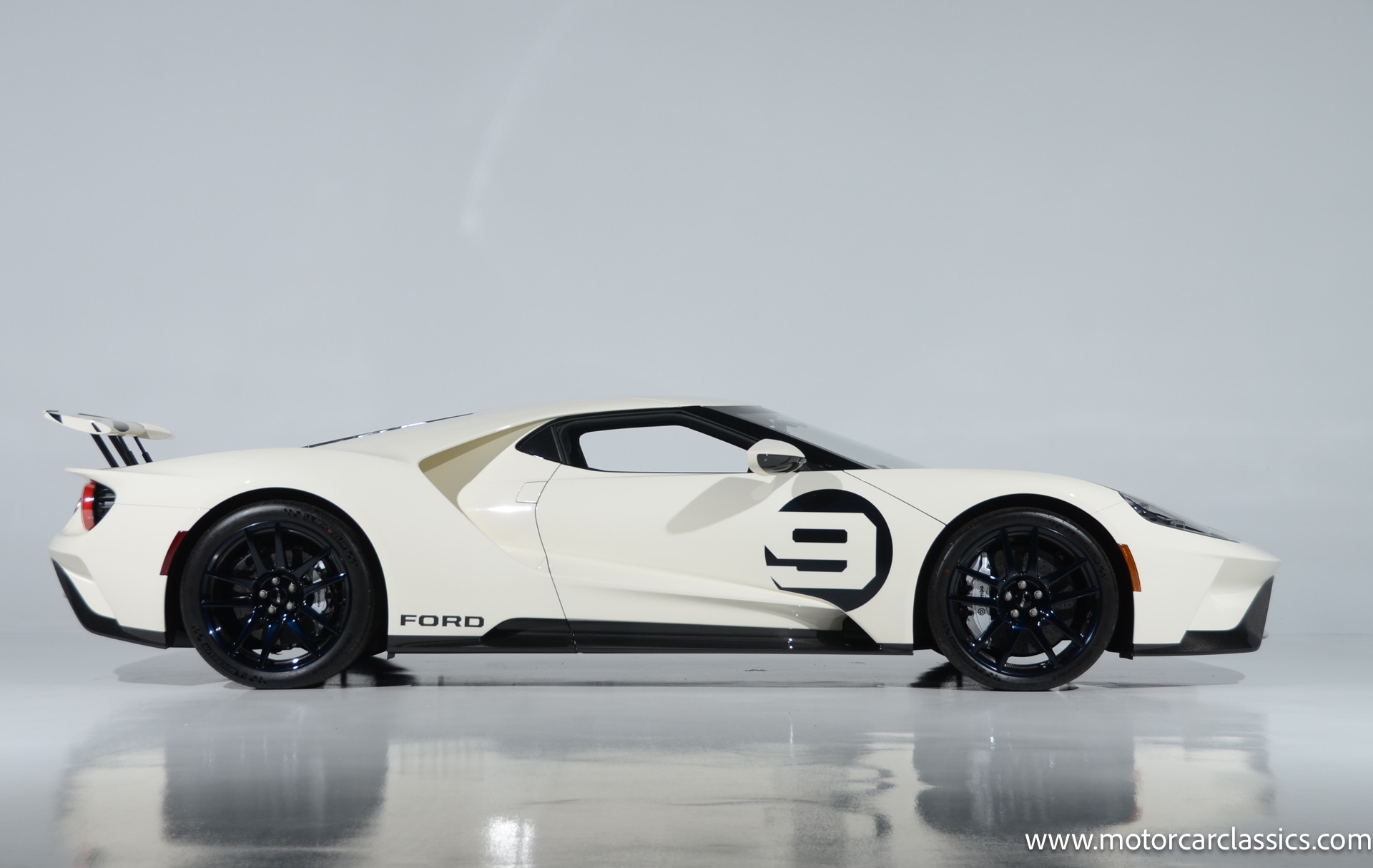 This one-of-one Heritage Edition supercar pays homage to the 1964 Ford GT prototypes that led to America's only Le Mans winning race car. The Ford GT Heritage Edition is a modern take of the original, combining classic Ford Performance features like Wimbledon White paint and race stripe but along with contemporary touches including exposed carbon fiber body and carbon fiber wheels and updated interior. Our example is a 1-owner car from new with only 429 miles. This is represented as the only Heritage Edition special ordered in Wimbledon White with Antimatter Blue graphics. Factory Options include: Heritage steering wheel, 20" Antimatter Blue and white carbon wheels, silver brake calipers, lightweight titanium tow hook, exterior carbon fiber package in gloss, 6 point harness anchors, titanium lug nuts and more! $749,500 MSRP!
