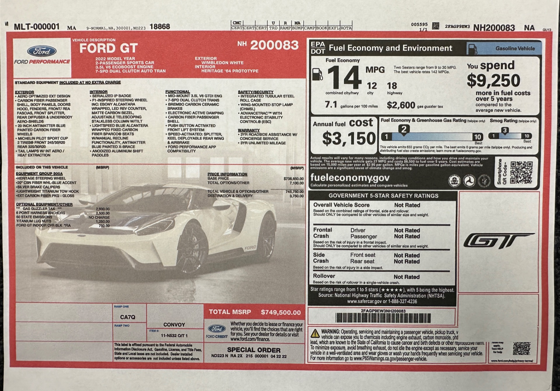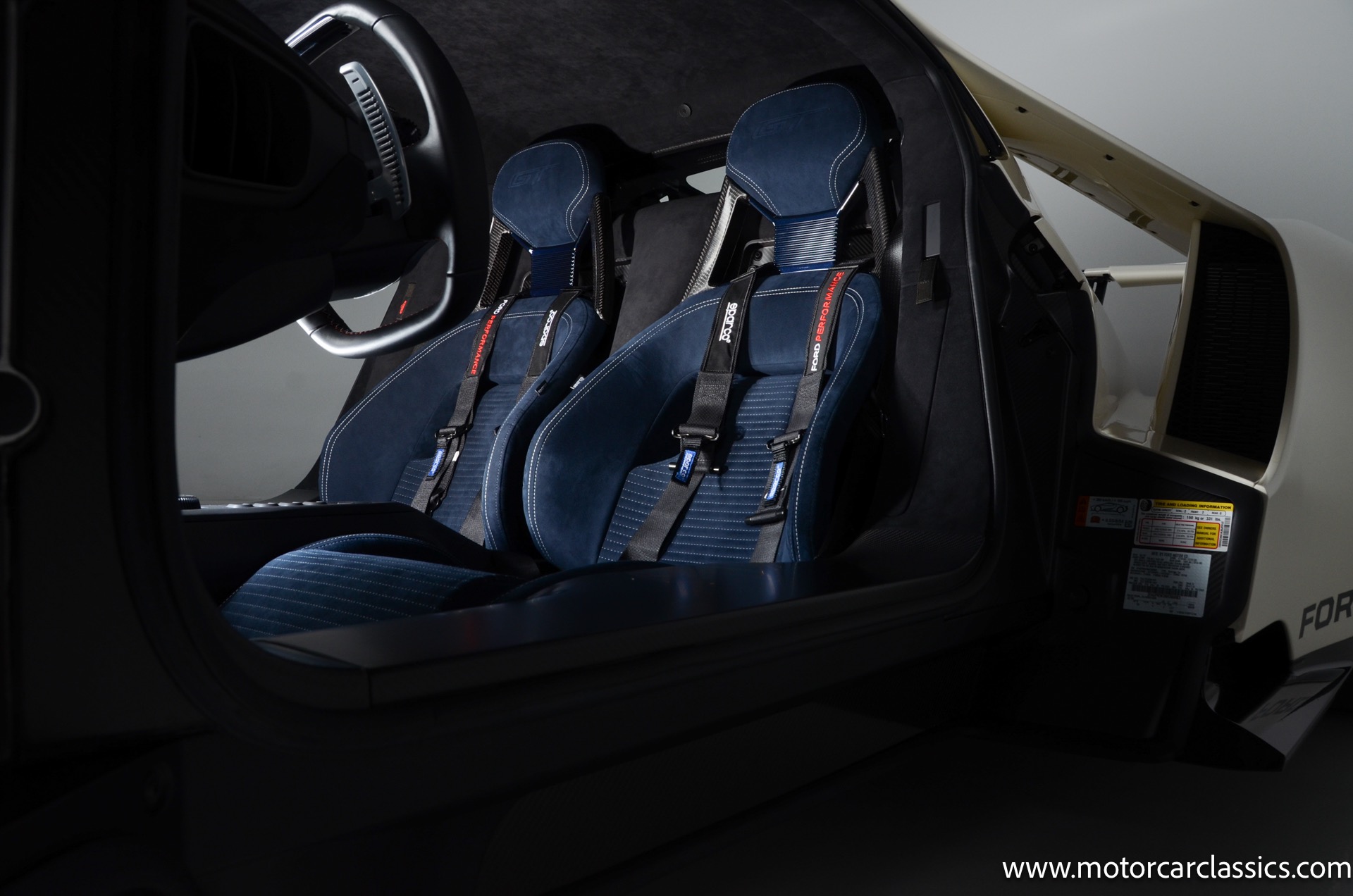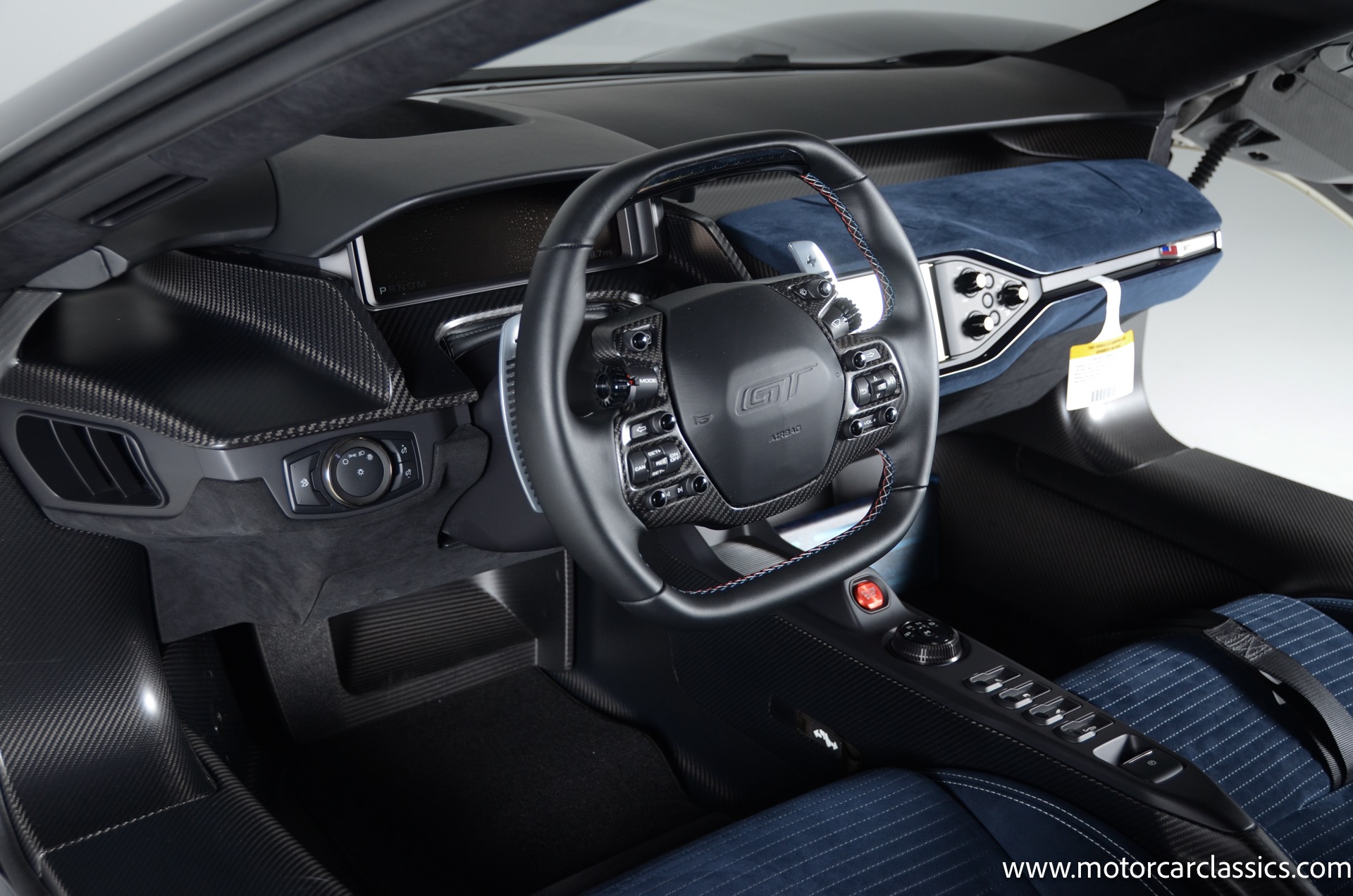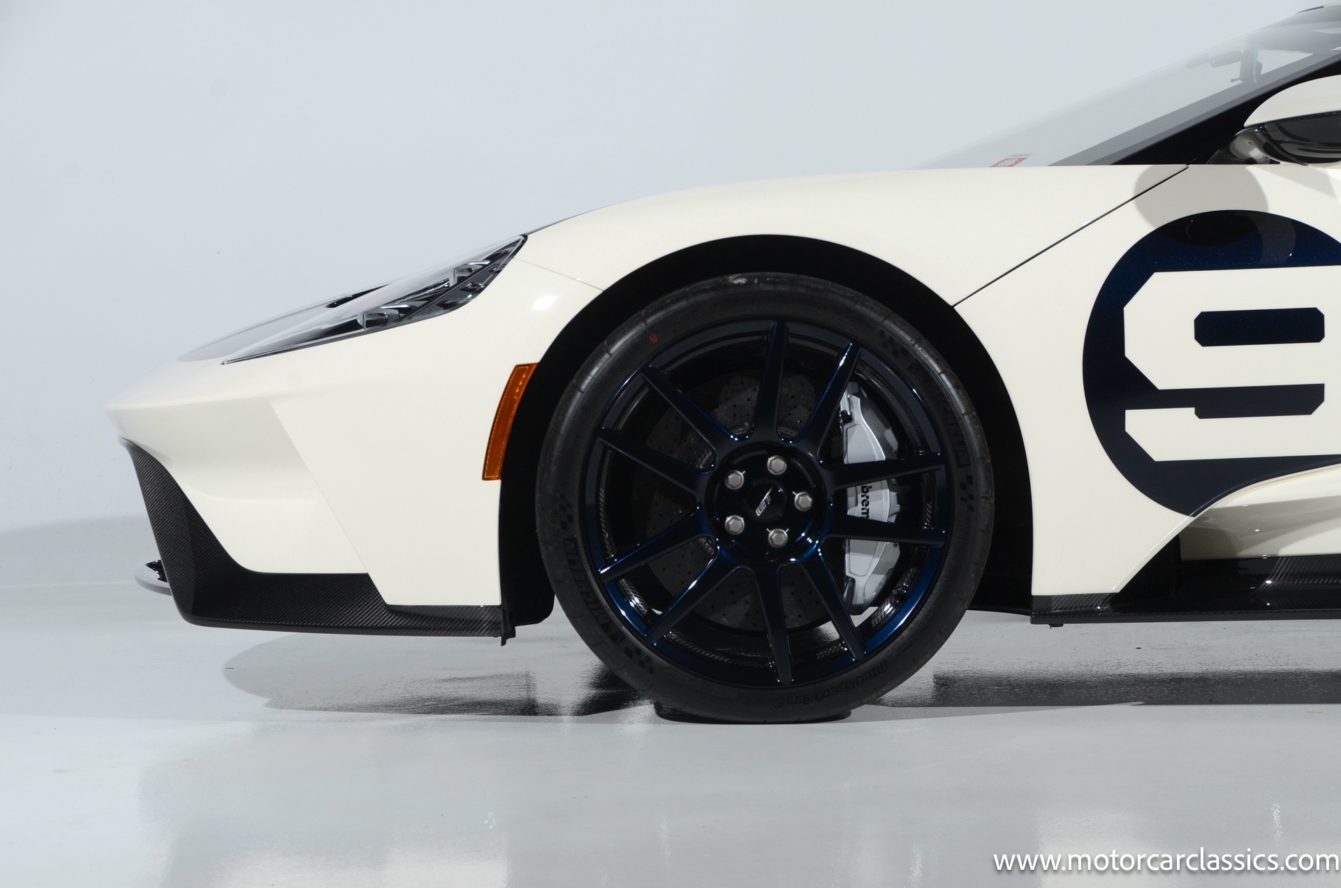 This one-of-one Heritage Edition supercar pays homage to the 1964 Ford GT prototypes that led to America's only Le Mans winning race car. The Ford GT Heritage Edition is a modern take of the original, combining classic Ford Performance features like Wimbledon White paint and race stripe but along with contemporary touches including exposed carbon fiber body and carbon fiber wheels and updated interior. Our example is a 1-owner car from new with only 429 miles. This is represented as the only Heritage Edition special ordered in Wimbledon White with Antimatter Blue graphics. Factory Options include: Heritage steering wheel, 20" Antimatter Blue and white carbon wheels, silver brake calipers, lightweight titanium tow hook, exterior carbon fiber package in gloss, 6 point harness anchors, titanium lug nuts and more! $749,500 MSRP!