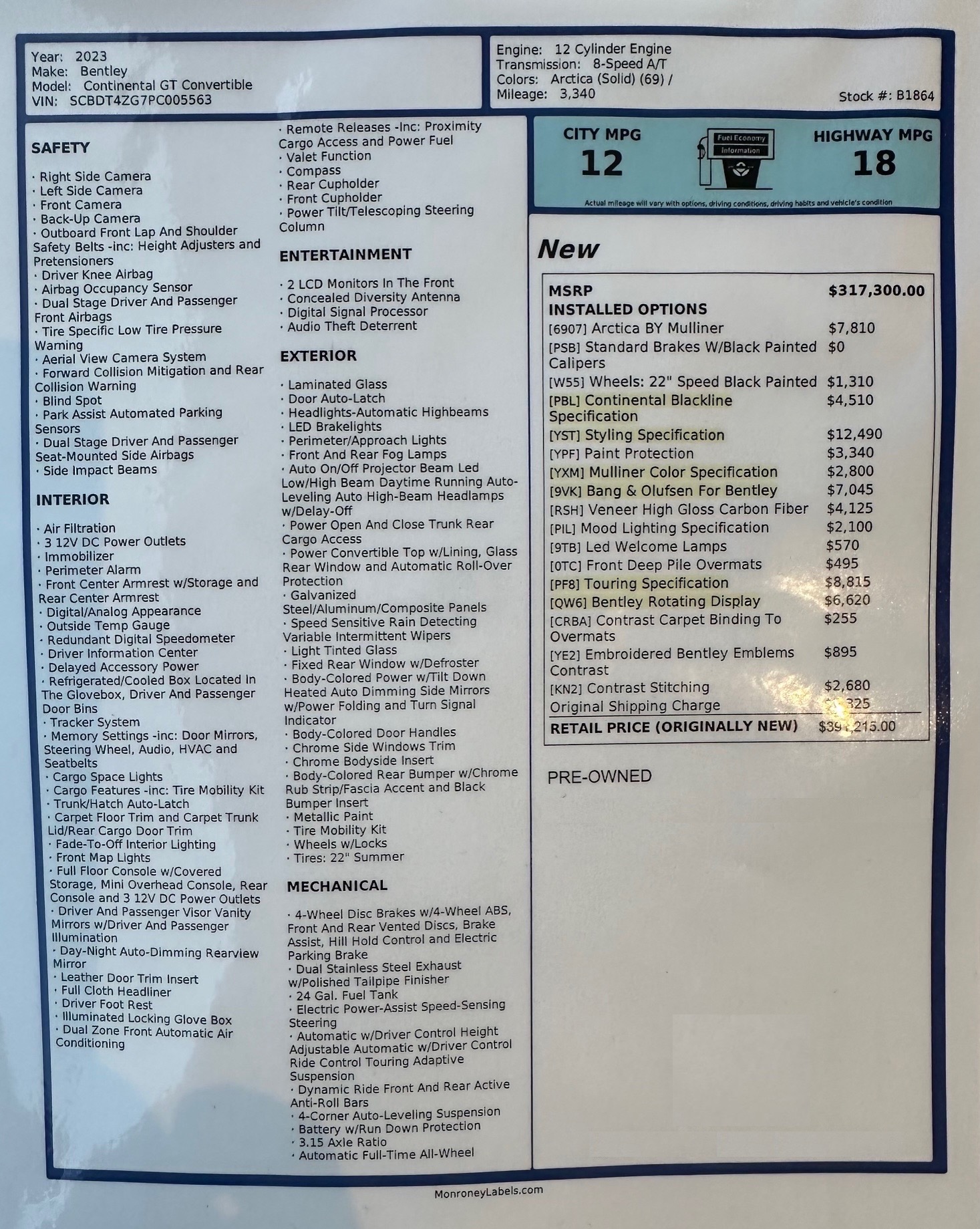 | Engine: | 6.0L Twin Turbo W12 650hp 664ft. lbs. |