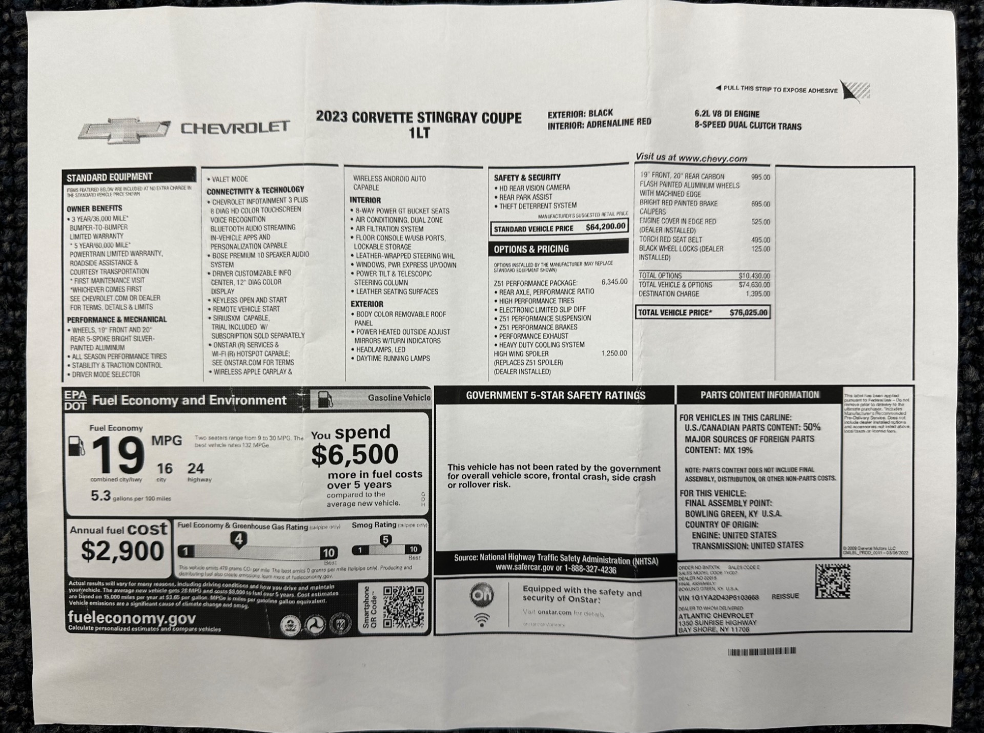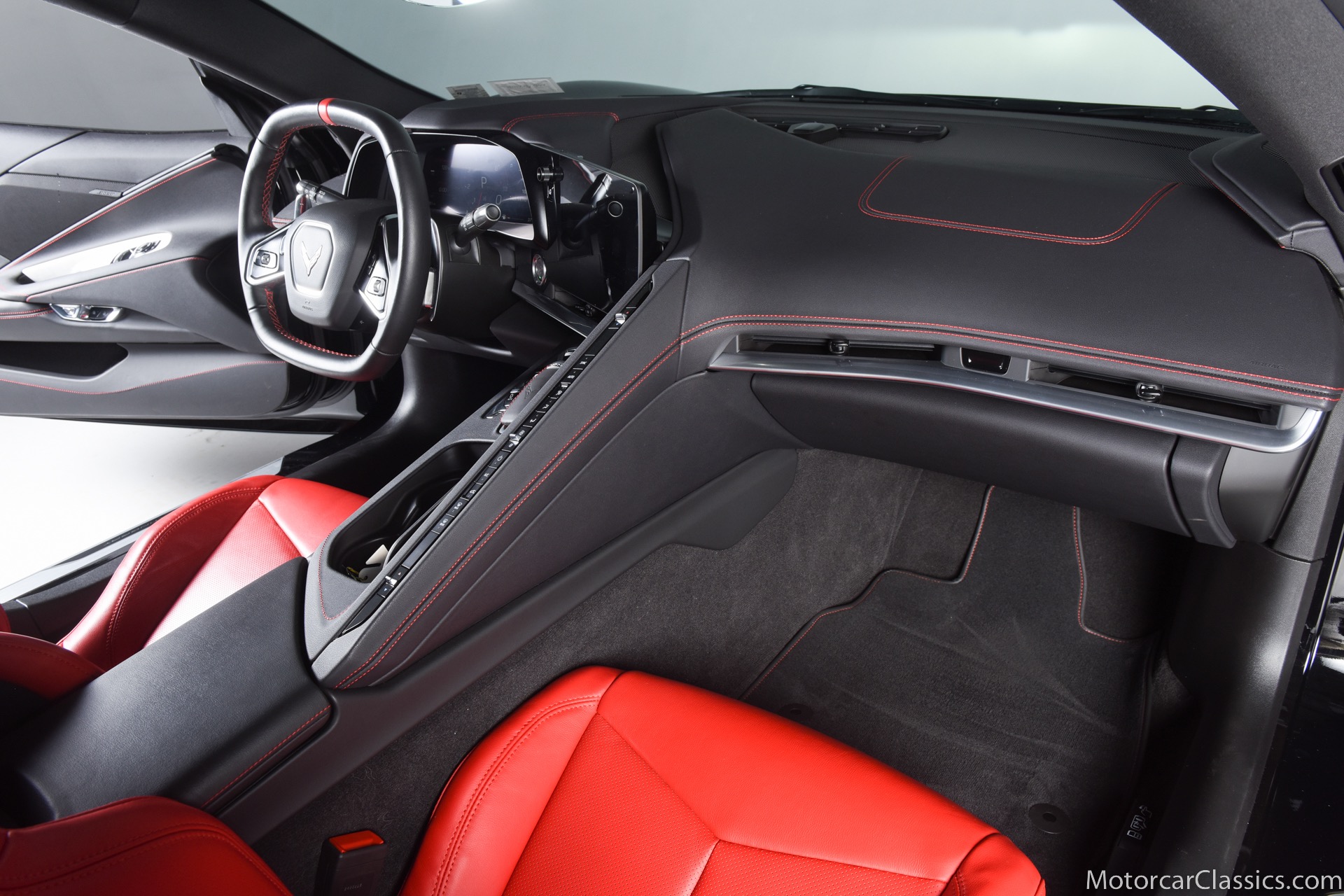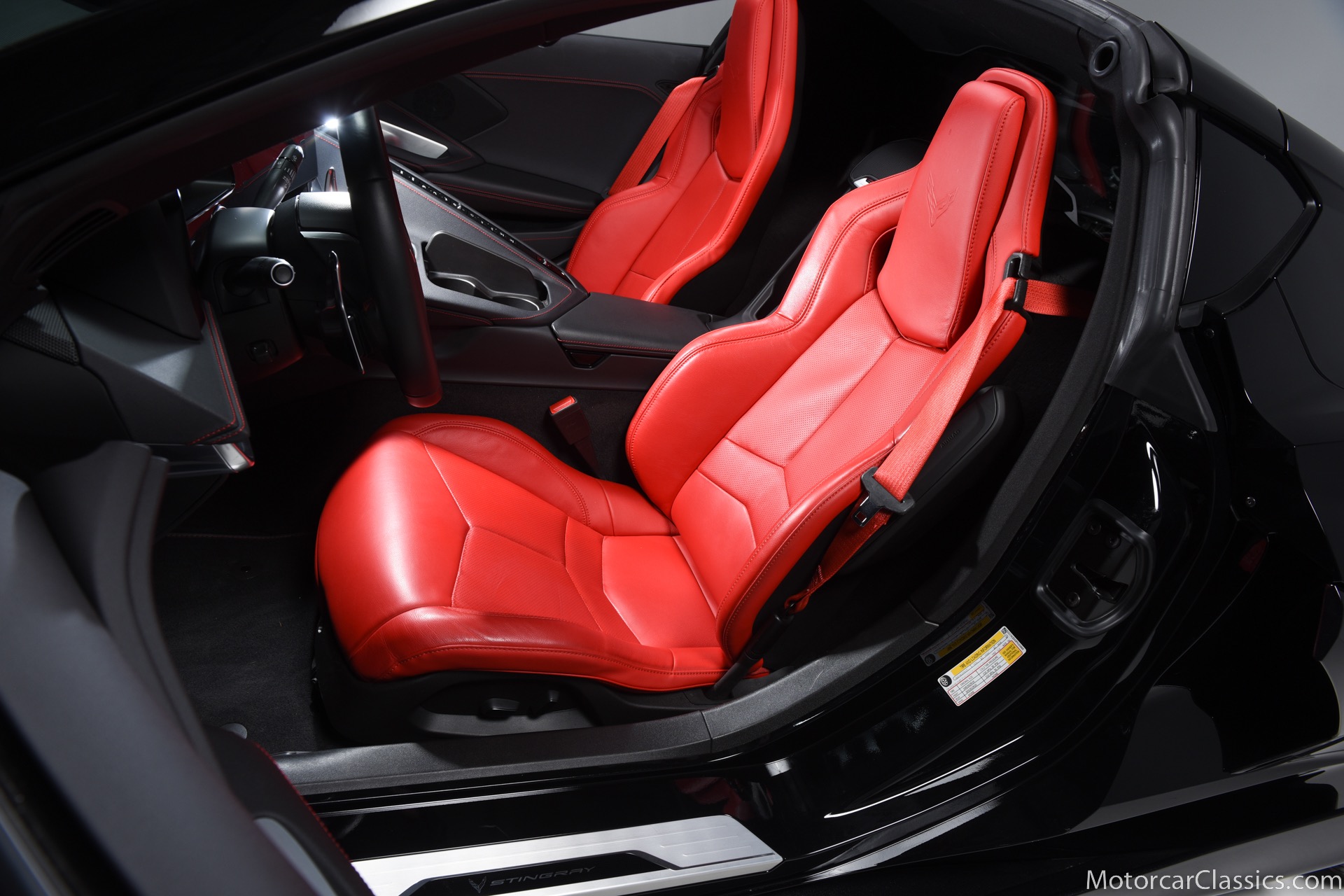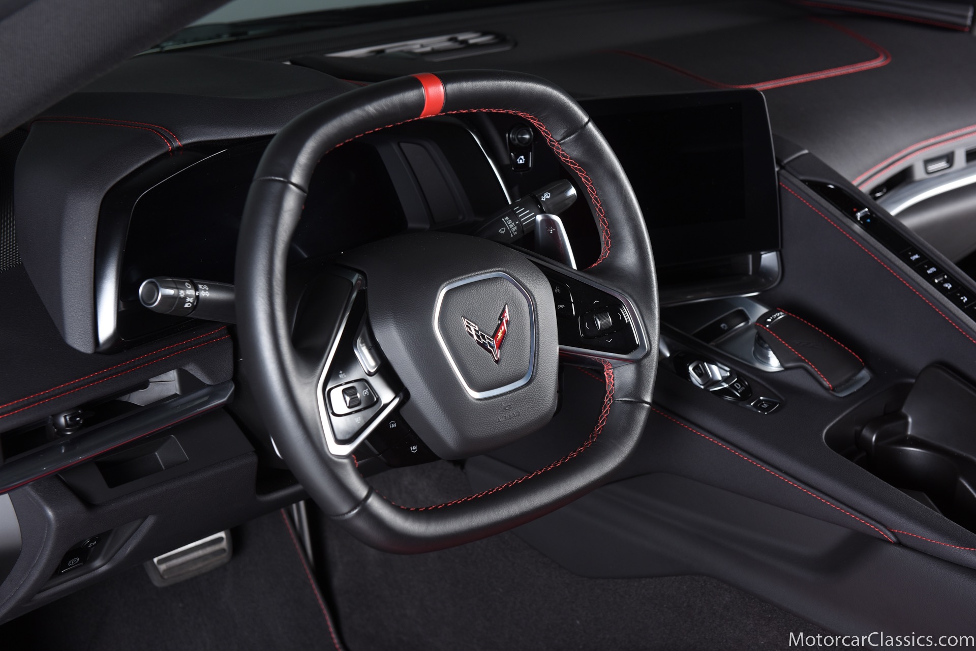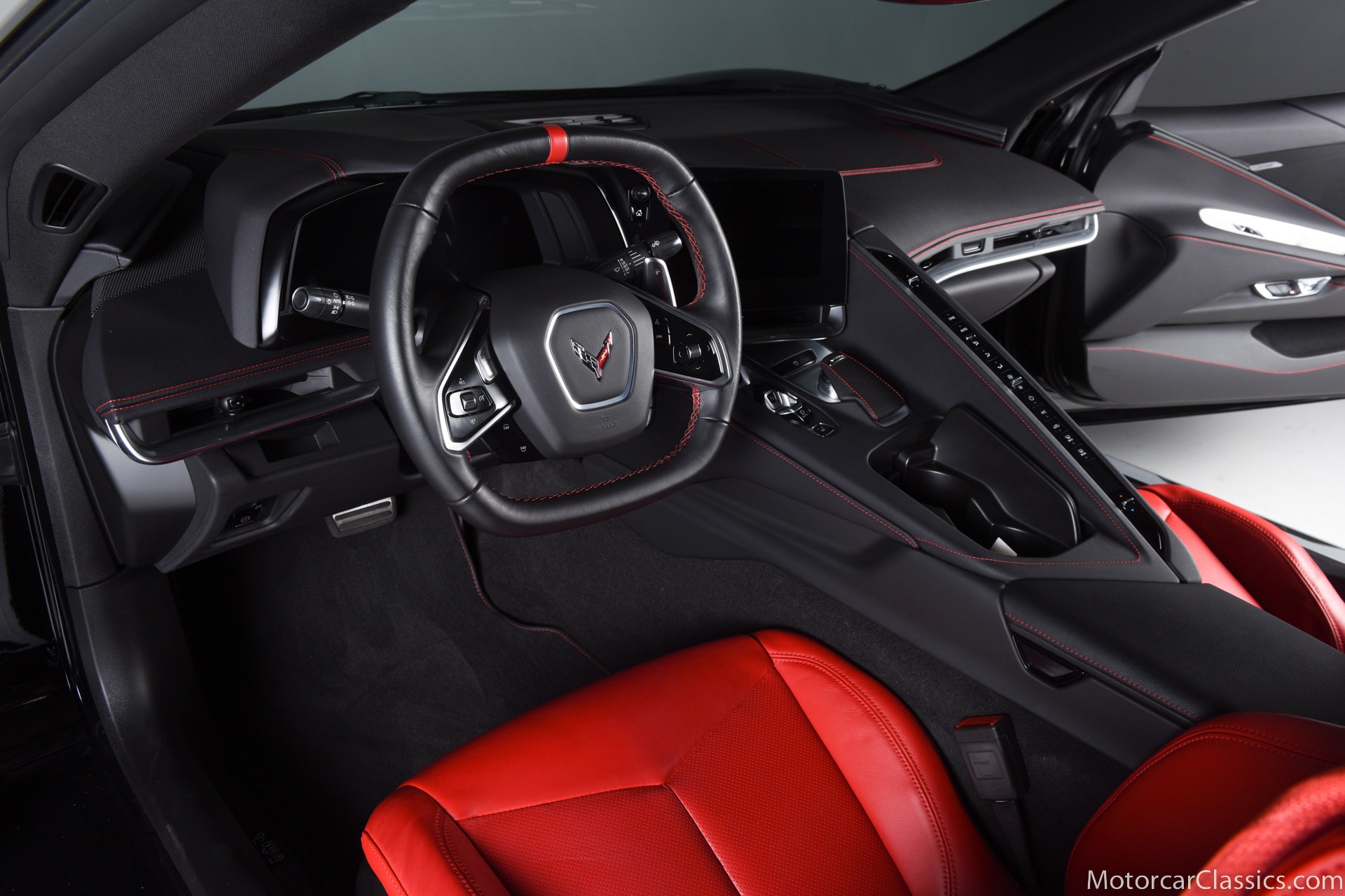 2023 Chevrolet Corvette C8 Stingray Coupe 1LT Z51 for sale! Motorcar Classics is pleased to offer this stunning Corvette presented in Black with Adrenaline Red interior. 6.2L V8 engine with a 8-speed dual clutch automatic transmission. 2,348 1-owner miles! Aftermarket upgrades include: ACM 5m front splitter, ACM side skirts, paint protection film on the front nose, Ceramic coating on the entire car and 35% window tint. This Corvette has rim and tire Chevy warranty until 2027. Options include: 19/20 5-spoke bright silver painted aluminum wheels, all seasons performance tires, Bluetooth audio streaming, Bose premium 10 speaker system, keyless open and start, remote start, Sirius capable, Onstar services, 8-way power GT bucket seats, AC, dual zone, floor console with USB ports, leather wrapped steering wheel, power tilt & telescopic steering wheel, leather seating surfaces, body color removable roof panel, power heated outside adjust mirrors, Led headlamps, daytime running lamps, HD rear vision camera, rear park assist, Z51 performance package: rear axle performance ratio, high performance tires, electronic limited slip diff, Z51 performance suspension, Z51 performance brakes, performance exhaust, heavy duty cooling system, high wing spoiler, 19/20rear carbon flash painted aluminum wheels with machined edge, bright red painted brake calipers, engine cover in edge red, torch red seat belt, black wheel locks. This C8 comes with books and 2 keys and a car cover. Your inspection is invited!