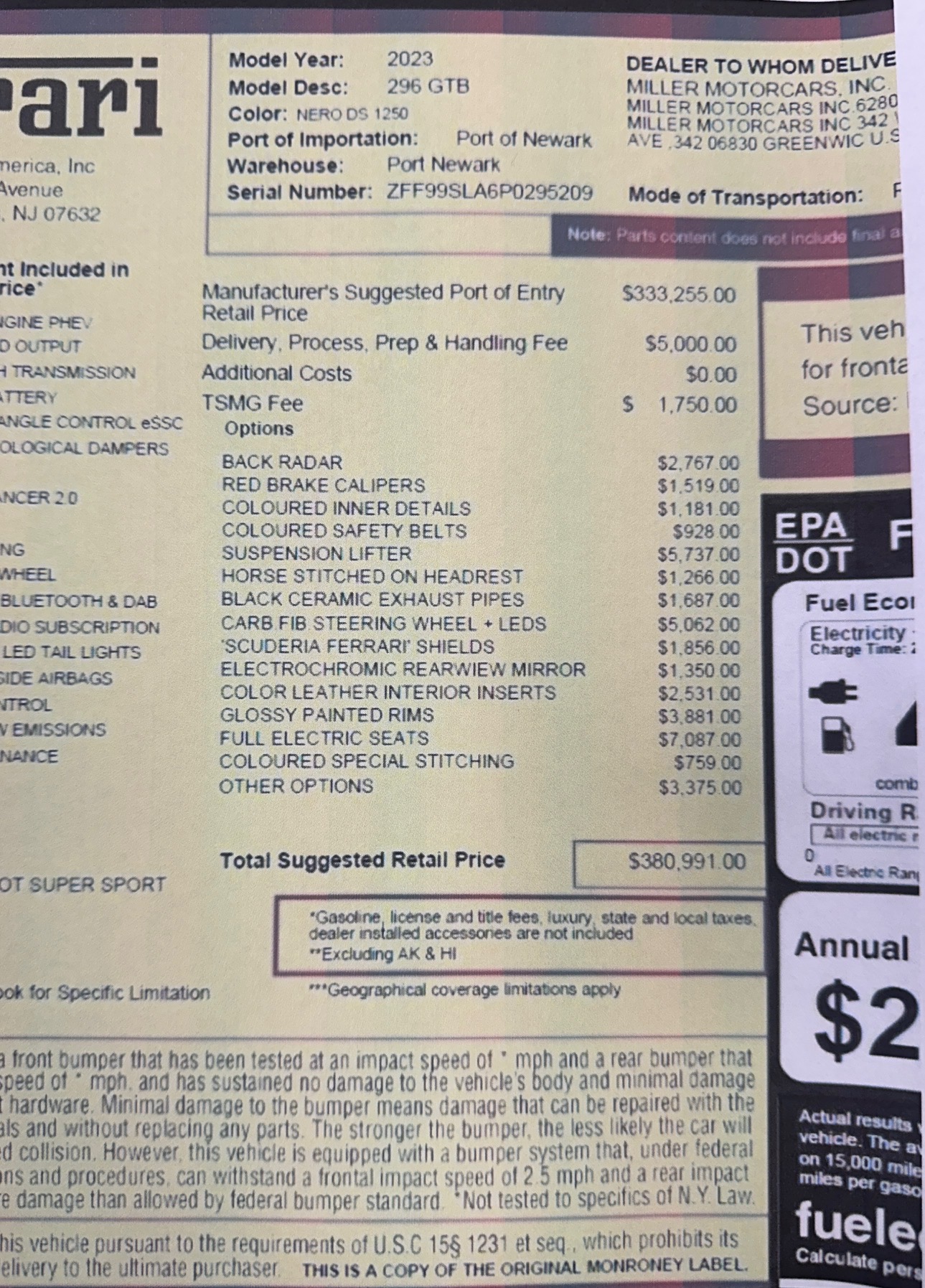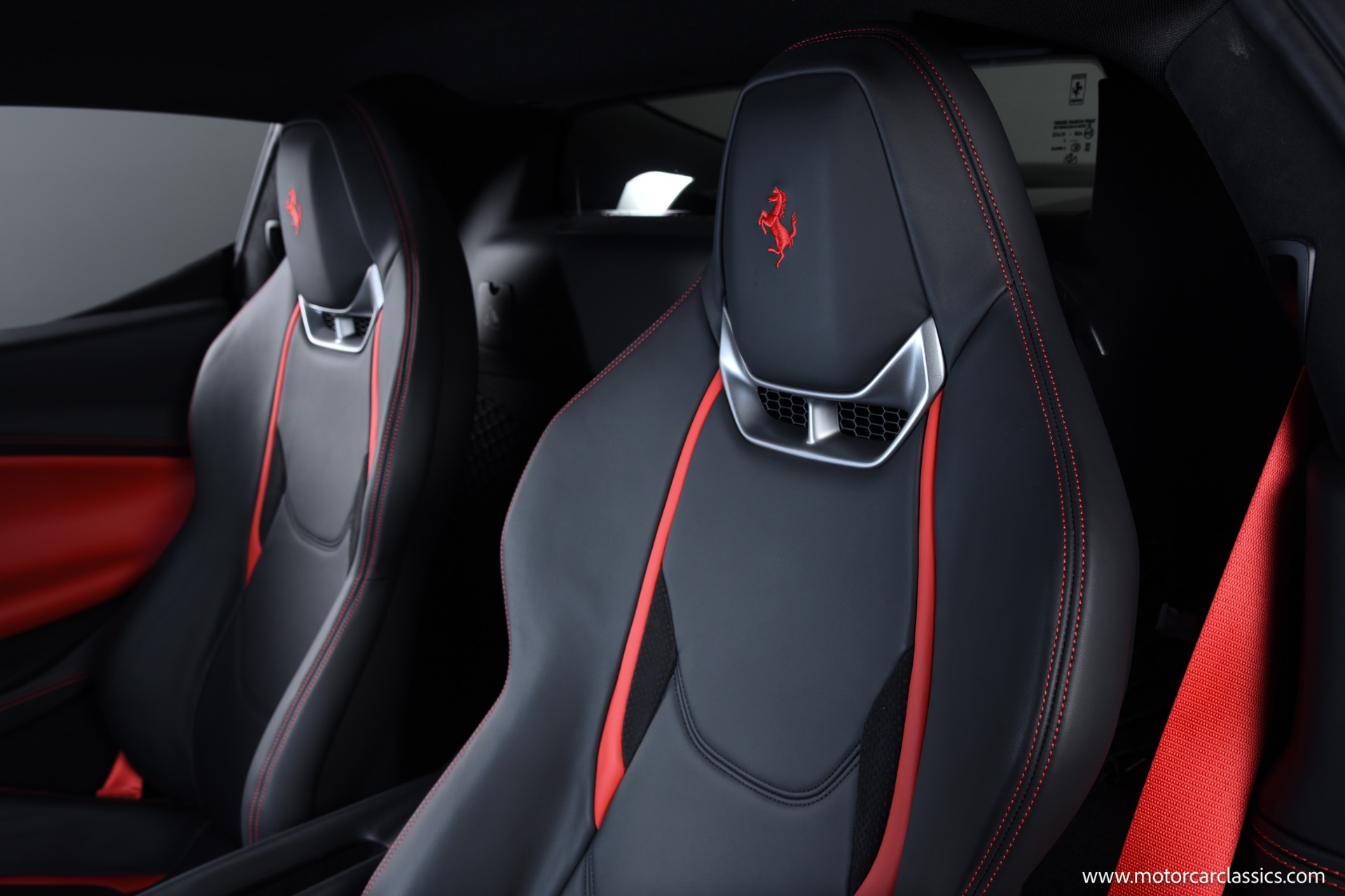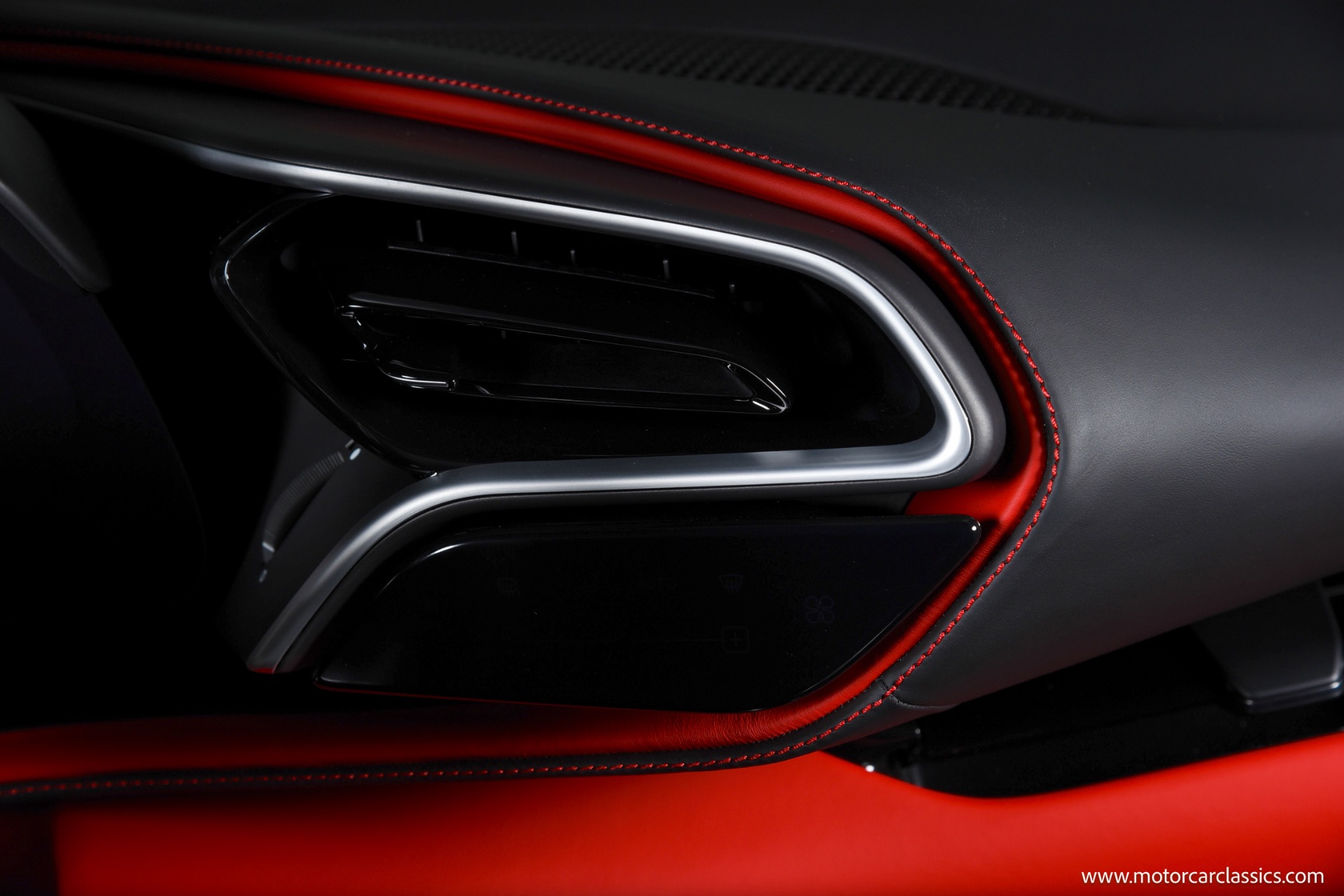 This 296 GTB boasts a highly desirable configuration, beginning with glossy painted rims, red brake calipers, and the unmistakable Scuderia Ferrari shields on the fenders. The rear is further enhanced with black ceramic exhaust pipes, while the front radar adds an extra layer of technology and convenience. Inside, the cabin is a masterclass in Ferrari craftsmanship, highlighted by nero leather with red inserts, colored inner details, and special colored stitching, along with red safety belts and the legendary prancing horse stitched into the headrests. Comfort is ensured through full electric seats, while the electrochromic rearview mirror adds modern sophistication.