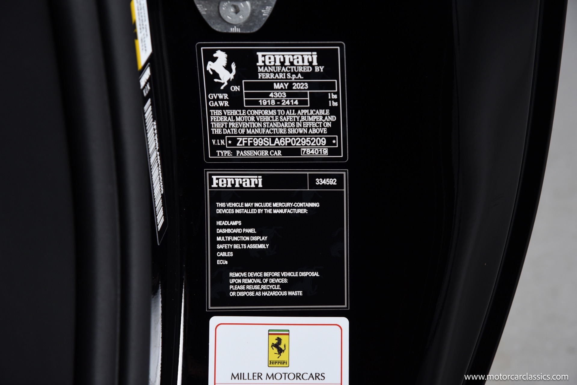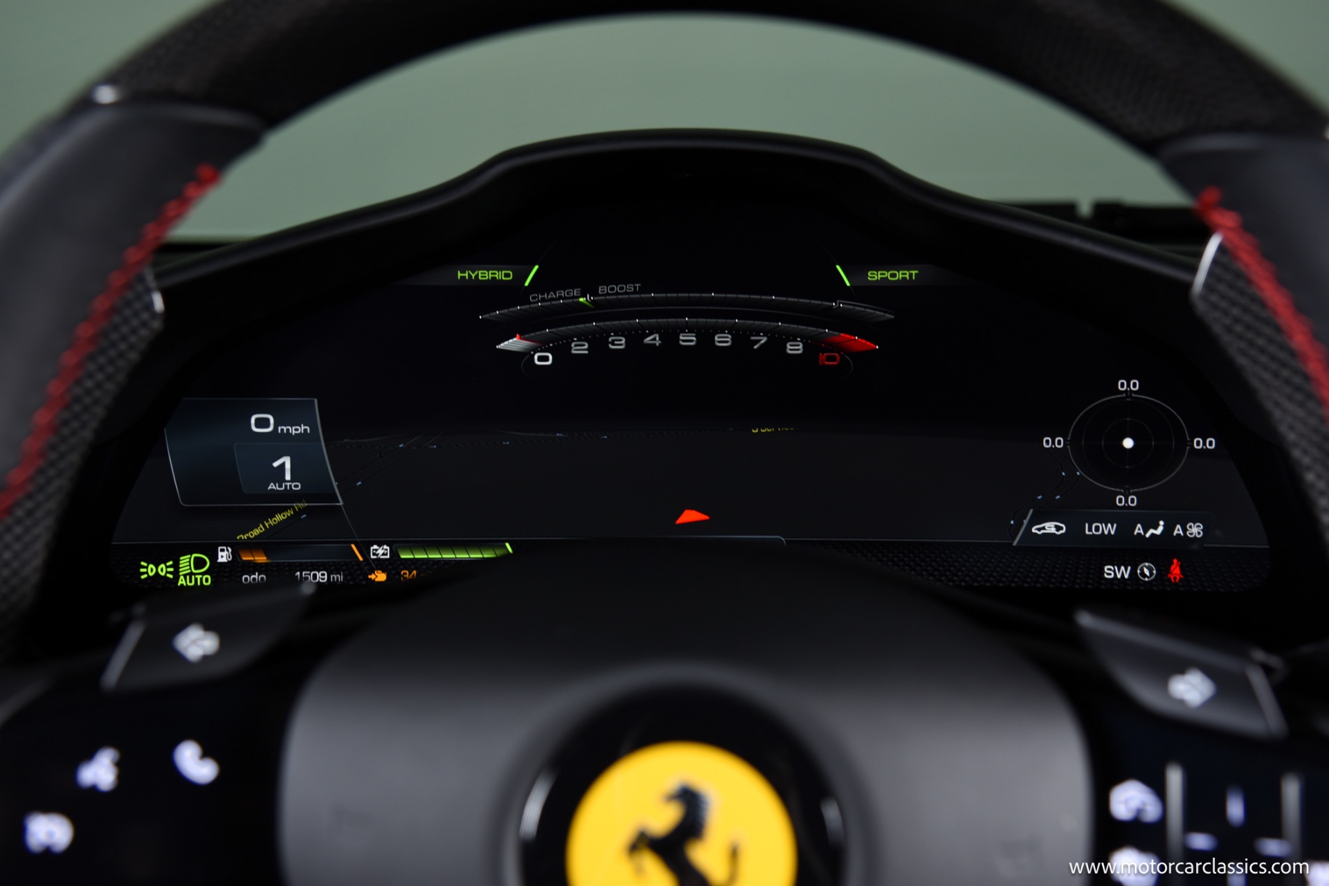 2023 Ferrari 296 GTB for sale! Motorcar Classics is proud to present this immaculate 2023 Ferrari 296 GTB, finished in a sleek Nero exterior over a refined nero leather interior with striking red accents. Showing only 1,509 miles on the odometer, this example remains in exceptional condition and has been meticulously cared for since new. To preserve its flawless finish, the front nose has been protected with professionally installed paint protection film (PPF), and the entire body has received a full ceramic coating for lasting shine and durability.