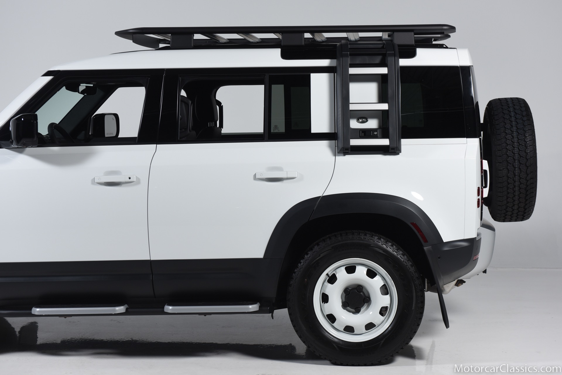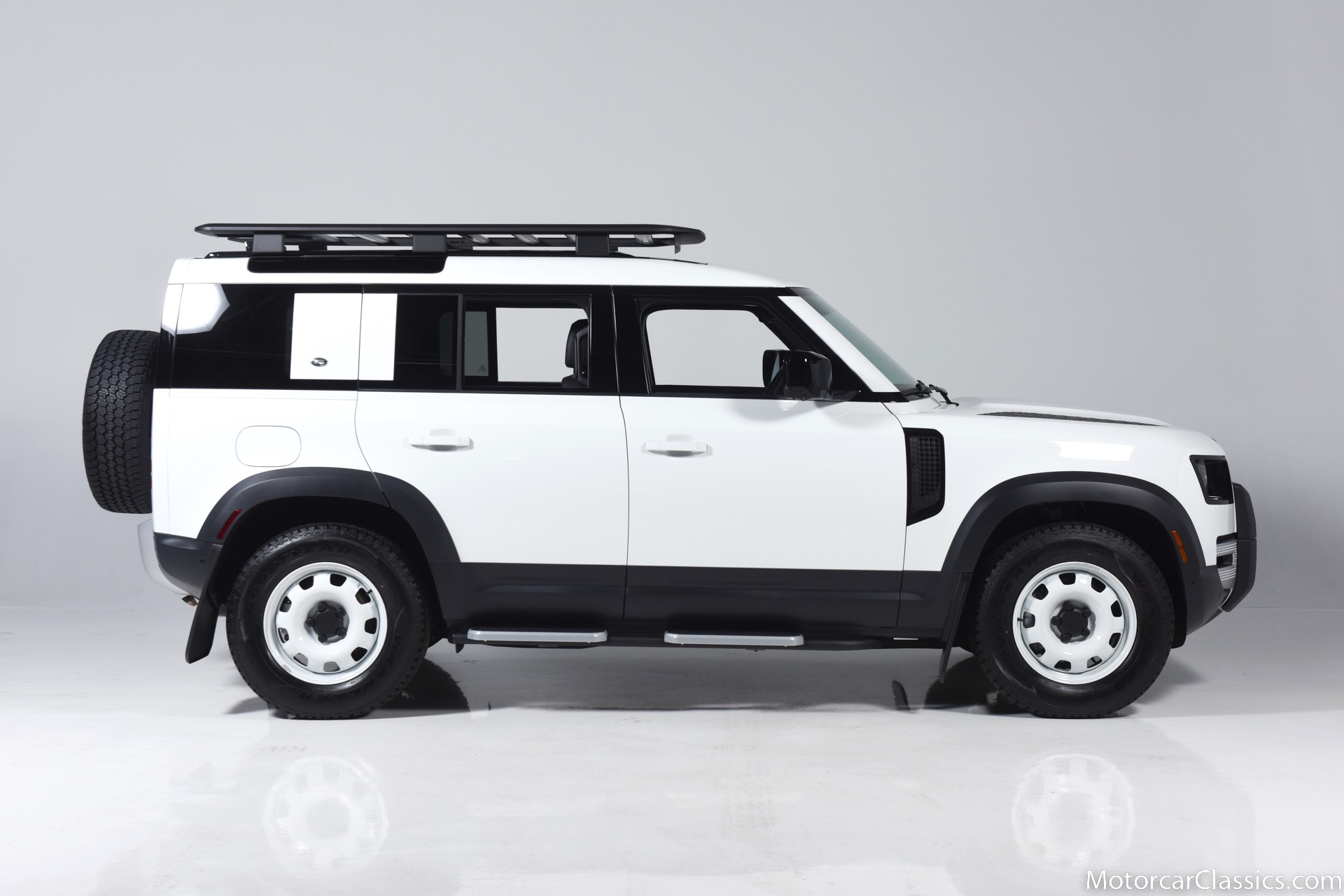 2023 Land Rover Defender 110 S for sale! Motorcar Classics is pleased to offer this impressive Defender 110 S presented in Fuji White with Ebony interior. 2.0L turbocharged 4-cylinder 296HP with an 8-speed automatic transmission. 1-owner car! Only 68 miles. Options include: Cold climate pack, heated windscreen, heated washer jets, heated steering wheel, heated power wash, Off road pack, electronic active diff, domestic plug sockets, off-road tires, Towing pack, all terrain progress control, terrain response 2, configurable terrain, tow hitch receiver, advanced tow assist, Air suspension pack, electronic air suspension, adaptive dynamics, automatic headlight leveling, black exterior pack, sliding panoramic roof, three zone climate control, ebony morzine headlining, premium LED headlights with signature DRL, cabin air ionization, Front fog lights, activity key, cross car beam in white powder coat finish, locking wheel nuts, air quality sensor, 18 full size steel spare wheel, 18 style 5093 gloss white steel wheels and more!