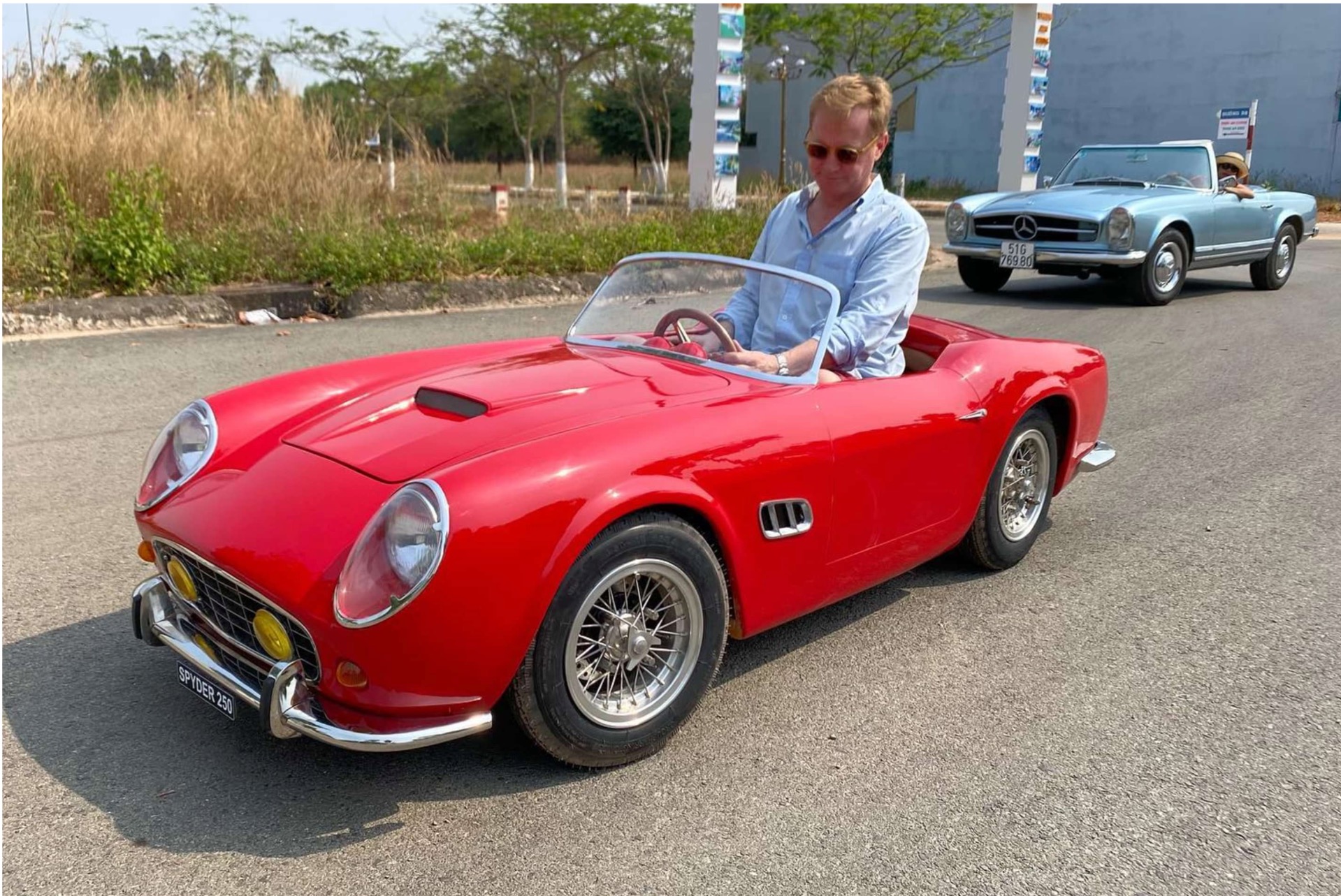 Harrington Junior 250 California Spider replica for sale! This vehicle is crafted by Harrington Junior Cars out of the UK. Presented in Rosso Corsa with tan leather interior this mini car looks and sounds just like the real thing. A medium to large sized adult fits comfortably in this car with adjustable foot pedals and spacious leg room. This mini car is powered by a Lifan quad bike 125cc 3 speed 1 reverse single cylinder 4-stroke gas motor. Top speed is around 31mph! The brakes are hydraulic split system with vented discs. Options include leather interior, wire hubcaps, working dials, floor carpets, handbrake, functional dual exhaust, wood GTO steering wheel, functional headlights and tail lights, horn and more! The transmission is a shiftable 3 speed and feels great! This vehicle is not street legal. Contact us today to place your custom Harrington Mini Car order on all models!